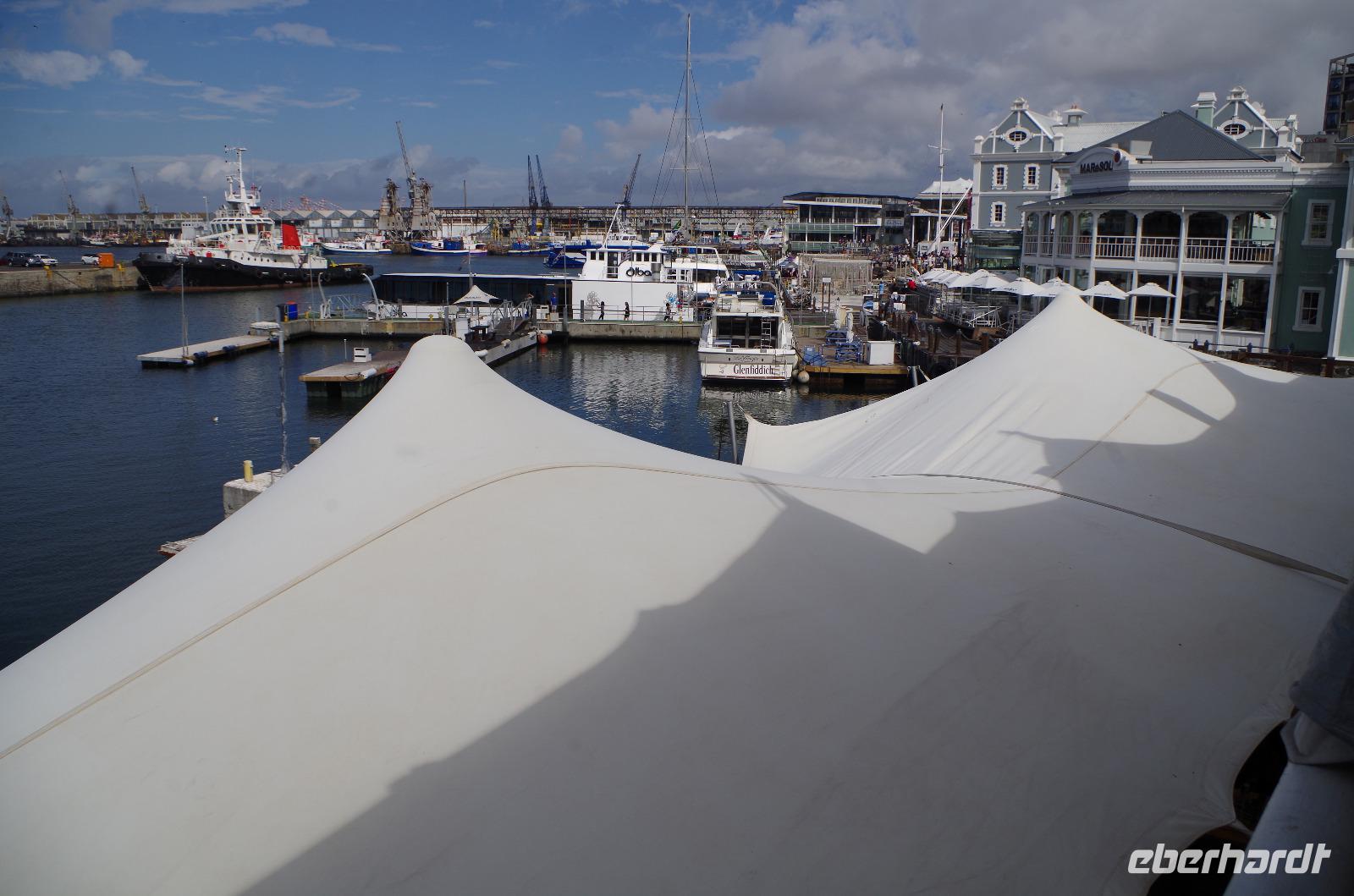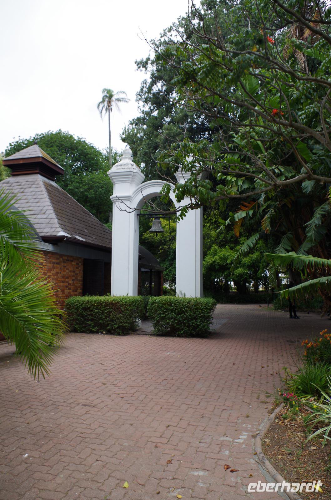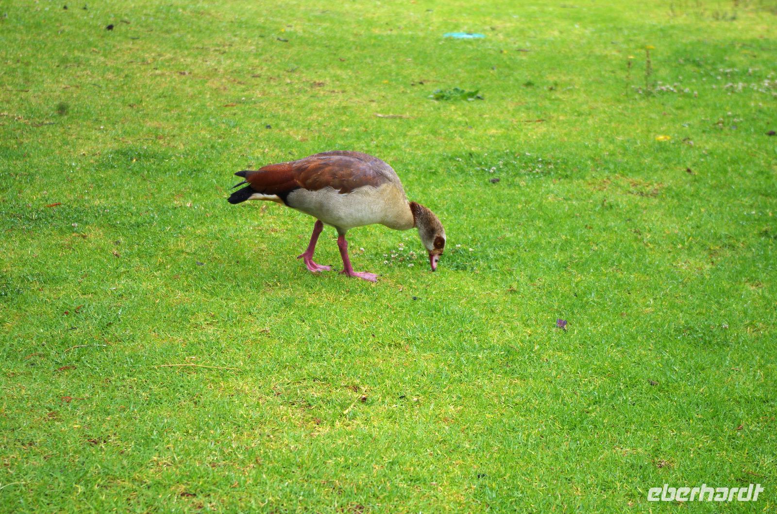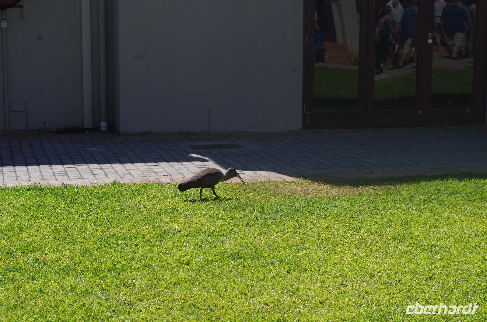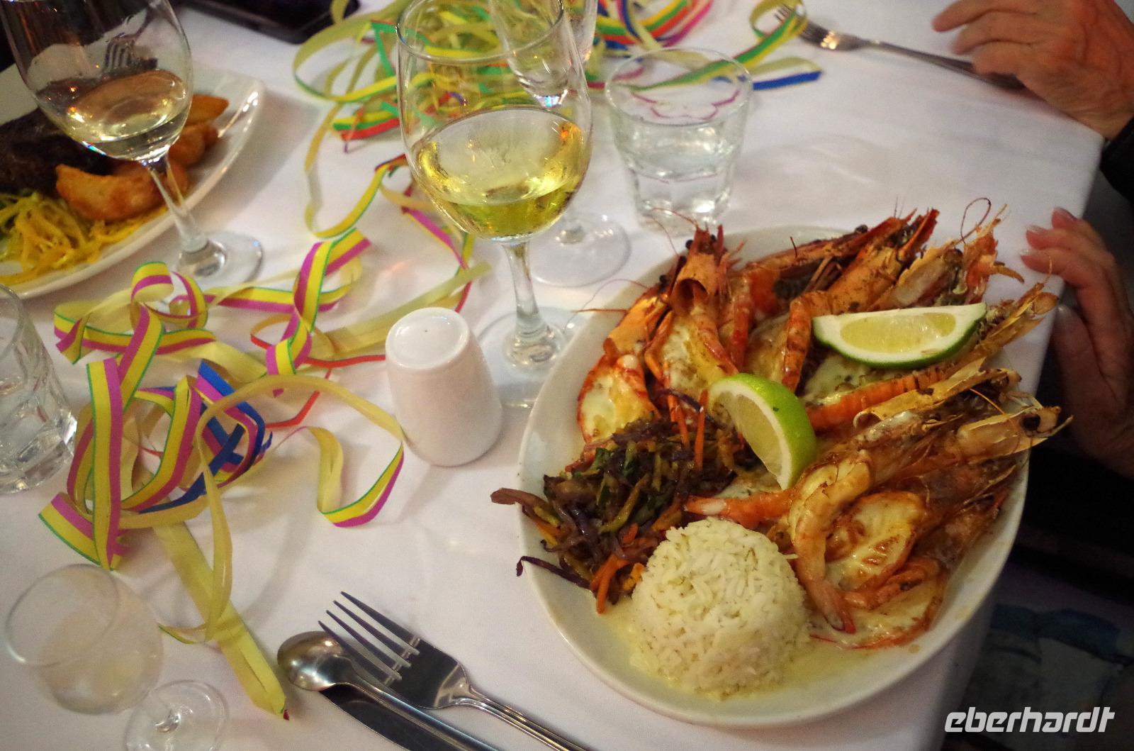 Das Jahr 2017 verabschiedet sich nicht gerade auf angenehme Art und Weise von uns. Der Morgen ist grau und windig, in Kapstadt regnet es. Das sind wirklich keine rosigen Aussichten, aber wir machen wie immer das Beste daraus! Das Frühstück ist abermals ab 06.30 Uhr möglich. Danach heißt es Koffer packen, auschecken und um 09.00 Uhr fahren wir nach Kapstadt. Auf unserem heutigen Plan steht der Besuch des 1913 errichteten Nationalen Botanischen Gartens in Kirstenbosch, welchen wir rund eine Stunde später erreichen. Der Garten steht unter Verwaltung vom South African National Biodiversity Institute, kurz SANBI, und ist mit rund 36 Hektar der größte der zehn nationalen botanischen Gärten. Wir erfahren von Herbie, dass seine Entstehung ins Jahr 1652 zurückzuführen ist. Zu der Zeit hatte der Gouverneur Jan van Riebeeck den Waldbestand überprüfen und rund acht Jahre später eine Schutzmaßnahme sowie Siedlungsgrenze bestehend aus Brombeerhecken und wilden Mandelbäumen errichten lassen. Die Namensgebung ist zurückzuführen auf einen früheren Landwirt mit Namen Jan Frederik Kirsten und dessen Farm Veldhuisen, welche sich vorher an der heutigen Stelle des Botanischen Gartens befunden hatte. Die Hauptaufgabe des Parks besteht darin, die einheimischen südafrikanischen Pflanzen zu kultivieren, zu pflegen und zu erforschen. Am Eingang erhalten wir alle eine Wegbeschreibung und erkunden individuell die schöne Anlage mit den riesigen Bäumen und einzigartigen Pflanzen. Was können wir hier sehen und entdecken? Wer möchte, folgt den "Spuren der Vergangenheit" auf dem rund zwei Kilometer langen "Historischen Pfad", wobei auf die Wegweiser "Heritage Trail" mit den entsprechenden Erklärungen zu achten ist. Weitere Highlights sind der Duftgarten, der Mathews Steingarten, der Erica Garten, der Protea Garten, die Van Riebeeck's Hecke, der Skulpturengarten sowie der Garten der gefährdeten Pflanzen. Zudem befindet sich im Garten das Restaurant "moyo Kirstenbosch" sowie die Kirstenbosch Tee-Stube. Der leichte anhaltende Nieselregen stört uns nicht weiter, es wird sicher noch besser werden ;-) Um 11.30 Uhr treffen wir uns in Eingangsnähe, um ein weiteres Gruppenfoto aufzunehmen. Und nein, es wird nicht das letzte Gruppenfoto sein *grins* Zunächst stoßen wir mit leckerer alkoholhaltiger Schokolade "Anthon Berg Since 1884 Chocolate Liqueurs" auf eine schöne Reise an und anschließend entsteht ein tolles Foto mit Eberhardt Schild. Aber was passiert dann? Durch eine Windböe landet das Schild im nahegelegenen Teich! Hmmm, was nun? Wie bekommen wir das Schild wieder aus dem Teich gefischt? Wir wollen ja schließlich die Umwelt nicht verschmutzen! Alle Versuche, das Schild mit einem Stock herauszuholen, misslingen, so dass die Reisebegleitung die Hosenbeine hochkrempelt und selbst in den Teich steigt. Zum Glück ist sowohl das Wasser als auch die Außentemperatur sehr angenehm. Das Schild ist "gerettet" und ein witziges Foto im Teich im Botanischen Garten von der Reisebegleitung entsteht. Unterhaltsam war die Aktion für die Gäste und auch für die Reisebegleitung allemal ;o) Dann schauen wir uns gemeinsam mit Herbie den eher unscheinbaren Nationalbaum Südafrikas an, den Real Yellowwood "Podocarpus latifolius". Gegen 12.00 Uhr laufen einige Gäste den Skywalk "Centenary Tree Canopy Walkway" mit tollem Blick über den Botanischen Garten entlang. Bevor wir den Garten verlassen, schauen wir uns noch im Souvenirladen um. Um 13.00 Uhr fahren wir weiter ins Zentrum von Kapstadt. Wir besuchen den "The Company's Garden" und gönnen uns einen Kaffee und kleinen Mittagsimbiss im "The Company's Gardens Restaurant". Das Wetter ist zwar immer noch grau und nebelig, aber es hat immerhin mit Regnen aufgehört! Dann fahren wir zum 4-Sterne-Hotel "City Lodge V & A Waterfront", wo wir die nächsten drei Nächte übernachten werden. Wir checken 16.00 Uhr ein und entspannen bis zum Abend. Um 18.00 Uhr treffen wir uns, um gemeinsam zur berühmten "Victoria & Alfred Waterfront" zu spazieren, welche sich nur rund zehn bis fünfzehn Gehminuten vom Hotel entfernt befindet. Hier angekommen verteilt sich die Gruppe. Es gibt eine große Shopping Mall, Souvenirgeschäfte und ein Riesenrad. Die Waterfront eignet sich auch für einen tollen Spaziergang am Hafen entlang. Es ist jedoch zu beachten, dass in Kapstadt ein striktes Alkoholverbot besteht und kleine Handtaschen-Regenschirme können als Gewaltstöcke angesehen werden! Abermals regnet es in Kapstadt. Beim Essen wird uns der Regen aber nicht stören, da wir drinnen im Restaurant unser Menü genießen werden. Um 20.15 Uhr treffen wir uns wieder zum Abendessen an der Victoria & Alfred Waterfront vorm Restaurant "Quay Four: Seafood Restaurant & Tavern", wo unsere Abendveranstaltung stattfinden wird. Wir werden mit einem Glas Champagner empfangen und nehmen die Sitzplätze an zwei großen Tischen für bis zu neun Personen ein. Der Tisch ist schön mit Luftballons und Luftschlangen dekoriert, mitgebracht von der Reisebegleitung aus Deutschland. Das Tischschild von Eberhardt darf da natürlich nicht fehlen! Zum Glück kann das Schild dieses Mal nicht wegfliegen :-) Wir werden mit einem ausgezeichneten Fünf-Gänge-Menü verwöhnt, von leckerem Fisch über eine riesige Portion Fleisch ist für jeden Reisegast etwas dabei. Die Vorspeise besteht aus Burrata, norwegischer Lachs oder Springbock Carpaccio. Zwischen Vor- und Hauptspeise wird uns ein Salat und ein Sorbet gereicht. Bei der Hauptspeise haben wir die Wahl zwischen Meeresfrüchte-Platte, ein vegetarisches Wachtel-Ei-Pilz-Gericht, Straußenfilet oder Prime Rip. Natürlich können wir nicht ohne eine leckere Süßspeise ins Neue Jahr starten, so dass wir als Dessert ein Dreierlei aus Zitronenpudding, einer Art Schwarzwälder Kirschtorte sowie Blaubeereiscreme mit Ingwerschnaps serviert bekommen. Wir unterhalten uns über die vergangenen Tage im alten Jahr und freuen uns auf die kommenden Erlebnisse im neuen Jahr. Die Zei