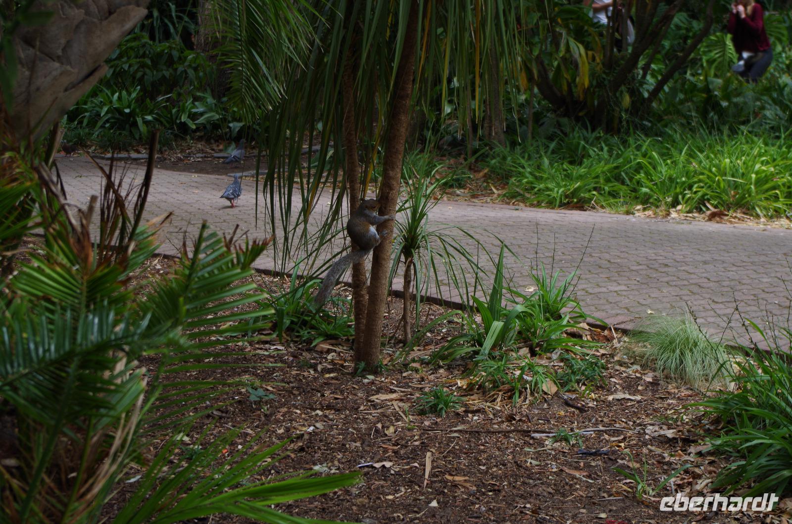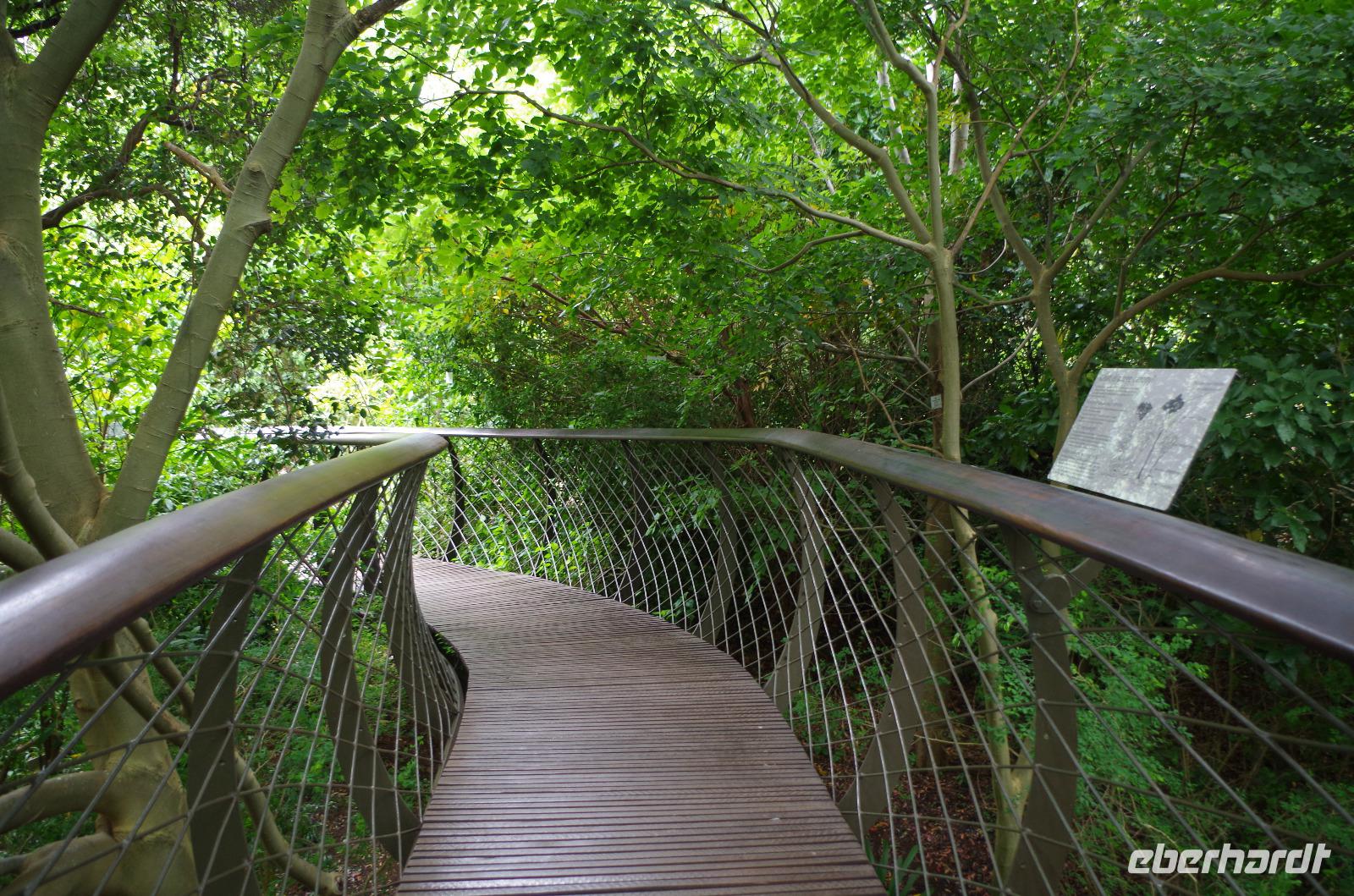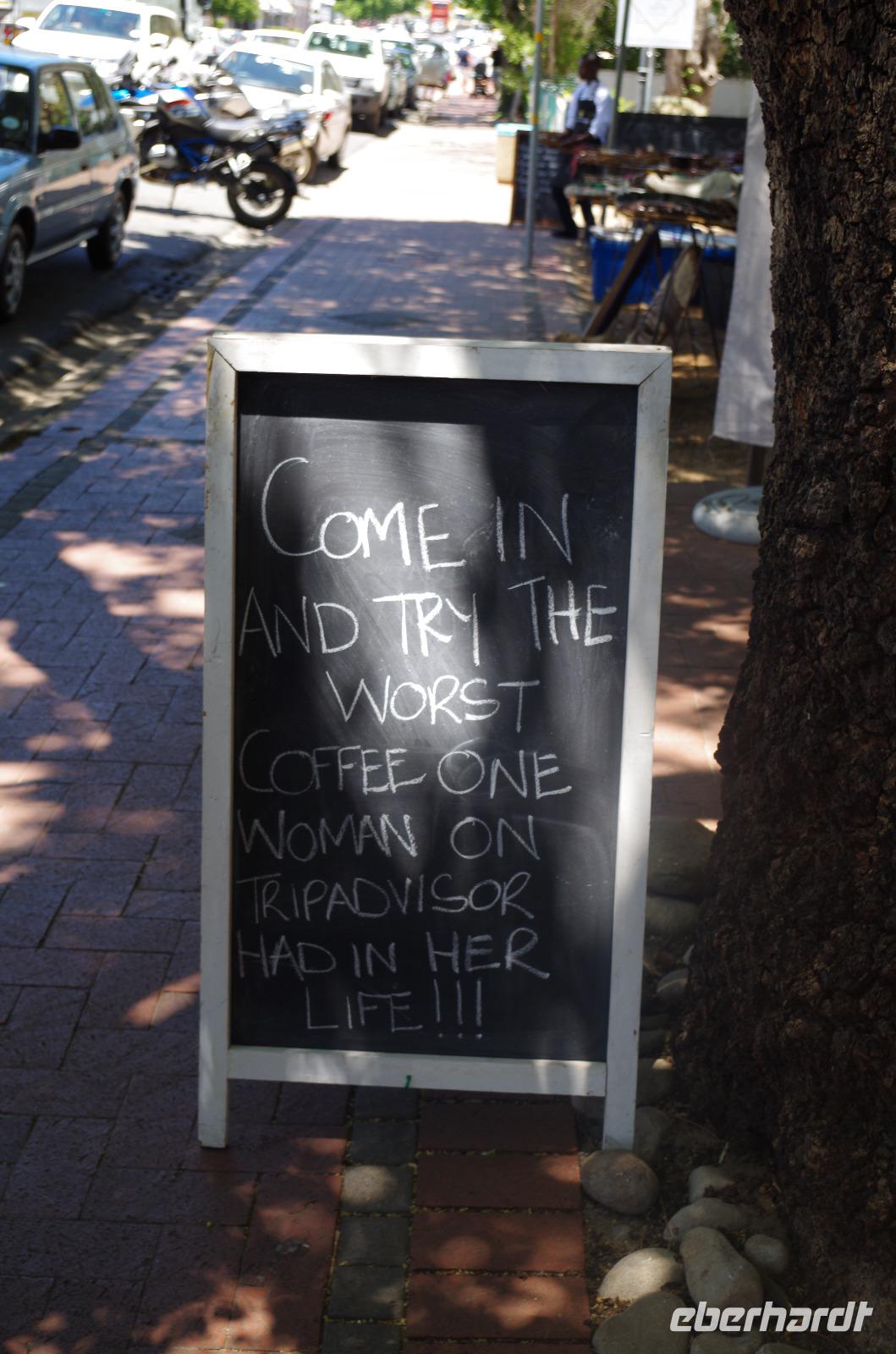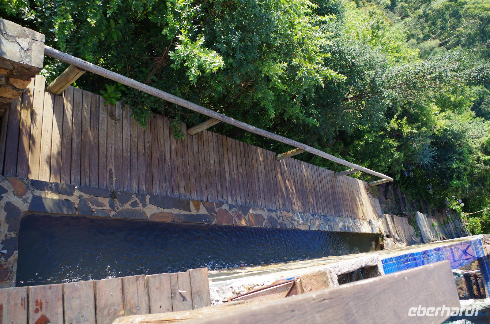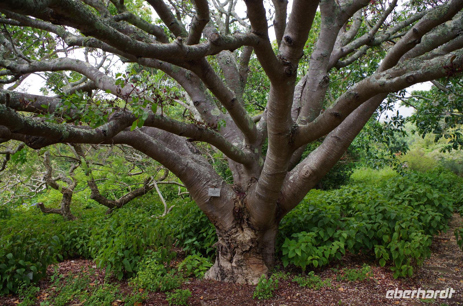 Das Jahr 2017 verabschiedet sich nicht gerade auf angenehme Art und Weise von uns. Der Morgen ist grau und windig, in Kapstadt regnet es. Das sind wirklich keine rosigen Aussichten, aber wir machen wie immer das Beste daraus! Das Frühstück ist abermals ab 06.30 Uhr möglich. Danach heißt es Koffer packen, auschecken und um 09.00 Uhr fahren wir nach Kapstadt. Auf unserem heutigen Plan steht der Besuch des 1913 errichteten Nationalen Botanischen Gartens in Kirstenbosch, welchen wir rund eine Stunde später erreichen. Der Garten steht unter Verwaltung vom South African National Biodiversity Institute, kurz SANBI, und ist mit rund 36 Hektar der größte der zehn nationalen botanischen Gärten. Wir erfahren von Herbie, dass seine Entstehung ins Jahr 1652 zurückzuführen ist. Zu der Zeit hatte der Gouverneur Jan van Riebeeck den Waldbestand überprüfen und rund acht Jahre später eine Schutzmaßnahme sowie Siedlungsgrenze bestehend aus Brombeerhecken und wilden Mandelbäumen errichten lassen. Die Namensgebung ist zurückzuführen auf einen früheren Landwirt mit Namen Jan Frederik Kirsten und dessen Farm Veldhuisen, welche sich vorher an der heutigen Stelle des Botanischen Gartens befunden hatte. Die Hauptaufgabe des Parks besteht darin, die einheimischen südafrikanischen Pflanzen zu kultivieren, zu pflegen und zu erforschen. Am Eingang erhalten wir alle eine Wegbeschreibung und erkunden individuell die schöne Anlage mit den riesigen Bäumen und einzigartigen Pflanzen. Was können wir hier sehen und entdecken? Wer möchte, folgt den "Spuren der Vergangenheit" auf dem rund zwei Kilometer langen "Historischen Pfad", wobei auf die Wegweiser "Heritage Trail" mit den entsprechenden Erklärungen zu achten ist. Weitere Highlights sind der Duftgarten, der Mathews Steingarten, der Erica Garten, der Protea Garten, die Van Riebeeck's Hecke, der Skulpturengarten sowie der Garten der gefährdeten Pflanzen. Zudem befindet sich im Garten das Restaurant "moyo Kirstenbosch" sowie die Kirstenbosch Tee-Stube. Der leichte anhaltende Nieselregen stört uns nicht weiter, es wird sicher noch besser werden ;-) Um 11.30 Uhr treffen wir uns in Eingangsnähe, um ein weiteres Gruppenfoto aufzunehmen. Und nein, es wird nicht das letzte Gruppenfoto sein *grins* Zunächst stoßen wir mit leckerer alkoholhaltiger Schokolade "Anthon Berg Since 1884 Chocolate Liqueurs" auf eine schöne Reise an und anschließend entsteht ein tolles Foto mit Eberhardt Schild. Aber was passiert dann? Durch eine Windböe landet das Schild im nahegelegenen Teich! Hmmm, was nun? Wie bekommen wir das Schild wieder aus dem Teich gefischt? Wir wollen ja schließlich die Umwelt nicht verschmutzen! Alle Versuche, das Schild mit einem Stock herauszuholen, misslingen, so dass die Reisebegleitung die Hosenbeine hochkrempelt und selbst in den Teich steigt. Zum Glück ist sowohl das Wasser als auch die Außentemperatur sehr angenehm. Das Schild ist "gerettet" und ein witziges Foto im Teich im Botanischen Garten von der Reisebegleitung entsteht. Unterhaltsam war die Aktion für die Gäste und auch für die Reisebegleitung allemal ;o) Dann schauen wir uns gemeinsam mit Herbie den eher unscheinbaren Nationalbaum Südafrikas an, den Real Yellowwood "Podocarpus latifolius". Gegen 12.00 Uhr laufen einige Gäste den Skywalk "Centenary Tree Canopy Walkway" mit tollem Blick über den Botanischen Garten entlang. Bevor wir den Garten verlassen, schauen wir uns noch im Souvenirladen um. Um 13.00 Uhr fahren wir weiter ins Zentrum von Kapstadt. Wir besuchen den "The Company's Garden" und gönnen uns einen Kaffee und kleinen Mittagsimbiss im "The Company's Gardens Restaurant". Das Wetter ist zwar immer noch grau und nebelig, aber es hat immerhin mit Regnen aufgehört! Dann fahren wir zum 4-Sterne-Hotel "City Lodge V & A Waterfront", wo wir die nächsten drei Nächte übernachten werden. Wir checken 16.00 Uhr ein und entspannen bis zum Abend. Um 18.00 Uhr treffen wir uns, um gemeinsam zur berühmten "Victoria & Alfred Waterfront" zu spazieren, welche sich nur rund zehn bis fünfzehn Gehminuten vom Hotel entfernt befindet. Hier angekommen verteilt sich die Gruppe. Es gibt eine große Shopping Mall, Souvenirgeschäfte und ein Riesenrad. Die Waterfront eignet sich auch für einen tollen Spaziergang am Hafen entlang. Es ist jedoch zu beachten, dass in Kapstadt ein striktes Alkoholverbot besteht und kleine Handtaschen-Regenschirme können als Gewaltstöcke angesehen werden! Abermals regnet es in Kapstadt. Beim Essen wird uns der Regen aber nicht stören, da wir drinnen im Restaurant unser Menü genießen werden. Um 20.15 Uhr treffen wir uns wieder zum Abendessen an der Victoria & Alfred Waterfront vorm Restaurant "Quay Four: Seafood Restaurant & Tavern", wo unsere Abendveranstaltung stattfinden wird. Wir werden mit einem Glas Champagner empfangen und nehmen die Sitzplätze an zwei großen Tischen für bis zu neun Personen ein. Der Tisch ist schön mit Luftballons und Luftschlangen dekoriert, mitgebracht von der Reisebegleitung aus Deutschland. Das Tischschild von Eberhardt darf da natürlich nicht fehlen! Zum Glück kann das Schild dieses Mal nicht wegfliegen :-) Wir werden mit einem ausgezeichneten Fünf-Gänge-Menü verwöhnt, von leckerem Fisch über eine riesige Portion Fleisch ist für jeden Reisegast etwas dabei. Die Vorspeise besteht aus Burrata, norwegischer Lachs oder Springbock Carpaccio. Zwischen Vor- und Hauptspeise wird uns ein Salat und ein Sorbet gereicht. Bei der Hauptspeise haben wir die Wahl zwischen Meeresfrüchte-Platte, ein vegetarisches Wachtel-Ei-Pilz-Gericht, Straußenfilet oder Prime Rip. Natürlich können wir nicht ohne eine leckere Süßspeise ins Neue Jahr starten, so dass wir als Dessert ein Dreierlei aus Zitronenpudding, einer Art Schwarzwälder Kirschtorte sowie Blaubeereiscreme mit Ingwerschnaps serviert bekommen. Wir unterhalten uns über die vergangenen Tage im alten Jahr und freuen uns auf die kommenden Erlebnisse im neuen Jahr. Die Zei