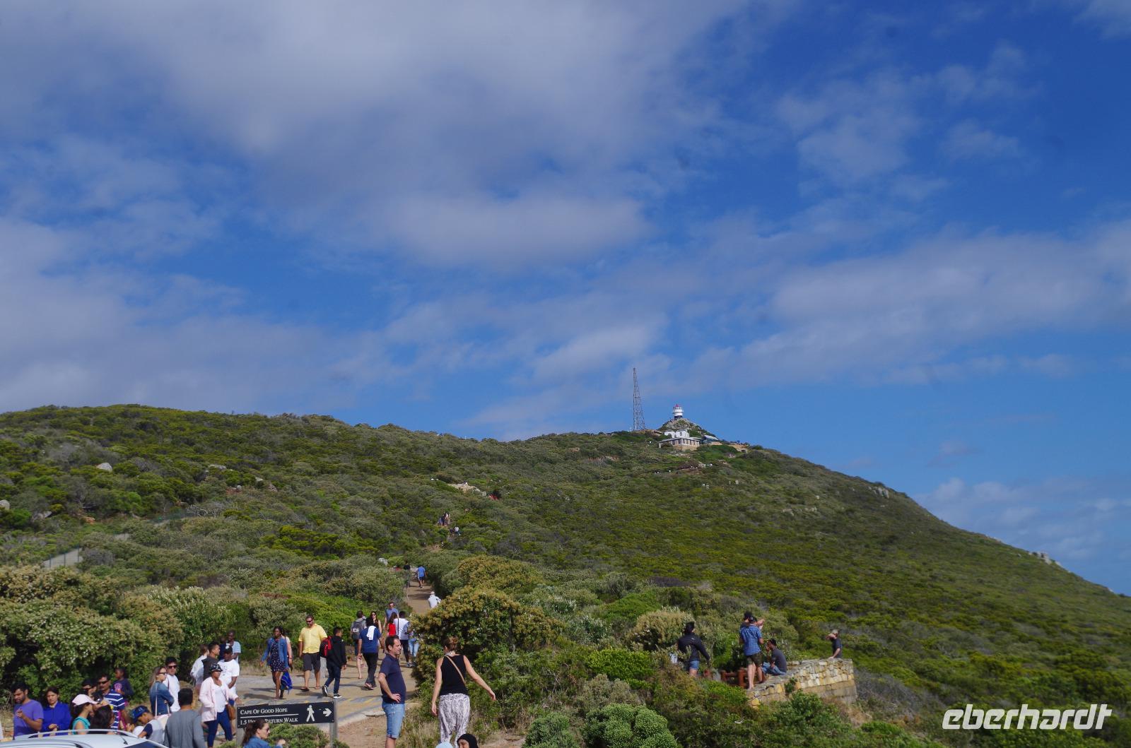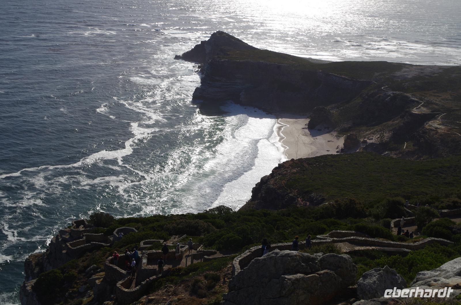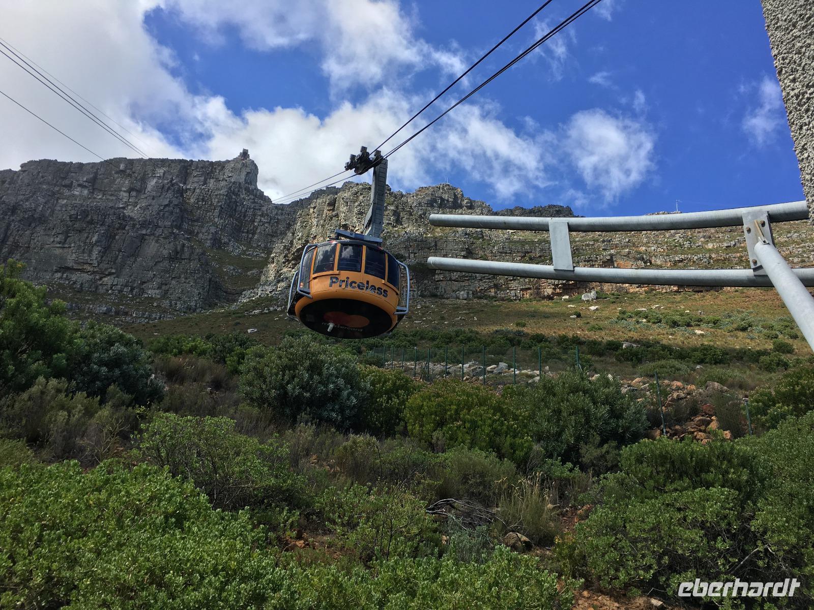 Mit strahlendem Sonnenschein werden wir am ersten Morgen des neuen Jahres geweckt! Unsere Gebete an den Wettergott sind also doch erhört wurden. Da wir heute unsere letzte Möglichkeit, den Tafelberg zu sehen, nutzen möchten, müssen wir früher als geplant losfahren. Demnach haben wir heute nicht - wie im Reiseablauf beschrieben - einen Morgen zum "länger schlafen". Hoffen wir, dass sich das zeitige Aufstehen lohnen wird ;-) Unser Busfahrer Shamiel holt uns um 09.00 Uhr ab. Zuerst besuchen wir den Signal Hill, von wo aus wir einen tollen 360-Grad-Blick über Kapstadt genießen. Dann fahren wir weiter zum rund zehn Fahrminuten entfernten Tafelberg, dessen höchster Punkt mit 1.085 Metern der Maclear's Beacon ist. Das erste Basiscamp am Tafelberg wurde im Jahr 1652 von Jan van Riebeeck für die Firma Dutch East India Company errichtet. Die Table Mountain Seilschwebebahn ist seit 1929 in Betrieb. Bis zu 65 Personen können in einer Gondel transportiert werden. Die Höchstgeschwindigkeit beträgt zehn Meter pro Sekunde. Im Jahr 2011 ist der Tafelberg zu einem der sieben neuen Natur-Weltwundern gewählt worden. Die weiteren sechs neuen Naturwunder sind der Amazonas in Südamerika, die Halong Bay in Vietnam, die Iguazu Wasserfälle in Argentinien und Brasilien, Jeju Island in Südkorea, Komodo in Indonesien sowie der Puerto Princesa Underground River auf den Philippinen. Als wir die Talstation des Tafelbergs erreichen, wird uns schnell bewusst, dass sich das frühe Aufstehen allemal gelohnt hat ;o) Am Eingang erwarten uns heute nur wenige Menschen und das Wetter ist traumhaft! Der Ticketkauf dauert rund zehn Minuten, die Fahrt mit dem Fahrstuhl und die Wartezeit an der Gondel rund fünfzehn Minuten. Und schon fahren wir hinauf auf den berühmtesten Berg Südafrikas. Zu Tafelberg hinauf führen zum Beispiel auch die verschiedenen Wanderwege Platteklip Gorge, India Venster, Skeleton Gorge, Lions Head oder Twelve Apostles. Ein paar wagemutige Wanderer können wir während der Gondelfahrt erblicken. Wie viel Glück wir eigentlich an diesem Tag haben werden, den Tafelberg hinauf beziehungsweise besser gesagt auch wieder herunterzufahren, werden wir erst am nächsten Tag erfahren. Dazu aber später mehr! Wir genießen einen atemberaubenden Rundumblick über Kapstadt und laufen auf den liebevoll angelegten Wegen "Agama Walk", "Klipspringer Walk" sowie "Dassie Walk" entlang, welche unter anderem nach den hier lebenden niedlichen Klippschlieffer benannt wurden. Bekannt sind diese Tiere auch als "Rock hyrax" oder "Rock dassie" bekannt. Gegen 12.00 Uhr verlassen wir den Tafelberg wieder und fahren über die Hout Bay, die Panoramastraße und dem "Chapman's Peak Drive" entlang zum Fischrestaurant Black Marlin. Unterwegs legen wir kleine Foto-Stopps ein. Im Black Marlin nehmen wir um 13.30 Uhr ein leckeres Neujahrsmittagessen ein. Rund zwei Stunden später fahren wir zum Naturreservat am Kap der Guten Hoffnung, im Englischen "Cape of Good Hope", im Niederländischen "Kaap de Goede Hoop" oder afrikanisch "Kaap die Goeie Hoop". Wie Cape Point liegt auch das Kap der Guten Hoffnung am Südende der Kap-Halbinsel und in südlicher Richtung rund 44 Kilometer entfernt von der Metropole Kapstadt, welche nach ihm benannt worden ist. Zudem ist es der südwestlichste Punkt Afrikas. Zum Nachmittag hat der Straßenverkehr extrem zugenommen. Wir haben stockenden Verkehr rund fünf Kilometer vor der Einfahrt zum Reservat, so dass wir erst 17.00 Uhr an der Zahnradbahn ankommen. Eigentlich hätten wir jetzt nicht mehr viel Zeit zum Entdecken, da das Reservat um 18.00 Uhr bereits schließt. Aber nach Rückfrage unseres netten Reiseleiters und aufgrund des Feiertages ist der Park heute zu unserem Glück länger geöffnet. Die Gäste fahren mit der alten Zahnradbahn noch oben, die Fahrt ist im Reisepreis inkludiert. Oben angekommen laufen wir rund 70 Stufen bis zum Leuchtturm, von wo aus wir einen großartigen Blick auf die Kap-Spitze und die tolle Landschaft haben. Die Konstruktion des ersten vom Ingenieur Alexander Gordon entworfenen Cape Point Leuchtturms hatte 1850 gestartet. Der Leuchtturm ist auf dem höchstem Punkt 238 Meter über dem Meeresspiegel entstanden und rund zehn Jahre später hat er das erste Mal geleuchtet. Der Bau des zweiten Leuchtturms 87 Meter über den Meeresspiegel am Dias Peak erfolgte von 1913 bis 1919. Das Kap ist auch als "Kap der Pioniere", "Kap der Mythen", "Kap des Lichts" oder "Kap der Aufstiege" bekannt. Angeblich gibt es nach 17.00 Uhr nur eine Auffahrt mit der Zahnradbahn, die Rückfahrt ist nicht mehr möglich. Aber durch einen Zufall und aufgrund intensiven Bittens von Herbie dürfen dennoch einige Gäste wieder mit der Bahn nach unten fahren, was aber wirklich nur eine Ausnahme oder eher ein Versehen ist. Zwei Gäste, Herbie und die Reisebegleitung laufen den Weg nach unten. Rund fünfzehn Minuten später sehen wir die anderen Gäste auch schon wieder. Um 18.00 Uhr fahren wir weiter nach Simon's Town. Unterwegs sehen wir noch ein paar Paviane am Straßenrand entlang spazieren. In Simon's Town angekommen besuchen wir die Pinguin Kolonie am Boulders Beach. Eine Vielzahl afrikanischer Pinguine wartet nur darauf, von uns fotografiert zu werden. Später holen wir im Bus die eigentlich bereits am Kap der Guten Hoffnung stattfindende Kap-Taufe nach. Es gibt für jeden Gast einen aus Deutschland mitgebrachten Plastikbecher mit dem touristischen Nationalgetränk, dem Sahnelikör "Amarula". Hmmm, wirklich sehr lecker und die perfekte Einstimmung zum Abend! Gegen 19.00 Uhr fahren wir über Fish Hoek, Kalk Bay und Muizenberg rund eine Stunde zurück zum Hotel in Kapstadt. Nach diesem langen aber wirklich sehr schönen Neujahrstag verabschiedet sich der Großteil der Reisegruppe. Nur wenige Gäste lassen den Tag gemeinsam beim späten Abendessen "a la carte" im Hotelrestaurant ausklingen.