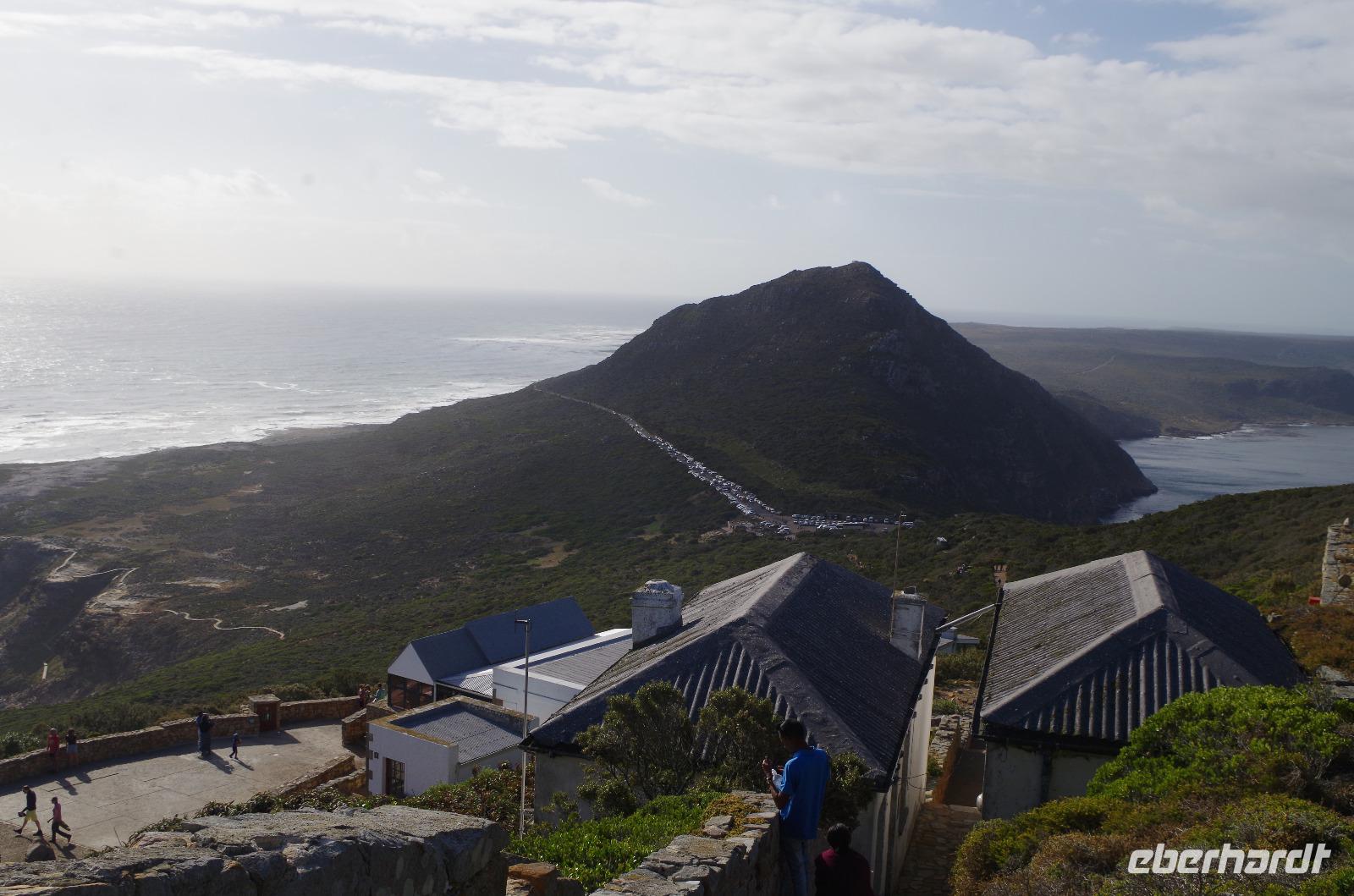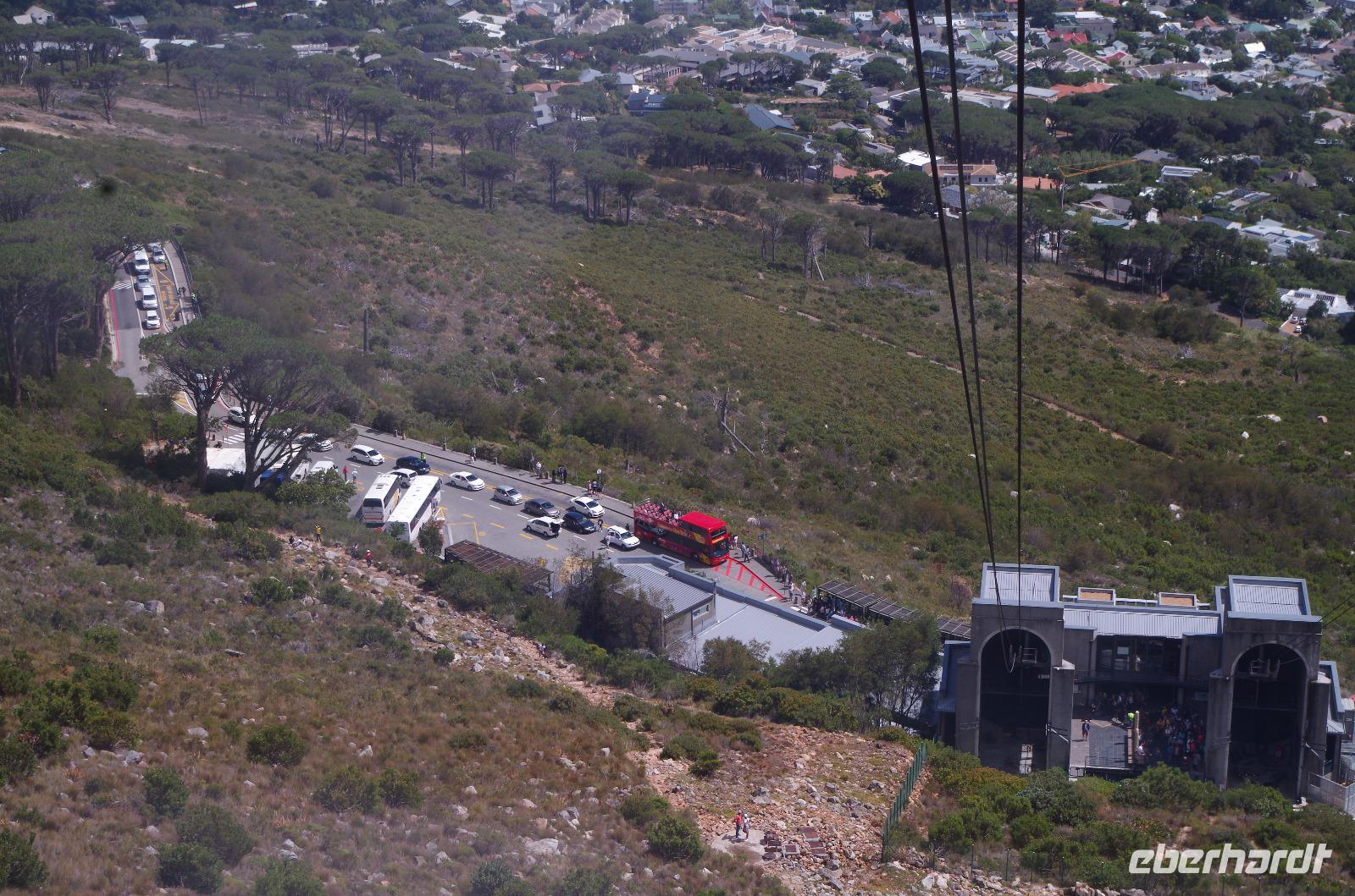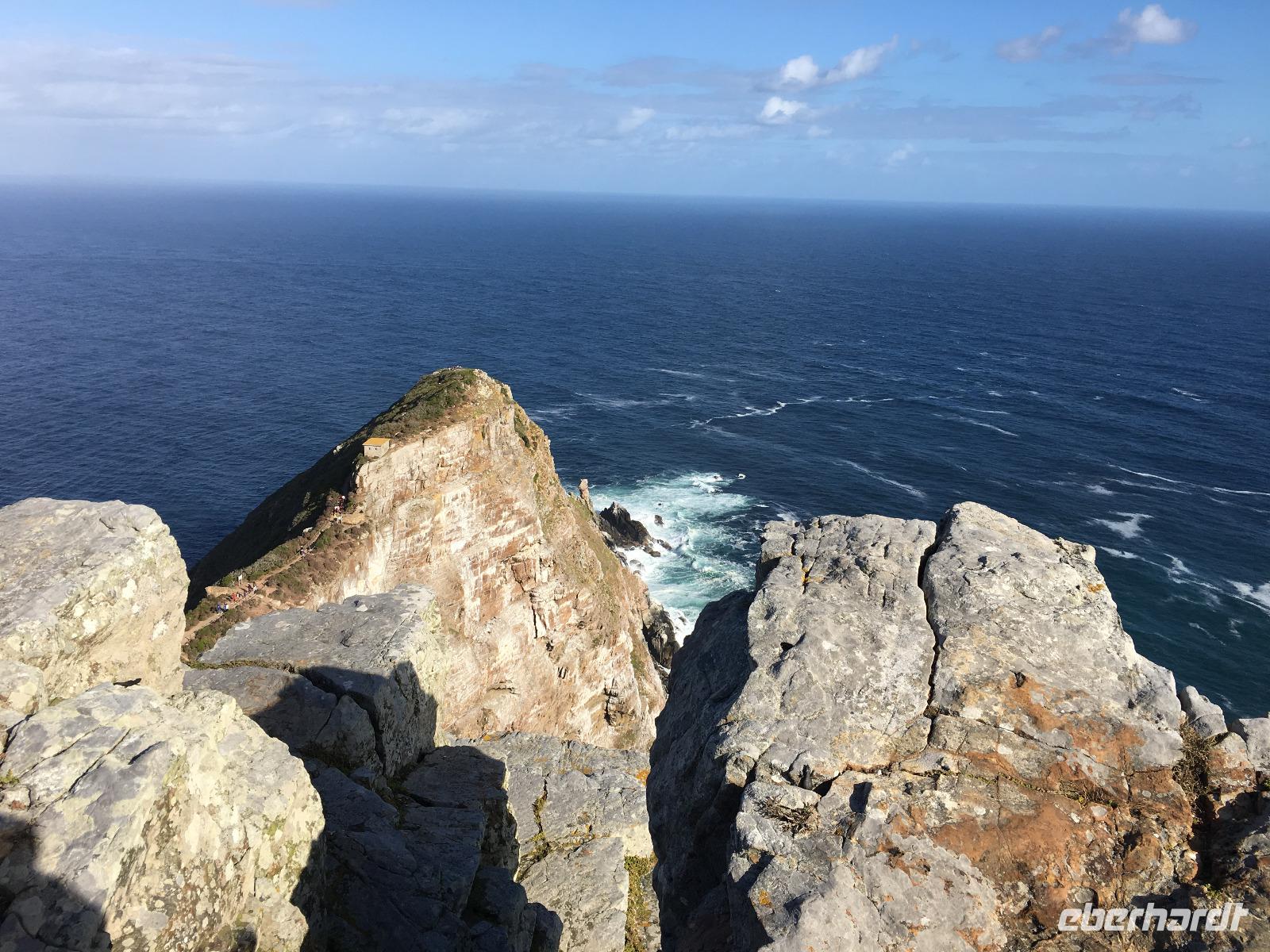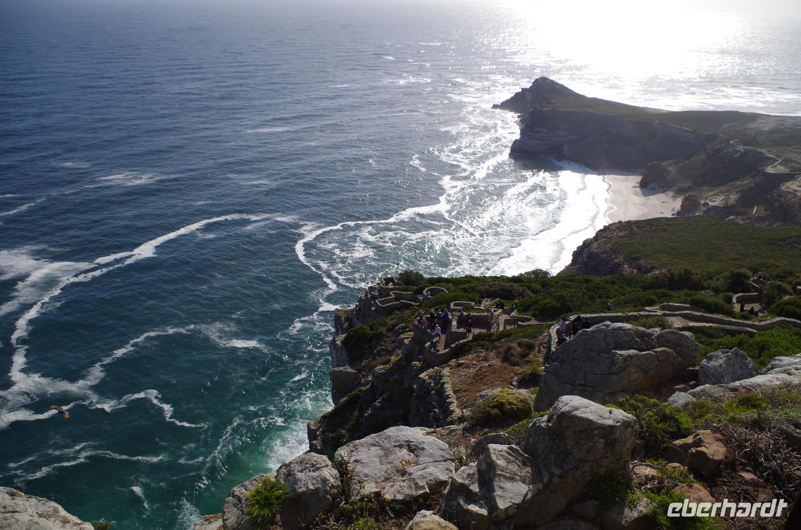 Mit strahlendem Sonnenschein werden wir am ersten Morgen des neuen Jahres geweckt! Unsere Gebete an den Wettergott sind also doch erhört wurden. Da wir heute unsere letzte Möglichkeit, den Tafelberg zu sehen, nutzen möchten, müssen wir früher als geplant losfahren. Demnach haben wir heute nicht - wie im Reiseablauf beschrieben - einen Morgen zum "länger schlafen". Hoffen wir, dass sich das zeitige Aufstehen lohnen wird ;-) Unser Busfahrer Shamiel holt uns um 09.00 Uhr ab. Zuerst besuchen wir den Signal Hill, von wo aus wir einen tollen 360-Grad-Blick über Kapstadt genießen. Dann fahren wir weiter zum rund zehn Fahrminuten entfernten Tafelberg, dessen höchster Punkt mit 1.085 Metern der Maclear's Beacon ist. Das erste Basiscamp am Tafelberg wurde im Jahr 1652 von Jan van Riebeeck für die Firma Dutch East India Company errichtet. Die Table Mountain Seilschwebebahn ist seit 1929 in Betrieb. Bis zu 65 Personen können in einer Gondel transportiert werden. Die Höchstgeschwindigkeit beträgt zehn Meter pro Sekunde. Im Jahr 2011 ist der Tafelberg zu einem der sieben neuen Natur-Weltwundern gewählt worden. Die weiteren sechs neuen Naturwunder sind der Amazonas in Südamerika, die Halong Bay in Vietnam, die Iguazu Wasserfälle in Argentinien und Brasilien, Jeju Island in Südkorea, Komodo in Indonesien sowie der Puerto Princesa Underground River auf den Philippinen. Als wir die Talstation des Tafelbergs erreichen, wird uns schnell bewusst, dass sich das frühe Aufstehen allemal gelohnt hat ;o) Am Eingang erwarten uns heute nur wenige Menschen und das Wetter ist traumhaft! Der Ticketkauf dauert rund zehn Minuten, die Fahrt mit dem Fahrstuhl und die Wartezeit an der Gondel rund fünfzehn Minuten. Und schon fahren wir hinauf auf den berühmtesten Berg Südafrikas. Zu Tafelberg hinauf führen zum Beispiel auch die verschiedenen Wanderwege Platteklip Gorge, India Venster, Skeleton Gorge, Lions Head oder Twelve Apostles. Ein paar wagemutige Wanderer können wir während der Gondelfahrt erblicken. Wie viel Glück wir eigentlich an diesem Tag haben werden, den Tafelberg hinauf beziehungsweise besser gesagt auch wieder herunterzufahren, werden wir erst am nächsten Tag erfahren. Dazu aber später mehr! Wir genießen einen atemberaubenden Rundumblick über Kapstadt und laufen auf den liebevoll angelegten Wegen "Agama Walk", "Klipspringer Walk" sowie "Dassie Walk" entlang, welche unter anderem nach den hier lebenden niedlichen Klippschlieffer benannt wurden. Bekannt sind diese Tiere auch als "Rock hyrax" oder "Rock dassie" bekannt. Gegen 12.00 Uhr verlassen wir den Tafelberg wieder und fahren über die Hout Bay, die Panoramastraße und dem "Chapman's Peak Drive" entlang zum Fischrestaurant Black Marlin. Unterwegs legen wir kleine Foto-Stopps ein. Im Black Marlin nehmen wir um 13.30 Uhr ein leckeres Neujahrsmittagessen ein. Rund zwei Stunden später fahren wir zum Naturreservat am Kap der Guten Hoffnung, im Englischen "Cape of Good Hope", im Niederländischen "Kaap de Goede Hoop" oder afrikanisch "Kaap die Goeie Hoop". Wie Cape Point liegt auch das Kap der Guten Hoffnung am Südende der Kap-Halbinsel und in südlicher Richtung rund 44 Kilometer entfernt von der Metropole Kapstadt, welche nach ihm benannt worden ist. Zudem ist es der südwestlichste Punkt Afrikas. Zum Nachmittag hat der Straßenverkehr extrem zugenommen. Wir haben stockenden Verkehr rund fünf Kilometer vor der Einfahrt zum Reservat, so dass wir erst 17.00 Uhr an der Zahnradbahn ankommen. Eigentlich hätten wir jetzt nicht mehr viel Zeit zum Entdecken, da das Reservat um 18.00 Uhr bereits schließt. Aber nach Rückfrage unseres netten Reiseleiters und aufgrund des Feiertages ist der Park heute zu unserem Glück länger geöffnet. Die Gäste fahren mit der alten Zahnradbahn noch oben, die Fahrt ist im Reisepreis inkludiert. Oben angekommen laufen wir rund 70 Stufen bis zum Leuchtturm, von wo aus wir einen großartigen Blick auf die Kap-Spitze und die tolle Landschaft haben. Die Konstruktion des ersten vom Ingenieur Alexander Gordon entworfenen Cape Point Leuchtturms hatte 1850 gestartet. Der Leuchtturm ist auf dem höchstem Punkt 238 Meter über dem Meeresspiegel entstanden und rund zehn Jahre später hat er das erste Mal geleuchtet. Der Bau des zweiten Leuchtturms 87 Meter über den Meeresspiegel am Dias Peak erfolgte von 1913 bis 1919. Das Kap ist auch als "Kap der Pioniere", "Kap der Mythen", "Kap des Lichts" oder "Kap der Aufstiege" bekannt. Angeblich gibt es nach 17.00 Uhr nur eine Auffahrt mit der Zahnradbahn, die Rückfahrt ist nicht mehr möglich. Aber durch einen Zufall und aufgrund intensiven Bittens von Herbie dürfen dennoch einige Gäste wieder mit der Bahn nach unten fahren, was aber wirklich nur eine Ausnahme oder eher ein Versehen ist. Zwei Gäste, Herbie und die Reisebegleitung laufen den Weg nach unten. Rund fünfzehn Minuten später sehen wir die anderen Gäste auch schon wieder. Um 18.00 Uhr fahren wir weiter nach Simon's Town. Unterwegs sehen wir noch ein paar Paviane am Straßenrand entlang spazieren. In Simon's Town angekommen besuchen wir die Pinguin Kolonie am Boulders Beach. Eine Vielzahl afrikanischer Pinguine wartet nur darauf, von uns fotografiert zu werden. Später holen wir im Bus die eigentlich bereits am Kap der Guten Hoffnung stattfindende Kap-Taufe nach. Es gibt für jeden Gast einen aus Deutschland mitgebrachten Plastikbecher mit dem touristischen Nationalgetränk, dem Sahnelikör "Amarula". Hmmm, wirklich sehr lecker und die perfekte Einstimmung zum Abend! Gegen 19.00 Uhr fahren wir über Fish Hoek, Kalk Bay und Muizenberg rund eine Stunde zurück zum Hotel in Kapstadt. Nach diesem langen aber wirklich sehr schönen Neujahrstag verabschiedet sich der Großteil der Reisegruppe. Nur wenige Gäste lassen den Tag gemeinsam beim späten Abendessen "a la carte" im Hotelrestaurant ausklingen.