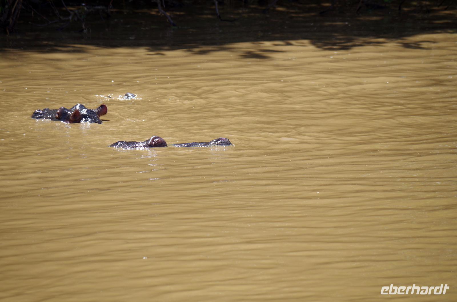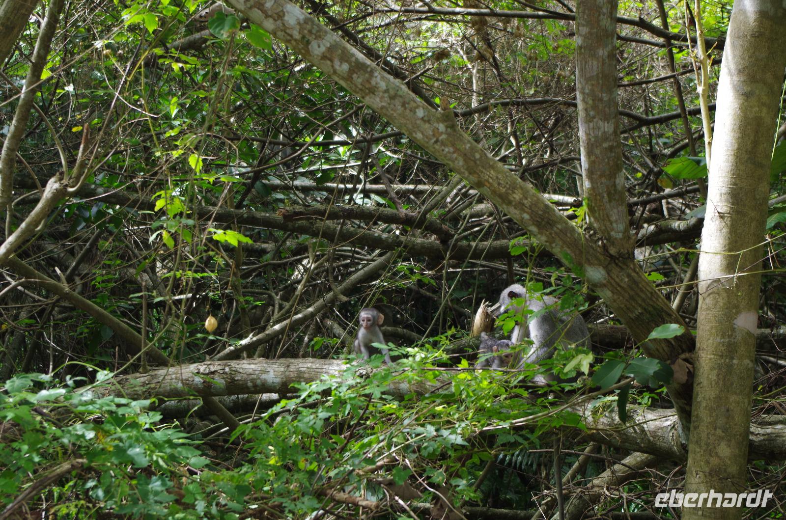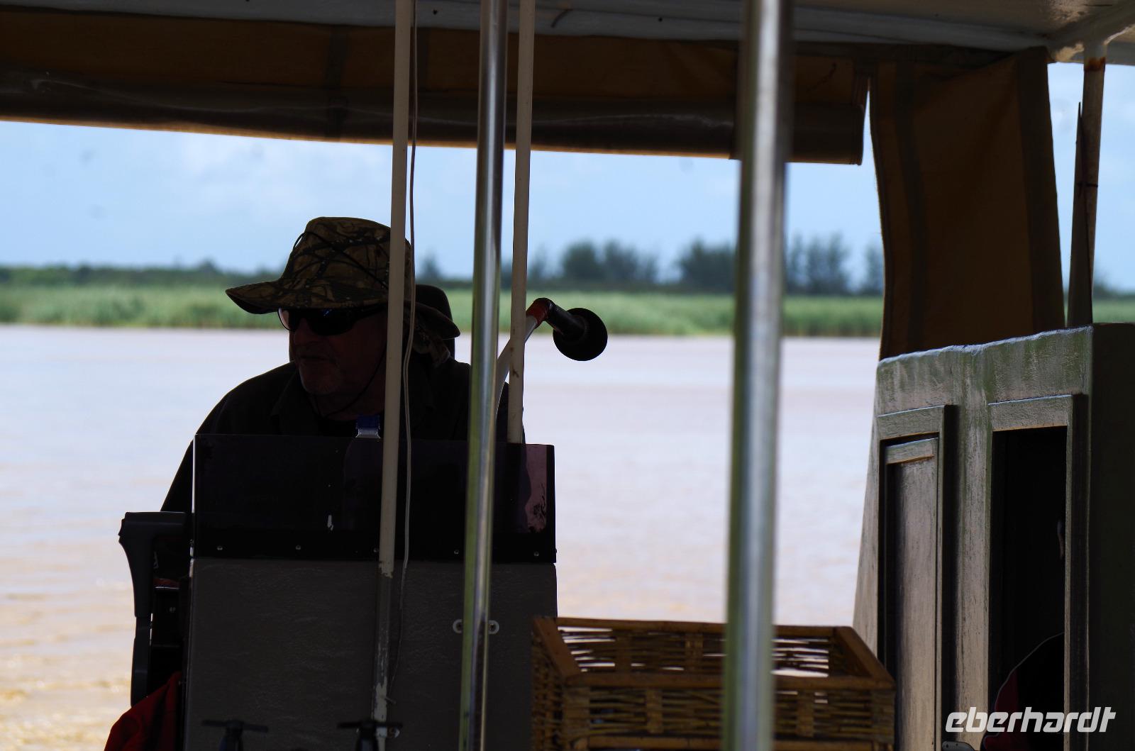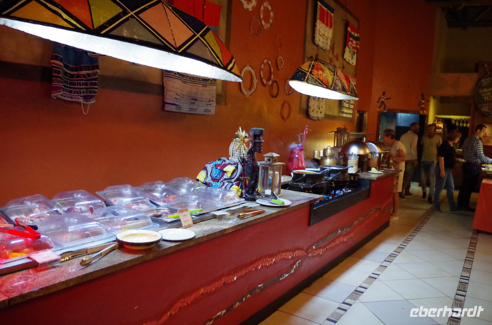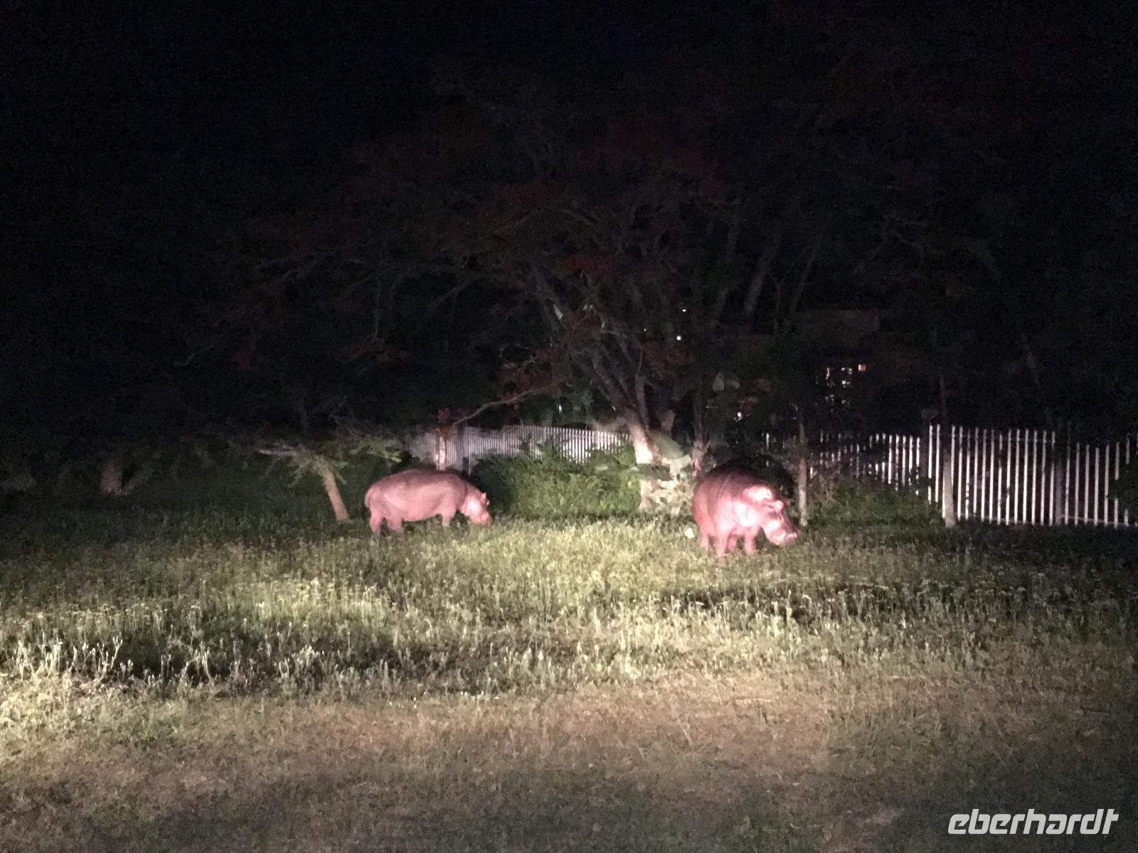 Nach einem leckeren Frühstück verstauen wir unsere Badesachen im Bus und laufen gemeinsam rund zehn bis fünfzehn Gehminuten an die Bootsanlegerstelle. Auf unserem Weg sehen wir die Affen mit Namen Grünmeerkatze "Vervet monkey" sowie Zebramanguste "Banded mongoose". Um 10.00 Uhr soll unsere Fahrt auf dem Lake St. Lucia beginnen. Da wir die einzigen Gäste sind, welche um diese Zeit mit dem Boot "FANNAS" fahren werden, erleben wir sozusagen einen Eberhardt-Exklusiv-Ausflug :-) Die Fahrt dauert rund eineinhalb Stunden und wir sehen ganz viele Nilpferde (Hippopotamus) "Hippos", Krokodile, Blauwangenspint "Blue-cheeked bee-eater", Gelbweber "Yellow weaver" und auch einen Schreiseeadler "African fish-eagle". Gegen 11.30 Uhr sind wir wieder zurück und laufen gemeinsam zum Supermarkt, um uns einen Mittagssnack zu besorgen. Unterwegs probieren Gäste an einem Stand frische "Ananas am Stiel", süß und sehr lecker! Um 12.15 Uhr fahren wir mit dem Bus durch den Nationalpark iSimangaliso Wetland Park zum Naturschutzgebiet Cape Vidal, welches wir rund eineinhalb Stunden später erreichen. Unterwegs sehen wir weitere Tiere wie Warzenschweine, Zebras, Affen oder Knus. Einen Foto-Stopp legen wir am Mfabeni Lookout ein. Sonet berichtet uns, dass der iSimangaliso Wetland Park im nördlichen KwaZulu-Natal liegt und nur über St. Lucia erreichbar ist. Der rund 40 Kilometer lange Lake St Lucia ist umgeben von Gras- und Buschland sowie Mangrovensümpfen. Angekommen am Cape Vidal heißt es auch schon relaxen am Strand oder schwimmen im Meer. Wir gönnen uns ein entspanntes Picknick am Strand, wobei wir von neugierigen Affen beobachtet werden. Ein Äffchen wagt es sogar, aus dem Rucksack eines Reisegasts etwas zu stibitzen, wir können ihn gerade noch davon abhalten! Einige Gäste schwimmen im Meer, was nur im Bereich der roten Fahnen erlaubt ist. Ein Rettungsschwimmerteam für den Notfall ist ebenfalls anwesend. Wir spazieren am Strand entlang, wobei wir unter anderem mit den Füßen und Beinen im Wasser laufen. Der Sand bei Temperaturen über 30 Grad ist doch schon sehr heiß. Am Nachmittag fahren wir wieder zur Lodge zurück. Hier verläuft der restliche Nachmittag ähnlich wie gestern: Wir schwimmen im Hotelpool, relaxen auf dem Balkon oder der Terrasse. Heute haben wir bereits Halbzeit oder auch "Bergfest" unserer wundervollen Traumreise! Bekanntlich vergeht die Zeit danach viel schneller, auch wenn noch so viele atemberaubende Erlebnisse auf uns warten, spannend wird es sicher bleiben! Um 18.45 Uhr treffen wir uns an der Hotelbar. Wir werden an dieser Bar nicht bedient, da dies eine "Bar des Vertrauens" ist. Wir nehmen die Getränke aus dem Kühlschrank - von Softdrinks, Säften, Wein und Bier ist alles vorhanden - und tragen uns mit Name, Zimmernummer und Anzahl in ein Buch auf dem Tresen ein. Die Bezahlung erfolgt erst beim Check-Out. Wirklich ein schönes Konzept, an welches wir uns selbstverständlich ordnungsgemäß halten :-) Wir stoßen gemeinsam auf das Bergfest unserer Reise an. Raten Sie mal, mit was wir anstoßen? Richtig geraten ;o) Der leckere Wildfrucht-Sahne-Likör "Amarula" ist es abermals geworden. Folglich erfüllen auch die aus Deutschland mitgebrachten Plastikbecher abermals ihre Daseins-Mitnahme-Berechtigung *grins* Nun noch ein kleiner Exkurs, mit welchen Likör wir denn überhaupt auf eine traumhafte Zeit in Südafrika anstoßen. Es gibt zwei unterschiedliche "Amarula"-Sorten: "Amarula Cream" seit 1989 und "Amarula Gold" seit 2014. Wir trinken den auf der Frucht des Marulabaums basierenden Sahnelikör "Amarula Cream" mit einem Alkoholgehalt von 17 Prozent."Amarula Gold" besitzt einen Alkoholgehalt von 30 Prozent. Nach dem Amarula-Geschmack gefragt würde die Reisebegleitung wohl mit einem leicht fruchtigen Karamell-Geschmack antworten. Der Name "Amarula" ist zugleich auch eine Spirituosen-Marke in Südafrika. Während wir das leckere Getränk genießen, besprechen wir den morgigen Tagesablauf. Wir werden morgen in Südafrika ausreisen und in Swaziland wieder einreisen. Die Reisepässe packen wir somit ins Handgepäck. Zudem bleiben unsere Koffer über Nacht verschlossen im Bus, so dass wir alle notwendigen Sachen für eine Übernachtung im Handgepäck verstauen. Das Abendessen "a la carte" nehmen wir heute im rund fünf Gehminuten von der Lodge entfernten "Ocean Basket Restaurant " ein. Wir gönnen uns leckeres Sushi, Salat oder Fish & Chips. Zum Tagesabschluss setzen wir uns abermals ans Lagerfeuer in der Lodge und lassen den Abend bei Wein und Softdrinks ausklingen.
