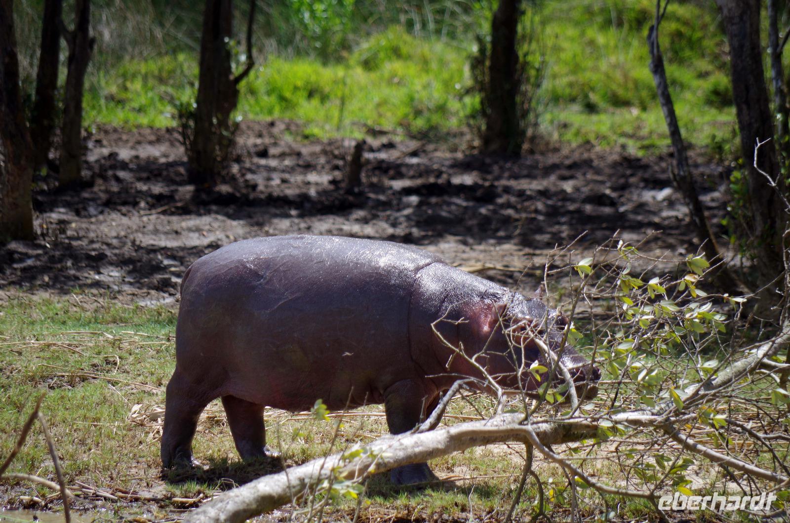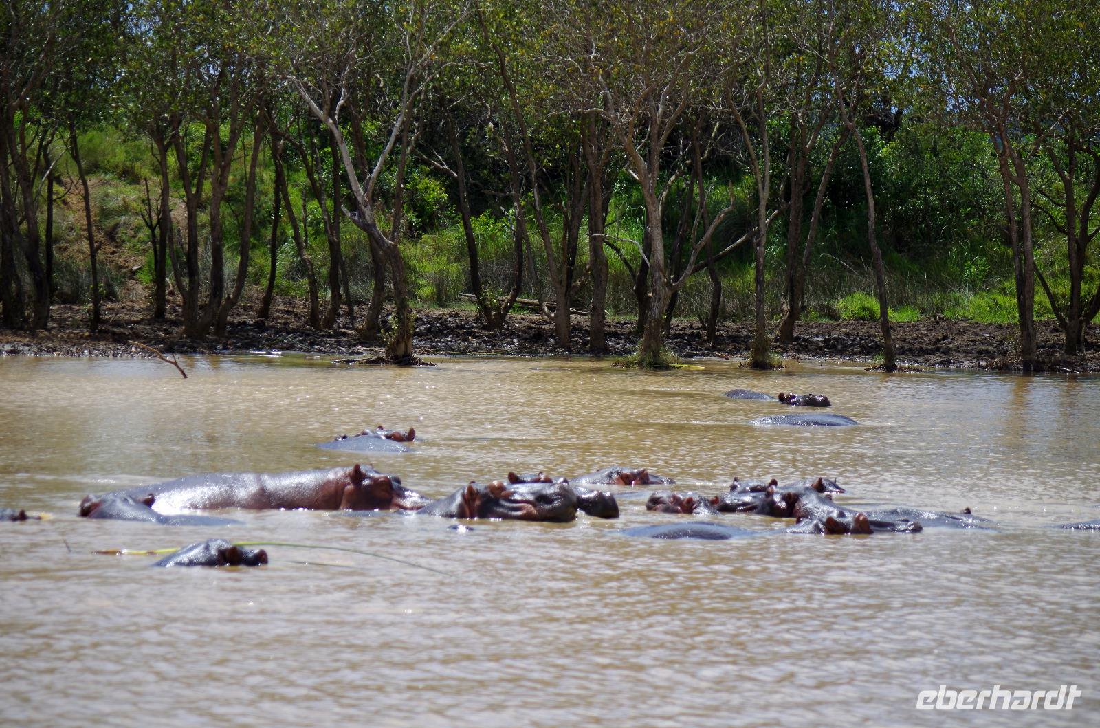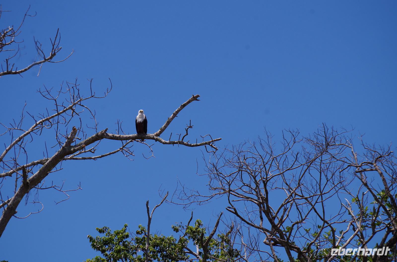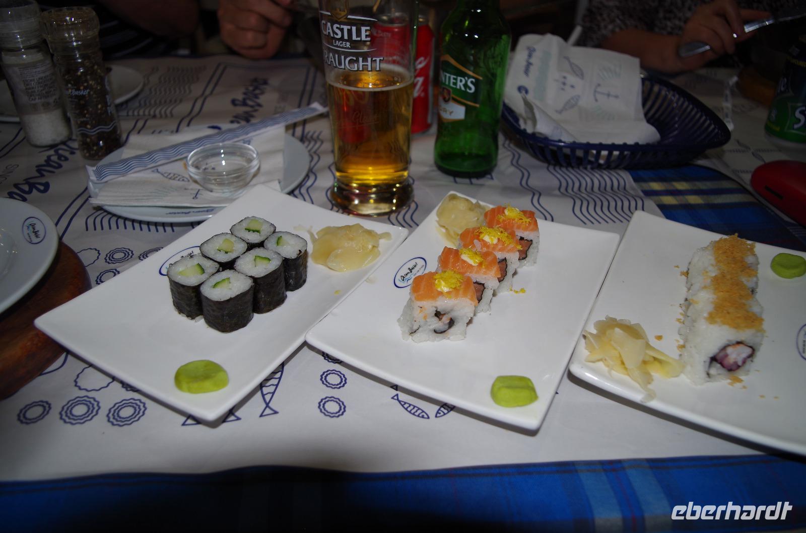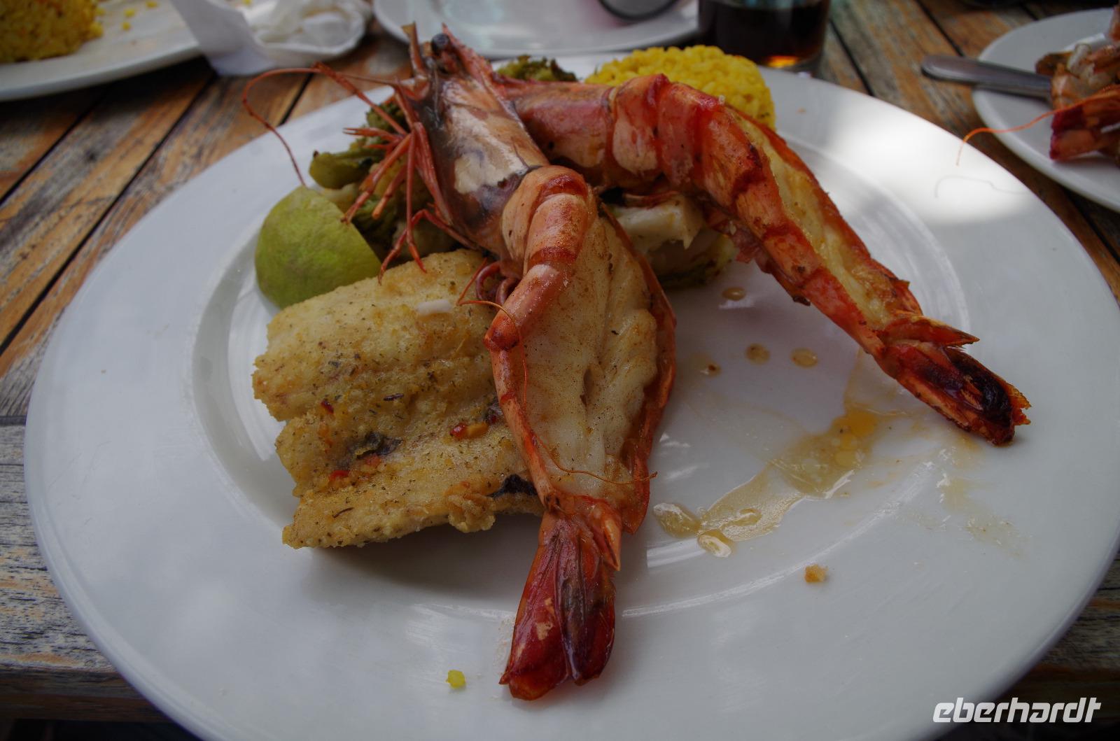 Nach einem leckeren Frühstück verstauen wir unsere Badesachen im Bus und laufen gemeinsam rund zehn bis fünfzehn Gehminuten an die Bootsanlegerstelle. Auf unserem Weg sehen wir die Affen mit Namen Grünmeerkatze "Vervet monkey" sowie Zebramanguste "Banded mongoose". Um 10.00 Uhr soll unsere Fahrt auf dem Lake St. Lucia beginnen. Da wir die einzigen Gäste sind, welche um diese Zeit mit dem Boot "FANNAS" fahren werden, erleben wir sozusagen einen Eberhardt-Exklusiv-Ausflug :-) Die Fahrt dauert rund eineinhalb Stunden und wir sehen ganz viele Nilpferde (Hippopotamus) "Hippos", Krokodile, Blauwangenspint "Blue-cheeked bee-eater", Gelbweber "Yellow weaver" und auch einen Schreiseeadler "African fish-eagle". Gegen 11.30 Uhr sind wir wieder zurück und laufen gemeinsam zum Supermarkt, um uns einen Mittagssnack zu besorgen. Unterwegs probieren Gäste an einem Stand frische "Ananas am Stiel", süß und sehr lecker! Um 12.15 Uhr fahren wir mit dem Bus durch den Nationalpark iSimangaliso Wetland Park zum Naturschutzgebiet Cape Vidal, welches wir rund eineinhalb Stunden später erreichen. Unterwegs sehen wir weitere Tiere wie Warzenschweine, Zebras, Affen oder Knus. Einen Foto-Stopp legen wir am Mfabeni Lookout ein. Sonet berichtet uns, dass der iSimangaliso Wetland Park im nördlichen KwaZulu-Natal liegt und nur über St. Lucia erreichbar ist. Der rund 40 Kilometer lange Lake St Lucia ist umgeben von Gras- und Buschland sowie Mangrovensümpfen. Angekommen am Cape Vidal heißt es auch schon relaxen am Strand oder schwimmen im Meer. Wir gönnen uns ein entspanntes Picknick am Strand, wobei wir von neugierigen Affen beobachtet werden. Ein Äffchen wagt es sogar, aus dem Rucksack eines Reisegasts etwas zu stibitzen, wir können ihn gerade noch davon abhalten! Einige Gäste schwimmen im Meer, was nur im Bereich der roten Fahnen erlaubt ist. Ein Rettungsschwimmerteam für den Notfall ist ebenfalls anwesend. Wir spazieren am Strand entlang, wobei wir unter anderem mit den Füßen und Beinen im Wasser laufen. Der Sand bei Temperaturen über 30 Grad ist doch schon sehr heiß. Am Nachmittag fahren wir wieder zur Lodge zurück. Hier verläuft der restliche Nachmittag ähnlich wie gestern: Wir schwimmen im Hotelpool, relaxen auf dem Balkon oder der Terrasse. Heute haben wir bereits Halbzeit oder auch "Bergfest" unserer wundervollen Traumreise! Bekanntlich vergeht die Zeit danach viel schneller, auch wenn noch so viele atemberaubende Erlebnisse auf uns warten, spannend wird es sicher bleiben! Um 18.45 Uhr treffen wir uns an der Hotelbar. Wir werden an dieser Bar nicht bedient, da dies eine "Bar des Vertrauens" ist. Wir nehmen die Getränke aus dem Kühlschrank - von Softdrinks, Säften, Wein und Bier ist alles vorhanden - und tragen uns mit Name, Zimmernummer und Anzahl in ein Buch auf dem Tresen ein. Die Bezahlung erfolgt erst beim Check-Out. Wirklich ein schönes Konzept, an welches wir uns selbstverständlich ordnungsgemäß halten :-) Wir stoßen gemeinsam auf das Bergfest unserer Reise an. Raten Sie mal, mit was wir anstoßen? Richtig geraten ;o) Der leckere Wildfrucht-Sahne-Likör "Amarula" ist es abermals geworden. Folglich erfüllen auch die aus Deutschland mitgebrachten Plastikbecher abermals ihre Daseins-Mitnahme-Berechtigung *grins* Nun noch ein kleiner Exkurs, mit welchen Likör wir denn überhaupt auf eine traumhafte Zeit in Südafrika anstoßen. Es gibt zwei unterschiedliche "Amarula"-Sorten: "Amarula Cream" seit 1989 und "Amarula Gold" seit 2014. Wir trinken den auf der Frucht des Marulabaums basierenden Sahnelikör "Amarula Cream" mit einem Alkoholgehalt von 17 Prozent."Amarula Gold" besitzt einen Alkoholgehalt von 30 Prozent. Nach dem Amarula-Geschmack gefragt würde die Reisebegleitung wohl mit einem leicht fruchtigen Karamell-Geschmack antworten. Der Name "Amarula" ist zugleich auch eine Spirituosen-Marke in Südafrika. Während wir das leckere Getränk genießen, besprechen wir den morgigen Tagesablauf. Wir werden morgen in Südafrika ausreisen und in Swaziland wieder einreisen. Die Reisepässe packen wir somit ins Handgepäck. Zudem bleiben unsere Koffer über Nacht verschlossen im Bus, so dass wir alle notwendigen Sachen für eine Übernachtung im Handgepäck verstauen. Das Abendessen "a la carte" nehmen wir heute im rund fünf Gehminuten von der Lodge entfernten "Ocean Basket Restaurant " ein. Wir gönnen uns leckeres Sushi, Salat oder Fish & Chips. Zum Tagesabschluss setzen wir uns abermals ans Lagerfeuer in der Lodge und lassen den Abend bei Wein und Softdrinks ausklingen.