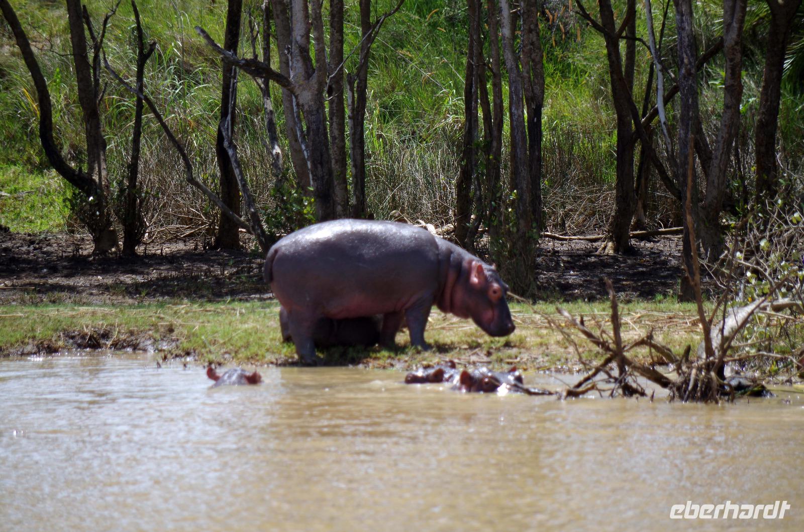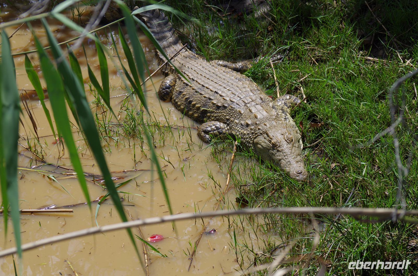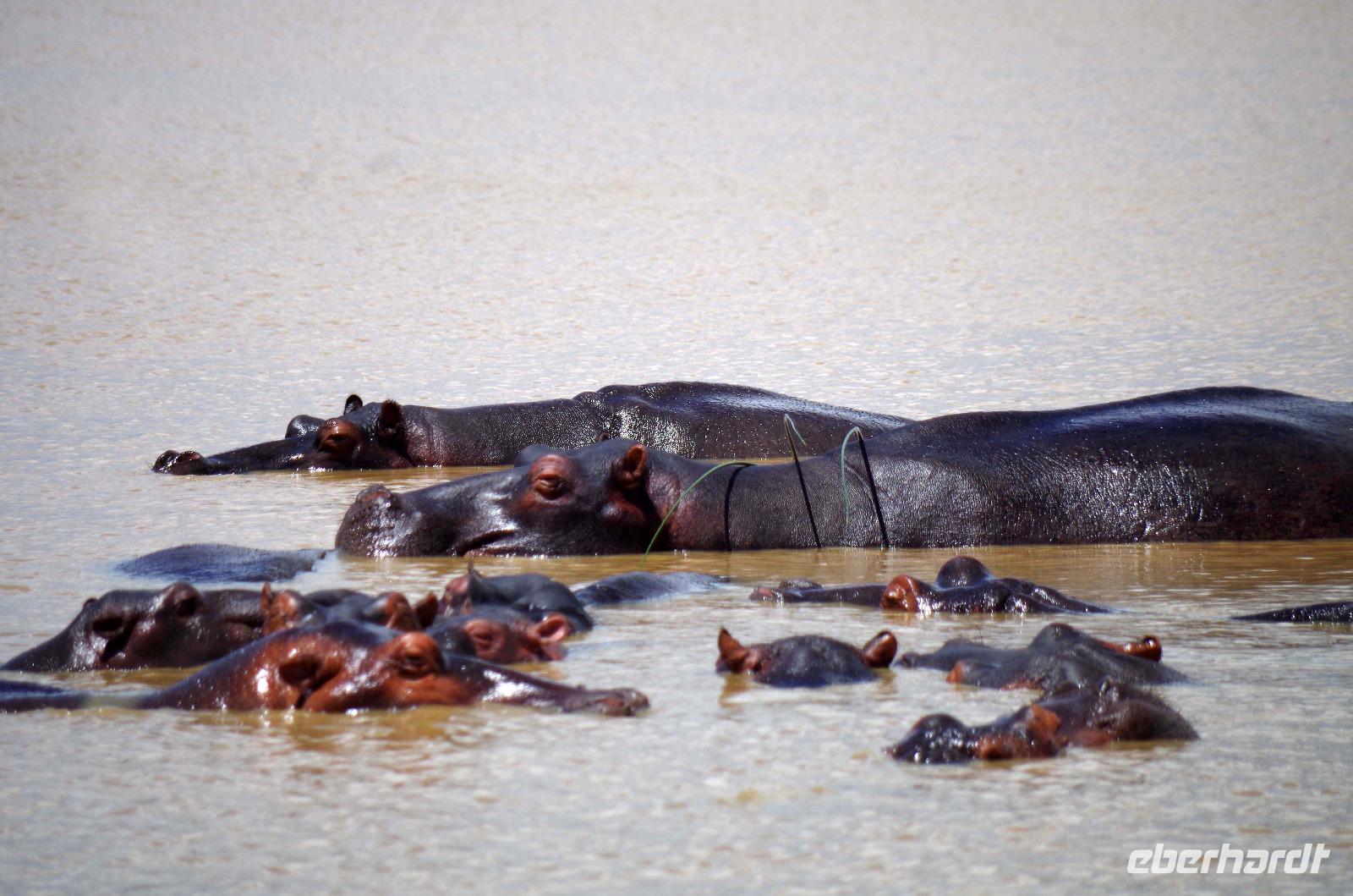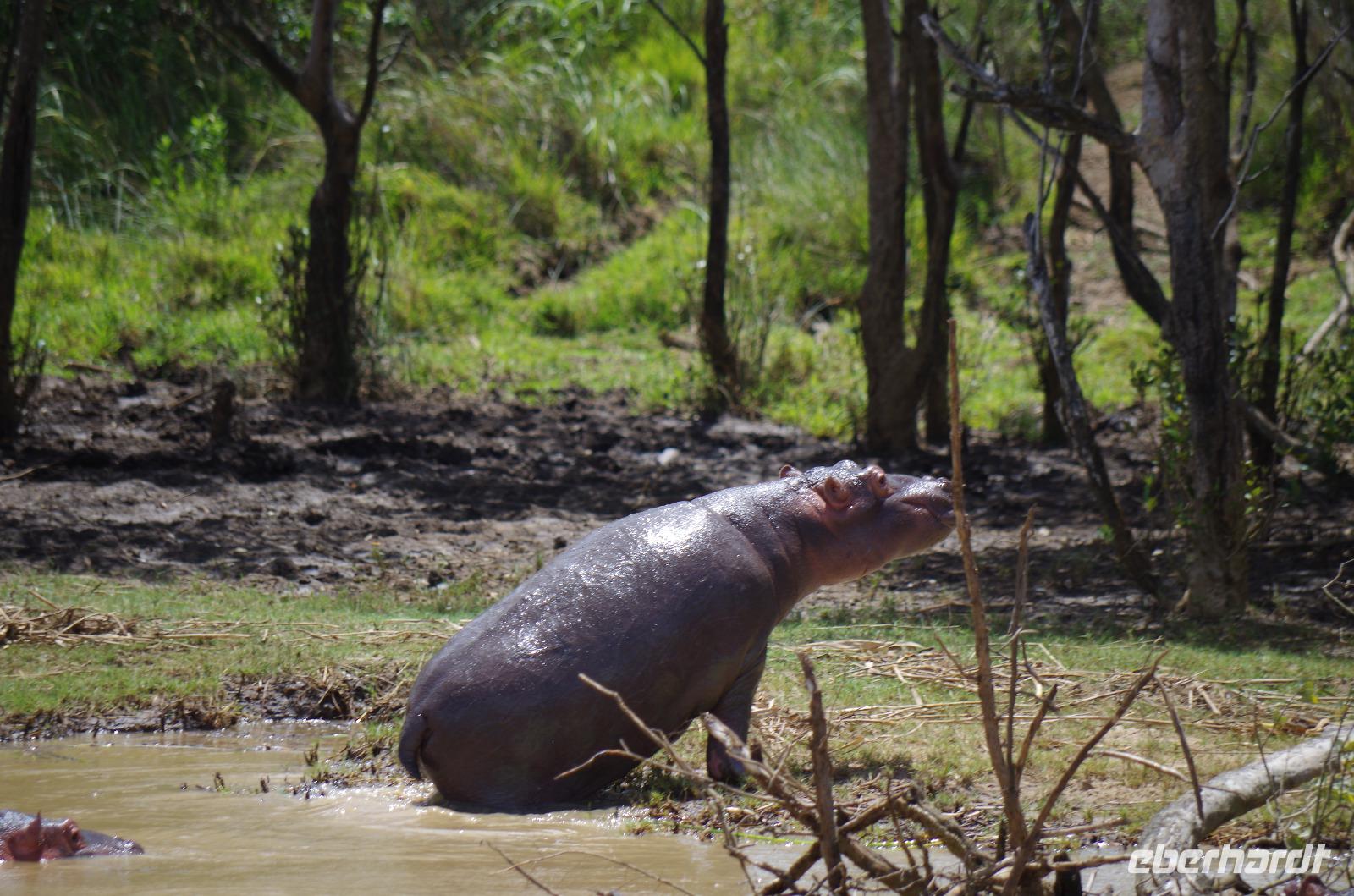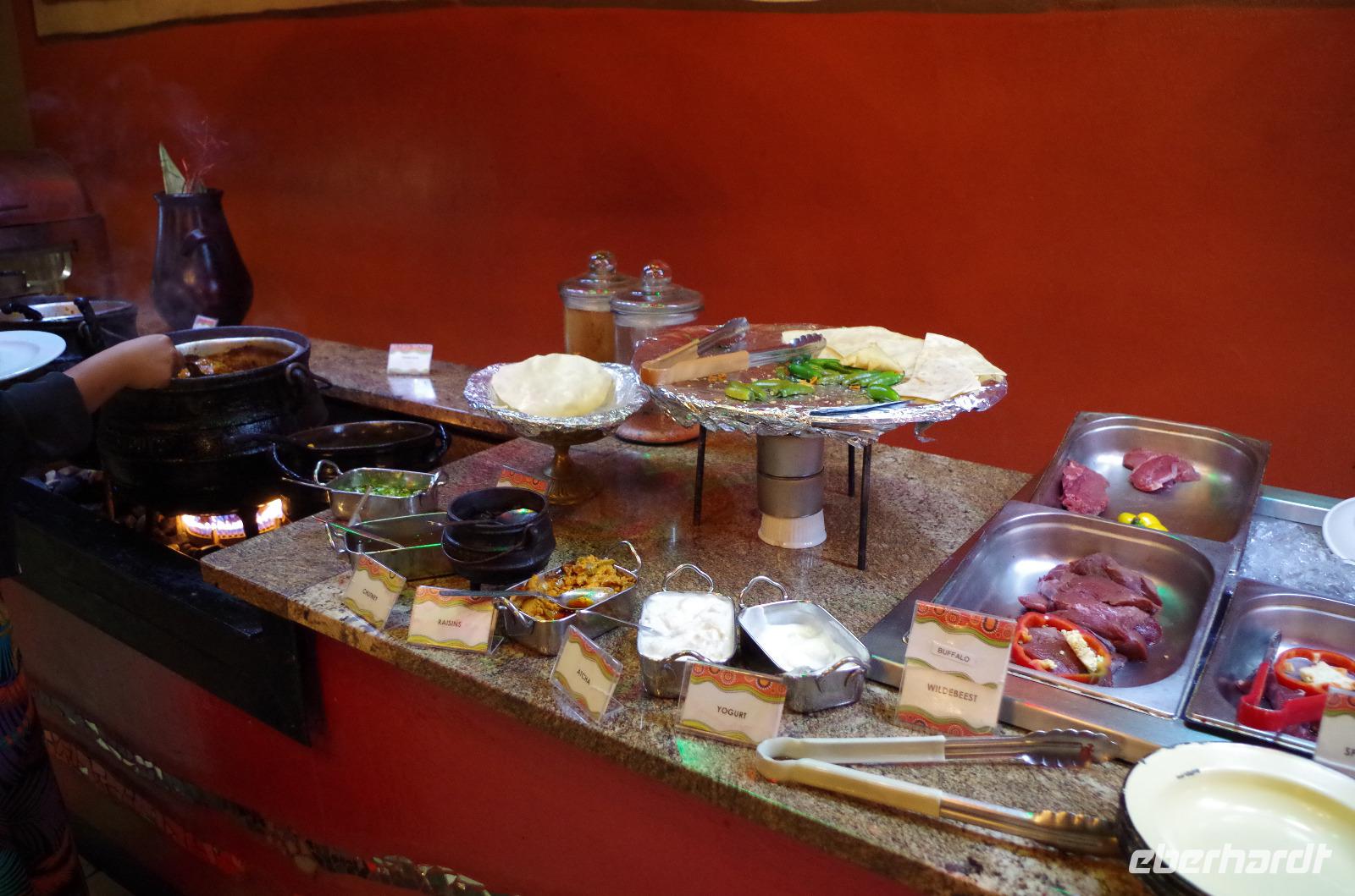 Nach einem leckeren Frühstück verstauen wir unsere Badesachen im Bus und laufen gemeinsam rund zehn bis fünfzehn Gehminuten an die Bootsanlegerstelle. Auf unserem Weg sehen wir die Affen mit Namen Grünmeerkatze "Vervet monkey" sowie Zebramanguste "Banded mongoose". Um 10.00 Uhr soll unsere Fahrt auf dem Lake St. Lucia beginnen. Da wir die einzigen Gäste sind, welche um diese Zeit mit dem Boot "FANNAS" fahren werden, erleben wir sozusagen einen Eberhardt-Exklusiv-Ausflug :-) Die Fahrt dauert rund eineinhalb Stunden und wir sehen ganz viele Nilpferde (Hippopotamus) "Hippos", Krokodile, Blauwangenspint "Blue-cheeked bee-eater", Gelbweber "Yellow weaver" und auch einen Schreiseeadler "African fish-eagle". Gegen 11.30 Uhr sind wir wieder zurück und laufen gemeinsam zum Supermarkt, um uns einen Mittagssnack zu besorgen. Unterwegs probieren Gäste an einem Stand frische "Ananas am Stiel", süß und sehr lecker! Um 12.15 Uhr fahren wir mit dem Bus durch den Nationalpark iSimangaliso Wetland Park zum Naturschutzgebiet Cape Vidal, welches wir rund eineinhalb Stunden später erreichen. Unterwegs sehen wir weitere Tiere wie Warzenschweine, Zebras, Affen oder Knus. Einen Foto-Stopp legen wir am Mfabeni Lookout ein. Sonet berichtet uns, dass der iSimangaliso Wetland Park im nördlichen KwaZulu-Natal liegt und nur über St. Lucia erreichbar ist. Der rund 40 Kilometer lange Lake St Lucia ist umgeben von Gras- und Buschland sowie Mangrovensümpfen. Angekommen am Cape Vidal heißt es auch schon relaxen am Strand oder schwimmen im Meer. Wir gönnen uns ein entspanntes Picknick am Strand, wobei wir von neugierigen Affen beobachtet werden. Ein Äffchen wagt es sogar, aus dem Rucksack eines Reisegasts etwas zu stibitzen, wir können ihn gerade noch davon abhalten! Einige Gäste schwimmen im Meer, was nur im Bereich der roten Fahnen erlaubt ist. Ein Rettungsschwimmerteam für den Notfall ist ebenfalls anwesend. Wir spazieren am Strand entlang, wobei wir unter anderem mit den Füßen und Beinen im Wasser laufen. Der Sand bei Temperaturen über 30 Grad ist doch schon sehr heiß. Am Nachmittag fahren wir wieder zur Lodge zurück. Hier verläuft der restliche Nachmittag ähnlich wie gestern: Wir schwimmen im Hotelpool, relaxen auf dem Balkon oder der Terrasse. Heute haben wir bereits Halbzeit oder auch "Bergfest" unserer wundervollen Traumreise! Bekanntlich vergeht die Zeit danach viel schneller, auch wenn noch so viele atemberaubende Erlebnisse auf uns warten, spannend wird es sicher bleiben! Um 18.45 Uhr treffen wir uns an der Hotelbar. Wir werden an dieser Bar nicht bedient, da dies eine "Bar des Vertrauens" ist. Wir nehmen die Getränke aus dem Kühlschrank - von Softdrinks, Säften, Wein und Bier ist alles vorhanden - und tragen uns mit Name, Zimmernummer und Anzahl in ein Buch auf dem Tresen ein. Die Bezahlung erfolgt erst beim Check-Out. Wirklich ein schönes Konzept, an welches wir uns selbstverständlich ordnungsgemäß halten :-) Wir stoßen gemeinsam auf das Bergfest unserer Reise an. Raten Sie mal, mit was wir anstoßen? Richtig geraten ;o) Der leckere Wildfrucht-Sahne-Likör "Amarula" ist es abermals geworden. Folglich erfüllen auch die aus Deutschland mitgebrachten Plastikbecher abermals ihre Daseins-Mitnahme-Berechtigung *grins* Nun noch ein kleiner Exkurs, mit welchen Likör wir denn überhaupt auf eine traumhafte Zeit in Südafrika anstoßen. Es gibt zwei unterschiedliche "Amarula"-Sorten: "Amarula Cream" seit 1989 und "Amarula Gold" seit 2014. Wir trinken den auf der Frucht des Marulabaums basierenden Sahnelikör "Amarula Cream" mit einem Alkoholgehalt von 17 Prozent."Amarula Gold" besitzt einen Alkoholgehalt von 30 Prozent. Nach dem Amarula-Geschmack gefragt würde die Reisebegleitung wohl mit einem leicht fruchtigen Karamell-Geschmack antworten. Der Name "Amarula" ist zugleich auch eine Spirituosen-Marke in Südafrika. Während wir das leckere Getränk genießen, besprechen wir den morgigen Tagesablauf. Wir werden morgen in Südafrika ausreisen und in Swaziland wieder einreisen. Die Reisepässe packen wir somit ins Handgepäck. Zudem bleiben unsere Koffer über Nacht verschlossen im Bus, so dass wir alle notwendigen Sachen für eine Übernachtung im Handgepäck verstauen. Das Abendessen "a la carte" nehmen wir heute im rund fünf Gehminuten von der Lodge entfernten "Ocean Basket Restaurant " ein. Wir gönnen uns leckeres Sushi, Salat oder Fish & Chips. Zum Tagesabschluss setzen wir uns abermals ans Lagerfeuer in der Lodge und lassen den Abend bei Wein und Softdrinks ausklingen.