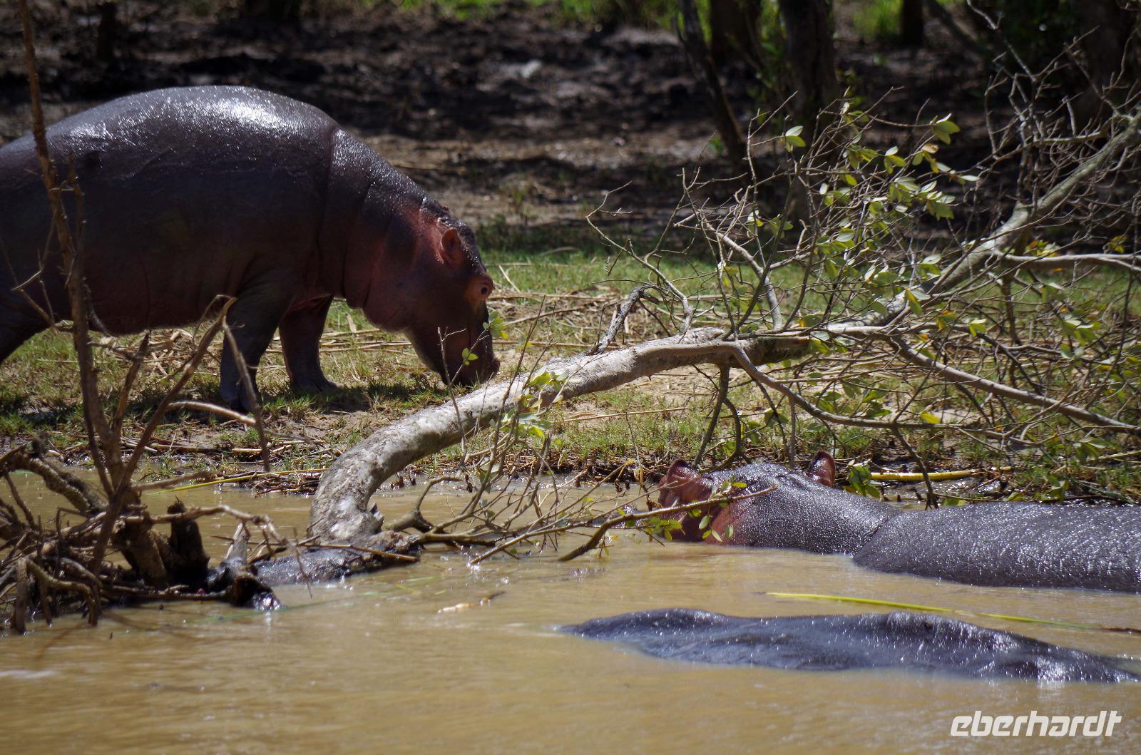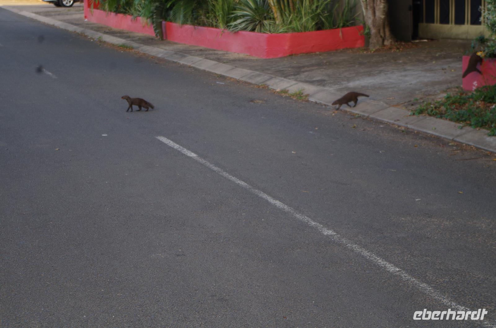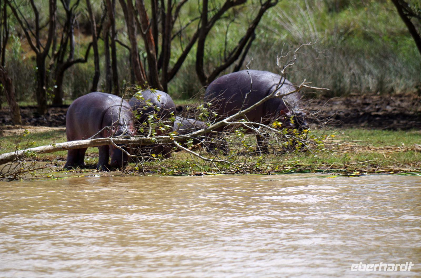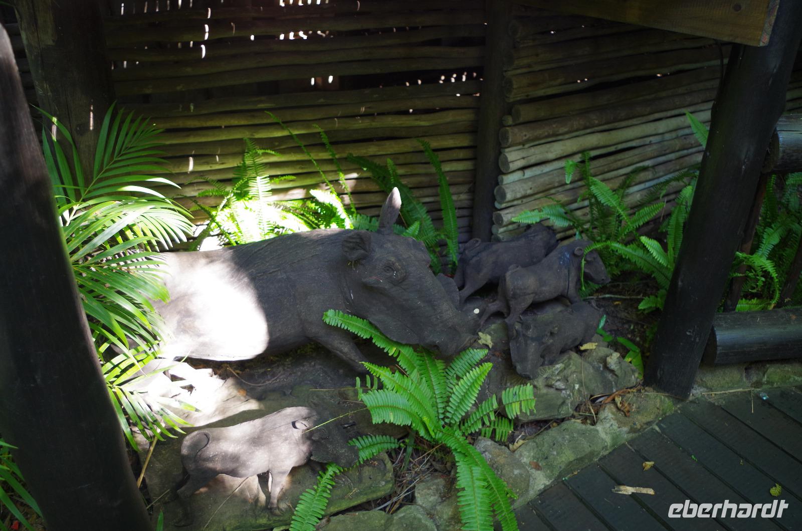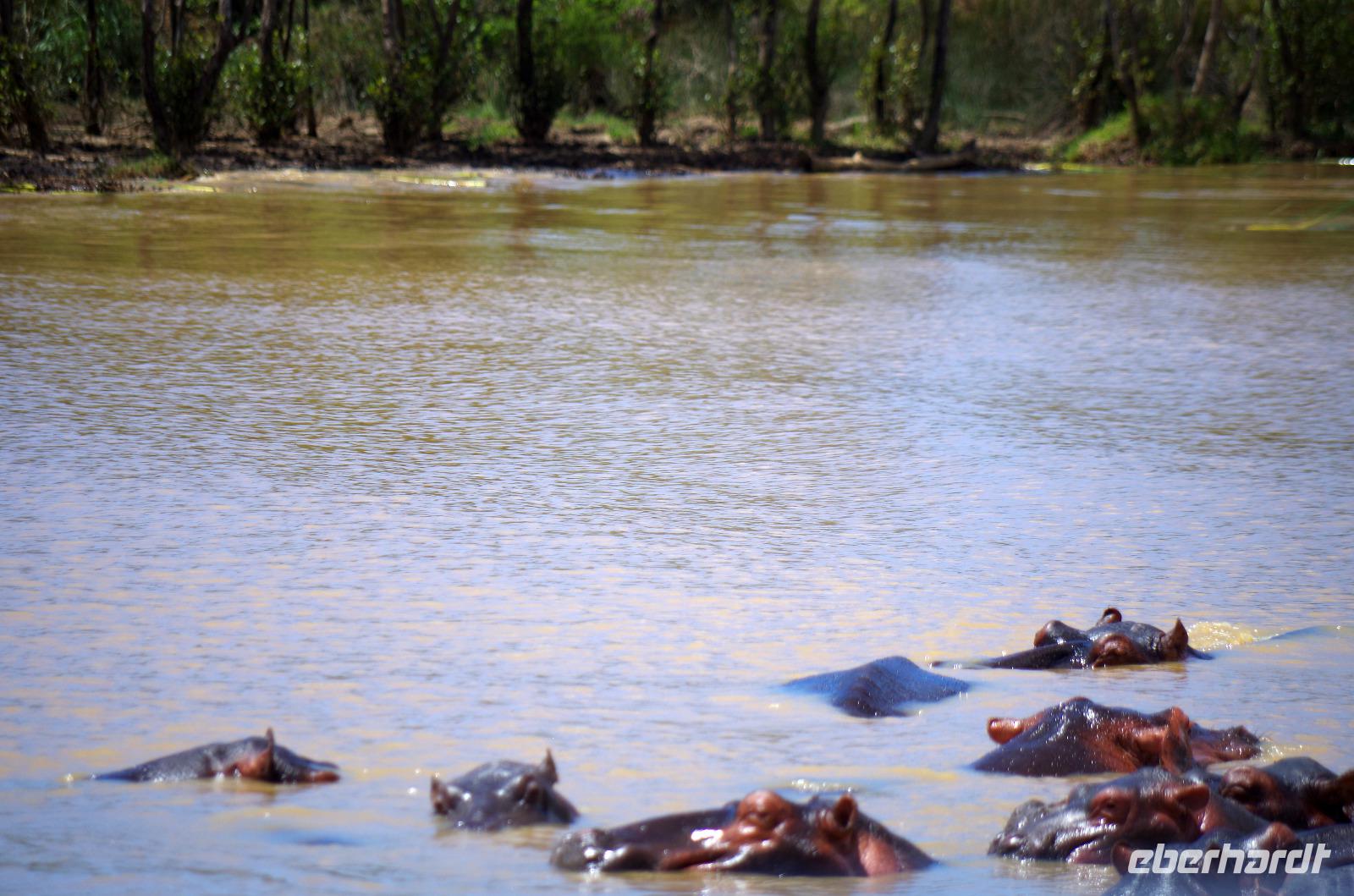 Nach einem leckeren Frühstück verstauen wir unsere Badesachen im Bus und laufen gemeinsam rund zehn bis fünfzehn Gehminuten an die Bootsanlegerstelle. Auf unserem Weg sehen wir die Affen mit Namen Grünmeerkatze "Vervet monkey" sowie Zebramanguste "Banded mongoose". Um 10.00 Uhr soll unsere Fahrt auf dem Lake St. Lucia beginnen. Da wir die einzigen Gäste sind, welche um diese Zeit mit dem Boot "FANNAS" fahren werden, erleben wir sozusagen einen Eberhardt-Exklusiv-Ausflug :-) Die Fahrt dauert rund eineinhalb Stunden und wir sehen ganz viele Nilpferde (Hippopotamus) "Hippos", Krokodile, Blauwangenspint "Blue-cheeked bee-eater", Gelbweber "Yellow weaver" und auch einen Schreiseeadler "African fish-eagle". Gegen 11.30 Uhr sind wir wieder zurück und laufen gemeinsam zum Supermarkt, um uns einen Mittagssnack zu besorgen. Unterwegs probieren Gäste an einem Stand frische "Ananas am Stiel", süß und sehr lecker! Um 12.15 Uhr fahren wir mit dem Bus durch den Nationalpark iSimangaliso Wetland Park zum Naturschutzgebiet Cape Vidal, welches wir rund eineinhalb Stunden später erreichen. Unterwegs sehen wir weitere Tiere wie Warzenschweine, Zebras, Affen oder Knus. Einen Foto-Stopp legen wir am Mfabeni Lookout ein. Sonet berichtet uns, dass der iSimangaliso Wetland Park im nördlichen KwaZulu-Natal liegt und nur über St. Lucia erreichbar ist. Der rund 40 Kilometer lange Lake St Lucia ist umgeben von Gras- und Buschland sowie Mangrovensümpfen. Angekommen am Cape Vidal heißt es auch schon relaxen am Strand oder schwimmen im Meer. Wir gönnen uns ein entspanntes Picknick am Strand, wobei wir von neugierigen Affen beobachtet werden. Ein Äffchen wagt es sogar, aus dem Rucksack eines Reisegasts etwas zu stibitzen, wir können ihn gerade noch davon abhalten! Einige Gäste schwimmen im Meer, was nur im Bereich der roten Fahnen erlaubt ist. Ein Rettungsschwimmerteam für den Notfall ist ebenfalls anwesend. Wir spazieren am Strand entlang, wobei wir unter anderem mit den Füßen und Beinen im Wasser laufen. Der Sand bei Temperaturen über 30 Grad ist doch schon sehr heiß. Am Nachmittag fahren wir wieder zur Lodge zurück. Hier verläuft der restliche Nachmittag ähnlich wie gestern: Wir schwimmen im Hotelpool, relaxen auf dem Balkon oder der Terrasse. Heute haben wir bereits Halbzeit oder auch "Bergfest" unserer wundervollen Traumreise! Bekanntlich vergeht die Zeit danach viel schneller, auch wenn noch so viele atemberaubende Erlebnisse auf uns warten, spannend wird es sicher bleiben! Um 18.45 Uhr treffen wir uns an der Hotelbar. Wir werden an dieser Bar nicht bedient, da dies eine "Bar des Vertrauens" ist. Wir nehmen die Getränke aus dem Kühlschrank - von Softdrinks, Säften, Wein und Bier ist alles vorhanden - und tragen uns mit Name, Zimmernummer und Anzahl in ein Buch auf dem Tresen ein. Die Bezahlung erfolgt erst beim Check-Out. Wirklich ein schönes Konzept, an welches wir uns selbstverständlich ordnungsgemäß halten :-) Wir stoßen gemeinsam auf das Bergfest unserer Reise an. Raten Sie mal, mit was wir anstoßen? Richtig geraten ;o) Der leckere Wildfrucht-Sahne-Likör "Amarula" ist es abermals geworden. Folglich erfüllen auch die aus Deutschland mitgebrachten Plastikbecher abermals ihre Daseins-Mitnahme-Berechtigung *grins* Nun noch ein kleiner Exkurs, mit welchen Likör wir denn überhaupt auf eine traumhafte Zeit in Südafrika anstoßen. Es gibt zwei unterschiedliche "Amarula"-Sorten: "Amarula Cream" seit 1989 und "Amarula Gold" seit 2014. Wir trinken den auf der Frucht des Marulabaums basierenden Sahnelikör "Amarula Cream" mit einem Alkoholgehalt von 17 Prozent."Amarula Gold" besitzt einen Alkoholgehalt von 30 Prozent. Nach dem Amarula-Geschmack gefragt würde die Reisebegleitung wohl mit einem leicht fruchtigen Karamell-Geschmack antworten. Der Name "Amarula" ist zugleich auch eine Spirituosen-Marke in Südafrika. Während wir das leckere Getränk genießen, besprechen wir den morgigen Tagesablauf. Wir werden morgen in Südafrika ausreisen und in Swaziland wieder einreisen. Die Reisepässe packen wir somit ins Handgepäck. Zudem bleiben unsere Koffer über Nacht verschlossen im Bus, so dass wir alle notwendigen Sachen für eine Übernachtung im Handgepäck verstauen. Das Abendessen "a la carte" nehmen wir heute im rund fünf Gehminuten von der Lodge entfernten "Ocean Basket Restaurant " ein. Wir gönnen uns leckeres Sushi, Salat oder Fish & Chips. Zum Tagesabschluss setzen wir uns abermals ans Lagerfeuer in der Lodge und lassen den Abend bei Wein und Softdrinks ausklingen.