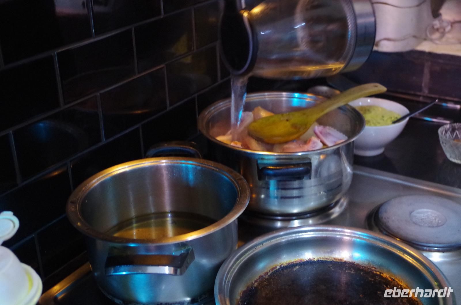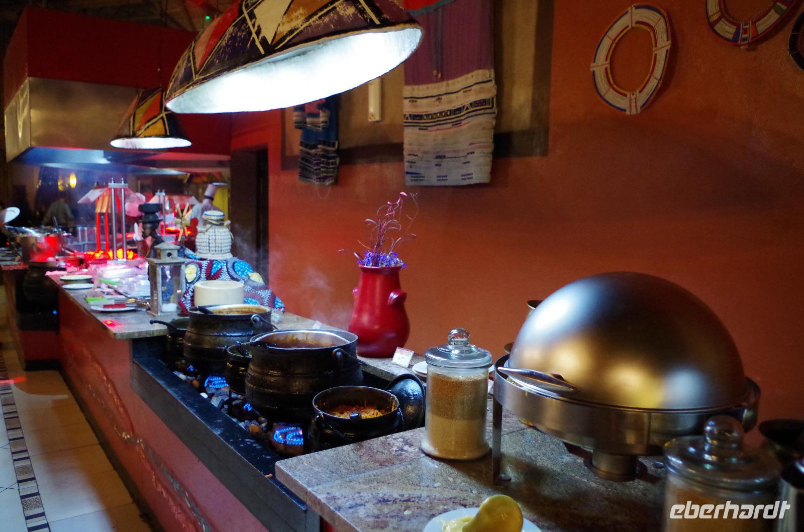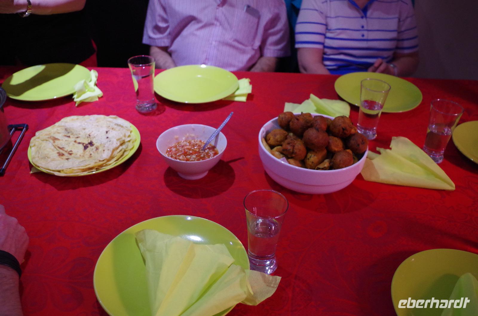 Unser heutiger Tag beginnt wieder mit strahlendem Sonnenschein. Das Frühstück gestaltet jeder individuell. Der Vormittag steht den Gästen zur freien Verfügung. Zu empfehlen sind der Besuch der großen Shopping Mall, des tollen Aquariums oder des neuen Art-Museums mit seinen ehemaligen Speicher und Silos an der "V & A Waterfront". Die Gäste können heute aber auch an einer fakultativ angebotenen Cape Cuisine Tour und an einer Sunset Cruise teilnehmen. Alle zehn Gäste, welche die Cape Cuisine Tour bei Eberhardt gebucht haben, treffen sich um 13.00 Uhr mit der Reisebegleitung in der Hotellobby. Dann fahren wir mit dem Taxi ins nicht weit entfernte und uns bereits bekannte Bo Kaap Viertel zu Gamidah. Aufgrund des heute stattfindenden Neujahrsfestes rund ums Bo Kaap Viertel sind einige Straße gesperrt, so dass uns die Taxifahrer so nah wie möglich an das Viertel heranfahren. Dann laufen wir rund zehn Gehminuten zum Haus von Gamidah in der Wale Street in Cape Town Bo Kaap. Um 13.45 Uhr beginnt unser Cape Malay Kochkurs und ein einmaliger Einblick in die afrikanische Küche. Zunächst bereiten wir gemeinsam folgende Gericht zu: Roti, traditionelles Curry, Samosa, Chili Bites und Sambal. Roti ist ein afrikanischer Teigfladen, welcher aus Mehl, Margarine, Salz und Öl besteht und warm serviert wird. Das Fladenbrot wird in kleine Teile auseinander gebrochen. Statt Gabel und Messer zu benutzen, werden die kleinen Stücke des Roti zum Aufnehmen von Fleisch und Sauce verwendet. Samosa sind gefüllte Teigtaschen bestehend aus Wasser, Salz, Butter und Mehl. Sie werden unter anderem wie Hackfleisch, Curry oder Käse gefüllt. Gamidah zeigt uns, wie wir die Samosa zu Dreiecken zusammenlegen. Anschließend erfolgt das Frittieren in siedendem Fett, so dass sie auch von außen knusprig braun werden. Aber wer jetzt denkt, nur die Frauen kochen heute, der irrt sich ;-) Die Männer unterstützen ihre Frauen tatkräftig und versuchen sich selbst im Zubereiten und Kochen der Speisen. Es ist wirklich ein schönes unterhaltsames gemeinsames Zubereiten, Kochen und natürlich auch Verzerren der Speisen! Sambal stammt aus Indonesien und ist eine dickflüssige Würzsauce mit Chili. Nicht nur das gemeinsame Kochen, auch das Verzerren der gekochten Speisen erfreut uns. Na dann, guten Appetit wünschen wir! Nach dem Essen zeigt uns Gamidah im gegenüberliegenden Laden die Gewürze, welche wir beim Kochen verwendet habe. Dazu zählen das Mehl "Chaan/Chickenpea Flour", Kurkuma "Turmeric", Chili Pulver "Mild Chili Powder", Kreuzkümmel "Cumin/Jeera", Koriander "Koljana/Coriander" und Fenchel "Fennel". Dann verabschieden wir uns freundlich von Gamidah und bedanken uns für den tollen Kochkurs. Wir laufen gemeinsam bei gefühlten 30 Grad zum Hotel zurück. Die Laufstrecke beträgt rund fünfzehn bis zwanzig Minuten. Zum Abend treffen sich alle Gäste um 18.30 Uhr am Riesenrad, um dann gemeinsam mit der Serenity One eine wunderbare Champagner Sunset Cruise in Kapstadt zu erleben. An Bord erhält jeder Gast zwei Gläser alkoholischen oder auch alkoholfreien Sekts. Die Bootsfahrt dauert rund eineinhalb Stunden und wir sehen einen wunderschönen Sonnenuntergang. Falls den Gästen kalt werden sollte, sind Decken an Bord vorhanden. Eine dünne Stoffjacke ist aber auf alle Fälle zu empfehlen! Nach einer wunderbaren Champagner Sunset Cruise entsteht ein weiteres tolles Gruppenfoto vor dem riesigen Weihnachtsbaum direkt vor der Shopping Mall an der Waterfront. Anschließend spazieren wir gemeinsam zum Hotel zurück. Hier heißt es dann Abschied nehmen! Vier Gäste werden morgen bereits wieder zurück nach Deutschland fliegen. Wir wünschen Ihnen einen angenehmen Rückflug und senden viele Grüße nach Deutschland ;o) Einige Gäste gönnen sich noch ein spätes Abendessen "a la carte" sowie einen Schlummerdrink im Hotelrestaurant. Am nächsten Tag fliegen wir weiter nach Durban, der Weckruf für alle Gäste um 05.30 Uhr ist bereits bestellt!