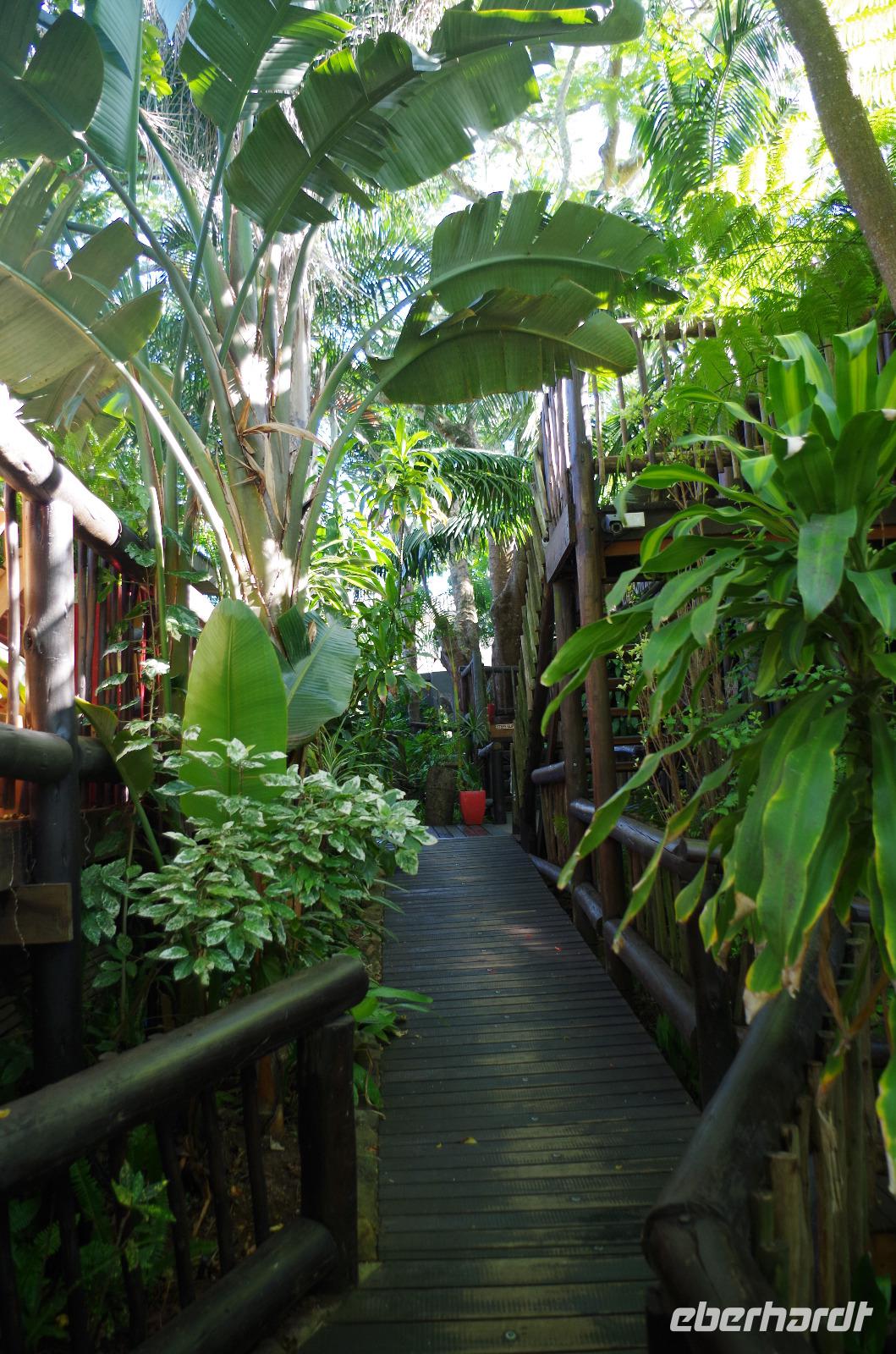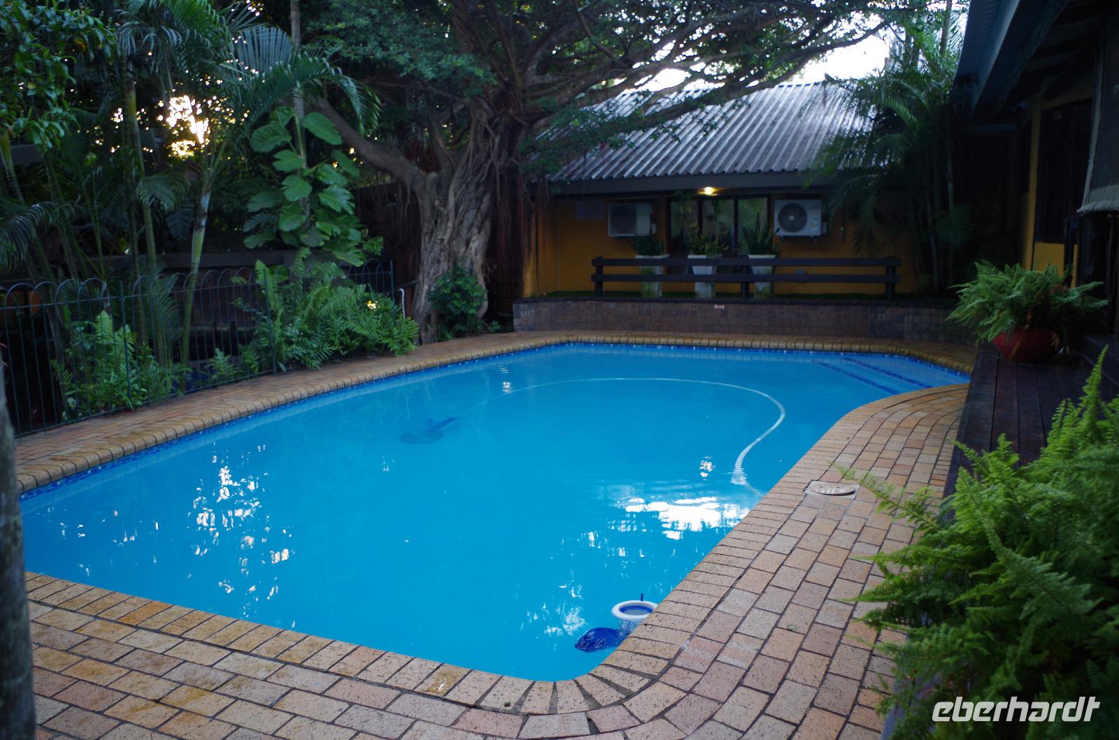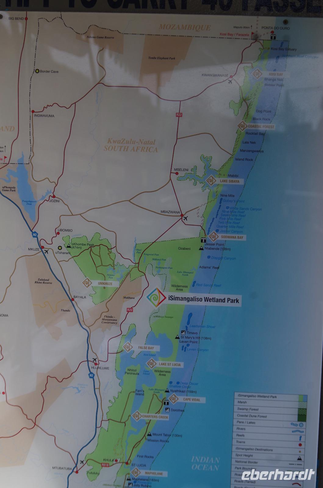 Bereits am frühen Morgen um 05.30 Uhr werden wir mit einem Weckruf geweckt. Die meisten Gäste sind aber schon vor dem Anruf wach ;-) Wir gönnen uns ein leckeres Frühstück und um 07.00 Uhr werden die Koffer verladen. Noch bevor wir starten verabschieden wir uns von Herbie und Shamiel. Die Gäste und auch Herbie erhalten von Eberhardt TRAVEL und ihrer Reisebegleitung eine afrikanische Neujahrsgrußkarte sowie ein kleines Marzipan-Glücksschwein geschenkt, welche bereits den weiten Weg von Deutschland nach Südafrika gereist sind. Dann fahren wir zum nationalen Flughafen von Kapstadt, welchen wir eine halbe Stunde später erreichen. An den Schaltern der British Airways erwartet uns eine lange Menschenschlange. Wir verabschieden uns freundlich von Herbie und wünschen ihm alles Gute! Für den Check-In benötigen wir nur den Reisepass. Als wir endlich am Schalter einchecken, funktioniert bei einigen Gästen das Gepäckband nicht, so dass wir unser eingechecktes Gepäck zum Oversize Baggage rund 100 Meter entfernt bringen müssen. Dann laufen wir gemeinsam durch die Sicherheitskontrolle für Gate 7 bis 12, die Wasserflaschen können wir mitnehmen. Sowohl das Boarding um 08.25 Uhr als auch der Flug um 08.55 Uhr von Kapstadt nach Durban mit British Airways BA 6315 erfolgt pünktlich. Wir erhalten Getränke und eine warme Mahlzeit während unseres Fluges von rund zwei Stunden an Bord. Wie schon beim Start landen wir ebenso pünktlich in Durban. Nach einer problemlosen Gepäckannahme und einer "Harmoniepause" werden wir freundlich von unserer Reiseleiterin Sonet empfangen. Es ist zu empfehlen, Euros bereits in Kapstadt zu wechseln, der Kurs in Durban am Flughafen ist doch ein wenig schlechter als in Kapstadt. Die Stadt Durban besuchen wir nicht, sondern wir fahren direkt nach St. Lucia. Im Bus erhält jeder Reisegast abermals eine Flasche Wasser von Eberhardt TRAVEL und Egoli spendiert, weitere Flaschen können beim Busfahrer für zehn ZAR erworben werden. Während der Fahrt erhalten wir weitere Informationen über die Republik Südafrika. Sonet erzählt uns unter anderem, dass sich die Küste im Osten vom Indischen Ozean bis zum Atlantischen Ozean erstreckt und rund 3.000 Kilometer lang ist. Südafrika ist dreimal so groß wie Deutschland und wird in neun Provinzen eingeteilt. Die Gesamtfläche beträgt circa 1.220.000 Quadratkilometer, die Einwohnerzahl rund 55 Millionen Menschen. Die Bevölkerung setzt sich hauptsächlich aus 79 Prozent Schwarz-Afrikanern und rund 9 Prozent Weiß-Afrikanern zusammen. Zu den drei größten ethnischen Gruppen gehören Zulu mit 30 Prozent, Xhosa mit 20 Prozent und Sotho mit 15 Prozent. Die Verwaltungssprache ist zwar Englisch, aber es gibt insgesamt elf offiziell anerkannte Sprachen in Südafrika. Momentan ist der Präsident zugleich auch der Regierungschef des Landes. Sein Name lautet Jacob Zuma und er wurde 2009 in sein Amt gewählt. Zuma ist zudem Vorsitzender der größten Partei Südafrikas, der African National Congress, kurz ANC. In Südafrika herrscht Religionsfreiheit, auch wenn die Mehrheit dem Christentum zugehörig ist. Das Land besitzt eine Vielzahl an Bodenschätzen, unter anderem werden Gold, Steinkohle, Nickel, Chrom oder auch Diamanten in den vielen Bergwerken gefördert und produziert. Unsere heutige Mittagspause verbringen wir an der Raststätte North Ocean mit Sandwich, Hotdog, Eis, Softdrinks oder Kaffee. Hier erfahren wir auch, wie viel Glück wir am Neujahrstag gehabt haben. Denn gestern Nachmittag sind am Tafelberg drei Wanderer verunglückt und die Bergung hat sehr viele Stunden Zeit in Anspruch genommen. Die Seilbahn ist abgestellt worden und rund 800 Menschen mussten bis spät in die Nacht auf dem Tafelberg ausharren, wo es nachts auch richtig kühl werden kann. Auf diesem Wege senden wir Genesungswünsche an die verunglückten Personen! Rund eine Stunde später fahren wir weiter nach St. Lucia. Von Sonet erfahren wir weitere spannende Informationen zum Leben und zur Geschichte Südafrikas. Unter anderem erzählt sie uns, dass Südafrika nicht unbedingt ein sehr soziales Land ist. Laut Sonet liegt das monatliche Einkommen bei fast 80 Prozent der Bevölkerung unterhalb der von ihr formulierten "Brotgrenze" von 3.000 bis 4.000 Rand. Diese Menschen haben ein Recht auf Sozialhilfe, beispielsweise erhalten sie vom Staat rund 240 Rand im Monat pro Kind. Zum Rentensystem Südafrikas erfahren wir von Sonet, dass Frauen mit 60 Jahren und Männer mit 65 Jahren in Rente gehen dürfen. Sie erhalten ein monatliches Einkommen von rund 1.300 Rand. Südafrikaner sind entweder privat oder staatlich krankenversichert. Die private Krankenversicherung beträgt 1.000 bis 6.000 Rand monatlich, welche sich nur Menschen mit einem guten Einkommen leisten können. Bevor wir St. Lucia erreichen, muss der Bus nach vorgeschriebenem Gesetz an einem Verkehrskontrollzentrum gewogen werden. Der Bus und wir dürfen nicht mehr als 16 Tonnen wiegen, dies sollte bei uns doch passen ;-) Gegen 15.00 Uhr erreichen wir St. Lucia. Wir legen noch einen Zwischenstopp am Supermarkt SPAR für Getränke sowie Mückenspray oder auch einen Mückengelstift der empfohlenen Marke "Peaceful Sleeping" ein. In den nächsten Tagen werden wir uns in einem Gebiet mit höherem Malariarisiko bewegen. Als Schutz wird eine bereits in Deutschland verschriebene Malaria-Prophylaxe empfohlen. Vom Hausarzt oder den Mitarbeitern des tropenmedizinischen Institutes werden Gäste individuell zu Impfungen und zur Malaria-Prophylaxe beraten. Dann checken wir auch schon im 4-Sterne-Hotel "Umlilo Lodge" ein, welche eine familienbetriebene wunderschöne Lodge des Inhabers Lorenzo ist. Die Zeit zum Abendessen nutzen wir zum Entspannen, zum Schwimmen im Pool oder einfach um die Seele baumeln zu lassen in diesem kleinen Paradise. Um 19.00 Uhr genießen wir ein leckeres 3-Gänge-Menü an der Lagerfeuerstelle. Das Feuer lodert, es qualmt zwar ganz schön, aber wenigstens vertreibt es die Mücken :-) Die alkoholi