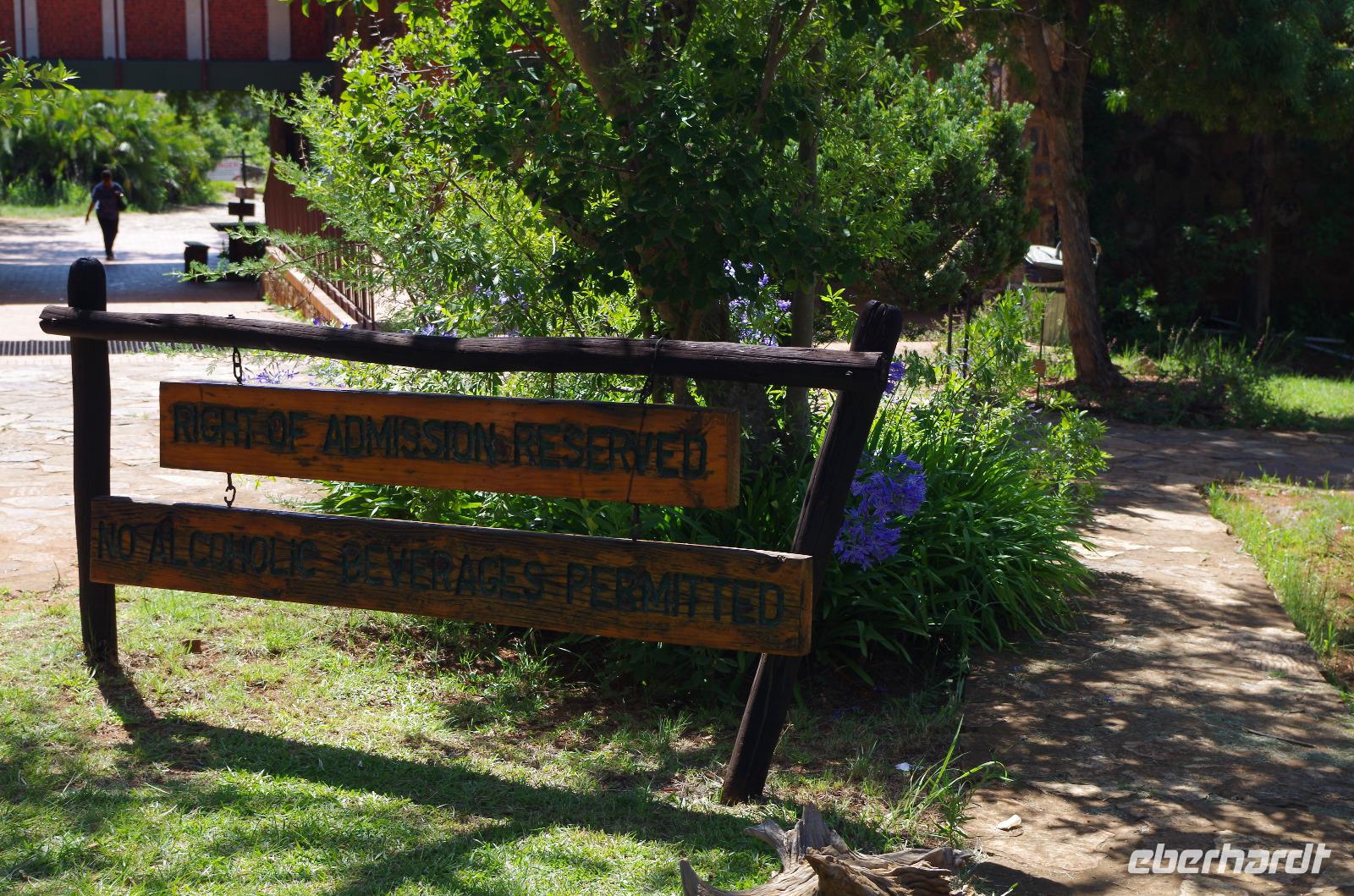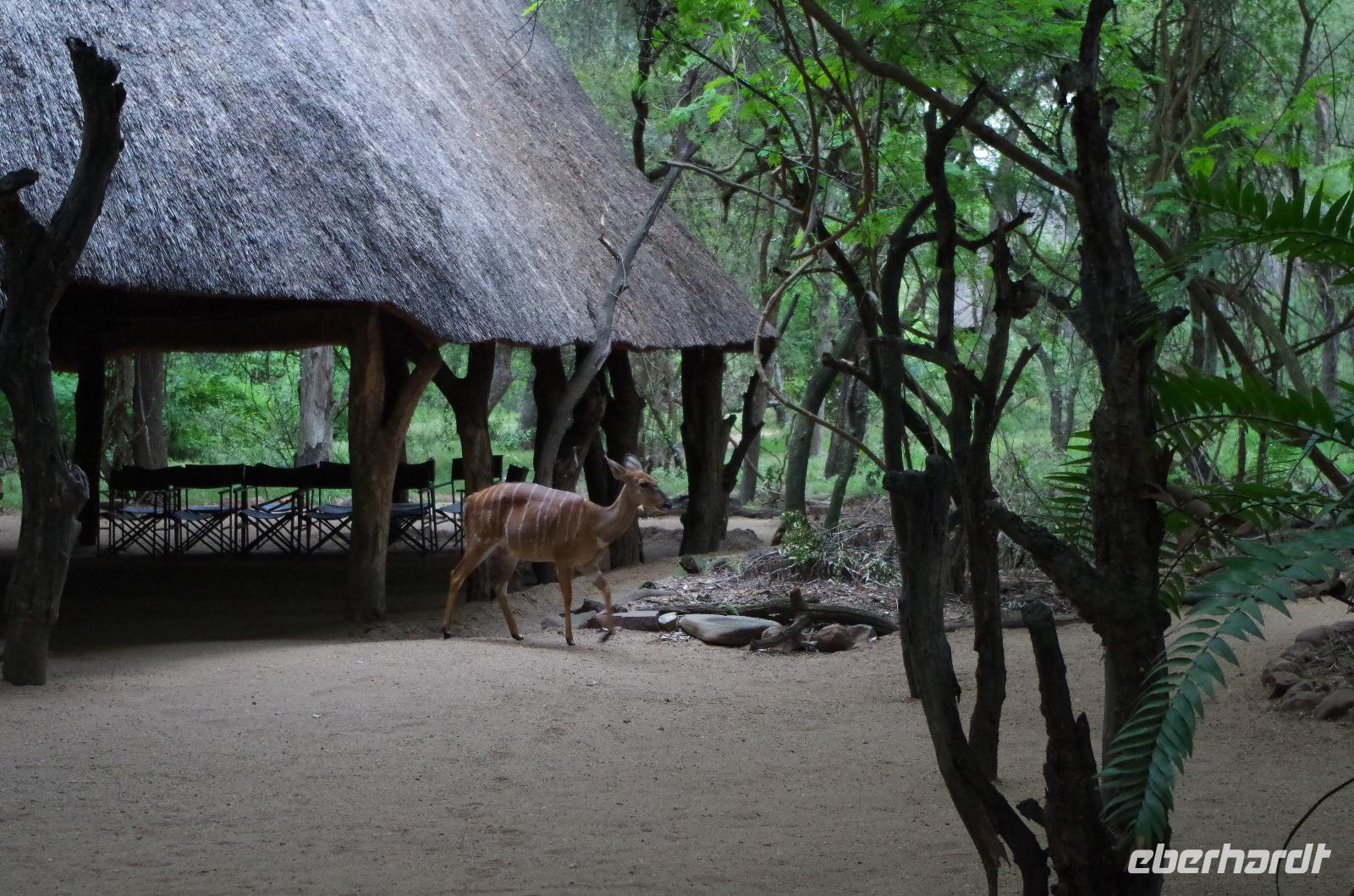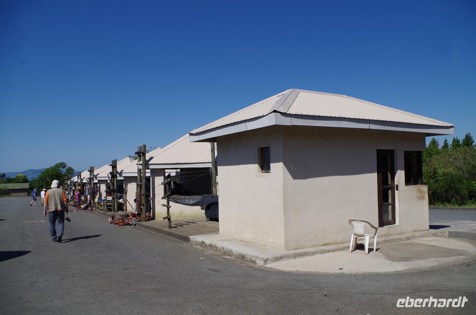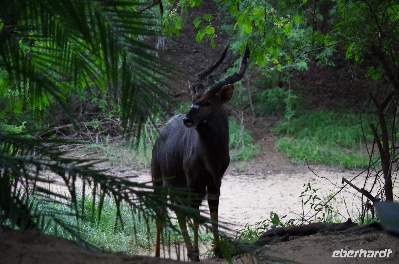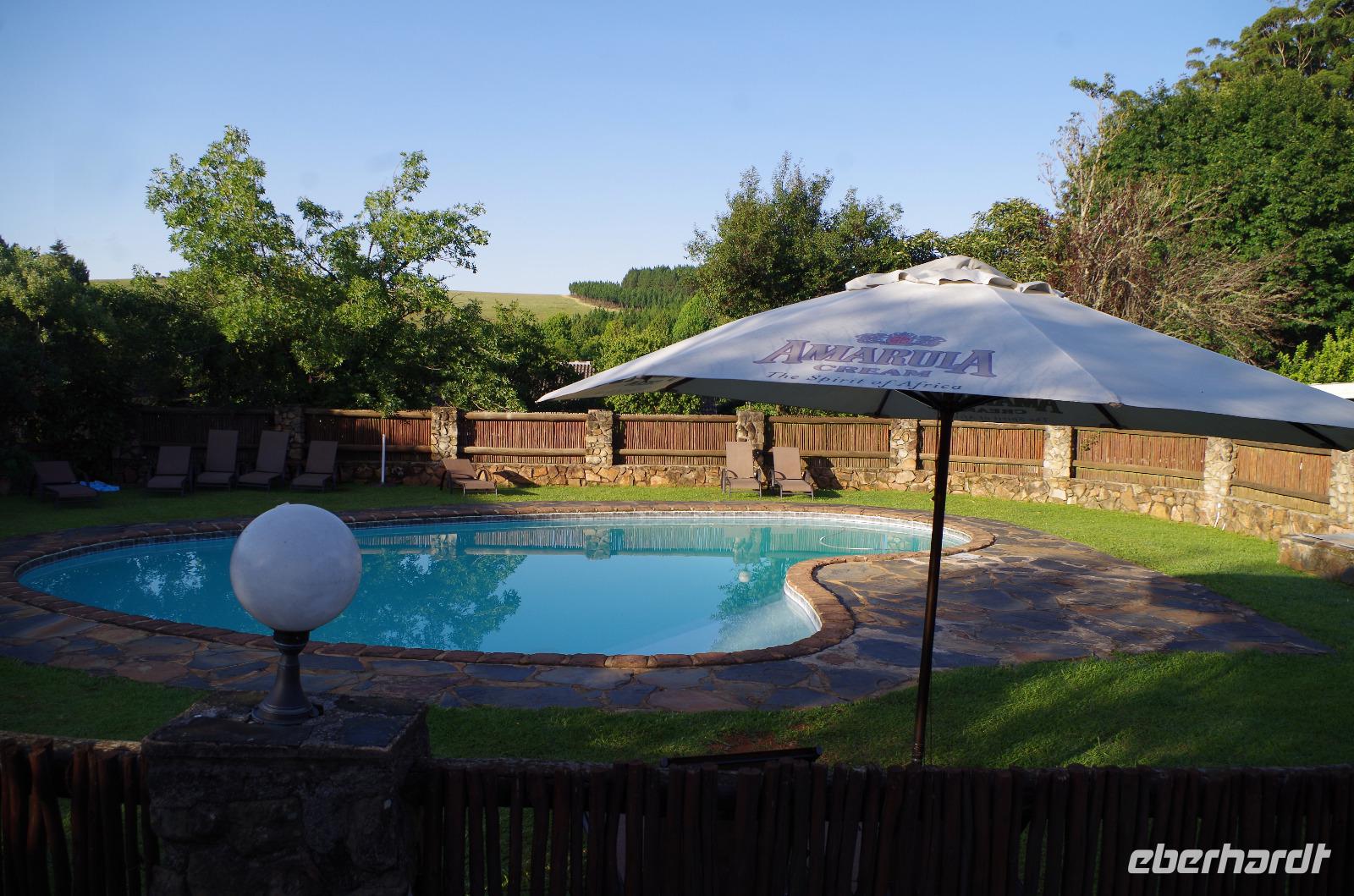 Die vergangene Nacht im halboffenen Steinhaus ist sicherlich für jeden Gast ein einmaliges besonderes Erlebnis! Wir werden persönlich von einem Mitarbeiter oder einer Mitarbeiterin des Stone Camps gegen 05.30 Uhr geweckt und erhalten ein kleines Frühstück mit Kaffee und Tee sowie einen leckeren Muffin. Bereits im Camp werden wir von der südostafrikanischen Antilopenart namens Nyala begrüßt. Diese fast schon zutraulichen Tiere fressen nur wenige Meter von uns entfernt gemütlich im Gras. Um 06.00 Uhr startet unsere morgendliche rund zweistündige Pirschfahrt im Mkhaya Game Reserve. Wir sehen unter anderem Gnus, Giraffen und weitere verschiedene Vogelarten. Gegen 08.00 Uhr genießen wir ein leckeres Frühstück im Stone Camp und tauschen uns darüber aus, wie wir die einzigartige Nacht verbracht und welche Tiere wir während der Safari gesehen haben. Wir können zumindest berichten, sowohl die Gäste als auch die Reisebegleitung haben in der vergangenen Nacht geschlafen. Rund eine Stunde später verstauen wir unsere Sachen und fahren zum gestrigen Treffpunkt, wo wir in unseren Bus umsteigen. Auf dem Weg zur Grenzstation im Swaziland und in Südafrika fahren wir durch Manzini und an der legislativen Hauptstadt Lohamba vorbei. Wir besuchen auch einen kleinen Markt für Kunsthandwerk und Souvenirs in Ezulwine. Unsere Fahrt führt uns weiter an der Hauptstadt Mbabane vom Swaziland vorbei durch Pigg's Peak. Gegen 14.00 Uhr reisen wir in Matsomo aus Swaziland aus und in Jeppe's Reef in Südafrika wieder ein. Das Grenzpersonal ist abermals eher touristenunfreundlich und wirkt extrem gelangweilt. Nun ja, solange wir unsere Ein- und Ausreisestempel erhalten, ist ja alles gut ;-) Langsam knurrt unser Magen, so dass wir am nächstgelegenen Einkaufszentrum in Malelan anhalten und uns mit Snacks und Getränken versorgen. Die Fahrt geht weiter zum 3-Sterne-Hotel "Misty Mountain Lodge" am Long Tom Pass zwischen Sabie und Lydenburg in Südafrika, wo wir gegen 17.30 Uhr einchecken. Wir befinden uns in der Provinz Mpumalanga, welche als "Ort der aufgehenden Sonne" bekannt und vom Lowveld-Busch und den großartigen Landschaftsformen der Hochebene geprägt ist. Der rund 20.000 Quadratkilometer große Krüger Nationalpark gehört ebenso zu dieser Provinz. Vor dem Abendessen stoßen wir gemeinsam auf den 65. Geburtstag eines Reisegasts an. Na dann, Prost und alles Gute zum Geburtstag! Zum Abendessen im Hotelrestaurant haben wir die Wahl zwischen Gemüsesuppe oder Dreierlei Fisch mit Pastete, Lachs und geräucherter Forelle als Vorspeise; Spaghetti Bolognese, Tagliatelle mit Pilz-Senf-Sahne-Soße, Steak mit Pfeffersoße oder Forellenfilet in Weißweinsoße mit Gemüse oder Salat und Reis, Kartoffelbrei aus Süßkartoffeln oder Pommes als Hauptspeise sowie Malva Pudding oder Eiscreme mit Schokosoße als Dessert. Guten Appetit, lassen wir es uns schmecken ;o) Wir gönnen uns noch ein Glas Wein auf der Terrasse, bevor wir uns wenig später eine angenehme Nacht wünschen.