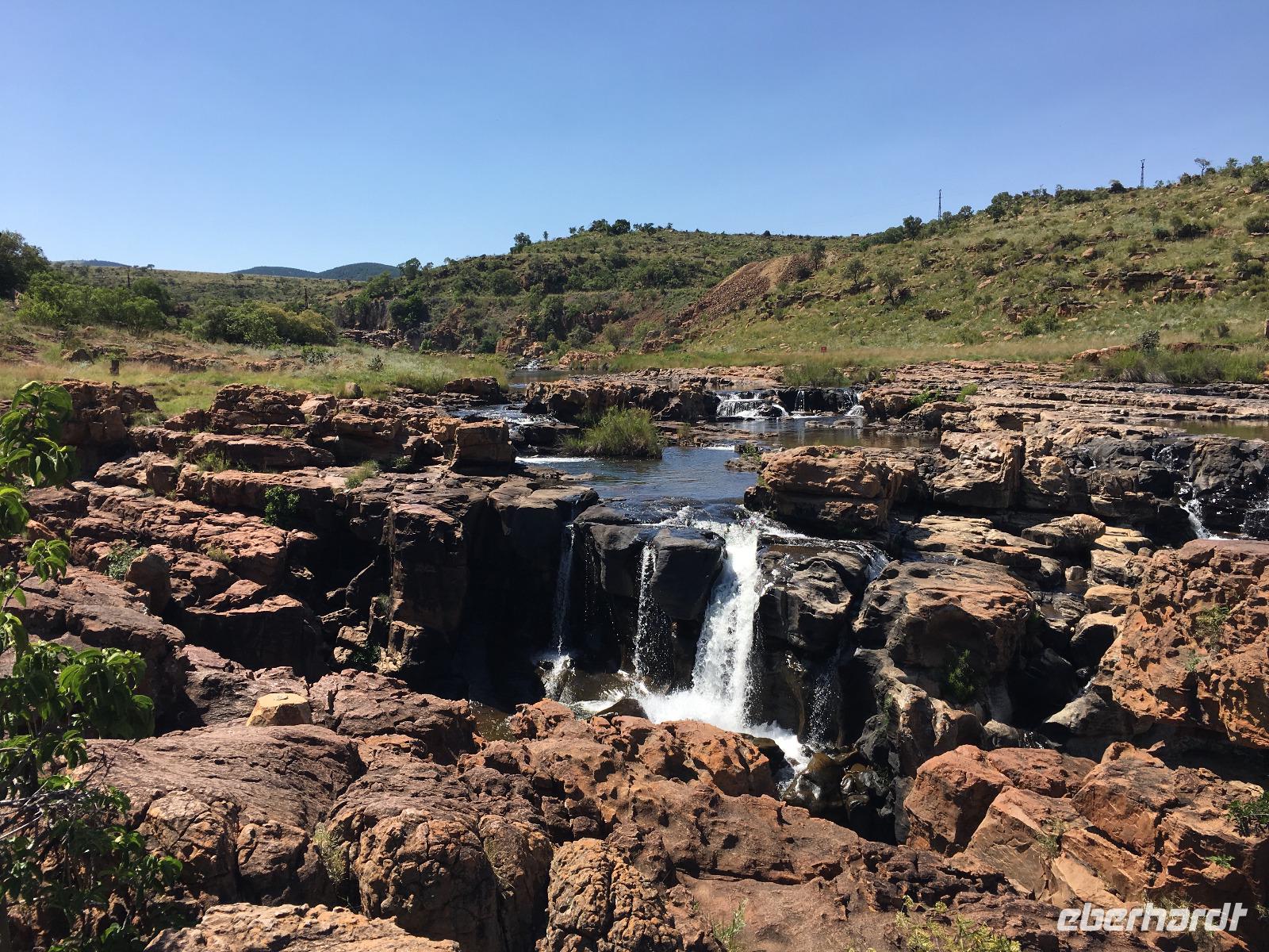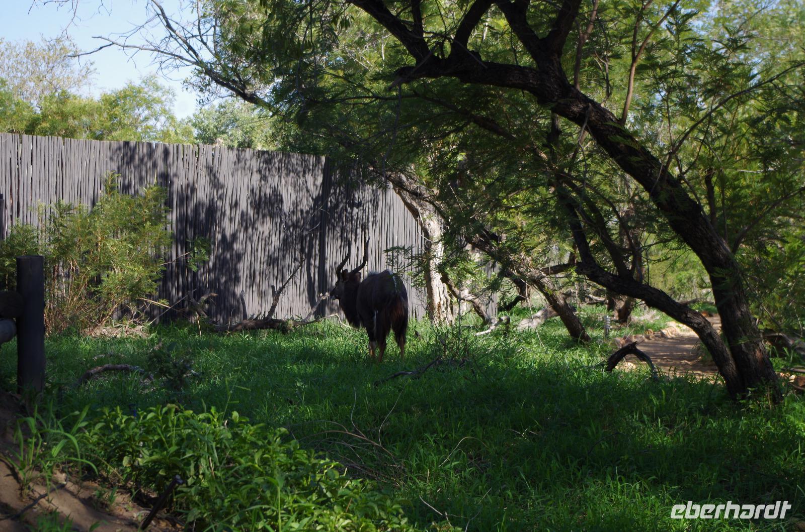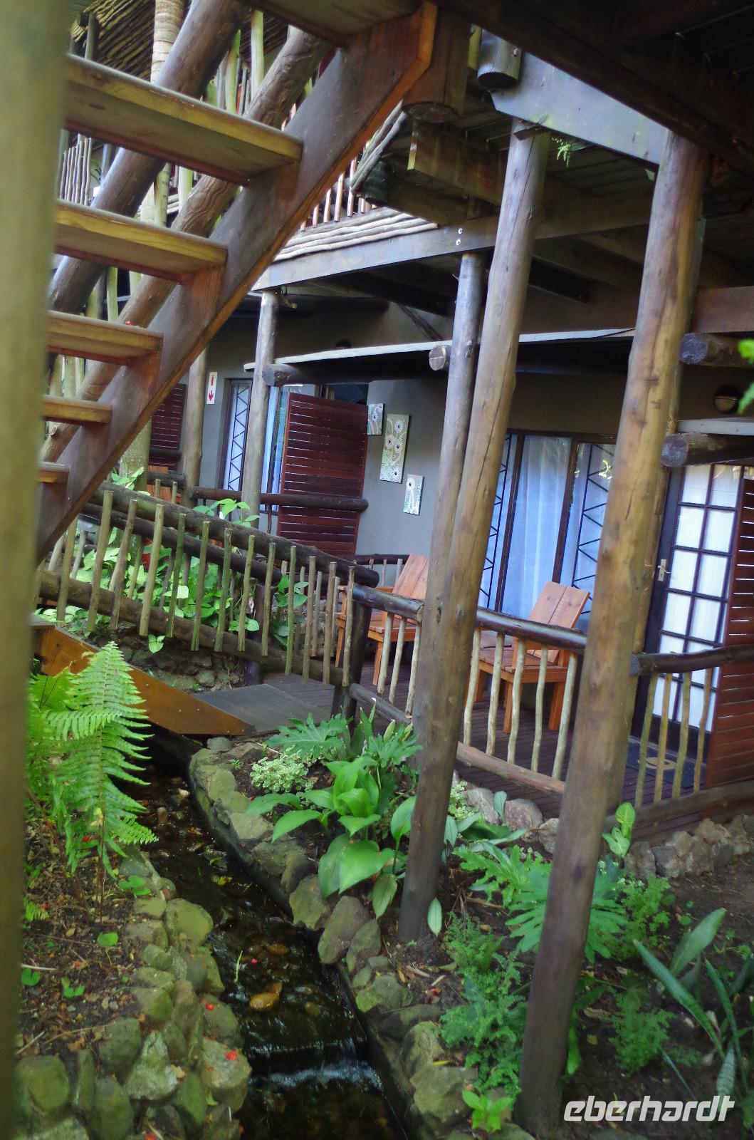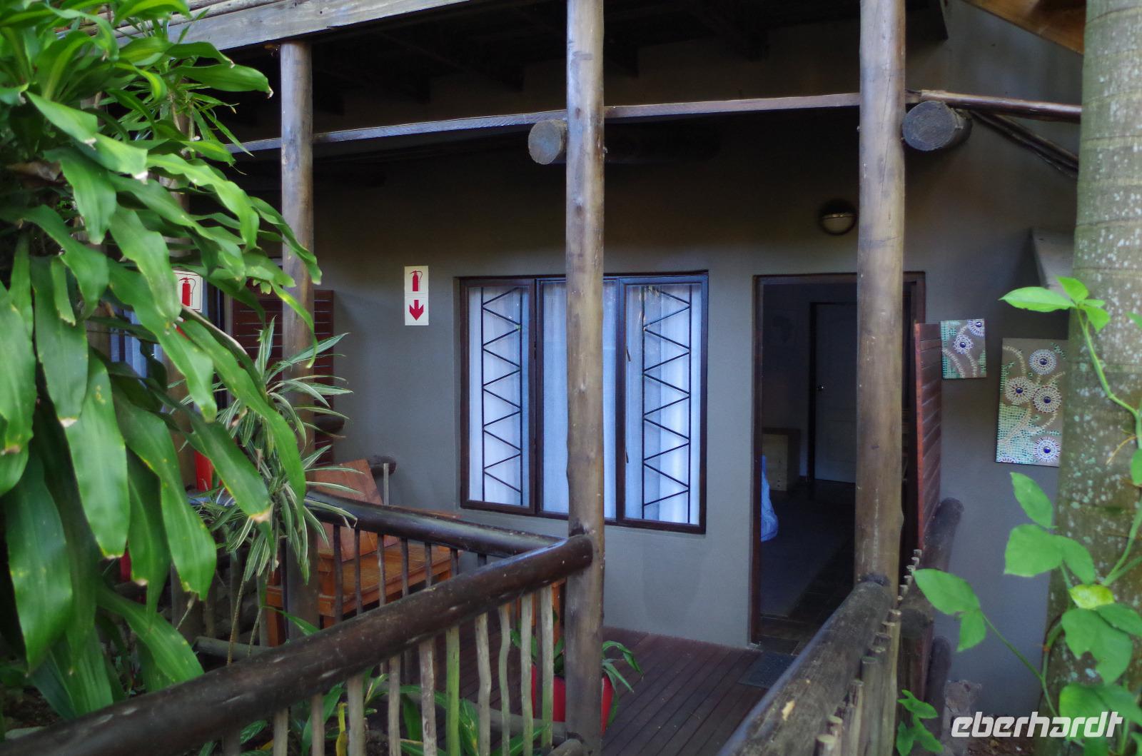 Die vergangene Nacht im halboffenen Steinhaus ist sicherlich für jeden Gast ein einmaliges besonderes Erlebnis! Wir werden persönlich von einem Mitarbeiter oder einer Mitarbeiterin des Stone Camps gegen 05.30 Uhr geweckt und erhalten ein kleines Frühstück mit Kaffee und Tee sowie einen leckeren Muffin. Bereits im Camp werden wir von der südostafrikanischen Antilopenart namens Nyala begrüßt. Diese fast schon zutraulichen Tiere fressen nur wenige Meter von uns entfernt gemütlich im Gras. Um 06.00 Uhr startet unsere morgendliche rund zweistündige Pirschfahrt im Mkhaya Game Reserve. Wir sehen unter anderem Gnus, Giraffen und weitere verschiedene Vogelarten. Gegen 08.00 Uhr genießen wir ein leckeres Frühstück im Stone Camp und tauschen uns darüber aus, wie wir die einzigartige Nacht verbracht und welche Tiere wir während der Safari gesehen haben. Wir können zumindest berichten, sowohl die Gäste als auch die Reisebegleitung haben in der vergangenen Nacht geschlafen. Rund eine Stunde später verstauen wir unsere Sachen und fahren zum gestrigen Treffpunkt, wo wir in unseren Bus umsteigen. Auf dem Weg zur Grenzstation im Swaziland und in Südafrika fahren wir durch Manzini und an der legislativen Hauptstadt Lohamba vorbei. Wir besuchen auch einen kleinen Markt für Kunsthandwerk und Souvenirs in Ezulwine. Unsere Fahrt führt uns weiter an der Hauptstadt Mbabane vom Swaziland vorbei durch Pigg's Peak. Gegen 14.00 Uhr reisen wir in Matsomo aus Swaziland aus und in Jeppe's Reef in Südafrika wieder ein. Das Grenzpersonal ist abermals eher touristenunfreundlich und wirkt extrem gelangweilt. Nun ja, solange wir unsere Ein- und Ausreisestempel erhalten, ist ja alles gut ;-) Langsam knurrt unser Magen, so dass wir am nächstgelegenen Einkaufszentrum in Malelan anhalten und uns mit Snacks und Getränken versorgen. Die Fahrt geht weiter zum 3-Sterne-Hotel "Misty Mountain Lodge" am Long Tom Pass zwischen Sabie und Lydenburg in Südafrika, wo wir gegen 17.30 Uhr einchecken. Wir befinden uns in der Provinz Mpumalanga, welche als "Ort der aufgehenden Sonne" bekannt und vom Lowveld-Busch und den großartigen Landschaftsformen der Hochebene geprägt ist. Der rund 20.000 Quadratkilometer große Krüger Nationalpark gehört ebenso zu dieser Provinz. Vor dem Abendessen stoßen wir gemeinsam auf den 65. Geburtstag eines Reisegasts an. Na dann, Prost und alles Gute zum Geburtstag! Zum Abendessen im Hotelrestaurant haben wir die Wahl zwischen Gemüsesuppe oder Dreierlei Fisch mit Pastete, Lachs und geräucherter Forelle als Vorspeise; Spaghetti Bolognese, Tagliatelle mit Pilz-Senf-Sahne-Soße, Steak mit Pfeffersoße oder Forellenfilet in Weißweinsoße mit Gemüse oder Salat und Reis, Kartoffelbrei aus Süßkartoffeln oder Pommes als Hauptspeise sowie Malva Pudding oder Eiscreme mit Schokosoße als Dessert. Guten Appetit, lassen wir es uns schmecken ;o) Wir gönnen uns noch ein Glas Wein auf der Terrasse, bevor wir uns wenig später eine angenehme Nacht wünschen.