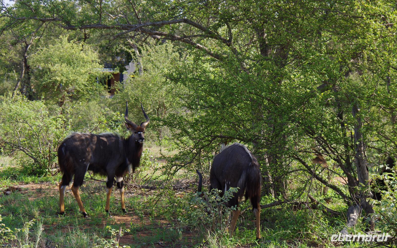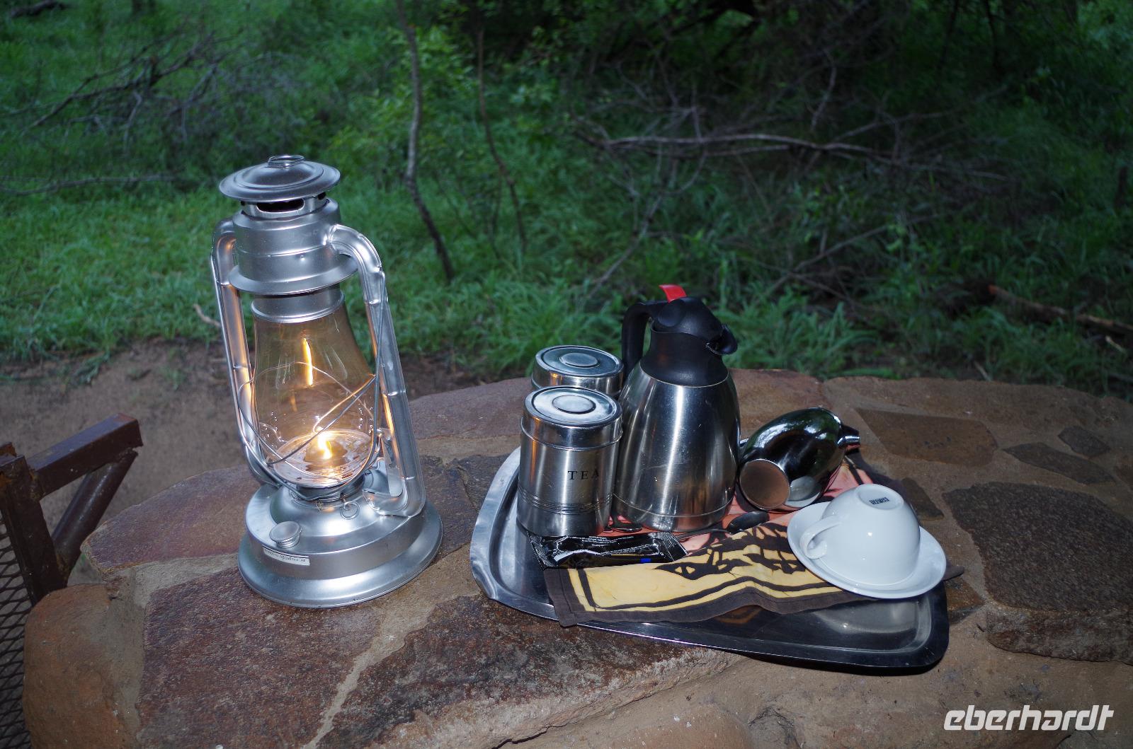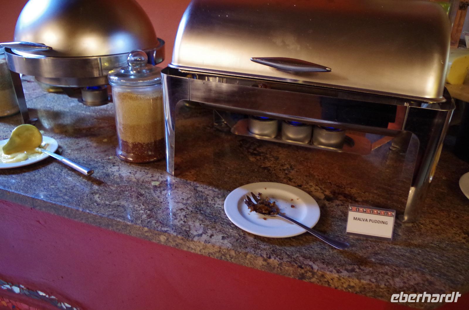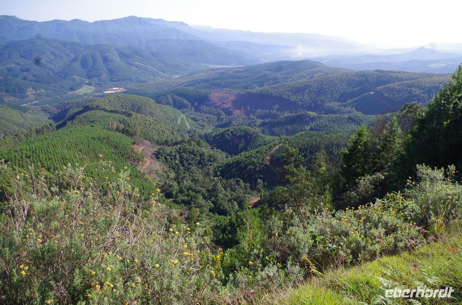 Die vergangene Nacht im halboffenen Steinhaus ist sicherlich für jeden Gast ein einmaliges besonderes Erlebnis! Wir werden persönlich von einem Mitarbeiter oder einer Mitarbeiterin des Stone Camps gegen 05.30 Uhr geweckt und erhalten ein kleines Frühstück mit Kaffee und Tee sowie einen leckeren Muffin. Bereits im Camp werden wir von der südostafrikanischen Antilopenart namens Nyala begrüßt. Diese fast schon zutraulichen Tiere fressen nur wenige Meter von uns entfernt gemütlich im Gras. Um 06.00 Uhr startet unsere morgendliche rund zweistündige Pirschfahrt im Mkhaya Game Reserve. Wir sehen unter anderem Gnus, Giraffen und weitere verschiedene Vogelarten. Gegen 08.00 Uhr genießen wir ein leckeres Frühstück im Stone Camp und tauschen uns darüber aus, wie wir die einzigartige Nacht verbracht und welche Tiere wir während der Safari gesehen haben. Wir können zumindest berichten, sowohl die Gäste als auch die Reisebegleitung haben in der vergangenen Nacht geschlafen. Rund eine Stunde später verstauen wir unsere Sachen und fahren zum gestrigen Treffpunkt, wo wir in unseren Bus umsteigen. Auf dem Weg zur Grenzstation im Swaziland und in Südafrika fahren wir durch Manzini und an der legislativen Hauptstadt Lohamba vorbei. Wir besuchen auch einen kleinen Markt für Kunsthandwerk und Souvenirs in Ezulwine. Unsere Fahrt führt uns weiter an der Hauptstadt Mbabane vom Swaziland vorbei durch Pigg's Peak. Gegen 14.00 Uhr reisen wir in Matsomo aus Swaziland aus und in Jeppe's Reef in Südafrika wieder ein. Das Grenzpersonal ist abermals eher touristenunfreundlich und wirkt extrem gelangweilt. Nun ja, solange wir unsere Ein- und Ausreisestempel erhalten, ist ja alles gut ;-) Langsam knurrt unser Magen, so dass wir am nächstgelegenen Einkaufszentrum in Malelan anhalten und uns mit Snacks und Getränken versorgen. Die Fahrt geht weiter zum 3-Sterne-Hotel "Misty Mountain Lodge" am Long Tom Pass zwischen Sabie und Lydenburg in Südafrika, wo wir gegen 17.30 Uhr einchecken. Wir befinden uns in der Provinz Mpumalanga, welche als "Ort der aufgehenden Sonne" bekannt und vom Lowveld-Busch und den großartigen Landschaftsformen der Hochebene geprägt ist. Der rund 20.000 Quadratkilometer große Krüger Nationalpark gehört ebenso zu dieser Provinz. Vor dem Abendessen stoßen wir gemeinsam auf den 65. Geburtstag eines Reisegasts an. Na dann, Prost und alles Gute zum Geburtstag! Zum Abendessen im Hotelrestaurant haben wir die Wahl zwischen Gemüsesuppe oder Dreierlei Fisch mit Pastete, Lachs und geräucherter Forelle als Vorspeise; Spaghetti Bolognese, Tagliatelle mit Pilz-Senf-Sahne-Soße, Steak mit Pfeffersoße oder Forellenfilet in Weißweinsoße mit Gemüse oder Salat und Reis, Kartoffelbrei aus Süßkartoffeln oder Pommes als Hauptspeise sowie Malva Pudding oder Eiscreme mit Schokosoße als Dessert. Guten Appetit, lassen wir es uns schmecken ;o) Wir gönnen uns noch ein Glas Wein auf der Terrasse, bevor wir uns wenig später eine angenehme Nacht wünschen.