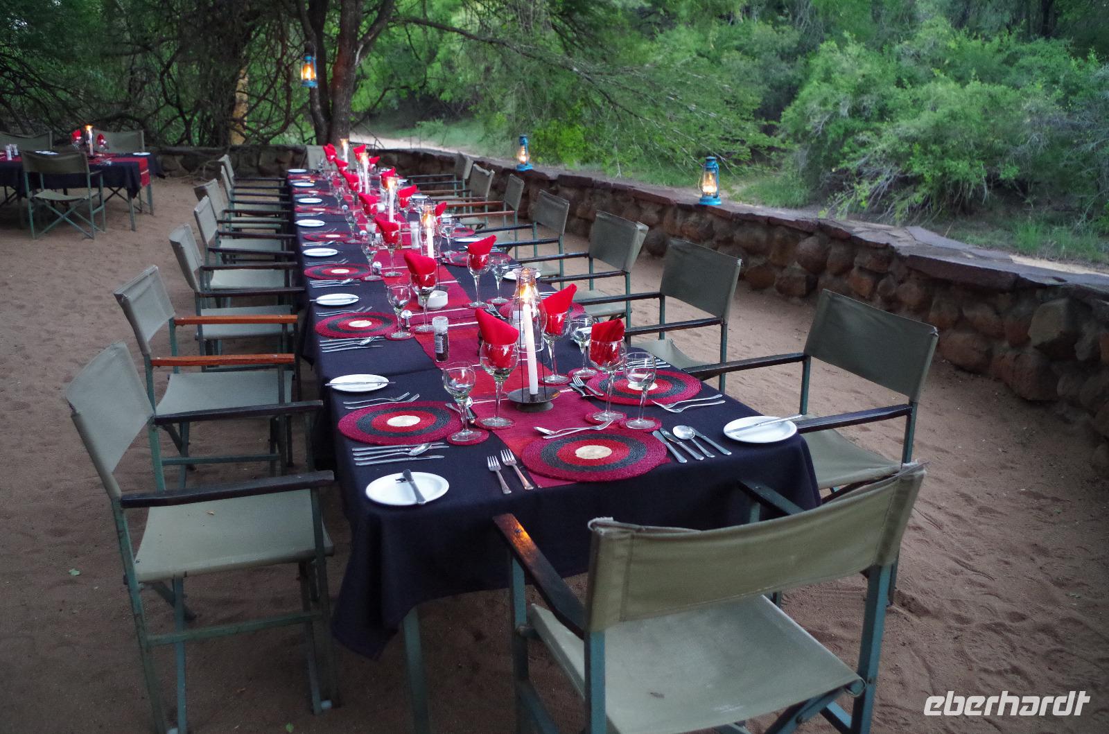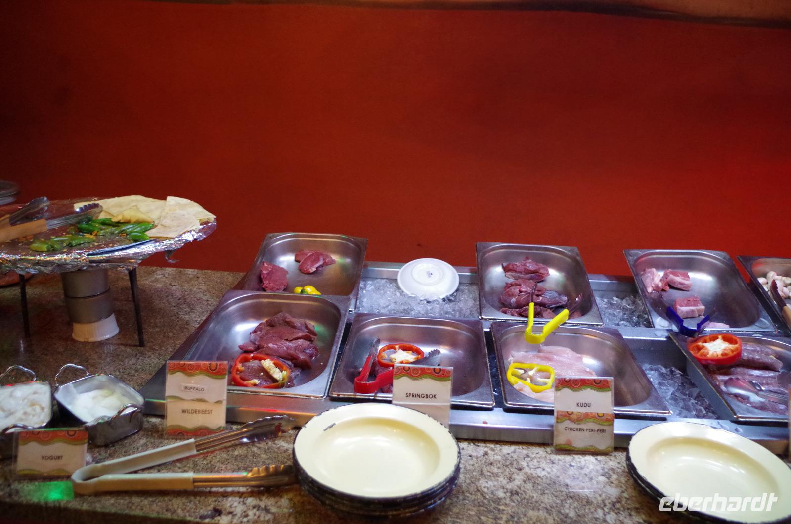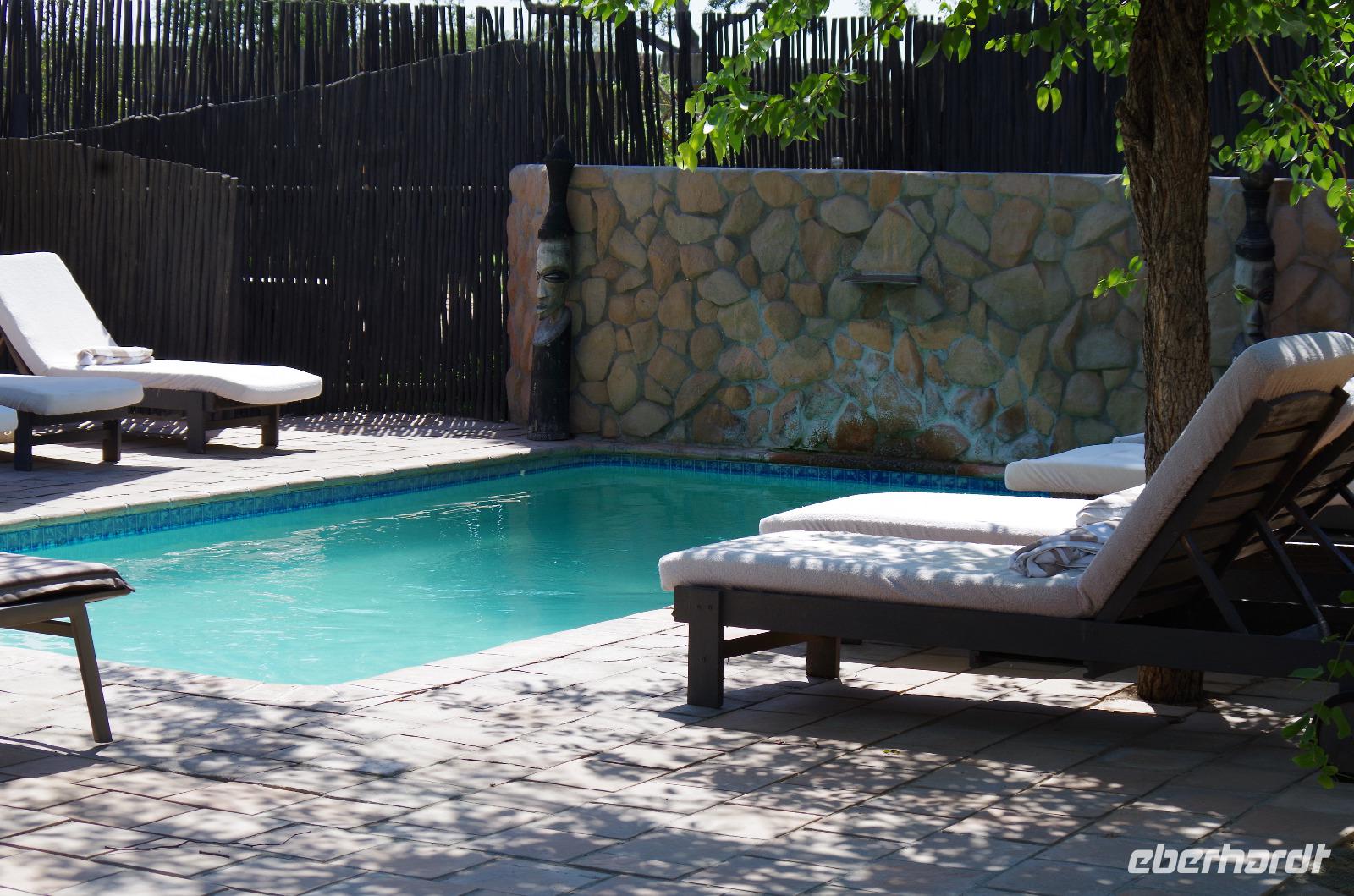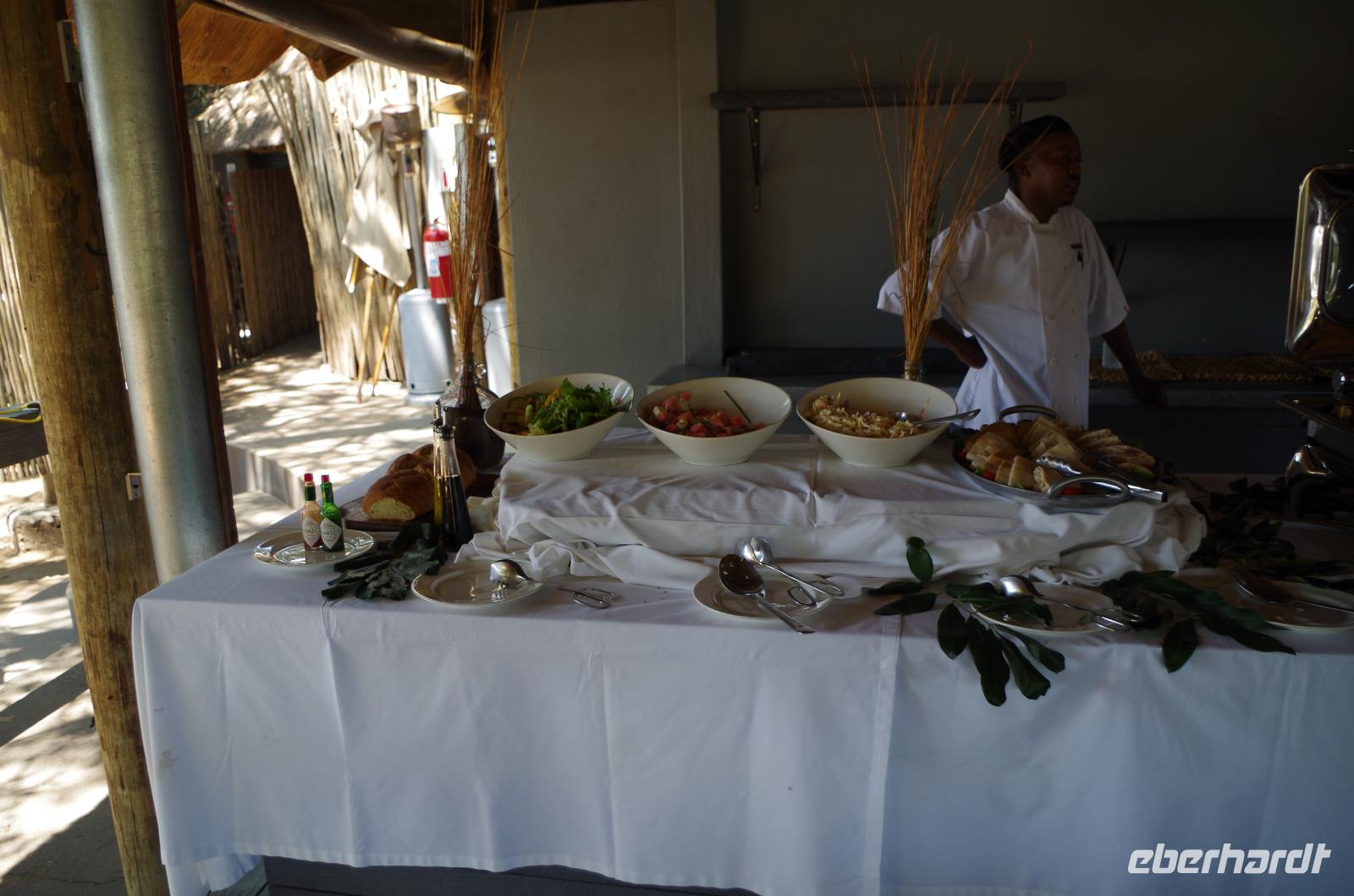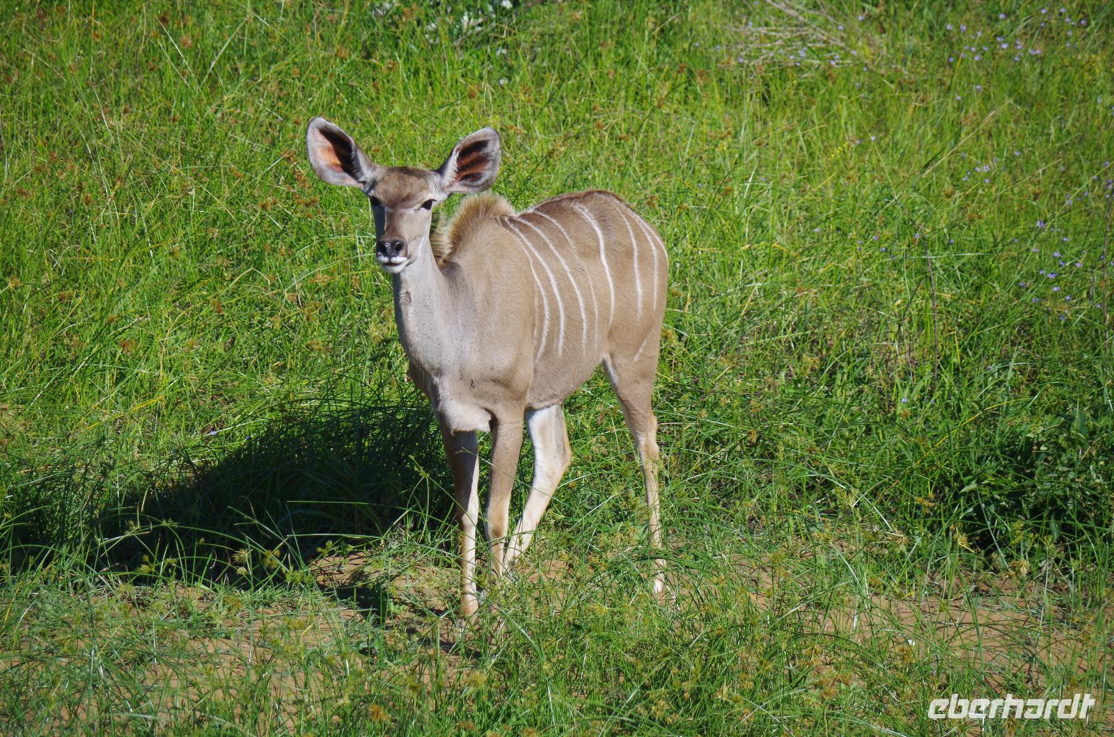 Die vergangene Nacht im halboffenen Steinhaus ist sicherlich für jeden Gast ein einmaliges besonderes Erlebnis! Wir werden persönlich von einem Mitarbeiter oder einer Mitarbeiterin des Stone Camps gegen 05.30 Uhr geweckt und erhalten ein kleines Frühstück mit Kaffee und Tee sowie einen leckeren Muffin. Bereits im Camp werden wir von der südostafrikanischen Antilopenart namens Nyala begrüßt. Diese fast schon zutraulichen Tiere fressen nur wenige Meter von uns entfernt gemütlich im Gras. Um 06.00 Uhr startet unsere morgendliche rund zweistündige Pirschfahrt im Mkhaya Game Reserve. Wir sehen unter anderem Gnus, Giraffen und weitere verschiedene Vogelarten. Gegen 08.00 Uhr genießen wir ein leckeres Frühstück im Stone Camp und tauschen uns darüber aus, wie wir die einzigartige Nacht verbracht und welche Tiere wir während der Safari gesehen haben. Wir können zumindest berichten, sowohl die Gäste als auch die Reisebegleitung haben in der vergangenen Nacht geschlafen. Rund eine Stunde später verstauen wir unsere Sachen und fahren zum gestrigen Treffpunkt, wo wir in unseren Bus umsteigen. Auf dem Weg zur Grenzstation im Swaziland und in Südafrika fahren wir durch Manzini und an der legislativen Hauptstadt Lohamba vorbei. Wir besuchen auch einen kleinen Markt für Kunsthandwerk und Souvenirs in Ezulwine. Unsere Fahrt führt uns weiter an der Hauptstadt Mbabane vom Swaziland vorbei durch Pigg's Peak. Gegen 14.00 Uhr reisen wir in Matsomo aus Swaziland aus und in Jeppe's Reef in Südafrika wieder ein. Das Grenzpersonal ist abermals eher touristenunfreundlich und wirkt extrem gelangweilt. Nun ja, solange wir unsere Ein- und Ausreisestempel erhalten, ist ja alles gut ;-) Langsam knurrt unser Magen, so dass wir am nächstgelegenen Einkaufszentrum in Malelan anhalten und uns mit Snacks und Getränken versorgen. Die Fahrt geht weiter zum 3-Sterne-Hotel "Misty Mountain Lodge" am Long Tom Pass zwischen Sabie und Lydenburg in Südafrika, wo wir gegen 17.30 Uhr einchecken. Wir befinden uns in der Provinz Mpumalanga, welche als "Ort der aufgehenden Sonne" bekannt und vom Lowveld-Busch und den großartigen Landschaftsformen der Hochebene geprägt ist. Der rund 20.000 Quadratkilometer große Krüger Nationalpark gehört ebenso zu dieser Provinz. Vor dem Abendessen stoßen wir gemeinsam auf den 65. Geburtstag eines Reisegasts an. Na dann, Prost und alles Gute zum Geburtstag! Zum Abendessen im Hotelrestaurant haben wir die Wahl zwischen Gemüsesuppe oder Dreierlei Fisch mit Pastete, Lachs und geräucherter Forelle als Vorspeise; Spaghetti Bolognese, Tagliatelle mit Pilz-Senf-Sahne-Soße, Steak mit Pfeffersoße oder Forellenfilet in Weißweinsoße mit Gemüse oder Salat und Reis, Kartoffelbrei aus Süßkartoffeln oder Pommes als Hauptspeise sowie Malva Pudding oder Eiscreme mit Schokosoße als Dessert. Guten Appetit, lassen wir es uns schmecken ;o) Wir gönnen uns noch ein Glas Wein auf der Terrasse, bevor wir uns wenig später eine angenehme Nacht wünschen.