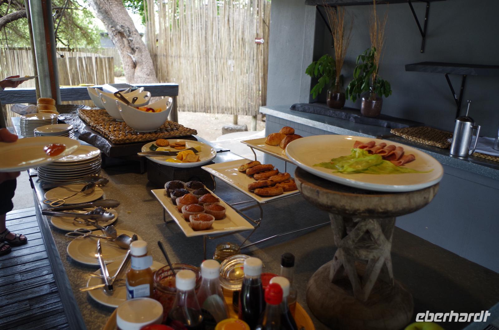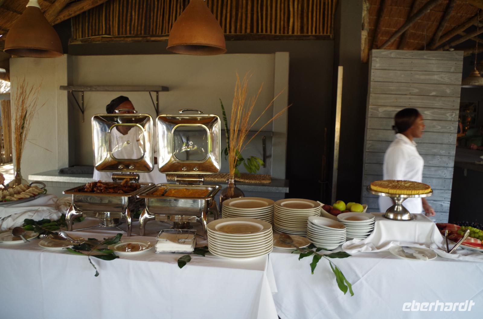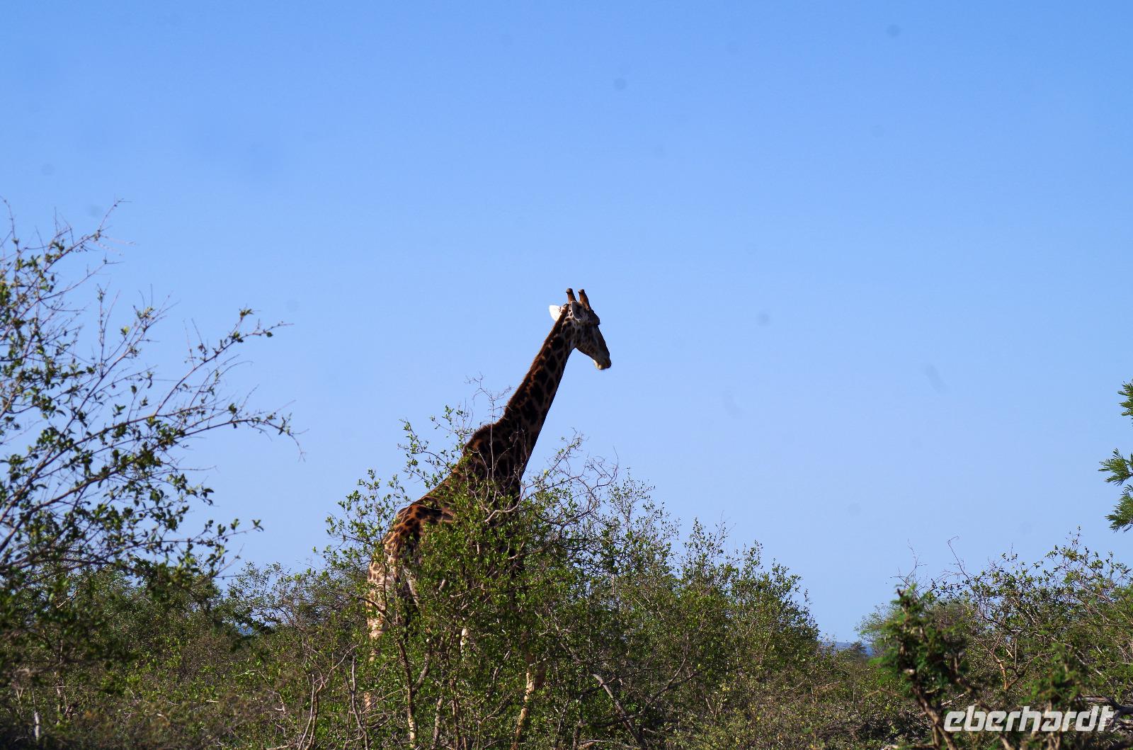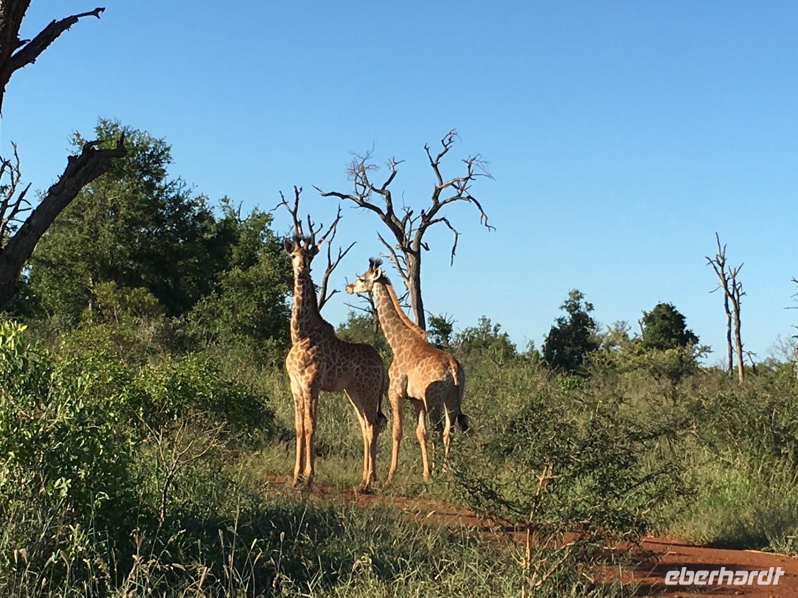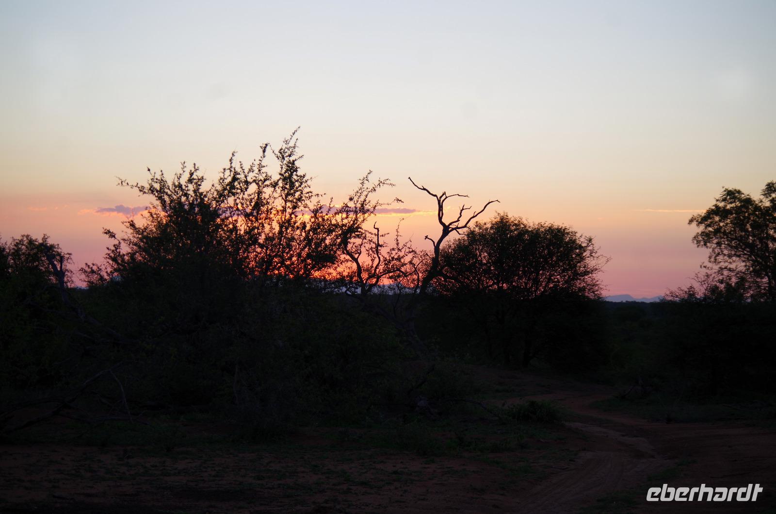 Heute haben wir wieder eine frühe Abfahrt, so dass wir uns ab 06.30 Uhr bei einem leckeren Frühstück und sonnigen Wetter einen guten Morgen wünschen. Unsere Koffer werden wenig später verladen und rund eine Stunde später fahren wir auf der berühmten rund vier Autostunden von Johannesburg entfernten Panorama Route entlang zum privaten Timbavati Naturreservat. Während der Fahrt erzählt uns Sonet unter anderem, dass die Nationalflagge von Fred Brownell entworfen und 1994 eingeweiht wurde. Die Farben und das Design stellen die wichtigsten Elemente der südafrikanischen Geschichte dar. Das im Jahr 2000 offiziell eingeweihte Staatswappen hat das bisherige Wappen von 1910 ersetzt. Sein Motto kann mit "Unterschiedliche Menschen vereinen" übersetzt werden und darauf hinweisen, sich als eine Nation mit Nationalstolz zu vereinen. Unterwegs legen wir mehrere spektakuläre Foto-Stopps von rund 15 bis 30 Minuten ein. Zunächst genießen wir einen großartigen Blick am "God's Window". Weiter geht es zum Naturphänomen "Bourke's Luck Potholes", wo durch strudelndes Wasser zylinderförmige Felshohlräume entstanden sind. Zuletzt stoppen wir am Aussichtspunkt "Three Rondavels" mit Blick auf den Blyde River Canyon. Ein "Rondavel" ist eine typisch afrikanische Rundhütte. Um die berühmte "Nadelkissen-Protea" zu fotografieren, halten wir noch für einen superkurzen Zwischenstopp. Dann fahren wir zum Hoedspruit Eastgate Airport, welchen wir gegen 12.15 Uhr erreichen. Dieser Flughafen wird sowohl für Flugverbindungen ab/an Johannesburg als auch als Treffpunkt für Safari-Touren in private Naturreservate genutzt. Wir steigen mit unserem kompletten Gepäck in zwei kleinere Personenbusse von bis zu neun Personen der Simbavati River Lodge um. Über eine Stunde später checken wir im 4-Sterne-Hotel "Simbavati River Lodge" im Timbavati Naturreservat ein. Die halbstaatliche Organisation "South African National Parks", kurz SANParks, leitet die südafrikanischen Nationalparks. Der Hauptsitz befindet sich in Tshwane. Die Organisation sorgt dafür, dass der Standard aller Unterkünfte und Einrichtungen gleichbleibt und mit relativ niedrigen Kosten für Touristen versehen ist, um auch Individualgästen eine Erkundung zu ermöglichen. Nachdem wir unsere Quartiere bezogen haben, erhalten wir ein leichtes köstliches Mittagessen und ab 15.00 Uhr besteht die Möglichkeit, sich einen Tee oder Kaffee sowie Gebäck zur High Tea Time zu gönnen. Bevor es endlich losgeht, kommen hier noch ein paar Fakten zum 1927 gegründeten und somit ersten und ältesten Nationalpark Südafrikas. Benannt wurde der Park nach seinem Gründervater Paul Kruger, welcher sich maßgeblich für die Erhaltung der südafrikanischen Tierwelt eingesetzt hatte. Die Ausdehnung von Nord nach Süd beträgt rund 350 Kilometer, von Ost nach West circa 60 Kilometer. Um sich die Größe bildlich besser vorstellen zu können, ist die Parkfläche gleich dem Bundesland Rheinland-Pfalz. Aufgrund internationaler Vereinbarungen ist ein grenzüberschreitendes Naturschutzgebiet entstanden. Rund 500 Kilometer von Johannesburg entfernt befindet sich das Krüger Gate. In der Zeit von Sonnenuntergang bis Sonnenaufgang sind die Restcamps geschlossen. Das Straßennetz im Park mit seinen circa 2.000 Kilometern langen Straßen, wovon rund 700 Kilometer asphaltiert sind, ist gut ausgebaut. Unsere erste Pirschfahrt im offenem Geländewagen mit Fahrer und Spurenleser beginnt um 16.30 Uhr und dauert mit Sundowner rund drei Stunden. Wir sind schon ganz aufgeregt! Welche Tiere werden wir heute sehen? Immerhin leben im Krüger Nationalpark ein Vielzahl verschiedener Tierarten. Es werden mehr als 507 Vogelgattungen, 34 Amphibienarten, 114 Reptilien, 49 Fische, 227 Schmetterlinge und rund 147 Säugetiere unterschieden. Zu den Säugetieren gehören auch die sogenannten "BIG FIVE" dazu: Nashorn, Leopard, Löwe, Elefant und Büffel. Unsere Chancen stehen wirklich gut, nicht nur die "BIG FIVE" zu sehen, sondern auch die "LITTLE FIVE", wozu der Rüsselspringer, der Ameisenlöwe, der Büffelweber, der Nashornkäfer und die Leopardenschildkröte zählen. Aber nicht nur die Tierwelt ist einzigartig, auch die Pflanzenwelt beindruckt uns sehr. Im Krüger Nationalpark sind bis zu 336 verschiedene Baumarten und über 2.000 unterschiedliche Pflanzenarten vertreten. Am bekanntesten sind sicherlich der Affenbrotbaum, der Marulabaum, der Fieberbaum, der Mopane, der Afrikanische Leberwurstbaum und vielleicht auch der Drehknopfdorn. Besonders der Marulabaum oder besser gesagt die Früchte sollten uns schon bekannt vorkommen, da daraus der leckere Cremelikör Amarula gewonnen wird. Wir erfahren unter anderem, dass diese laubreichen Bäume mit einer jährlich tragenden Anzahl von über 500 Kilogramm Früchten rund 9 bis 18 Meter hoch werden. In der Regel hängen männliche und weibliche Früchte nicht am gleichen Baum. Die weiblichen Bäume tragen die typischen Marula-Früchte, welche im südafrikanischen Hochsommer im Februar erntereif sind. Doch wie schaut so eine Frucht eigentlich aus? Die erntereifen goldgelben länglichen Früchte sind ungefähr so groß wie eine mittelgroße Pflaume und besitzen eine ledernde Schale. Im Fruchtinneren befindet sich ein großer Stein mit zwei bis drei sehr ölhaltigen Kernen. Das Fruchtfleisch ist weiß und faserig. Wie wird eigentlich der Amarula-Likör hergestellt? Wir erhalten von Sonet eine Kurzfassung zur Herstellung: Die Früchte werden geerntet, die Kerne entfernt, das Fruchtfleisch herausgepresst und vergoren. Im nächsten Schritt erfolgt die doppelte Destillation des frischgewonnen Marula-Weins. Nach der rund zweijährigen Lagerung in Eichenholzfässern wird der fertige Likör unter Zugabe von Zucker und Sahne in Flaschen abgefüllt. Wir freuen uns nun einfach auf die Safari, also los geht's! Unsere Fahrer heißen Clement und Trabo, die Spurenleser Mborgeni und Casuely. Die Gruppe sowie Reiseleitung und Reisebegleitung teilen sich wieder auf zwei ver
