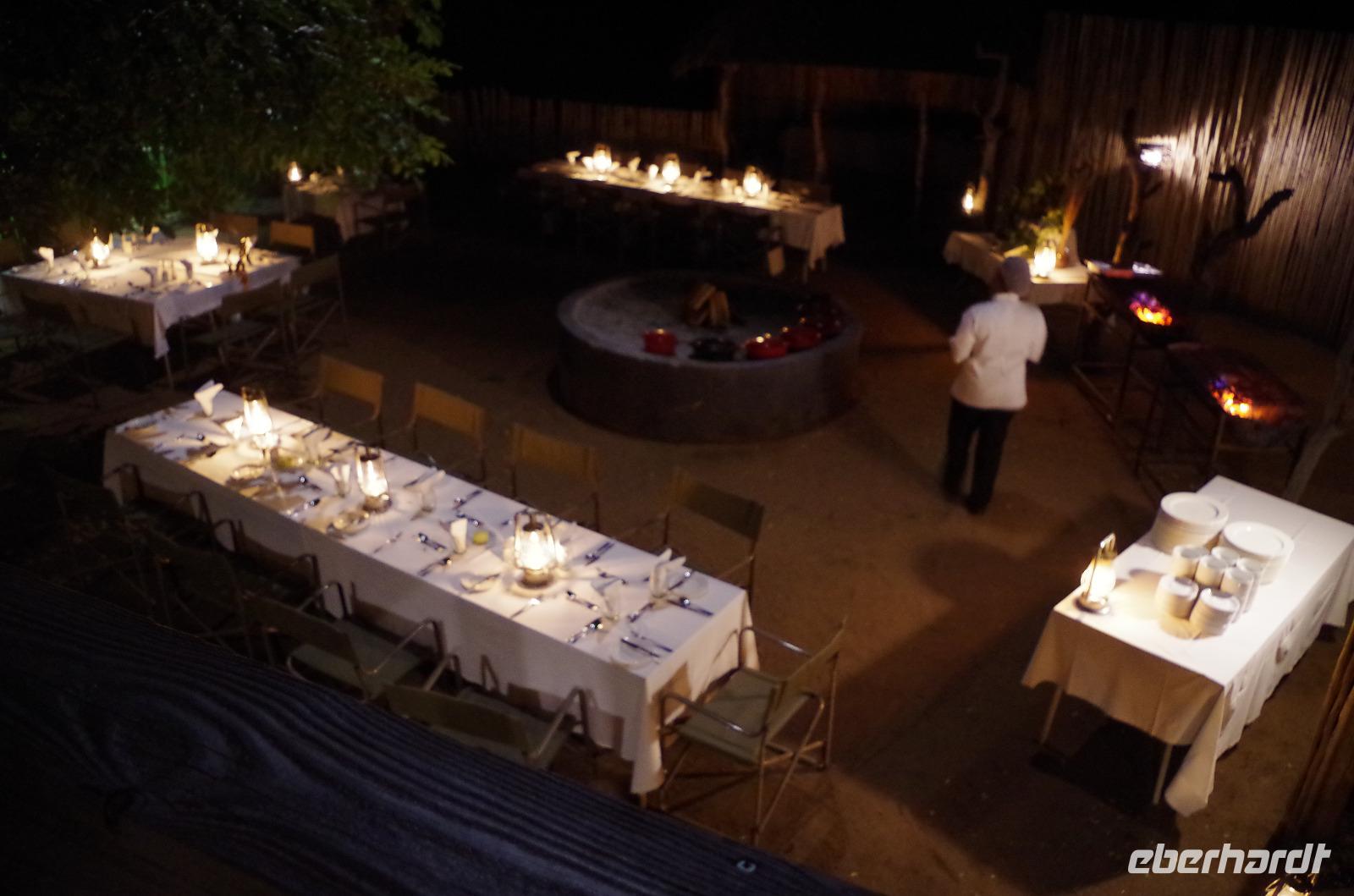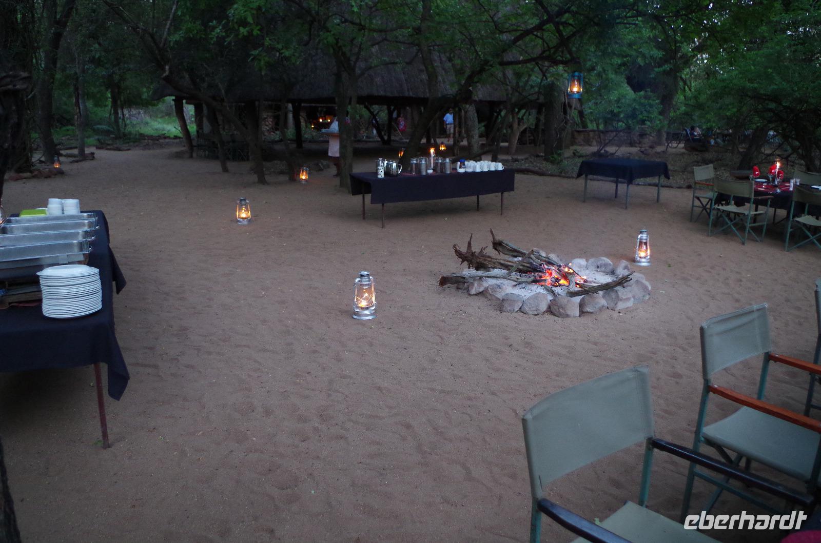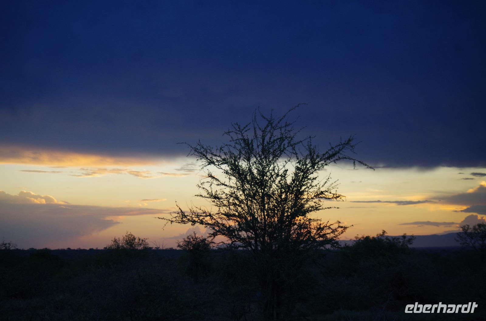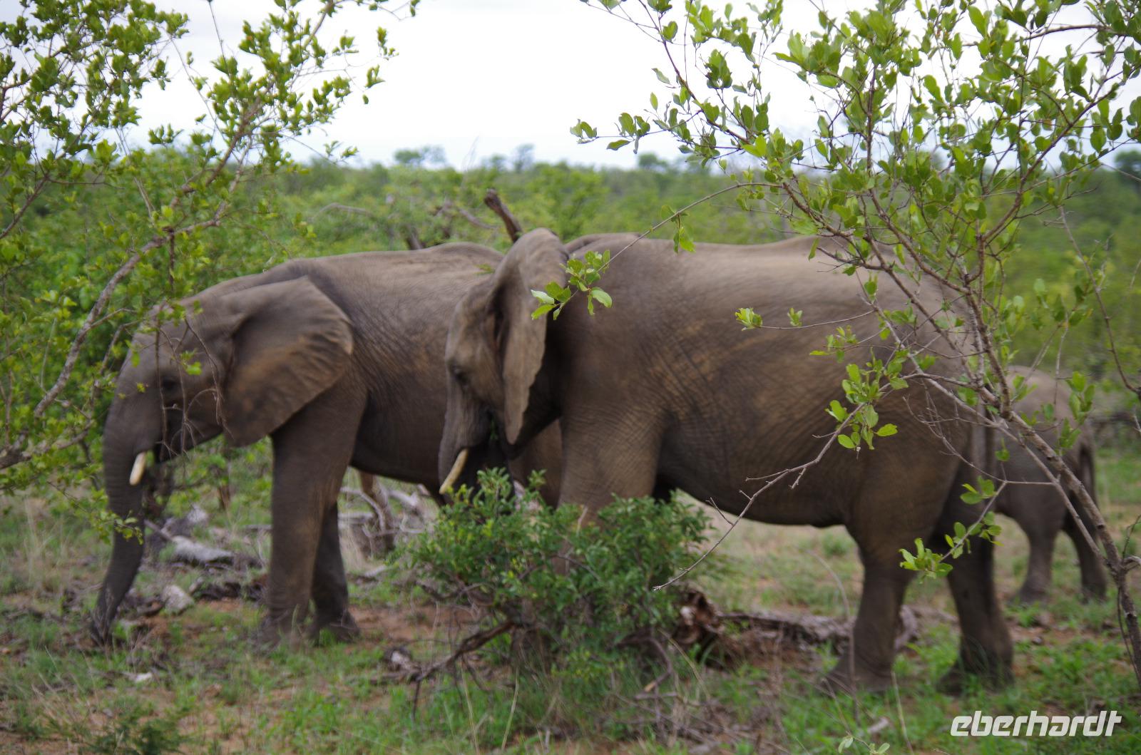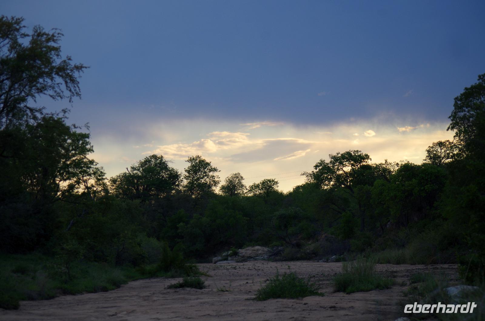 Viele Tiere können am frühen Morgen und in der Abenddämmerung beobachtet werden. Also heißt es abermals "der frühe Vogel fängt den Wurm" oder so :-) Wir werden um 05.00 Uhr durch einen Weckruf geweckt und bei der Rezeption mit Tee und Kaffee begrüßt. Rund eine halbe Stunde später beginnt die zweite Pirschfahrt. Zum Morgen sind die Temperaturen eher angenehm, eine Jacke wird nicht wirklich benötigt. Heute sollen es noch bis zu 39 Grad heiß werden, wir sind gespannt!!! Während unserer morgendlichen Pirschfahrt sehen wir leider nicht so viele Tiere wie gestern. Dies liegt wohl daran, dass sie alle noch schlafen *grins* Unser Spurenleser zeigt uns verschiedene Tierspuren unterschiedlicher Größe und Form. Zum Beispiel ist die Pfote eines Löwen rund 14 cm groß, eines Leoparden rund 7,1 cm, eines Breitmaulnashorns 30 cm, eines Spitzmaulnashorns 24 cm, eines Elefanten 50 cm und eines Büffels 18 cm. Unser Fahrer erklärt uns, dass wir vorrangig Breitmaulnashörner sehen werden, da Spitzmaulnashörner zwar auch im Nationalpark zu finden sind, aber diese, wie wir bereits wissen, eher selten entdeckt werden. Am Morgen schauen wir müden Hyänen beim Schlafen zu und fotografieren verschiedene Vogelarten. Die andere Gruppe hat sogar noch ein wenig mehr Glück, in dem sie die eher selten vorkommende "Afrikanische Zibetkatze" sehen. Interessant ist sicher für den einen oder anderen Reisegast auch, wie viele Tiere einer Art im Krüger Nationalpark vorkommen, oder? Die genaue Anzahl der verschiedenen Tierarten ist sicherlich der Parkleitung bekannt, sie wird aber nicht an Touristen übermittelt. Dies dient besonders auch dem Schutz der Tiere vor Wilderern. Laut Tierzählung vom Krüger National Park, kurz KNP, leben zum Beispiel ungefähr bis zu 1.750 Löwen, rund 1.000 Leoparden, circa 13.750 Elefanten und mehr als 37.000 Büffel im Park. Während der Safari legen wir eine Frühstückspause ein und werden mit Tee, Kaffee und Gebäck versorgt. In der Lodge erhalten wir dann noch ein vollwertiges Frühstück. Die Zeit bis zu unserer abendlichen Pirschfahrt vertreiben wir uns mit entspannen, im Pool schwimmen oder einem interessanten Buch lesen. Um 13.30 Uhr wird uns ein leichtes Mittagessen auf der Hotelterrasse serviert und später zur High Tea Time wieder Kaffee, Tee und Gebäck. Es ist nun wirklich sehr heiß, so dass wir viel Wasser trinken und uns vorrangig im Schatten aufhalten. Um 16.30 Uhr startet unsere dritte Pirschfahrt, wo wir endlich eine Vielzahl an Elefanten zu Gesicht bekommen, ein großartiger Anblick! Die Tagesbeschäftigung eines Elefanten besteht darin, hauptsächlich zu fressen und zu trinken, wobei der Tagesbedarf rund 200 Liter Wasser und bis zu 250 Kilogramm Gras beträgt. Wir erfahren von unserem Fahrer, dass die Bullen die Herden mit Beginn der Pubertät verlassen und eine kleine Junggesellengruppe bilden. Wir sehen zum Nachmittag unter anderem noch mehr Elefanten, zwei Büffel, eine Leopardenschildkröte und einen Steinbock. Besonders die Beobachtung zweier riesiger männlicher Büffel ist sehr spannend, da diese Tiere aufgrund ihrer Unberechenbarkeit zu den gefährlichsten Wildtieren Afrikas zählen. Zudem haben wir ein kleines Problem mit dem Anlasser des Jeeps, wobei vor allem die Reisebegleitung ein klein wenig ins Schwitzen gerät, nachdem ihr der Fahrer mitteilt, dass sich die Ersatzbatterie unter ihrem Sitz befindet und sie somit aufstehen und aus dem Fahrzeug aussteigen müsste. Als ernstzunehmende Vorsichtsmaßnahme ist es den Gästen eigentlich nicht erlaubt, während der Safari aufzustehen. Uns wird mit Pirschfahrtbeginn erklärt, dass die Wildtiere einen Jeep mit sitzenden Personen als großes Ganzes wahrnehmen. Sobald eine Person aufsteht, ist es kein großes Ganzes mehr, das Wildtier fühlt sich unter Umständen bedroht und attackiert die Menschen. Da bleiben wir doch lieber sitzen und halten uns zu unserer eigenen Sicherheit an diese Vorsichtsmaßnahme. Zudem sollten sich die Arme im Jeep befinden, was auch damit zu tun hat, dass wir teilweise durch dichtes Gebüsch und ziemlich oft auch unter tiefhängenden Bäumen hindurch fahren, wobei wir unsere heraushängenden Arme und Hände aufkratzen könnten. Kommen wir aber zurück zu den bis zu 1,4 Meter großen und rund 800 Kilogramm starken Büffeln! Unser Fahrer erzählt uns, dass sie als soziale Wildtiere in Herden mit bis zu 100 Büffeln leben, wobei ältere Büffel oftmals allein oder in kleinen Gruppen unterwegs sind. Somit geht unser Fahrer auch davon aus, dass die zwei Büffel, welche uns über den Weg laufen, schon älter sein müssen. Büffel halten sich vorwiegend im Grasland in der Nähe von Wasserstellen auf. Nun steht aber noch die Frage im Raum, müssen wir die Batterie wechseln oder nicht? Zum Glück springt der Motor nach mehrmaligen Versuchen von selbst wieder an und die Reisebegleitung kann sich etwas ruhiger zurücklehnen ;o) Da unsere zwei Gruppen zu weit entfernt voneinander fahren, werden wir heute auch getrennte Sundowner erleben. Das Wetter schaut weniger gut aus, in weiter Ferne blitzt und donnert es schon! Es scheint auch eine Regenwand auf uns zuzusteuern! Wir fahren wieder zum Camp zurück und sind zu einem leckeren südafrikanischen Barbecue, auch "Braais" genannt, am Lagerfeuer eingeladen. Die Tische sind in einer durch Eckpfeiler geschützten runden Fläche namens "Boma" unter dem sternenklarem Himmel am Lagerfeuer angeordnet. Unsere Fahrer Clement und Trabo sitzen heute mit uns am Tisch. Wir erfahren weitere spannende Informationen über die südafrikanische Tierwelt sowie das Leben als Fahrer und Guide im Nationalpark. Ein spannender Tag geht zu Ende! Wer möchte, kann morgen an einer weiteren morgendlichen Pirschfahrt teilnehmen oder ganz entspannt ausschlafen.