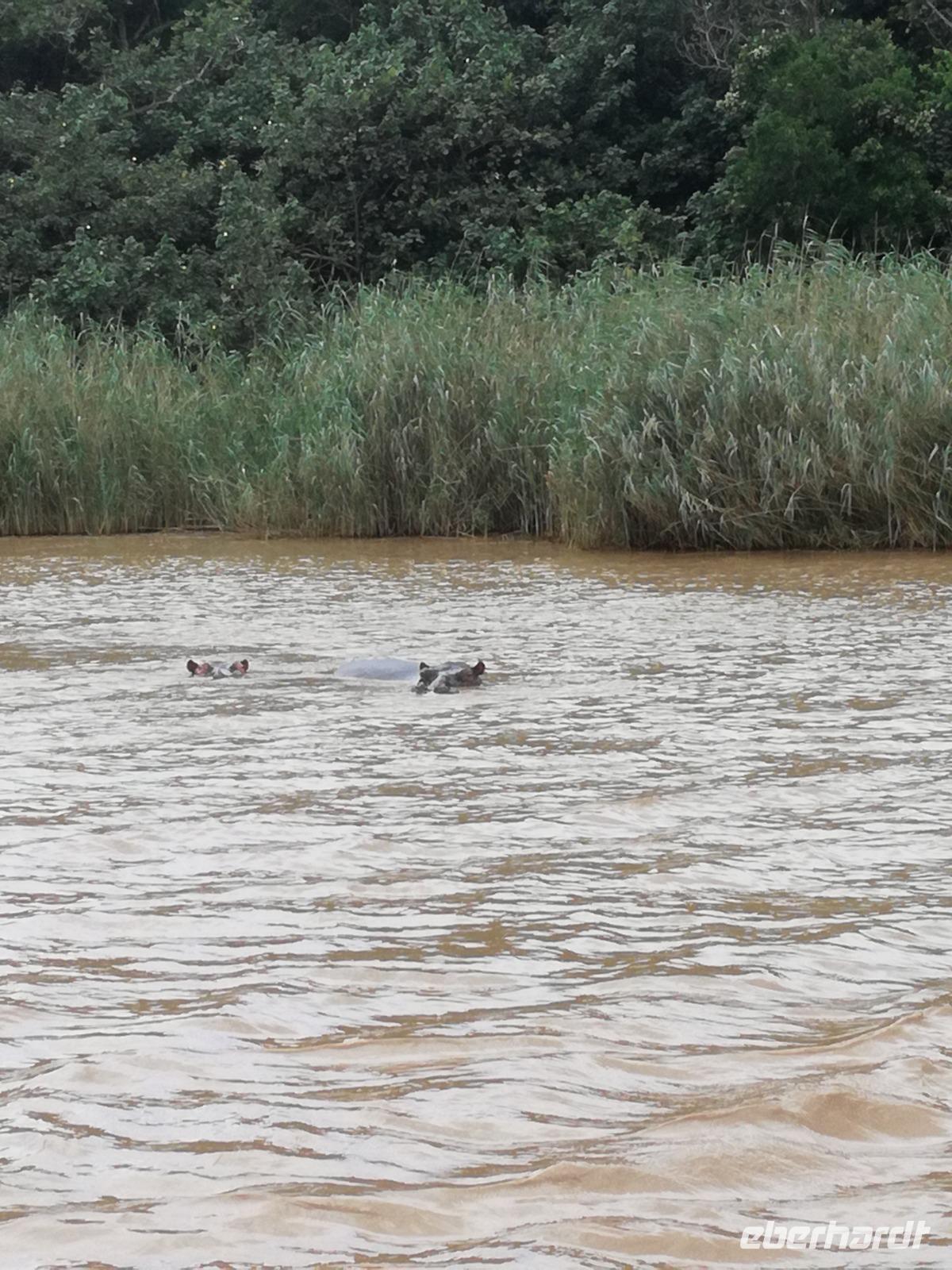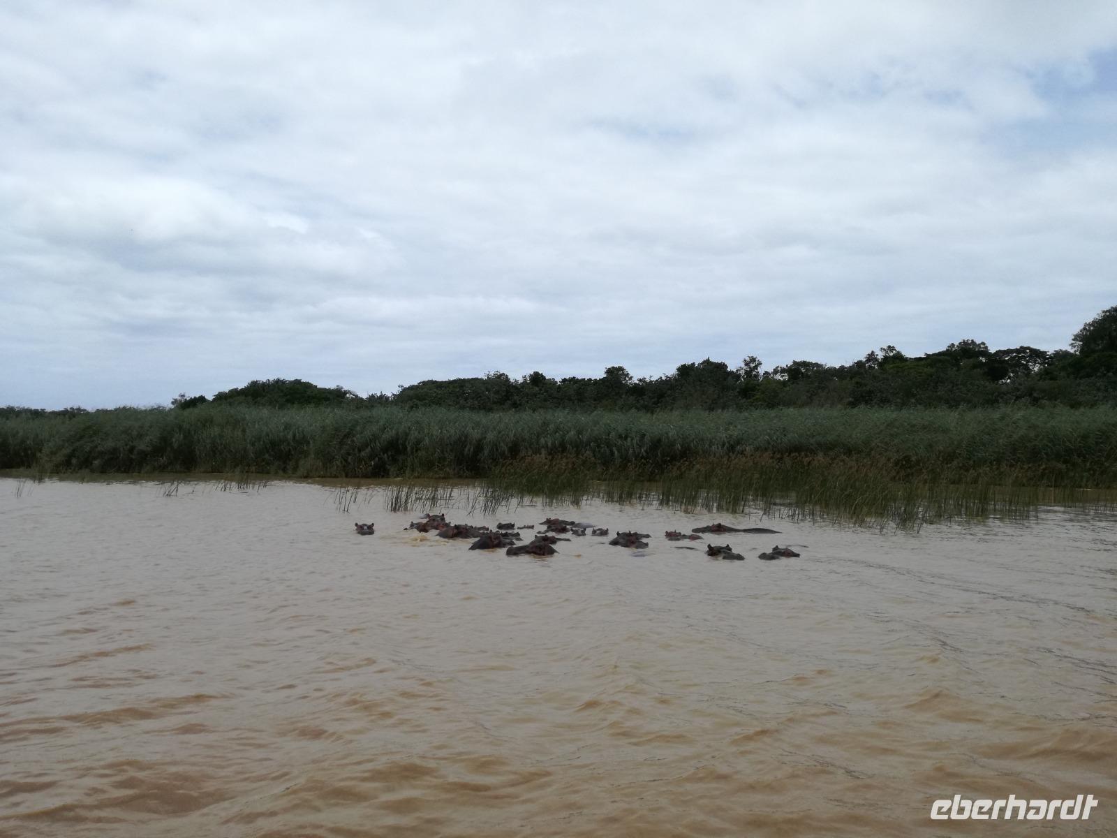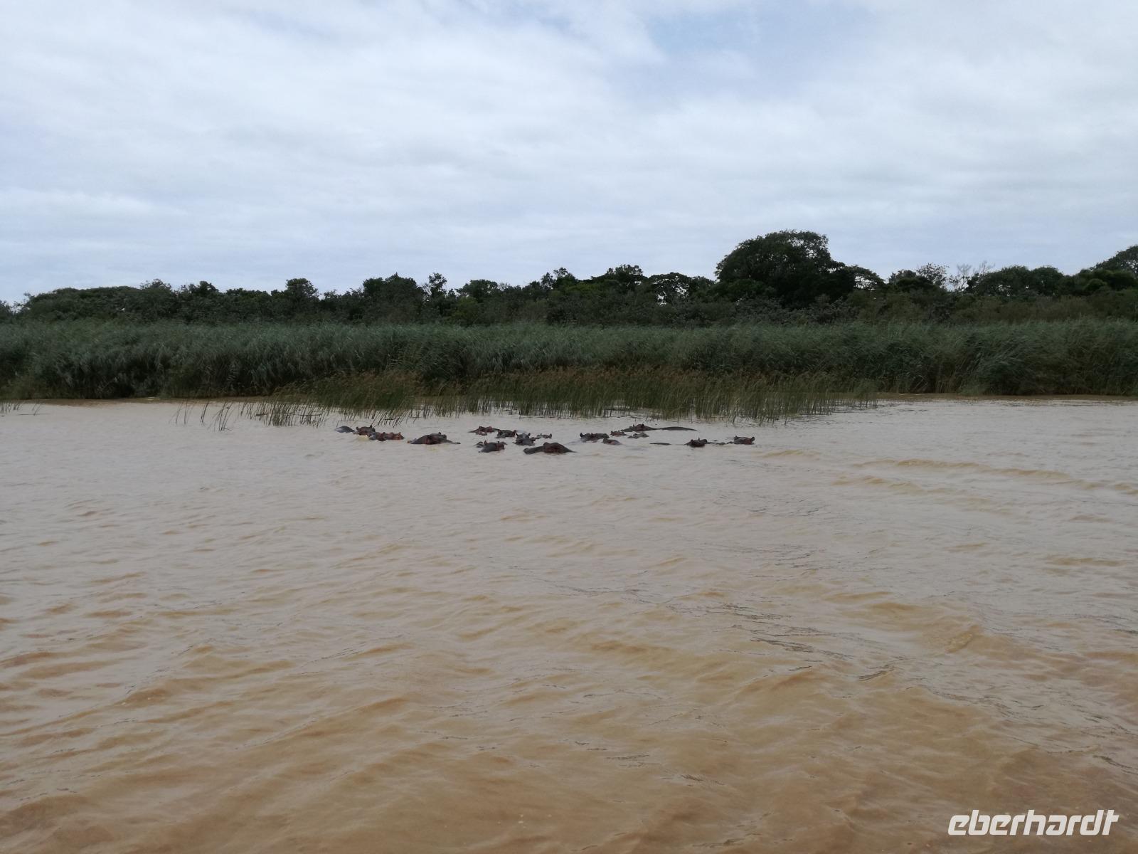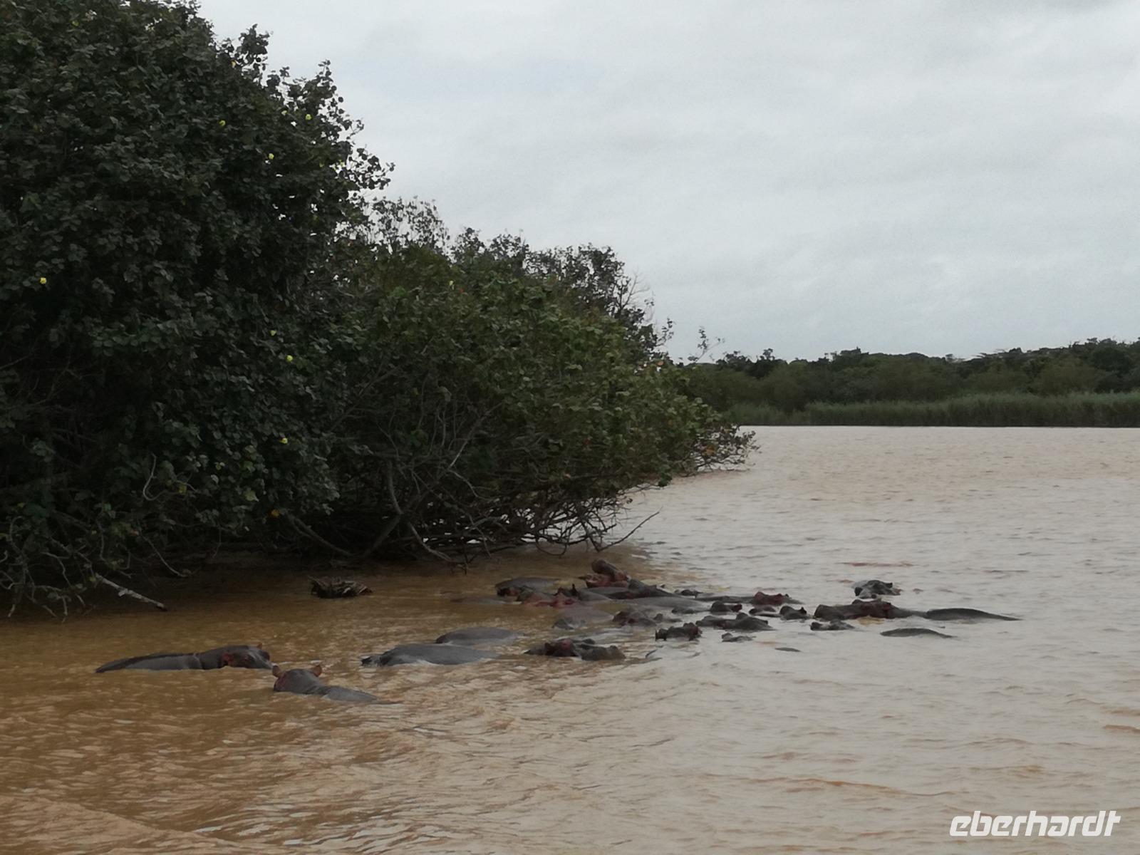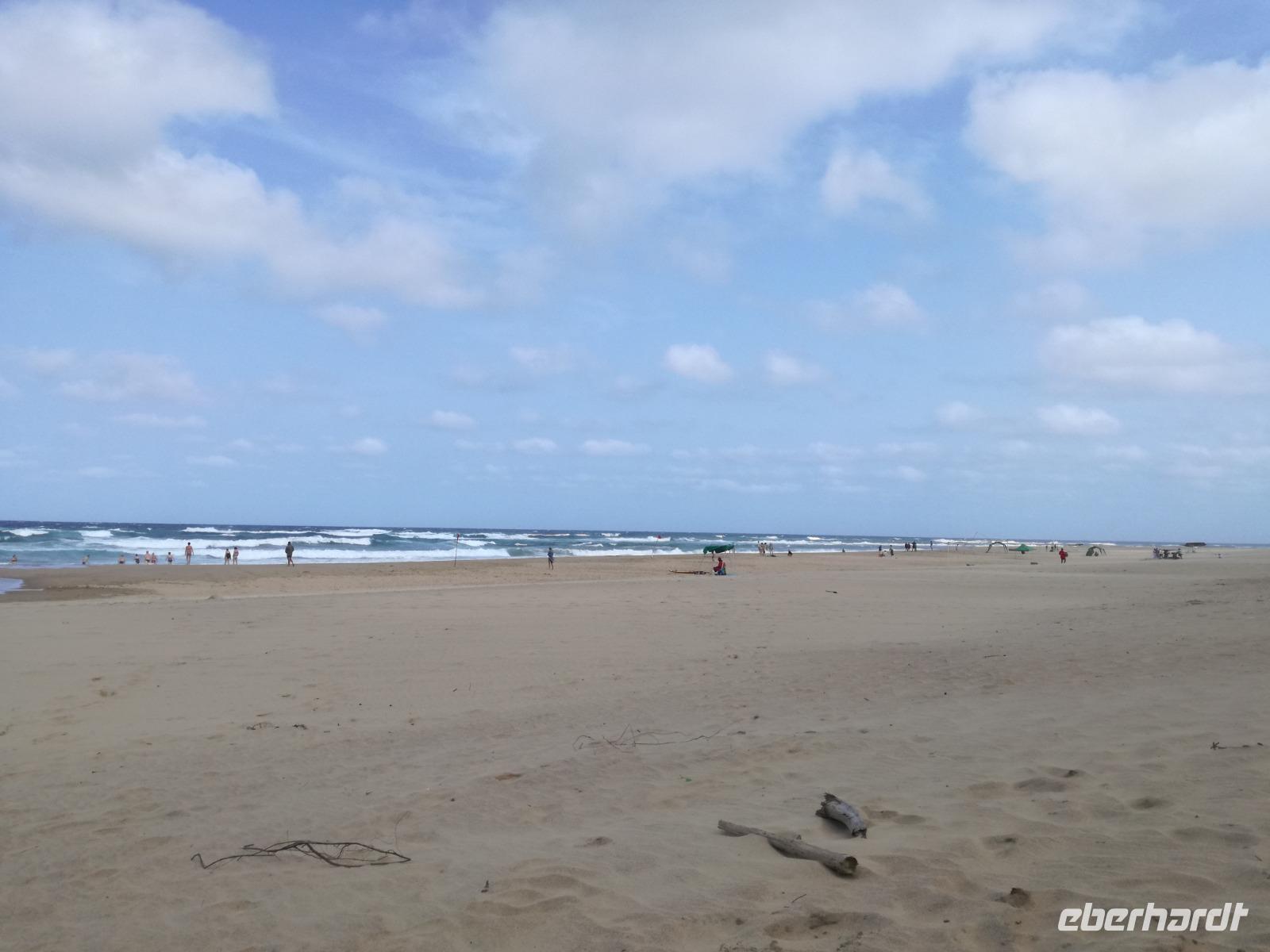 Diesen Morgen konnten wir etwas länger schlafen und genossen das Frühstück in unserer romantischen Umgebung. Nach dem Frühstück brachen wir auf und spazierten bis zur Anlegestelle unseres Bootes. Unsere Bootstour sollte entlang eines Seitenarmes des St. Lucia Lakes gehen. Also shipperten wir los und bereits nach wenigen Minuten entdecken wir das erste Hippopotamus bzw. Nilpferd bzw. Flusspferd bzw. Hippo. Im weiteren Verlauf konnten wir noch weitere Gruppen von Hippos, Krokodile, Blauwangenspint, Gelbweber und auch einen Schreiseeadler. Nach gut 90 Minuten war eine wunderschöne Bootstour beendet und wir gingen zurück an Land. Hier gab es erstmal etwas Freizeit im schönen Touristenörtchen St. Lucia. Vielen nutzen die Zeit zum bummeln oder zum Essen. Wir testeten zum Beispiel frische Ananas am Stil aus der Region oder frischen Mangos an einem der vielen Straßenständen. Nach der Mittagspause fuhren wir dann zum Cape Vidal. Unsere Route führte uns durch den iSimangalisco Wetland Park. Unterwegs sehen wir weitere Tiere wie Warzenschweine, Zebras, Affen, Giraffe, Büffel oder Knus. Einen Foto-Stopp legen wir am Mfabeni Lookout ein. Sonet berichtet uns, dass der iSimangaliso Wetland Park im nördlichen KwaZulu-Natal liegt und nur über St. Lucia erreichbar ist. Der rund 40 Kilometer lange Lake St Lucia ist umgeben von Gras- und Buschland sowie Mangrovensümpfen. Angekommen am Cape Vidal heißt es auch schon relaxen am Strand oder schwimmen im Meer. Allerdings spielte das Wetter nicht sonderlich mit, da es sehr windig war. Aber wir ließen unseren Strandtag nicht vermiesen. Einige Gäste schwimmen im Meer, was nur im Bereich der roten Fahnen erlaubt ist. Ein Rettungsschwimmerteam für den Notfall ist ebenfalls anwesend. Andere hingegen spazieren am Strand entlang oder genossen die steife Brise am Strand. Am Abend ließen wir bei einem optionalen Abendessen den Tag bei frischem Fisch und Seafood im örtlichen Restaurant Ocean Basket ausklingen.