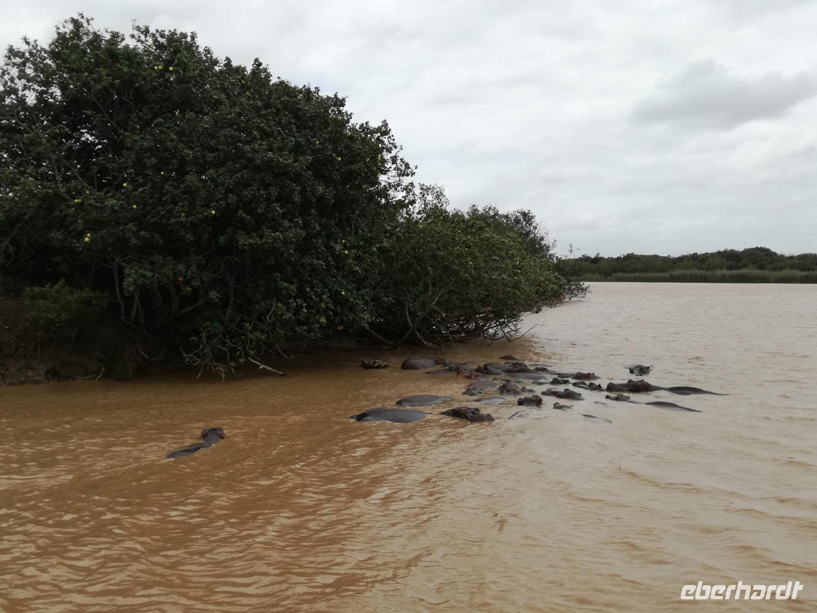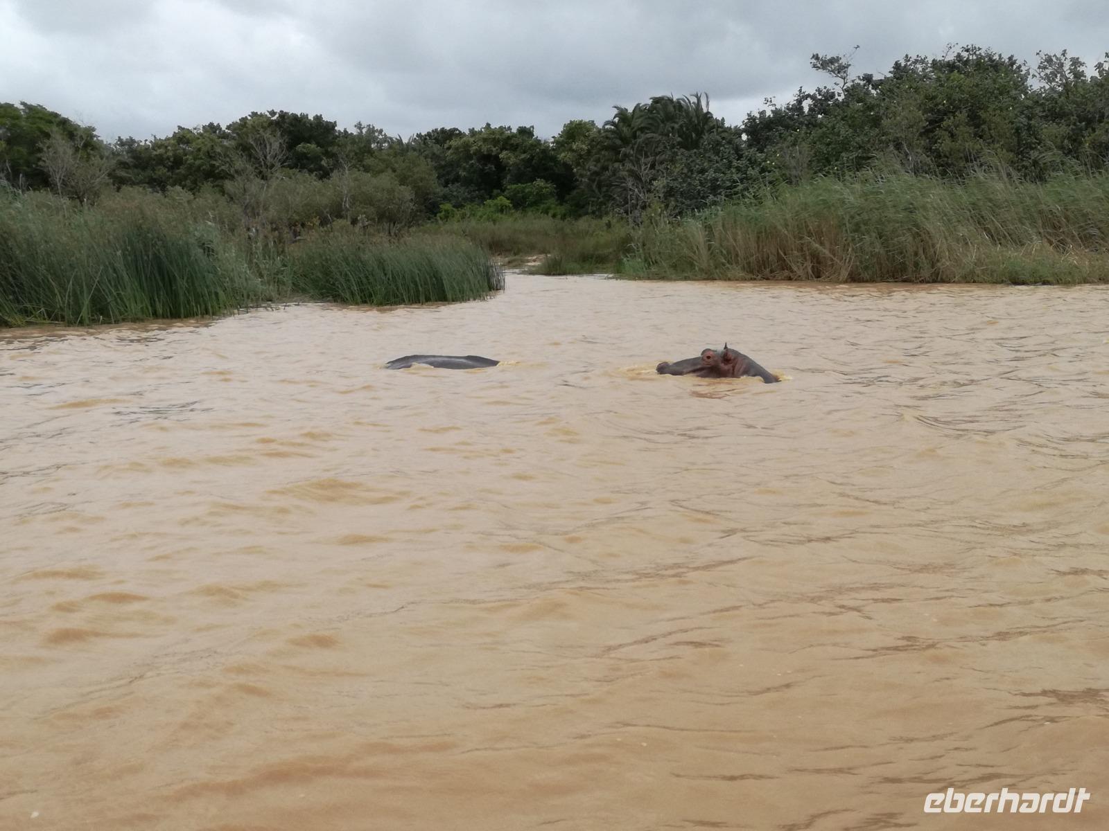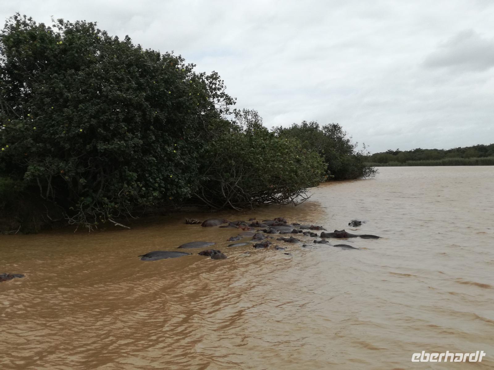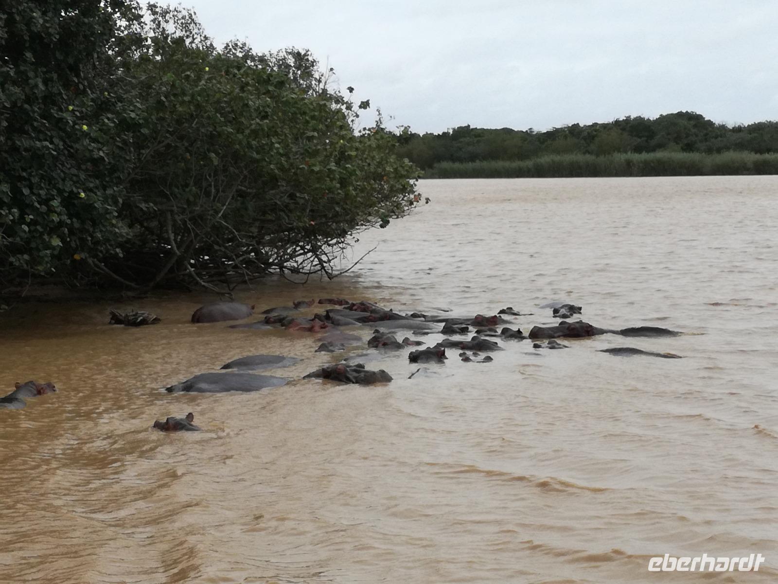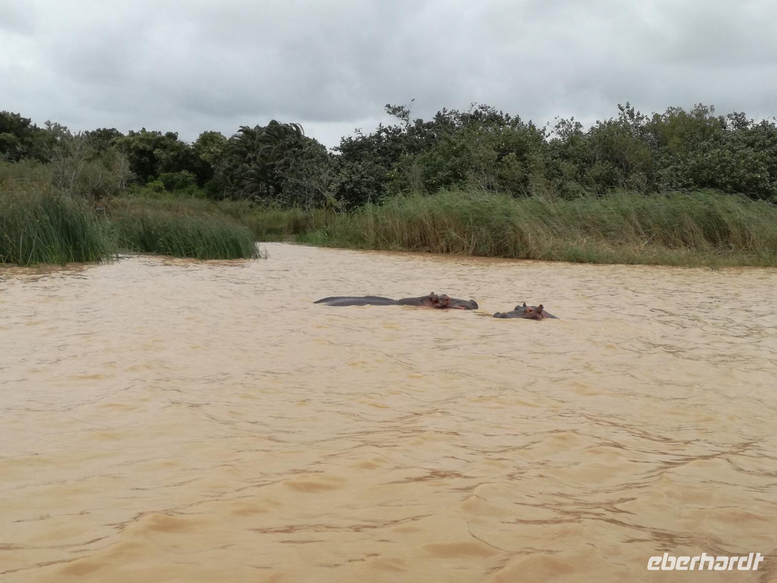 Diesen Morgen konnten wir etwas länger schlafen und genossen das Frühstück in unserer romantischen Umgebung. Nach dem Frühstück brachen wir auf und spazierten bis zur Anlegestelle unseres Bootes. Unsere Bootstour sollte entlang eines Seitenarmes des St. Lucia Lakes gehen. Also shipperten wir los und bereits nach wenigen Minuten entdecken wir das erste Hippopotamus bzw. Nilpferd bzw. Flusspferd bzw. Hippo. Im weiteren Verlauf konnten wir noch weitere Gruppen von Hippos, Krokodile, Blauwangenspint, Gelbweber und auch einen Schreiseeadler. Nach gut 90 Minuten war eine wunderschöne Bootstour beendet und wir gingen zurück an Land. Hier gab es erstmal etwas Freizeit im schönen Touristenörtchen St. Lucia. Vielen nutzen die Zeit zum bummeln oder zum Essen. Wir testeten zum Beispiel frische Ananas am Stil aus der Region oder frischen Mangos an einem der vielen Straßenständen. Nach der Mittagspause fuhren wir dann zum Cape Vidal. Unsere Route führte uns durch den iSimangalisco Wetland Park. Unterwegs sehen wir weitere Tiere wie Warzenschweine, Zebras, Affen, Giraffe, Büffel oder Knus. Einen Foto-Stopp legen wir am Mfabeni Lookout ein. Sonet berichtet uns, dass der iSimangaliso Wetland Park im nördlichen KwaZulu-Natal liegt und nur über St. Lucia erreichbar ist. Der rund 40 Kilometer lange Lake St Lucia ist umgeben von Gras- und Buschland sowie Mangrovensümpfen. Angekommen am Cape Vidal heißt es auch schon relaxen am Strand oder schwimmen im Meer. Allerdings spielte das Wetter nicht sonderlich mit, da es sehr windig war. Aber wir ließen unseren Strandtag nicht vermiesen. Einige Gäste schwimmen im Meer, was nur im Bereich der roten Fahnen erlaubt ist. Ein Rettungsschwimmerteam für den Notfall ist ebenfalls anwesend. Andere hingegen spazieren am Strand entlang oder genossen die steife Brise am Strand. Am Abend ließen wir bei einem optionalen Abendessen den Tag bei frischem Fisch und Seafood im örtlichen Restaurant Ocean Basket ausklingen.