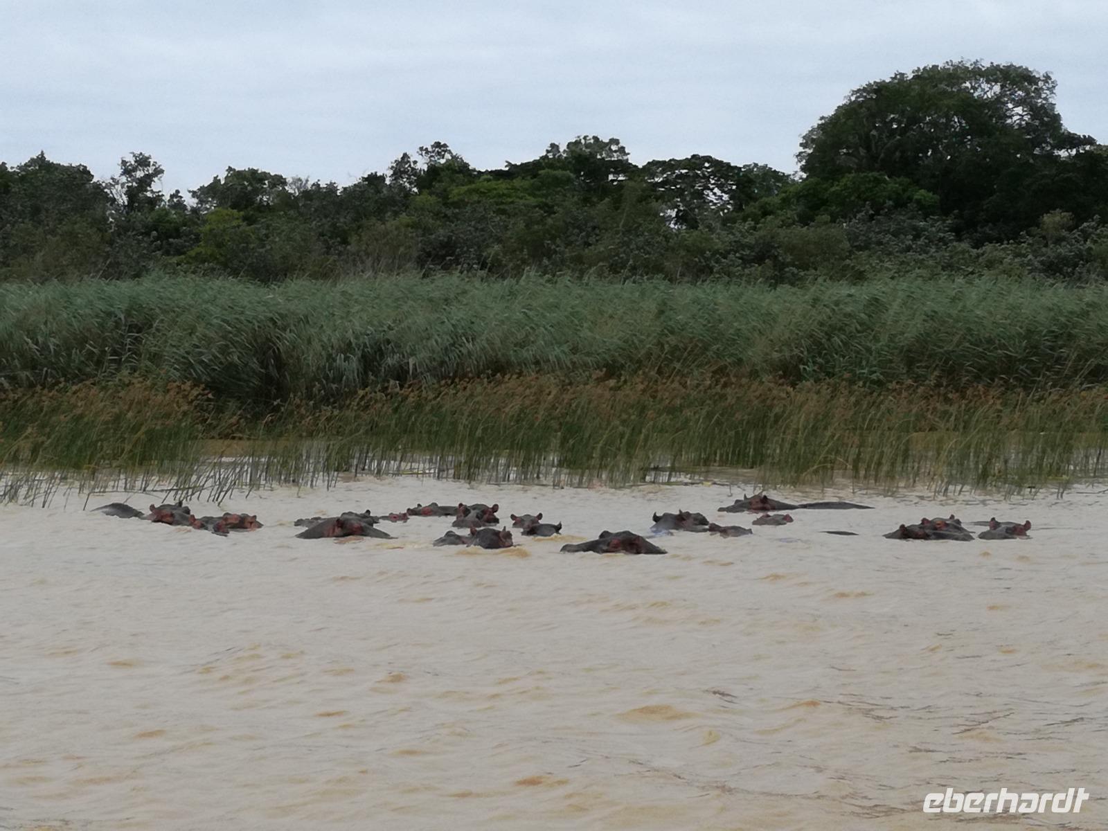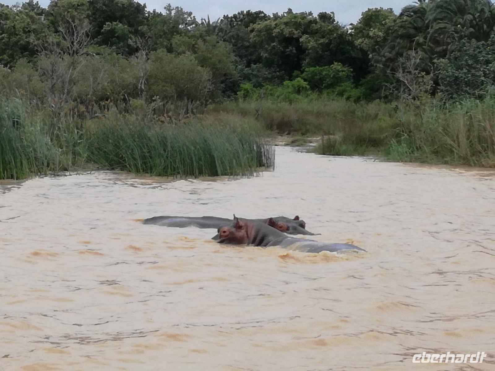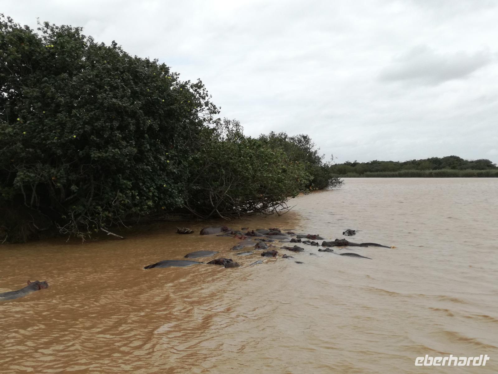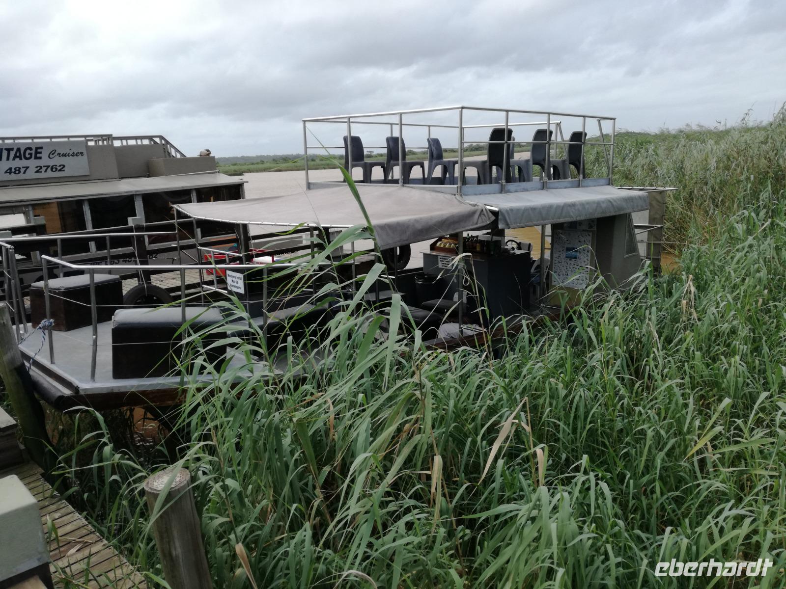 Diesen Morgen konnten wir etwas länger schlafen und genossen das Frühstück in unserer romantischen Umgebung. Nach dem Frühstück brachen wir auf und spazierten bis zur Anlegestelle unseres Bootes. Unsere Bootstour sollte entlang eines Seitenarmes des St. Lucia Lakes gehen. Also shipperten wir los und bereits nach wenigen Minuten entdecken wir das erste Hippopotamus bzw. Nilpferd bzw. Flusspferd bzw. Hippo. Im weiteren Verlauf konnten wir noch weitere Gruppen von Hippos, Krokodile, Blauwangenspint, Gelbweber und auch einen Schreiseeadler. Nach gut 90 Minuten war eine wunderschöne Bootstour beendet und wir gingen zurück an Land. Hier gab es erstmal etwas Freizeit im schönen Touristenörtchen St. Lucia. Vielen nutzen die Zeit zum bummeln oder zum Essen. Wir testeten zum Beispiel frische Ananas am Stil aus der Region oder frischen Mangos an einem der vielen Straßenständen. Nach der Mittagspause fuhren wir dann zum Cape Vidal. Unsere Route führte uns durch den iSimangalisco Wetland Park. Unterwegs sehen wir weitere Tiere wie Warzenschweine, Zebras, Affen, Giraffe, Büffel oder Knus. Einen Foto-Stopp legen wir am Mfabeni Lookout ein. Sonet berichtet uns, dass der iSimangaliso Wetland Park im nördlichen KwaZulu-Natal liegt und nur über St. Lucia erreichbar ist. Der rund 40 Kilometer lange Lake St Lucia ist umgeben von Gras- und Buschland sowie Mangrovensümpfen. Angekommen am Cape Vidal heißt es auch schon relaxen am Strand oder schwimmen im Meer. Allerdings spielte das Wetter nicht sonderlich mit, da es sehr windig war. Aber wir ließen unseren Strandtag nicht vermiesen. Einige Gäste schwimmen im Meer, was nur im Bereich der roten Fahnen erlaubt ist. Ein Rettungsschwimmerteam für den Notfall ist ebenfalls anwesend. Andere hingegen spazieren am Strand entlang oder genossen die steife Brise am Strand. Am Abend ließen wir bei einem optionalen Abendessen den Tag bei frischem Fisch und Seafood im örtlichen Restaurant Ocean Basket ausklingen.