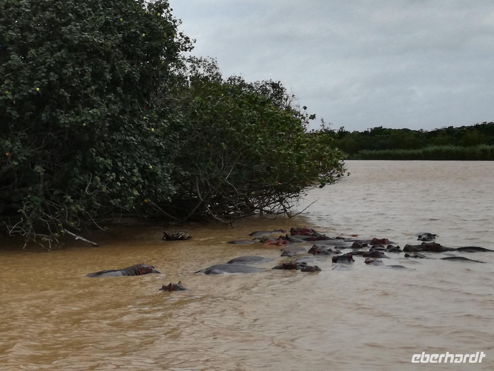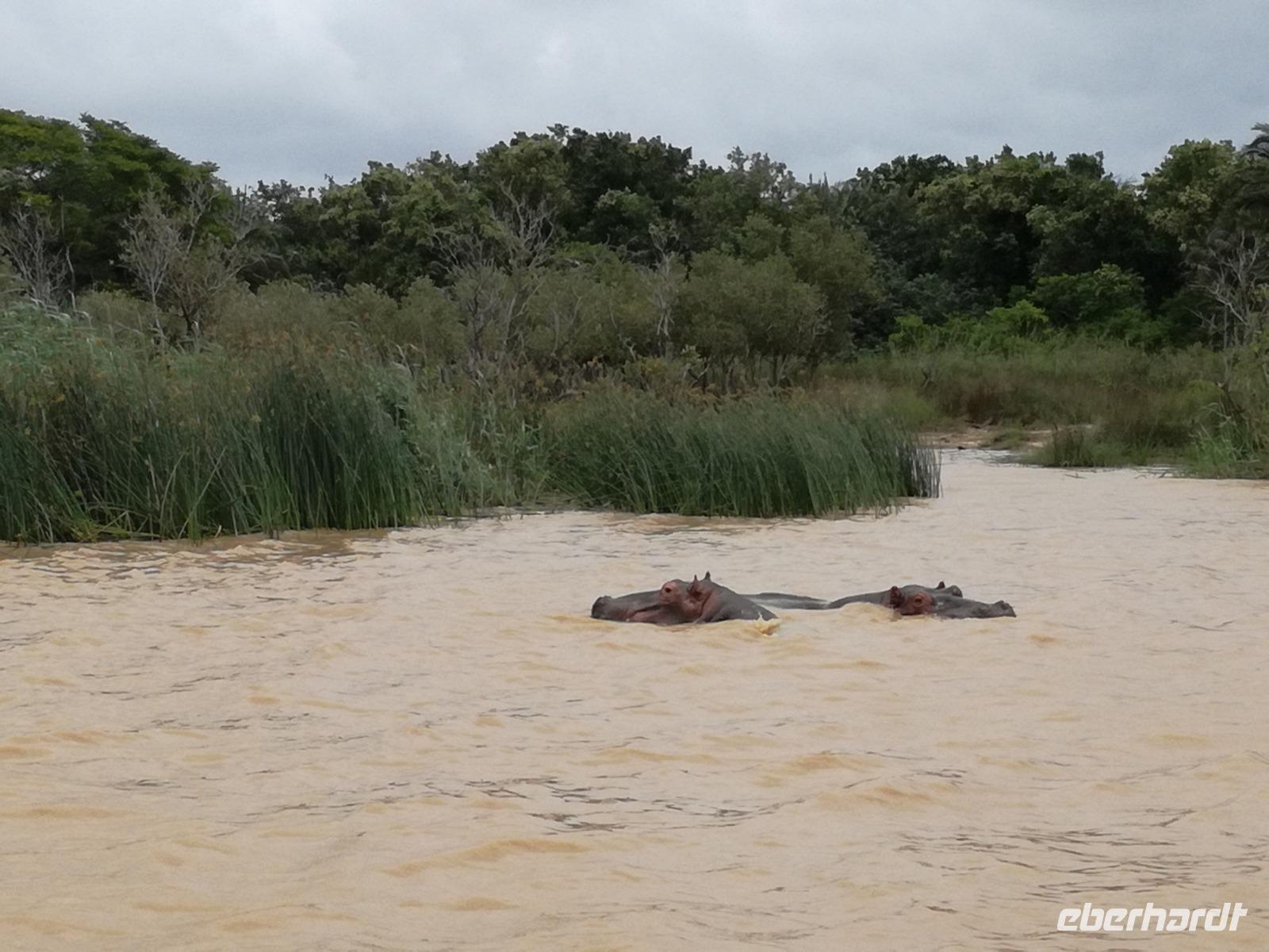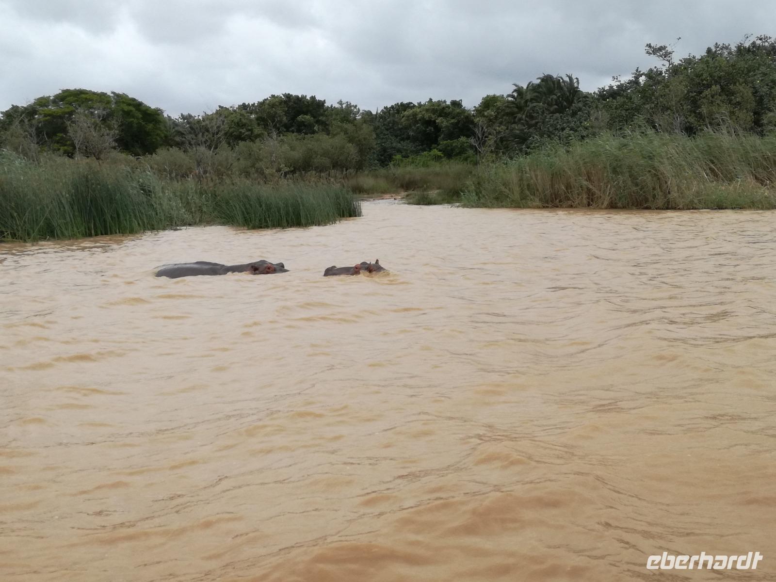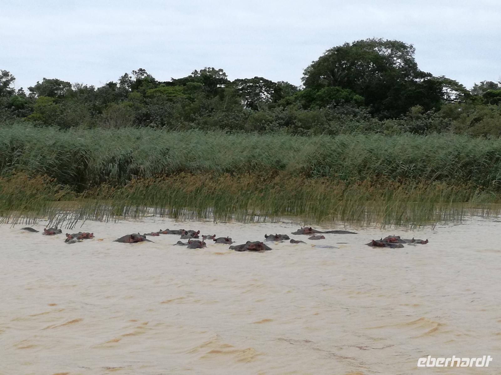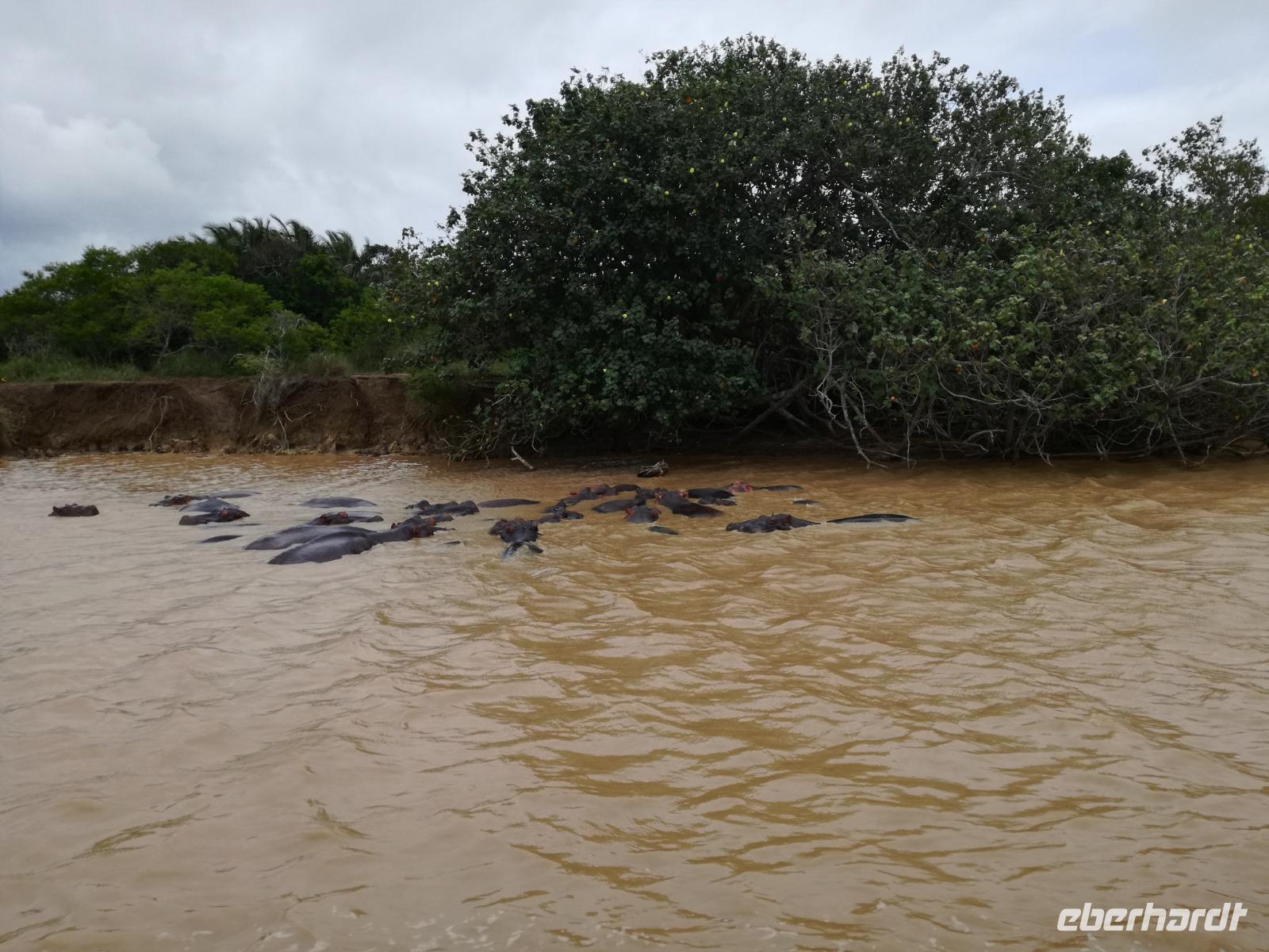 Diesen Morgen konnten wir etwas länger schlafen und genossen das Frühstück in unserer romantischen Umgebung. Nach dem Frühstück brachen wir auf und spazierten bis zur Anlegestelle unseres Bootes. Unsere Bootstour sollte entlang eines Seitenarmes des St. Lucia Lakes gehen. Also shipperten wir los und bereits nach wenigen Minuten entdecken wir das erste Hippopotamus bzw. Nilpferd bzw. Flusspferd bzw. Hippo. Im weiteren Verlauf konnten wir noch weitere Gruppen von Hippos, Krokodile, Blauwangenspint, Gelbweber und auch einen Schreiseeadler. Nach gut 90 Minuten war eine wunderschöne Bootstour beendet und wir gingen zurück an Land. Hier gab es erstmal etwas Freizeit im schönen Touristenörtchen St. Lucia. Vielen nutzen die Zeit zum bummeln oder zum Essen. Wir testeten zum Beispiel frische Ananas am Stil aus der Region oder frischen Mangos an einem der vielen Straßenständen. Nach der Mittagspause fuhren wir dann zum Cape Vidal. Unsere Route führte uns durch den iSimangalisco Wetland Park. Unterwegs sehen wir weitere Tiere wie Warzenschweine, Zebras, Affen, Giraffe, Büffel oder Knus. Einen Foto-Stopp legen wir am Mfabeni Lookout ein. Sonet berichtet uns, dass der iSimangaliso Wetland Park im nördlichen KwaZulu-Natal liegt und nur über St. Lucia erreichbar ist. Der rund 40 Kilometer lange Lake St Lucia ist umgeben von Gras- und Buschland sowie Mangrovensümpfen. Angekommen am Cape Vidal heißt es auch schon relaxen am Strand oder schwimmen im Meer. Allerdings spielte das Wetter nicht sonderlich mit, da es sehr windig war. Aber wir ließen unseren Strandtag nicht vermiesen. Einige Gäste schwimmen im Meer, was nur im Bereich der roten Fahnen erlaubt ist. Ein Rettungsschwimmerteam für den Notfall ist ebenfalls anwesend. Andere hingegen spazieren am Strand entlang oder genossen die steife Brise am Strand. Am Abend ließen wir bei einem optionalen Abendessen den Tag bei frischem Fisch und Seafood im örtlichen Restaurant Ocean Basket ausklingen.
