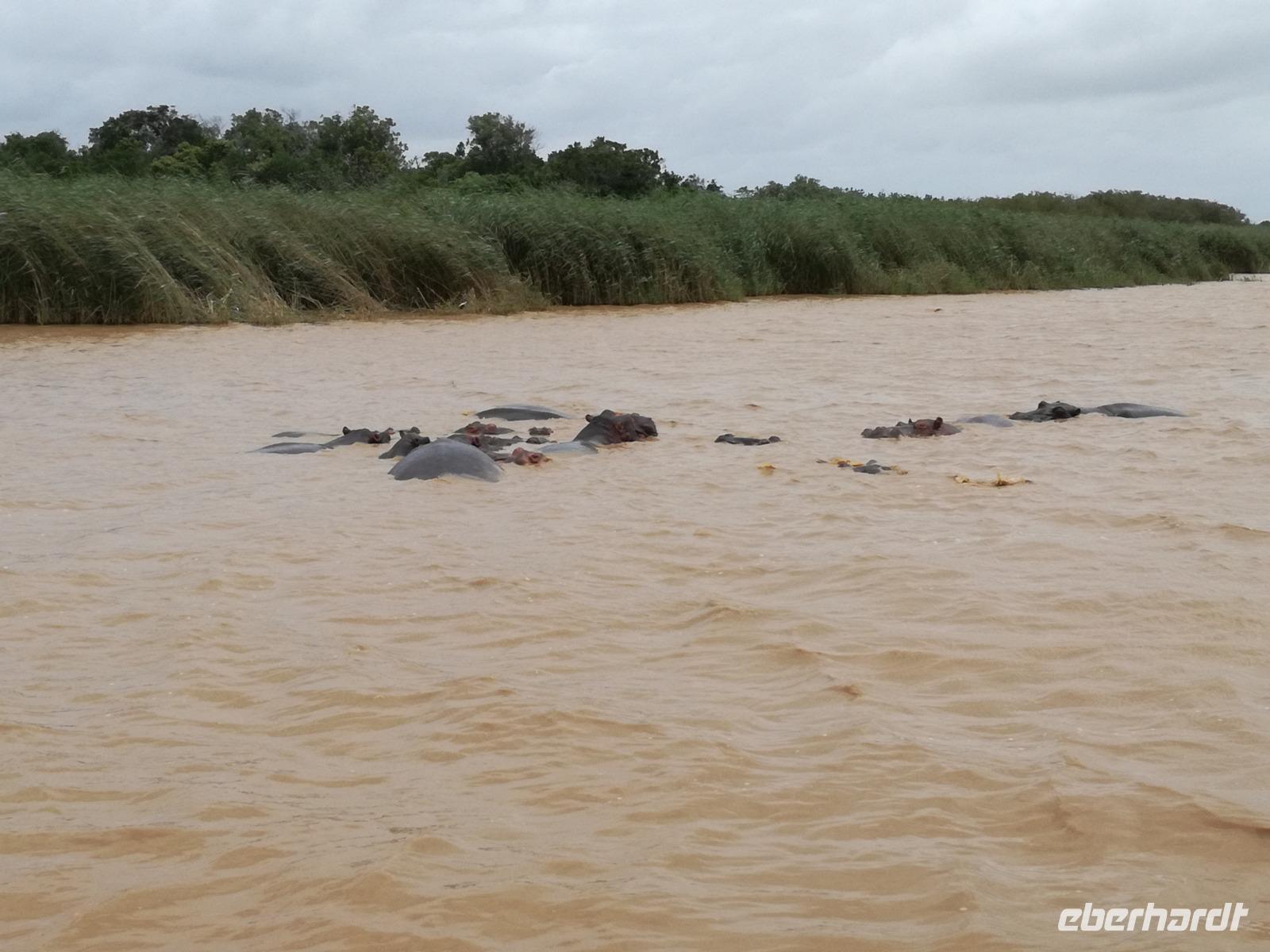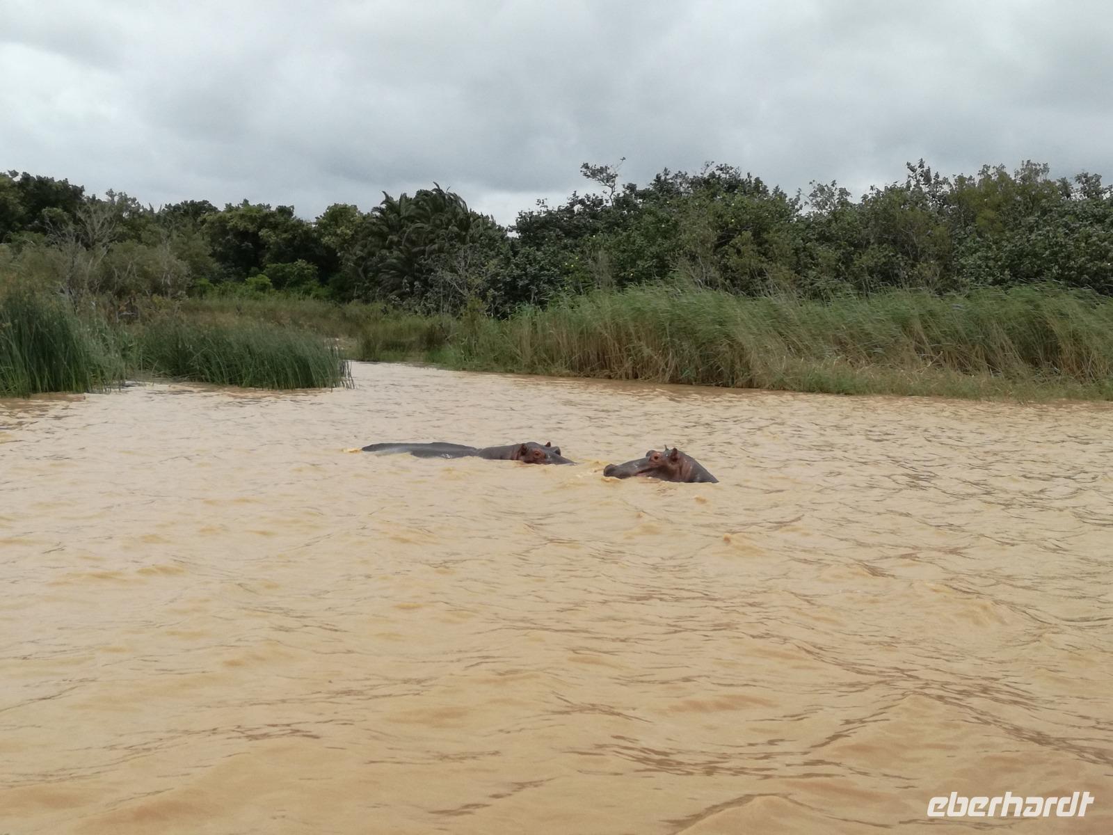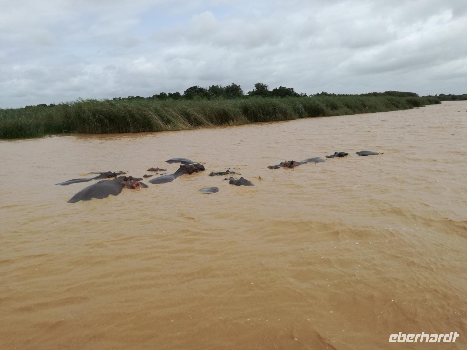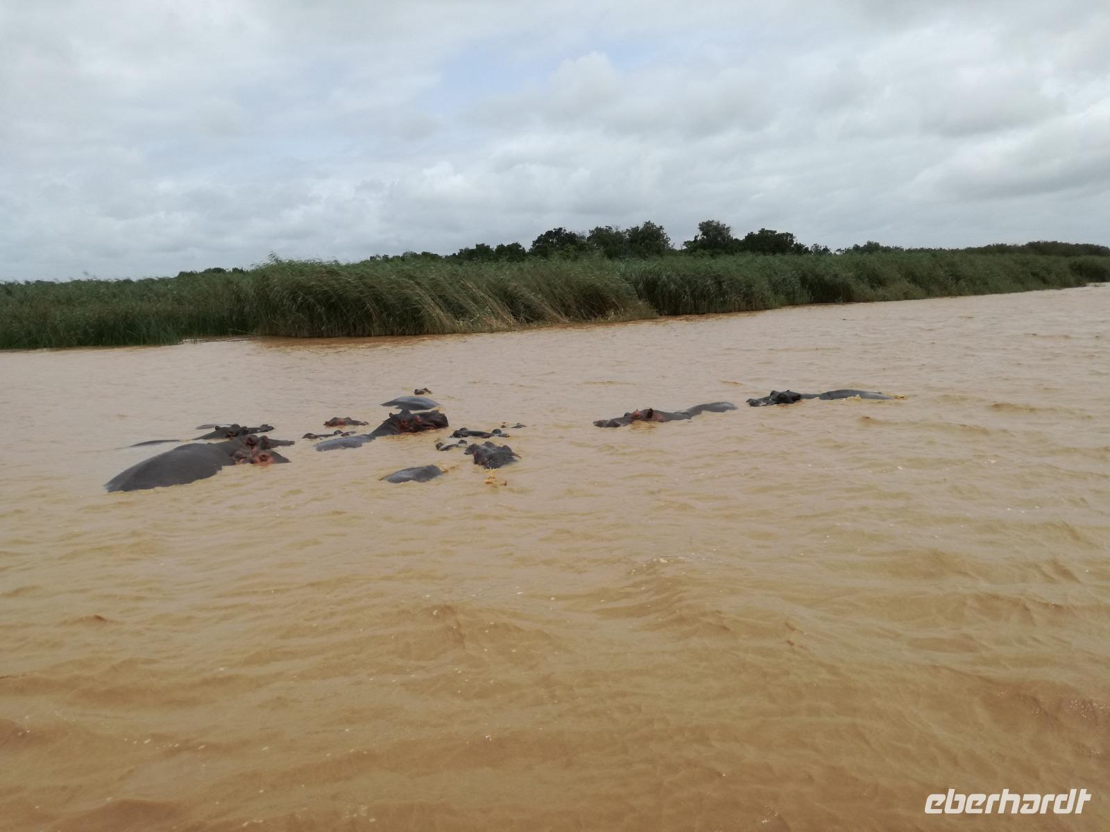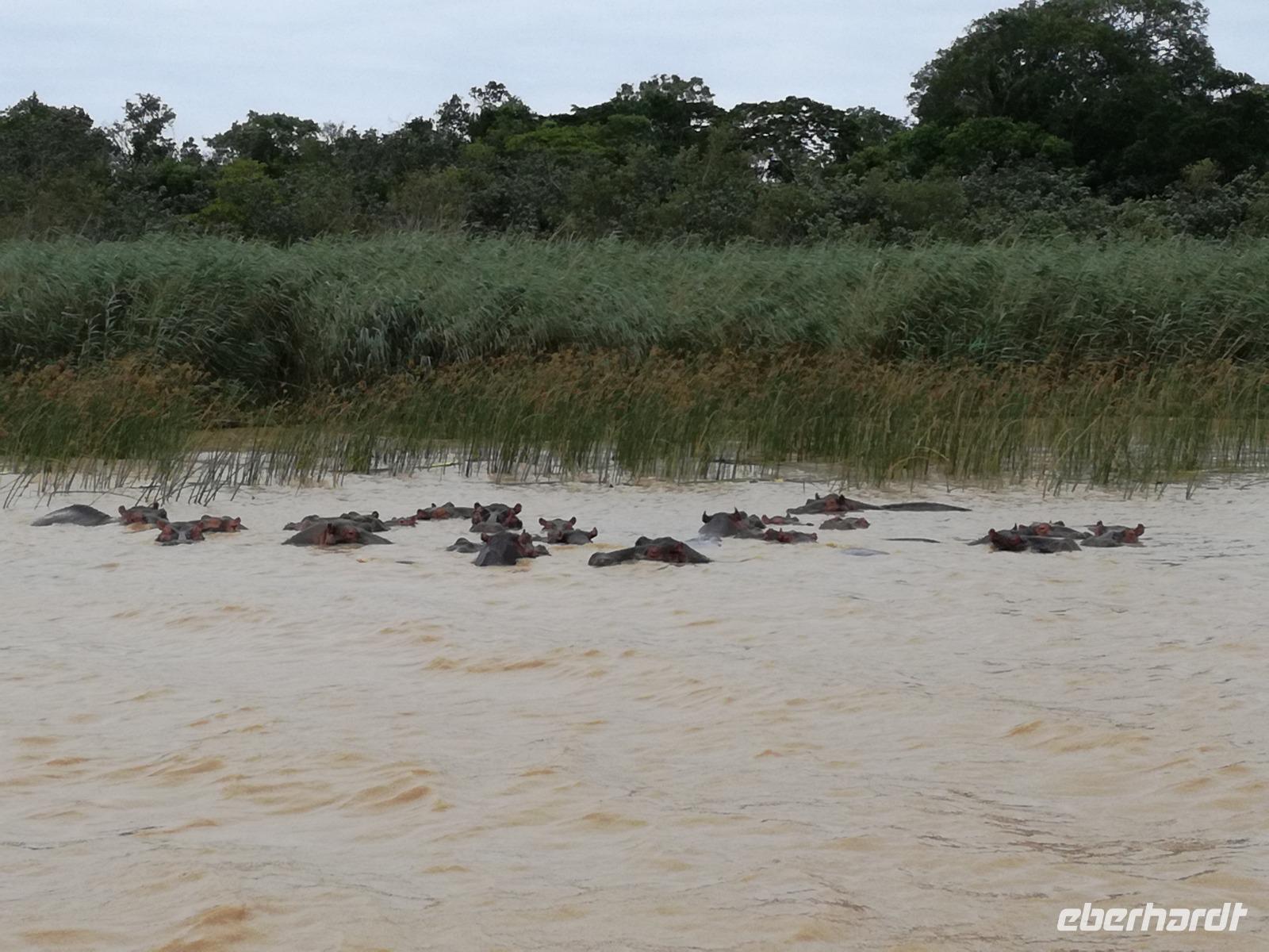 Diesen Morgen konnten wir etwas länger schlafen und genossen das Frühstück in unserer romantischen Umgebung. Nach dem Frühstück brachen wir auf und spazierten bis zur Anlegestelle unseres Bootes. Unsere Bootstour sollte entlang eines Seitenarmes des St. Lucia Lakes gehen. Also shipperten wir los und bereits nach wenigen Minuten entdecken wir das erste Hippopotamus bzw. Nilpferd bzw. Flusspferd bzw. Hippo. Im weiteren Verlauf konnten wir noch weitere Gruppen von Hippos, Krokodile, Blauwangenspint, Gelbweber und auch einen Schreiseeadler. Nach gut 90 Minuten war eine wunderschöne Bootstour beendet und wir gingen zurück an Land. Hier gab es erstmal etwas Freizeit im schönen Touristenörtchen St. Lucia. Vielen nutzen die Zeit zum bummeln oder zum Essen. Wir testeten zum Beispiel frische Ananas am Stil aus der Region oder frischen Mangos an einem der vielen Straßenständen. Nach der Mittagspause fuhren wir dann zum Cape Vidal. Unsere Route führte uns durch den iSimangalisco Wetland Park. Unterwegs sehen wir weitere Tiere wie Warzenschweine, Zebras, Affen, Giraffe, Büffel oder Knus. Einen Foto-Stopp legen wir am Mfabeni Lookout ein. Sonet berichtet uns, dass der iSimangaliso Wetland Park im nördlichen KwaZulu-Natal liegt und nur über St. Lucia erreichbar ist. Der rund 40 Kilometer lange Lake St Lucia ist umgeben von Gras- und Buschland sowie Mangrovensümpfen. Angekommen am Cape Vidal heißt es auch schon relaxen am Strand oder schwimmen im Meer. Allerdings spielte das Wetter nicht sonderlich mit, da es sehr windig war. Aber wir ließen unseren Strandtag nicht vermiesen. Einige Gäste schwimmen im Meer, was nur im Bereich der roten Fahnen erlaubt ist. Ein Rettungsschwimmerteam für den Notfall ist ebenfalls anwesend. Andere hingegen spazieren am Strand entlang oder genossen die steife Brise am Strand. Am Abend ließen wir bei einem optionalen Abendessen den Tag bei frischem Fisch und Seafood im örtlichen Restaurant Ocean Basket ausklingen.