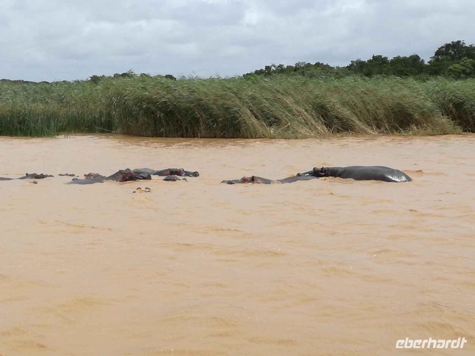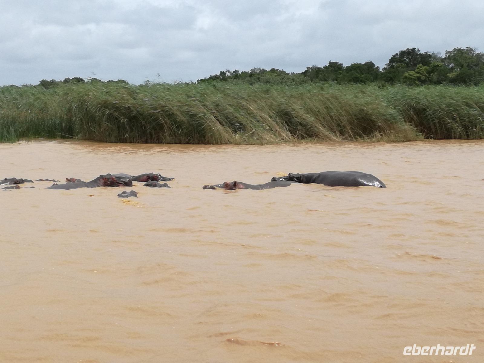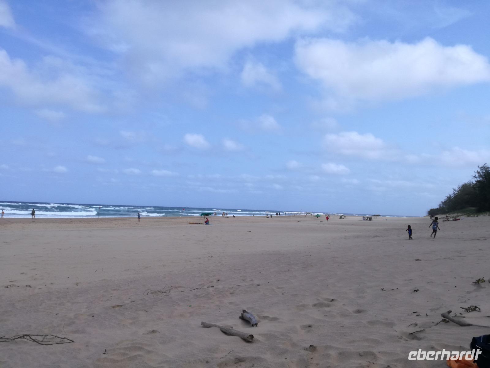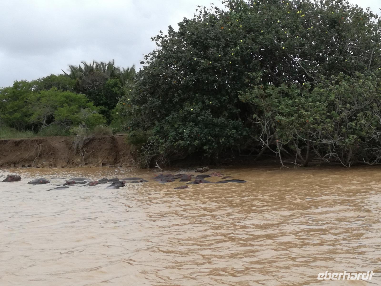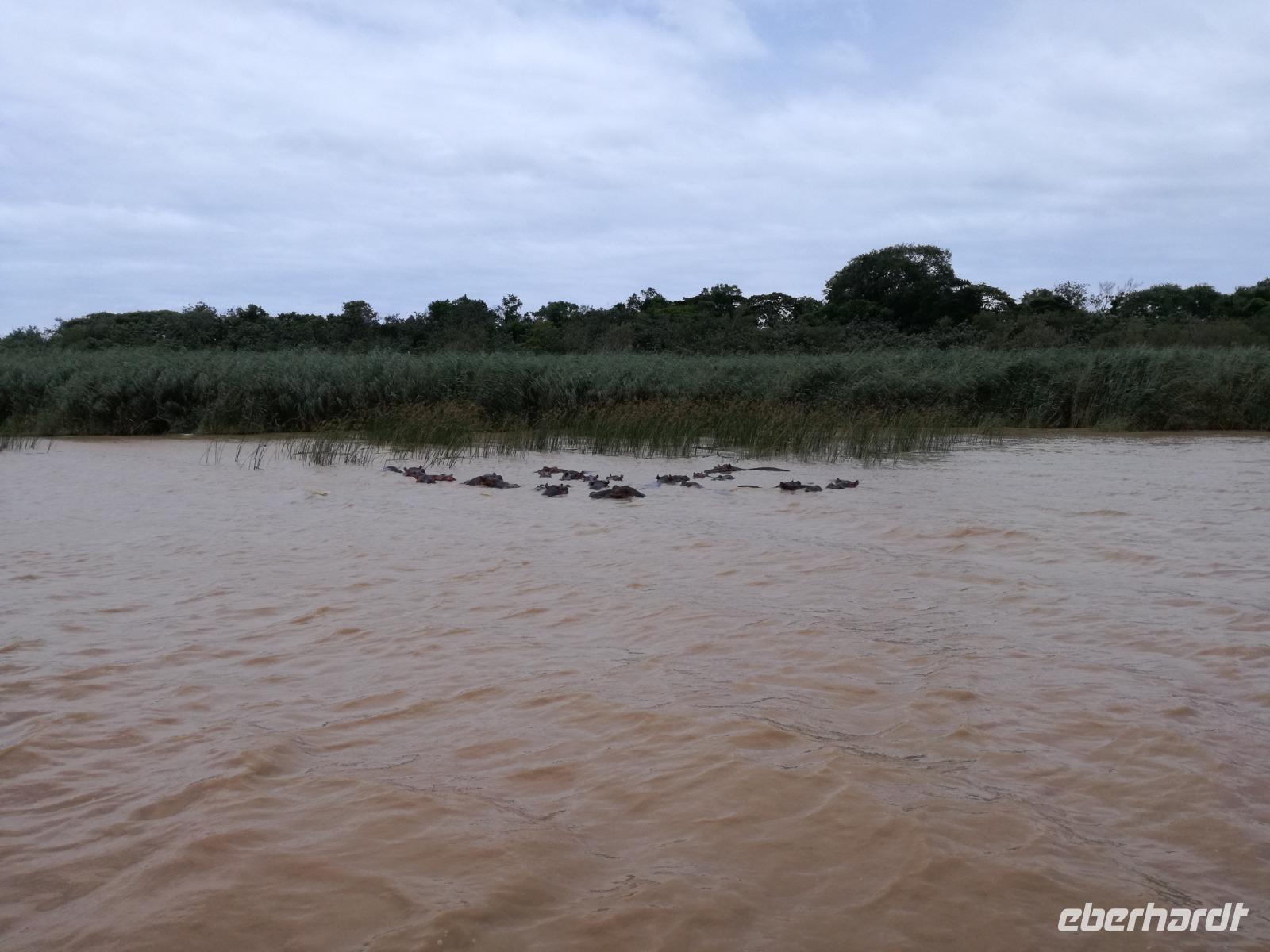 Diesen Morgen konnten wir etwas länger schlafen und genossen das Frühstück in unserer romantischen Umgebung. Nach dem Frühstück brachen wir auf und spazierten bis zur Anlegestelle unseres Bootes. Unsere Bootstour sollte entlang eines Seitenarmes des St. Lucia Lakes gehen. Also shipperten wir los und bereits nach wenigen Minuten entdecken wir das erste Hippopotamus bzw. Nilpferd bzw. Flusspferd bzw. Hippo. Im weiteren Verlauf konnten wir noch weitere Gruppen von Hippos, Krokodile, Blauwangenspint, Gelbweber und auch einen Schreiseeadler. Nach gut 90 Minuten war eine wunderschöne Bootstour beendet und wir gingen zurück an Land. Hier gab es erstmal etwas Freizeit im schönen Touristenörtchen St. Lucia. Vielen nutzen die Zeit zum bummeln oder zum Essen. Wir testeten zum Beispiel frische Ananas am Stil aus der Region oder frischen Mangos an einem der vielen Straßenständen. Nach der Mittagspause fuhren wir dann zum Cape Vidal. Unsere Route führte uns durch den iSimangalisco Wetland Park. Unterwegs sehen wir weitere Tiere wie Warzenschweine, Zebras, Affen, Giraffe, Büffel oder Knus. Einen Foto-Stopp legen wir am Mfabeni Lookout ein. Sonet berichtet uns, dass der iSimangaliso Wetland Park im nördlichen KwaZulu-Natal liegt und nur über St. Lucia erreichbar ist. Der rund 40 Kilometer lange Lake St Lucia ist umgeben von Gras- und Buschland sowie Mangrovensümpfen. Angekommen am Cape Vidal heißt es auch schon relaxen am Strand oder schwimmen im Meer. Allerdings spielte das Wetter nicht sonderlich mit, da es sehr windig war. Aber wir ließen unseren Strandtag nicht vermiesen. Einige Gäste schwimmen im Meer, was nur im Bereich der roten Fahnen erlaubt ist. Ein Rettungsschwimmerteam für den Notfall ist ebenfalls anwesend. Andere hingegen spazieren am Strand entlang oder genossen die steife Brise am Strand. Am Abend ließen wir bei einem optionalen Abendessen den Tag bei frischem Fisch und Seafood im örtlichen Restaurant Ocean Basket ausklingen.
