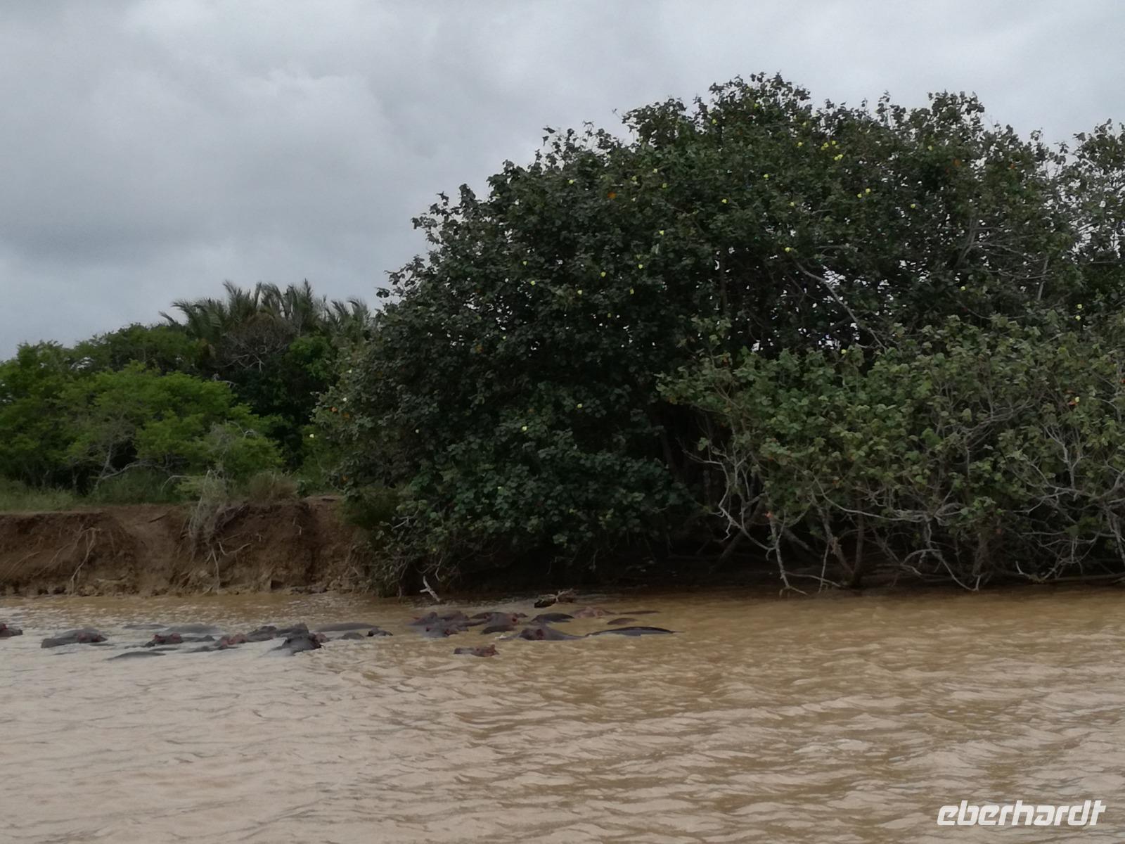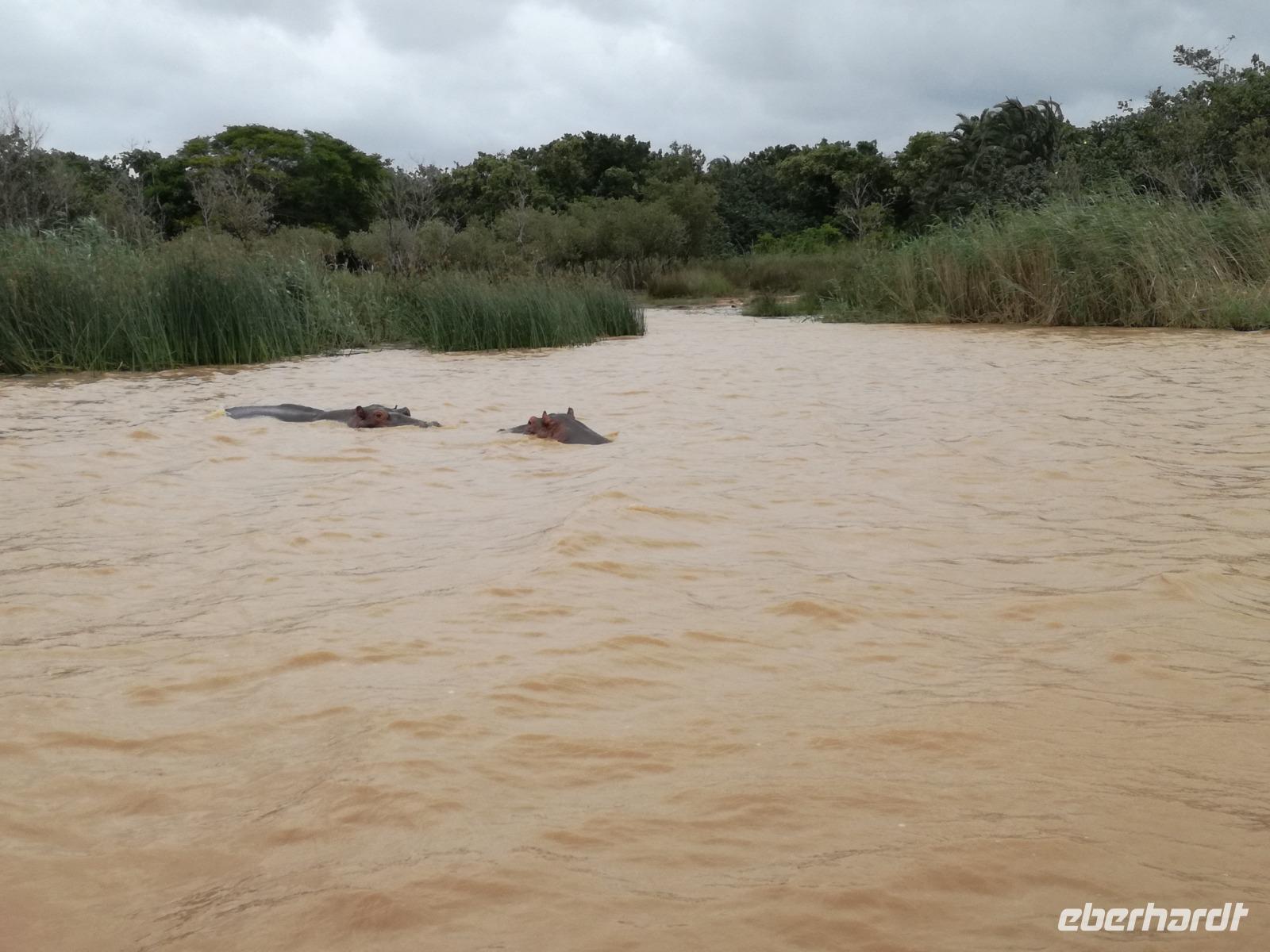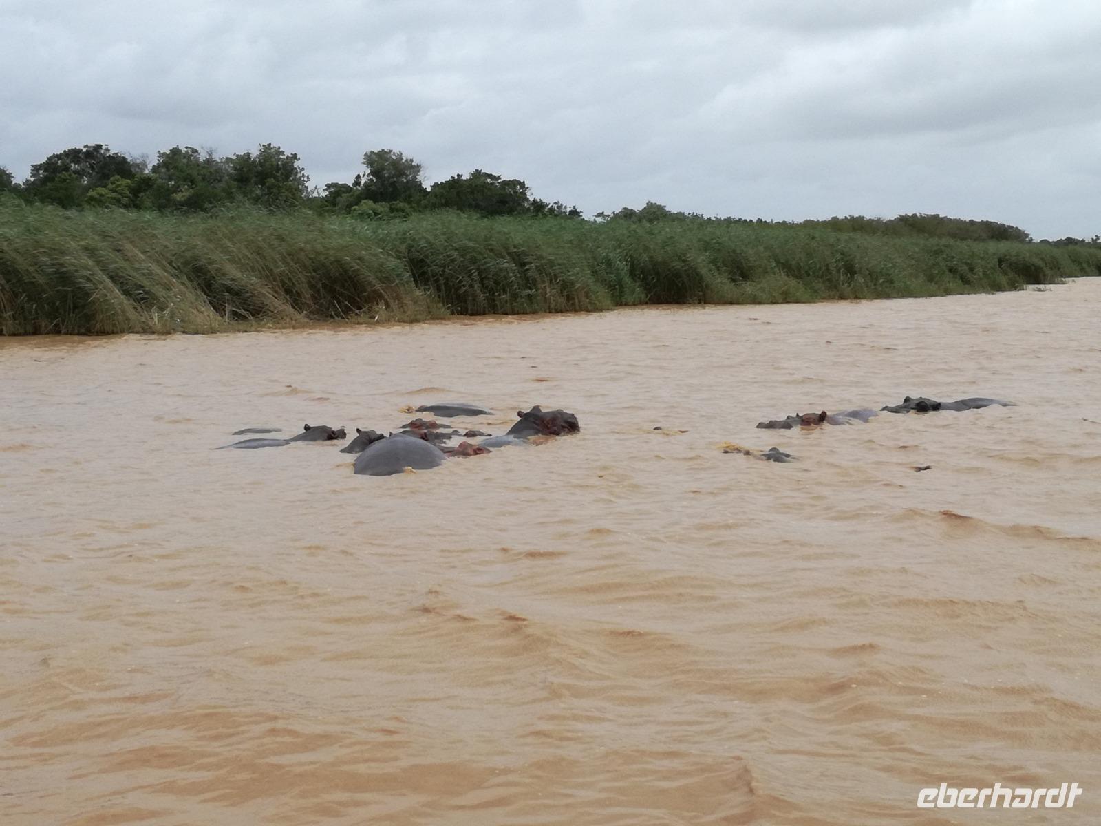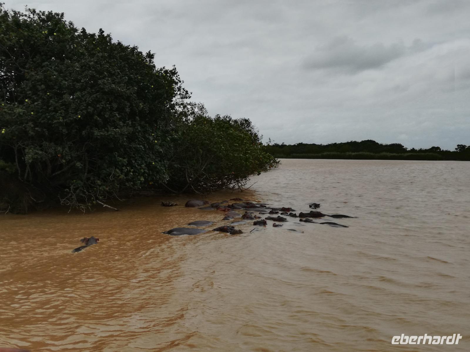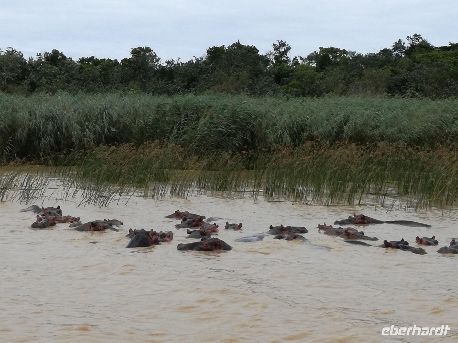 Diesen Morgen konnten wir etwas länger schlafen und genossen das Frühstück in unserer romantischen Umgebung. Nach dem Frühstück brachen wir auf und spazierten bis zur Anlegestelle unseres Bootes. Unsere Bootstour sollte entlang eines Seitenarmes des St. Lucia Lakes gehen. Also shipperten wir los und bereits nach wenigen Minuten entdecken wir das erste Hippopotamus bzw. Nilpferd bzw. Flusspferd bzw. Hippo. Im weiteren Verlauf konnten wir noch weitere Gruppen von Hippos, Krokodile, Blauwangenspint, Gelbweber und auch einen Schreiseeadler. Nach gut 90 Minuten war eine wunderschöne Bootstour beendet und wir gingen zurück an Land. Hier gab es erstmal etwas Freizeit im schönen Touristenörtchen St. Lucia. Vielen nutzen die Zeit zum bummeln oder zum Essen. Wir testeten zum Beispiel frische Ananas am Stil aus der Region oder frischen Mangos an einem der vielen Straßenständen. Nach der Mittagspause fuhren wir dann zum Cape Vidal. Unsere Route führte uns durch den iSimangalisco Wetland Park. Unterwegs sehen wir weitere Tiere wie Warzenschweine, Zebras, Affen, Giraffe, Büffel oder Knus. Einen Foto-Stopp legen wir am Mfabeni Lookout ein. Sonet berichtet uns, dass der iSimangaliso Wetland Park im nördlichen KwaZulu-Natal liegt und nur über St. Lucia erreichbar ist. Der rund 40 Kilometer lange Lake St Lucia ist umgeben von Gras- und Buschland sowie Mangrovensümpfen. Angekommen am Cape Vidal heißt es auch schon relaxen am Strand oder schwimmen im Meer. Allerdings spielte das Wetter nicht sonderlich mit, da es sehr windig war. Aber wir ließen unseren Strandtag nicht vermiesen. Einige Gäste schwimmen im Meer, was nur im Bereich der roten Fahnen erlaubt ist. Ein Rettungsschwimmerteam für den Notfall ist ebenfalls anwesend. Andere hingegen spazieren am Strand entlang oder genossen die steife Brise am Strand. Am Abend ließen wir bei einem optionalen Abendessen den Tag bei frischem Fisch und Seafood im örtlichen Restaurant Ocean Basket ausklingen.