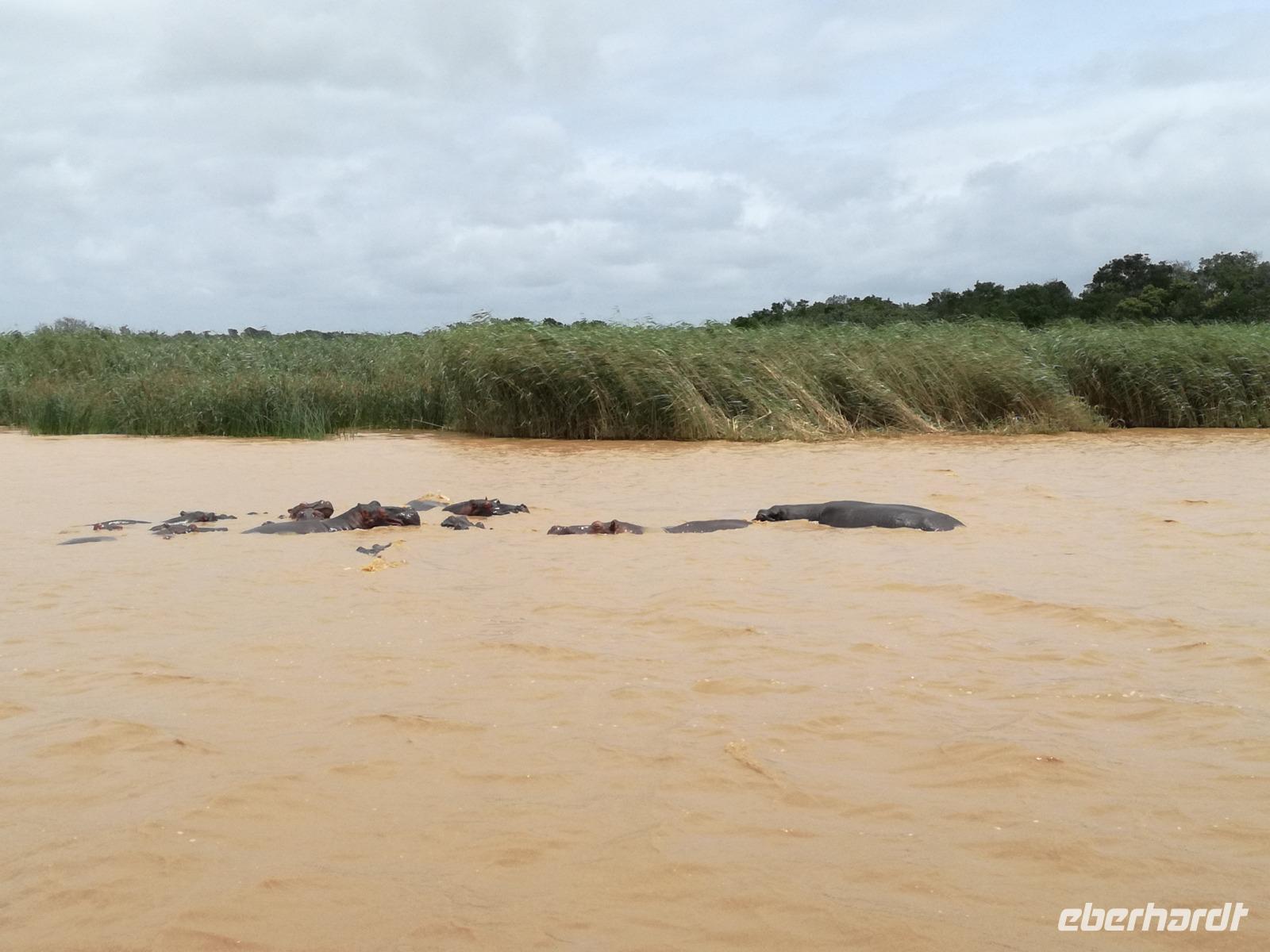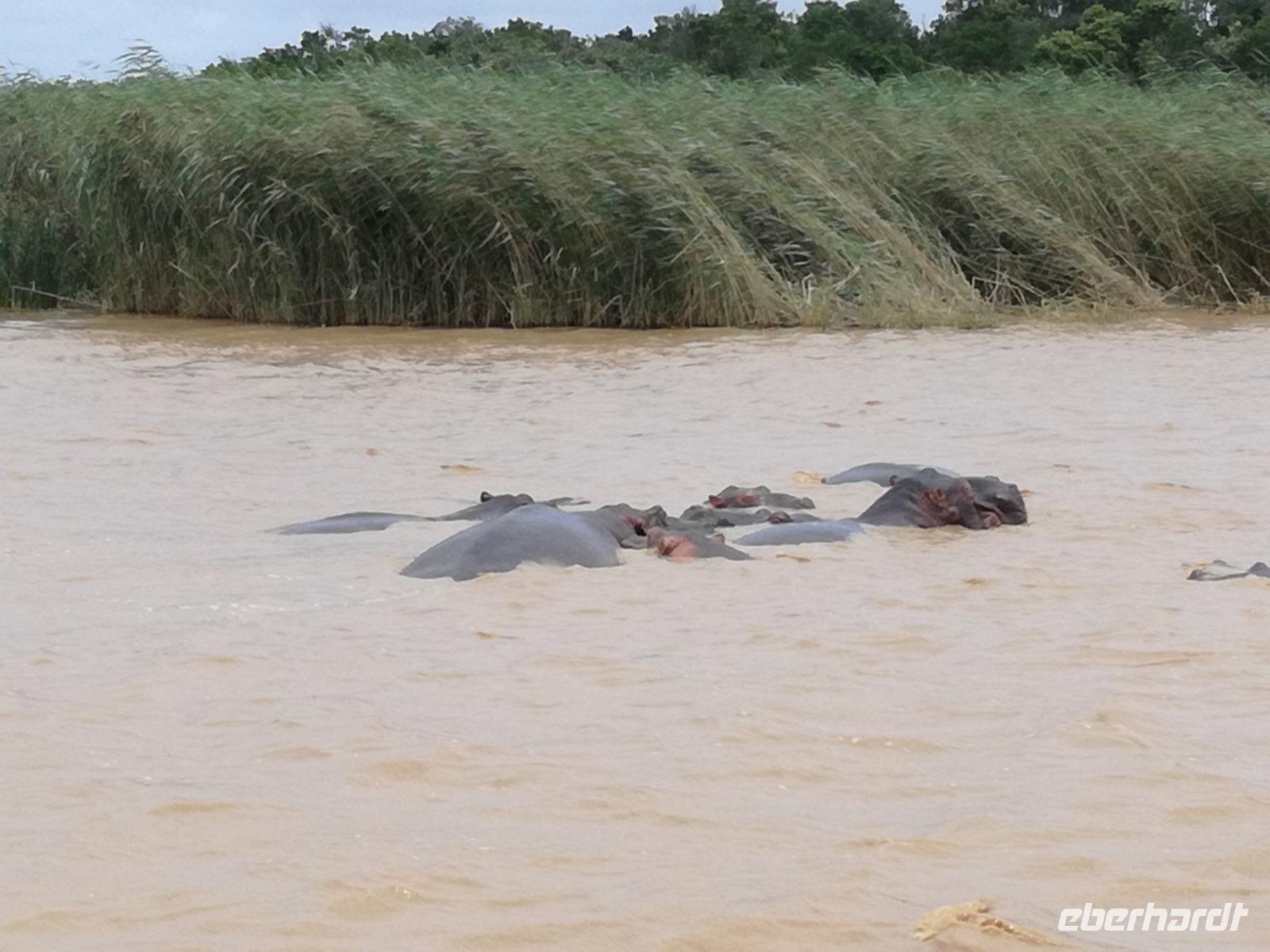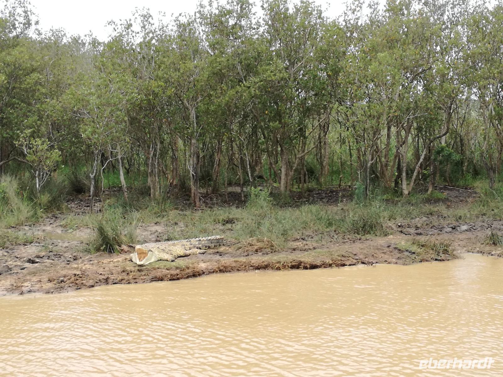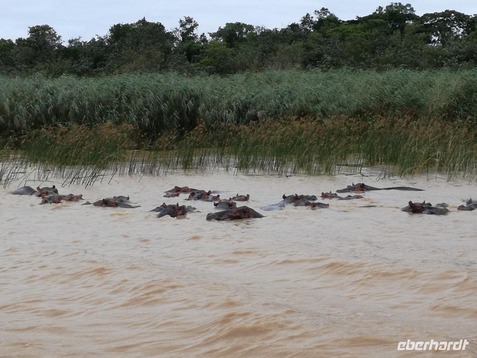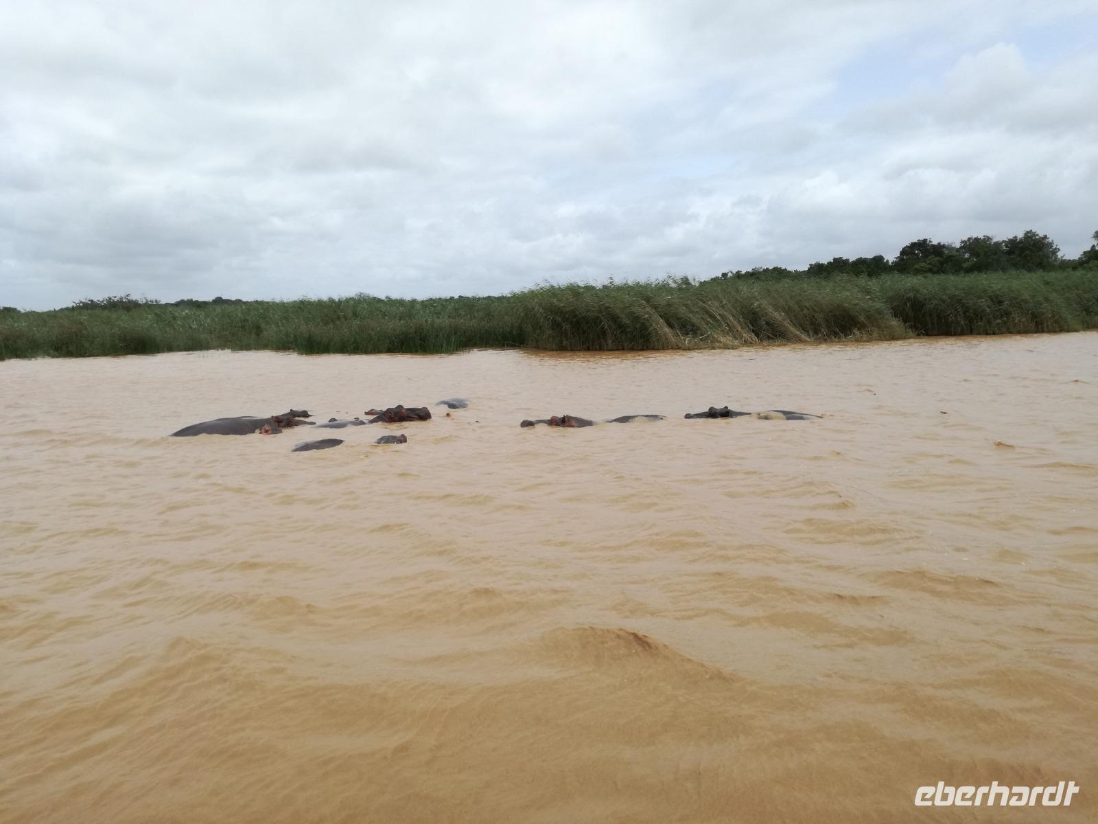 Diesen Morgen konnten wir etwas länger schlafen und genossen das Frühstück in unserer romantischen Umgebung. Nach dem Frühstück brachen wir auf und spazierten bis zur Anlegestelle unseres Bootes. Unsere Bootstour sollte entlang eines Seitenarmes des St. Lucia Lakes gehen. Also shipperten wir los und bereits nach wenigen Minuten entdecken wir das erste Hippopotamus bzw. Nilpferd bzw. Flusspferd bzw. Hippo. Im weiteren Verlauf konnten wir noch weitere Gruppen von Hippos, Krokodile, Blauwangenspint, Gelbweber und auch einen Schreiseeadler. Nach gut 90 Minuten war eine wunderschöne Bootstour beendet und wir gingen zurück an Land. Hier gab es erstmal etwas Freizeit im schönen Touristenörtchen St. Lucia. Vielen nutzen die Zeit zum bummeln oder zum Essen. Wir testeten zum Beispiel frische Ananas am Stil aus der Region oder frischen Mangos an einem der vielen Straßenständen. Nach der Mittagspause fuhren wir dann zum Cape Vidal. Unsere Route führte uns durch den iSimangalisco Wetland Park. Unterwegs sehen wir weitere Tiere wie Warzenschweine, Zebras, Affen, Giraffe, Büffel oder Knus. Einen Foto-Stopp legen wir am Mfabeni Lookout ein. Sonet berichtet uns, dass der iSimangaliso Wetland Park im nördlichen KwaZulu-Natal liegt und nur über St. Lucia erreichbar ist. Der rund 40 Kilometer lange Lake St Lucia ist umgeben von Gras- und Buschland sowie Mangrovensümpfen. Angekommen am Cape Vidal heißt es auch schon relaxen am Strand oder schwimmen im Meer. Allerdings spielte das Wetter nicht sonderlich mit, da es sehr windig war. Aber wir ließen unseren Strandtag nicht vermiesen. Einige Gäste schwimmen im Meer, was nur im Bereich der roten Fahnen erlaubt ist. Ein Rettungsschwimmerteam für den Notfall ist ebenfalls anwesend. Andere hingegen spazieren am Strand entlang oder genossen die steife Brise am Strand. Am Abend ließen wir bei einem optionalen Abendessen den Tag bei frischem Fisch und Seafood im örtlichen Restaurant Ocean Basket ausklingen.
