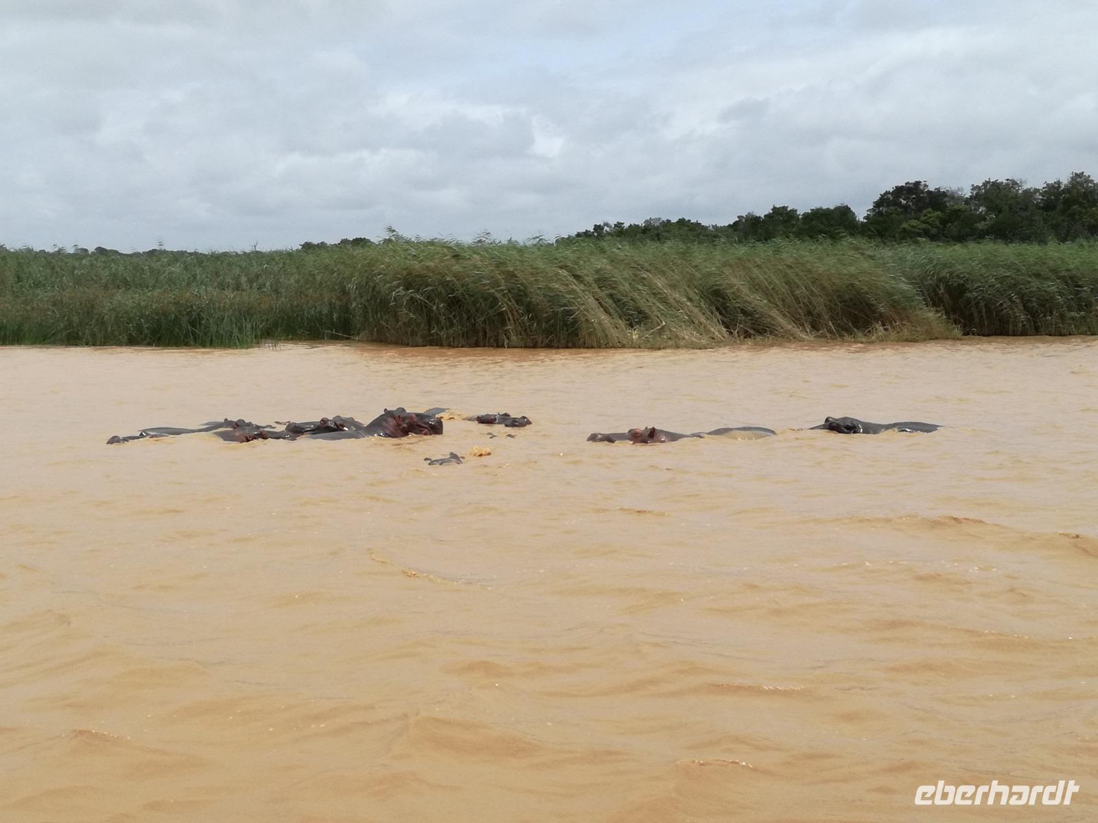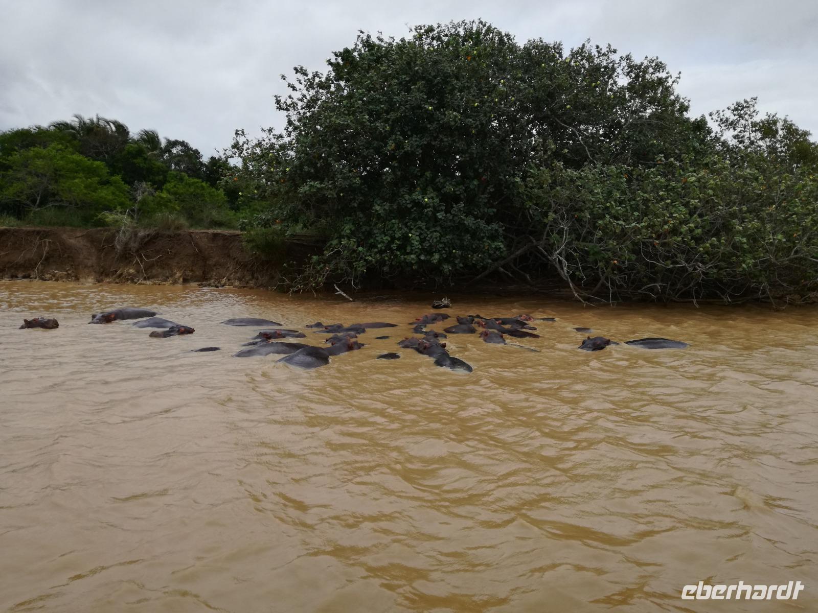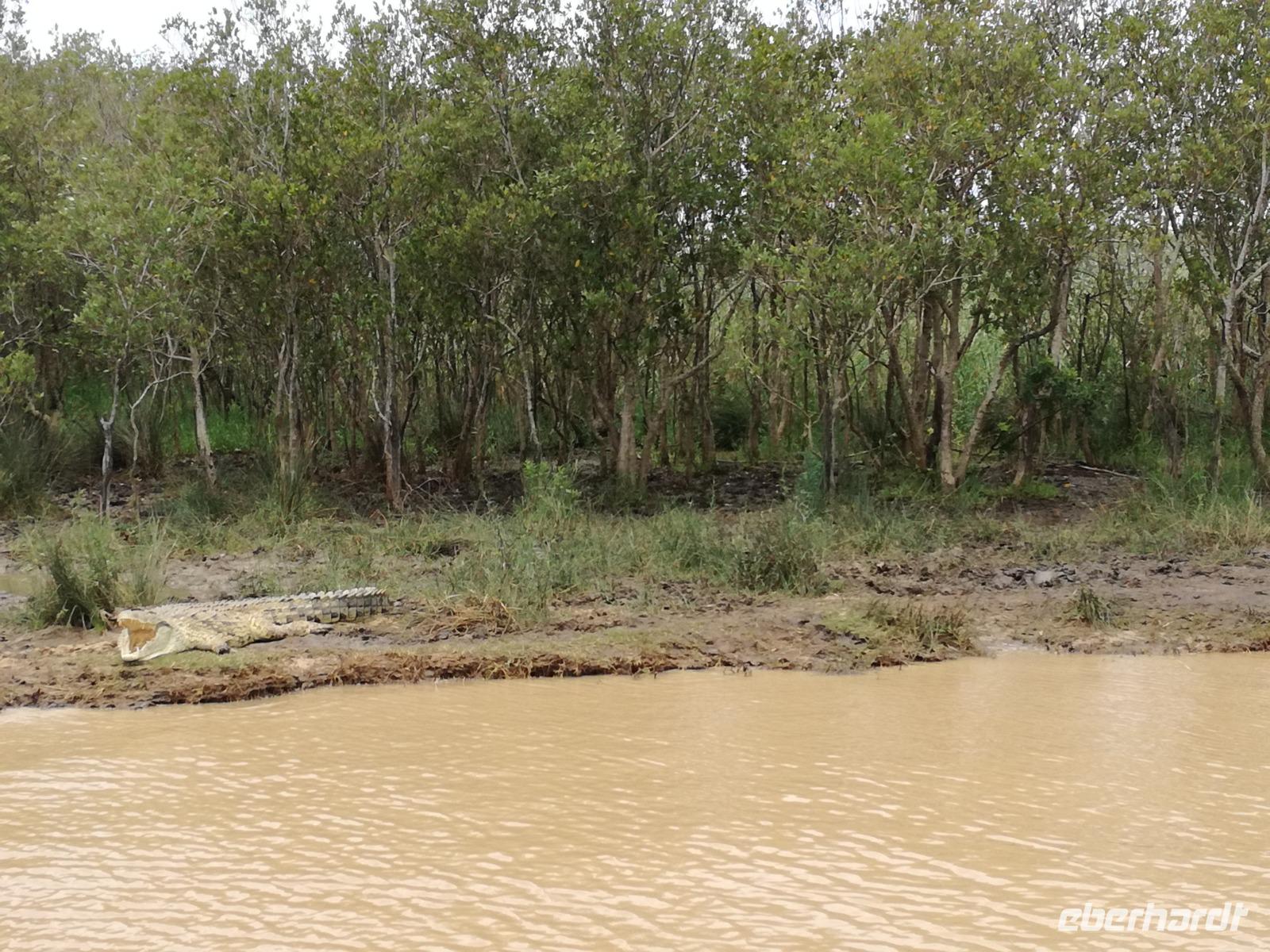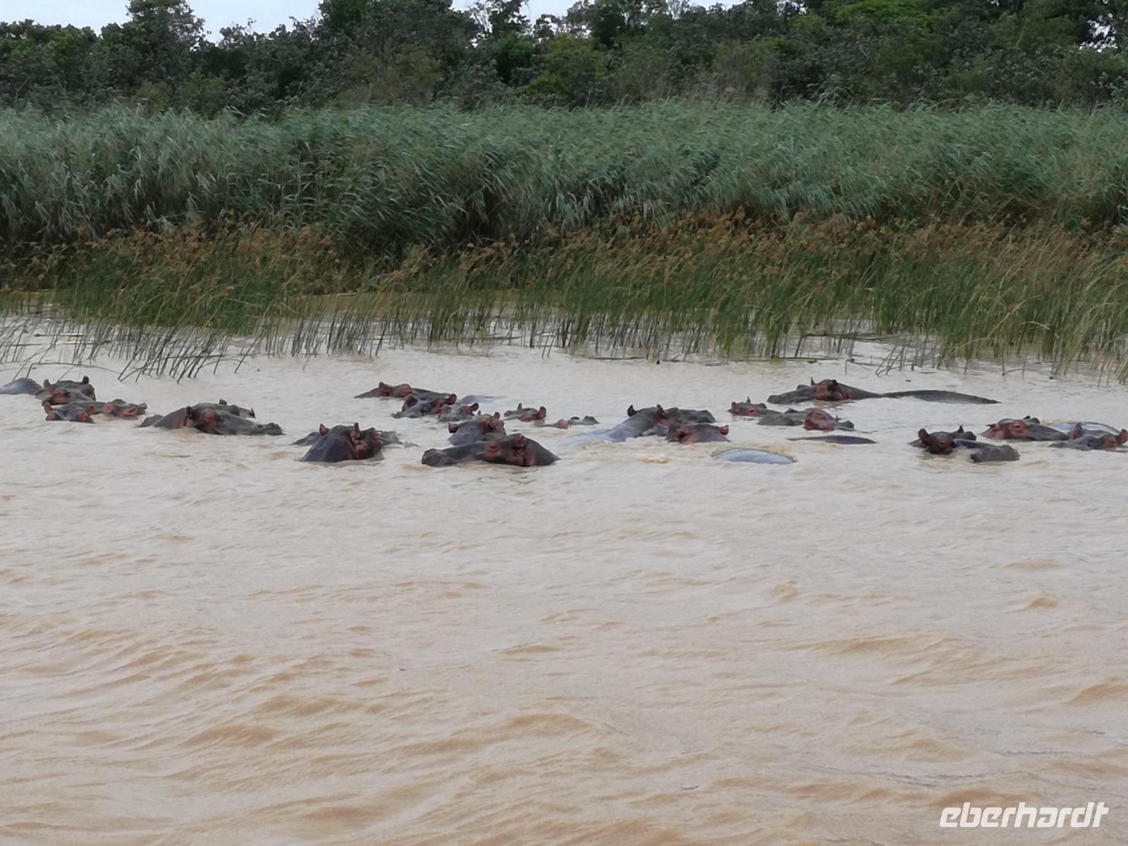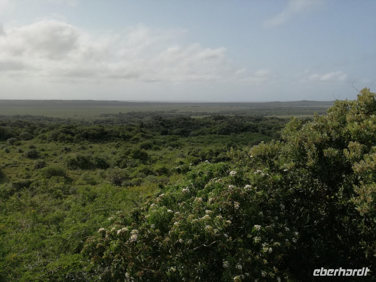 Diesen Morgen konnten wir etwas länger schlafen und genossen das Frühstück in unserer romantischen Umgebung. Nach dem Frühstück brachen wir auf und spazierten bis zur Anlegestelle unseres Bootes. Unsere Bootstour sollte entlang eines Seitenarmes des St. Lucia Lakes gehen. Also shipperten wir los und bereits nach wenigen Minuten entdecken wir das erste Hippopotamus bzw. Nilpferd bzw. Flusspferd bzw. Hippo. Im weiteren Verlauf konnten wir noch weitere Gruppen von Hippos, Krokodile, Blauwangenspint, Gelbweber und auch einen Schreiseeadler. Nach gut 90 Minuten war eine wunderschöne Bootstour beendet und wir gingen zurück an Land. Hier gab es erstmal etwas Freizeit im schönen Touristenörtchen St. Lucia. Vielen nutzen die Zeit zum bummeln oder zum Essen. Wir testeten zum Beispiel frische Ananas am Stil aus der Region oder frischen Mangos an einem der vielen Straßenständen. Nach der Mittagspause fuhren wir dann zum Cape Vidal. Unsere Route führte uns durch den iSimangalisco Wetland Park. Unterwegs sehen wir weitere Tiere wie Warzenschweine, Zebras, Affen, Giraffe, Büffel oder Knus. Einen Foto-Stopp legen wir am Mfabeni Lookout ein. Sonet berichtet uns, dass der iSimangaliso Wetland Park im nördlichen KwaZulu-Natal liegt und nur über St. Lucia erreichbar ist. Der rund 40 Kilometer lange Lake St Lucia ist umgeben von Gras- und Buschland sowie Mangrovensümpfen. Angekommen am Cape Vidal heißt es auch schon relaxen am Strand oder schwimmen im Meer. Allerdings spielte das Wetter nicht sonderlich mit, da es sehr windig war. Aber wir ließen unseren Strandtag nicht vermiesen. Einige Gäste schwimmen im Meer, was nur im Bereich der roten Fahnen erlaubt ist. Ein Rettungsschwimmerteam für den Notfall ist ebenfalls anwesend. Andere hingegen spazieren am Strand entlang oder genossen die steife Brise am Strand. Am Abend ließen wir bei einem optionalen Abendessen den Tag bei frischem Fisch und Seafood im örtlichen Restaurant Ocean Basket ausklingen.