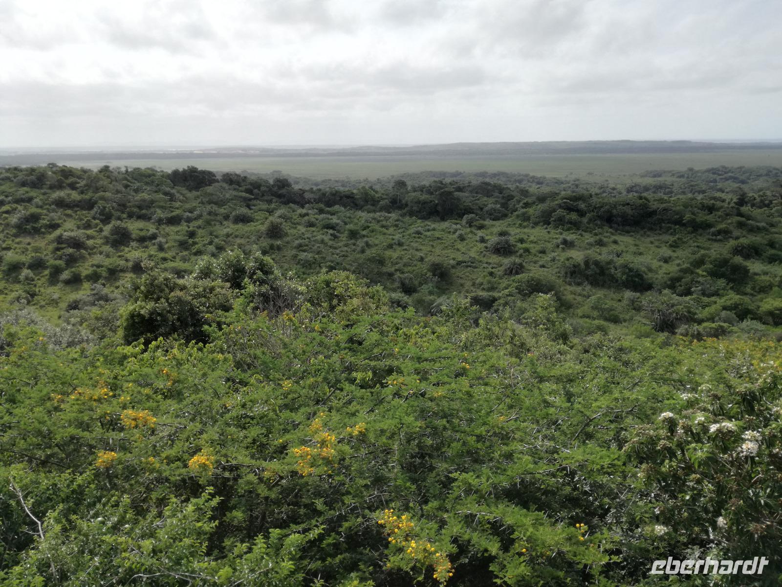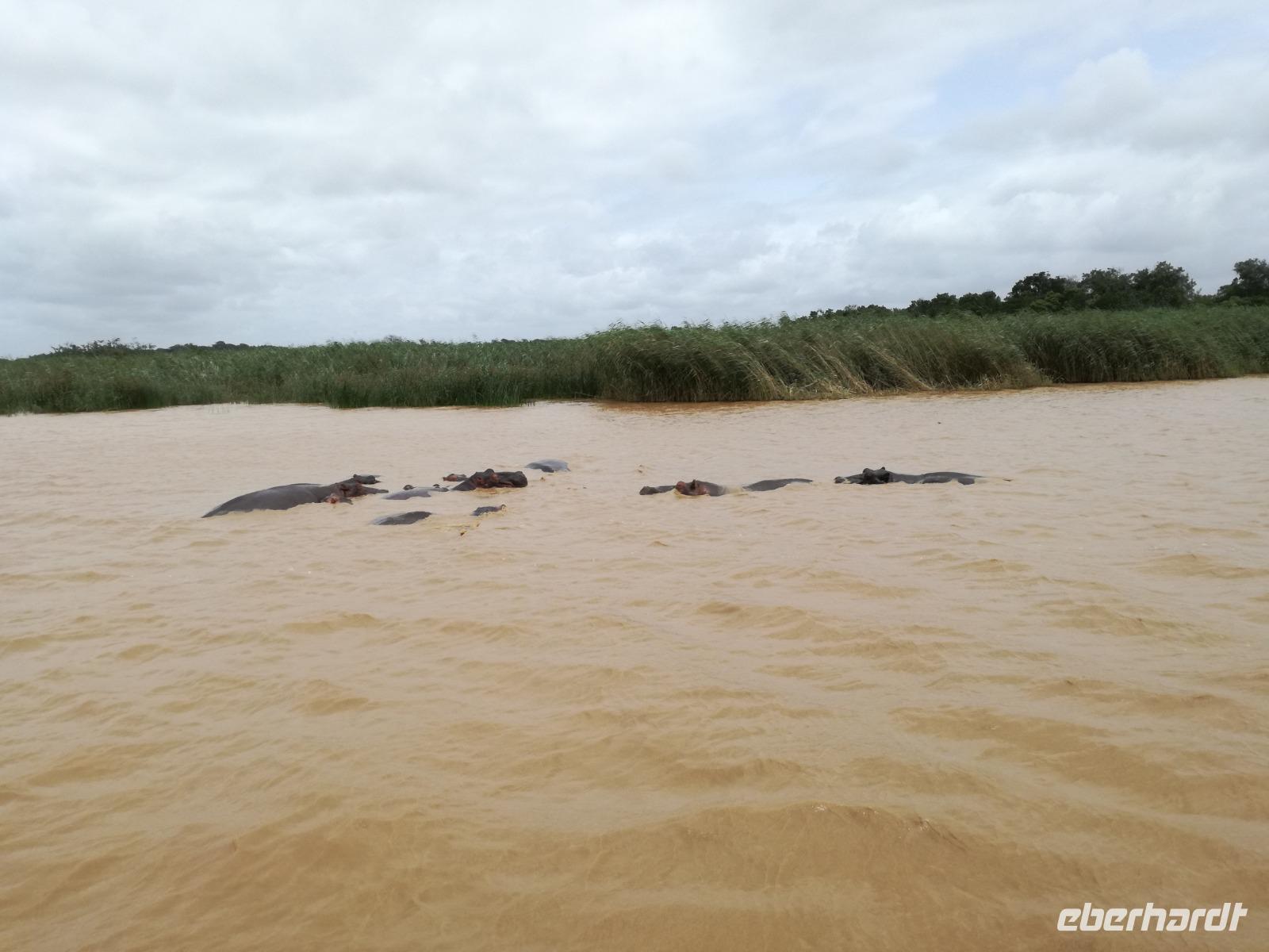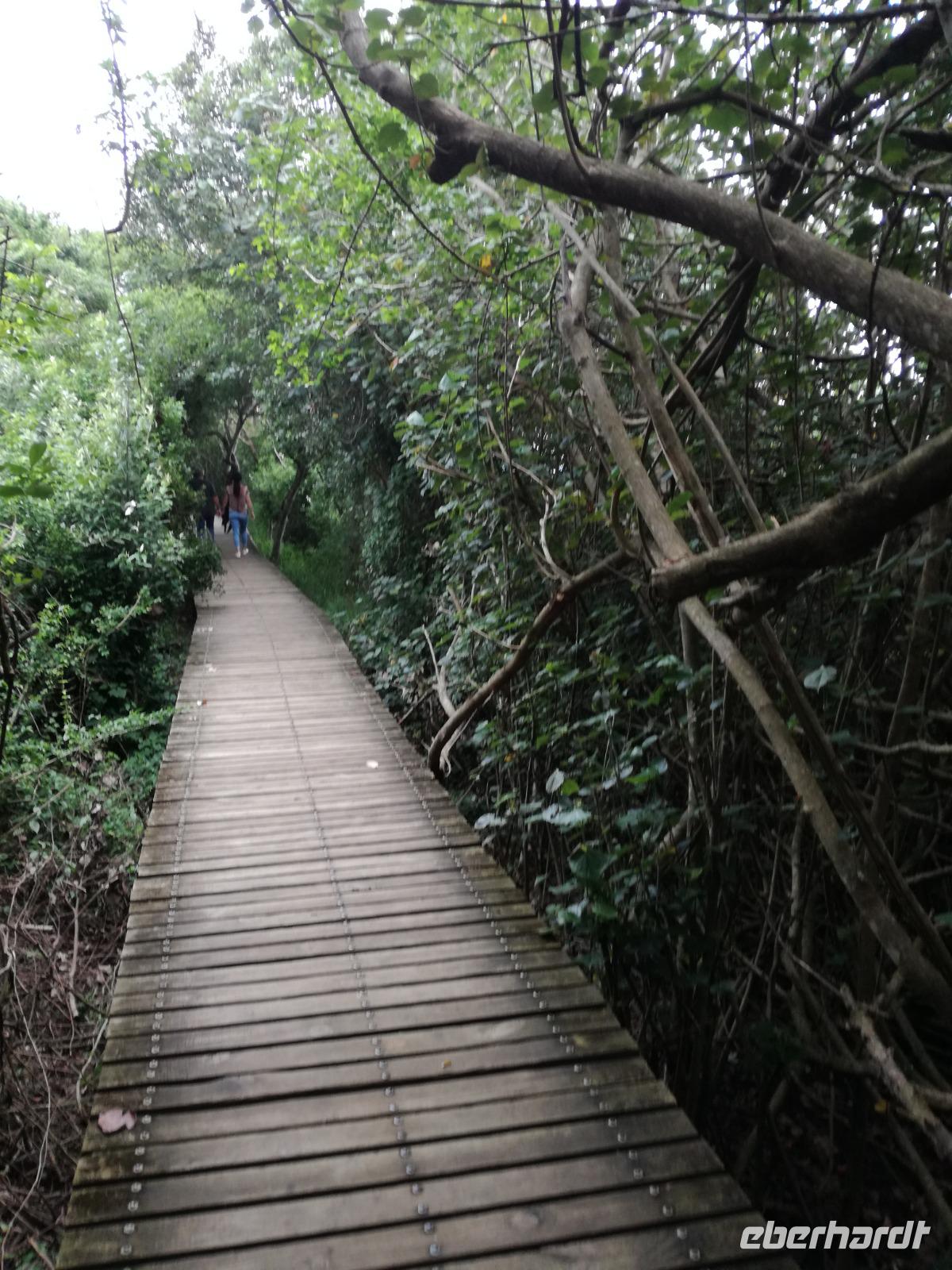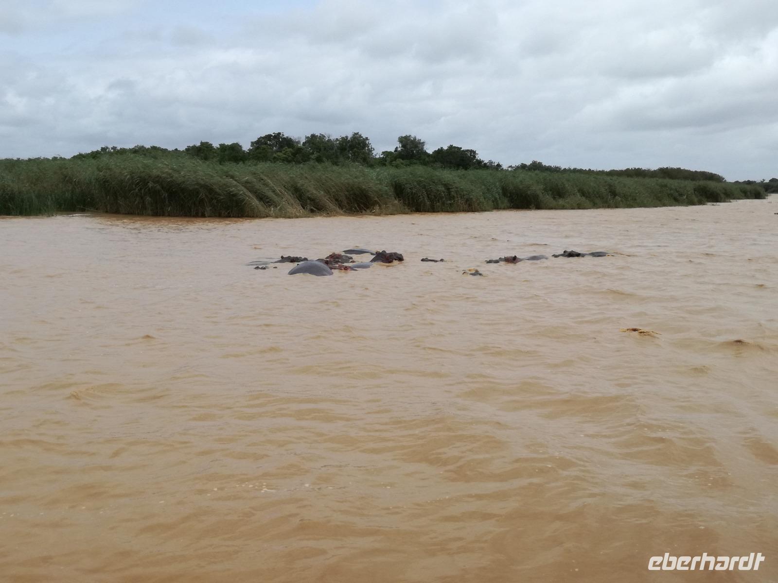 Diesen Morgen konnten wir etwas länger schlafen und genossen das Frühstück in unserer romantischen Umgebung. Nach dem Frühstück brachen wir auf und spazierten bis zur Anlegestelle unseres Bootes. Unsere Bootstour sollte entlang eines Seitenarmes des St. Lucia Lakes gehen. Also shipperten wir los und bereits nach wenigen Minuten entdecken wir das erste Hippopotamus bzw. Nilpferd bzw. Flusspferd bzw. Hippo. Im weiteren Verlauf konnten wir noch weitere Gruppen von Hippos, Krokodile, Blauwangenspint, Gelbweber und auch einen Schreiseeadler. Nach gut 90 Minuten war eine wunderschöne Bootstour beendet und wir gingen zurück an Land. Hier gab es erstmal etwas Freizeit im schönen Touristenörtchen St. Lucia. Vielen nutzen die Zeit zum bummeln oder zum Essen. Wir testeten zum Beispiel frische Ananas am Stil aus der Region oder frischen Mangos an einem der vielen Straßenständen. Nach der Mittagspause fuhren wir dann zum Cape Vidal. Unsere Route führte uns durch den iSimangalisco Wetland Park. Unterwegs sehen wir weitere Tiere wie Warzenschweine, Zebras, Affen, Giraffe, Büffel oder Knus. Einen Foto-Stopp legen wir am Mfabeni Lookout ein. Sonet berichtet uns, dass der iSimangaliso Wetland Park im nördlichen KwaZulu-Natal liegt und nur über St. Lucia erreichbar ist. Der rund 40 Kilometer lange Lake St Lucia ist umgeben von Gras- und Buschland sowie Mangrovensümpfen. Angekommen am Cape Vidal heißt es auch schon relaxen am Strand oder schwimmen im Meer. Allerdings spielte das Wetter nicht sonderlich mit, da es sehr windig war. Aber wir ließen unseren Strandtag nicht vermiesen. Einige Gäste schwimmen im Meer, was nur im Bereich der roten Fahnen erlaubt ist. Ein Rettungsschwimmerteam für den Notfall ist ebenfalls anwesend. Andere hingegen spazieren am Strand entlang oder genossen die steife Brise am Strand. Am Abend ließen wir bei einem optionalen Abendessen den Tag bei frischem Fisch und Seafood im örtlichen Restaurant Ocean Basket ausklingen.