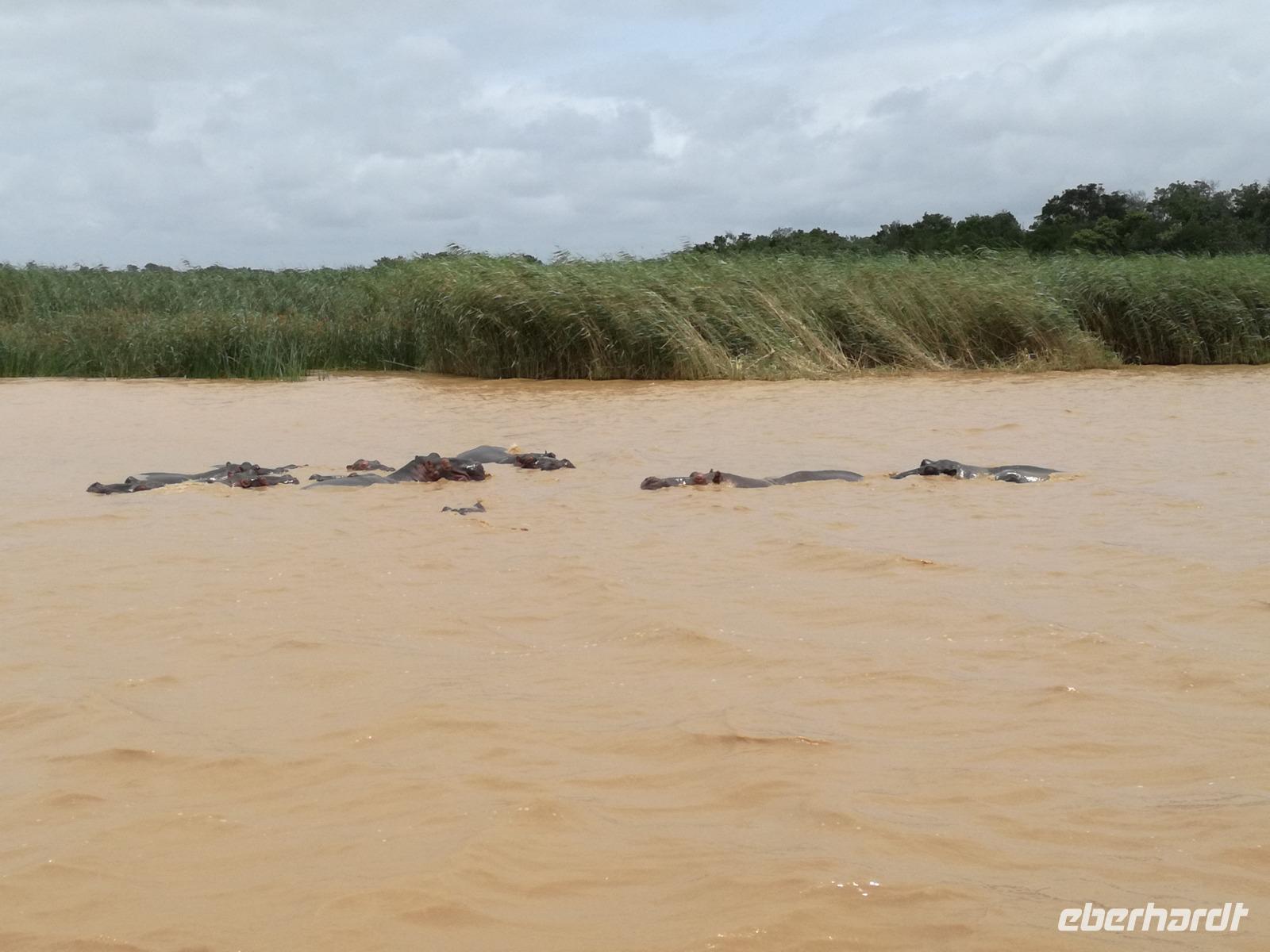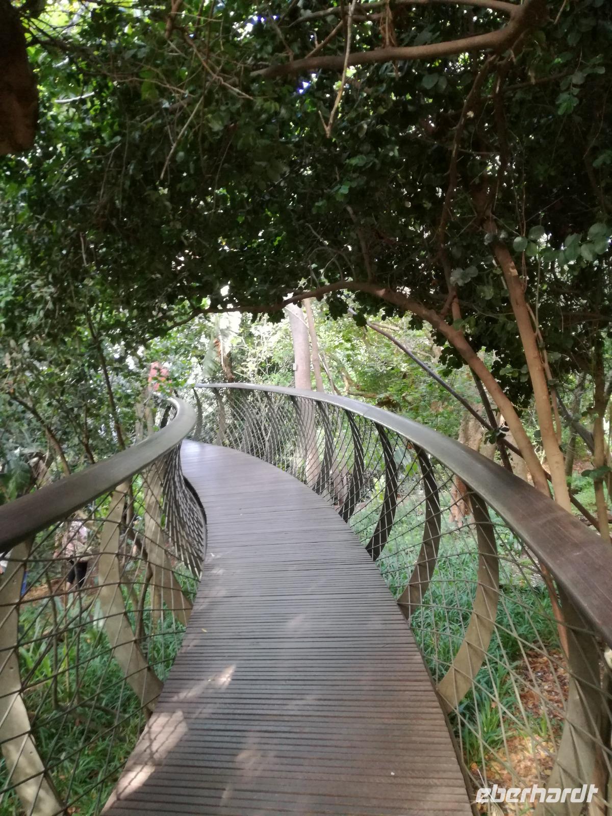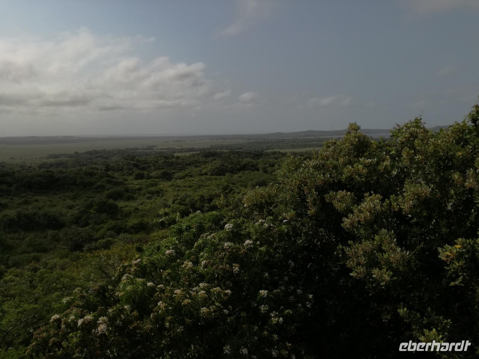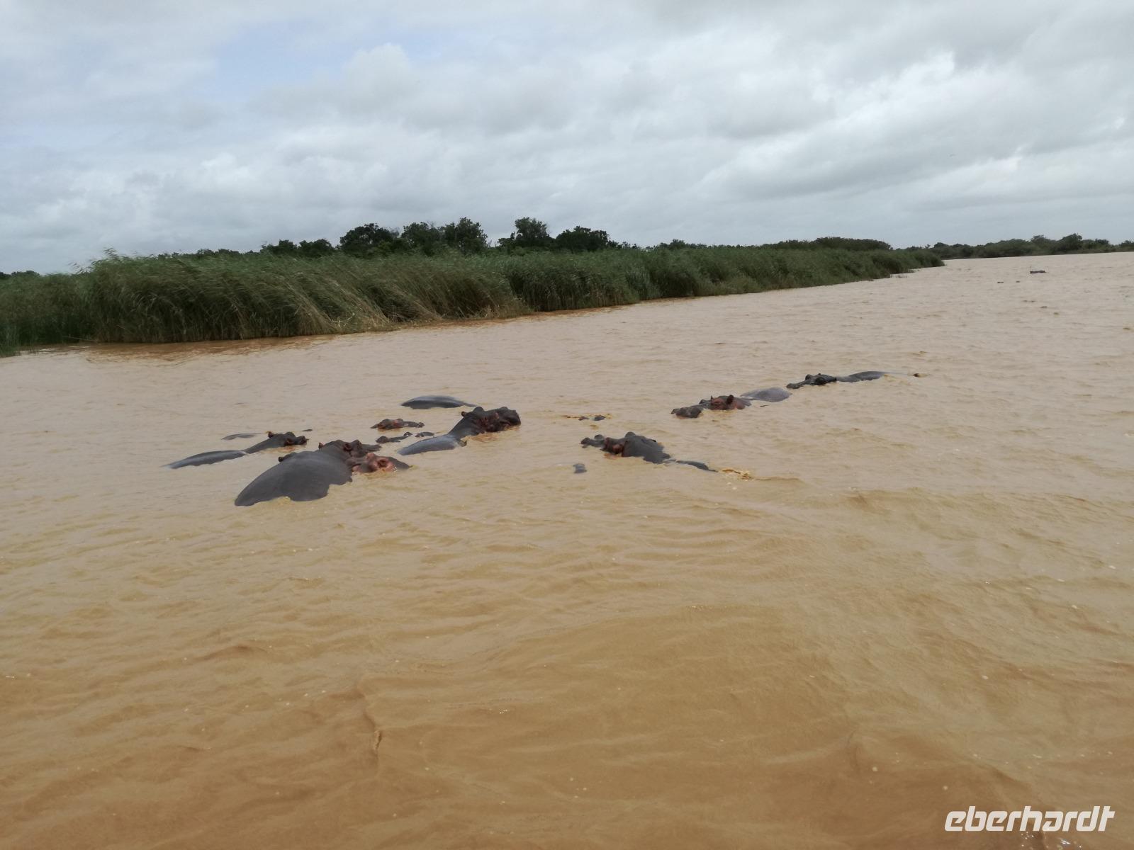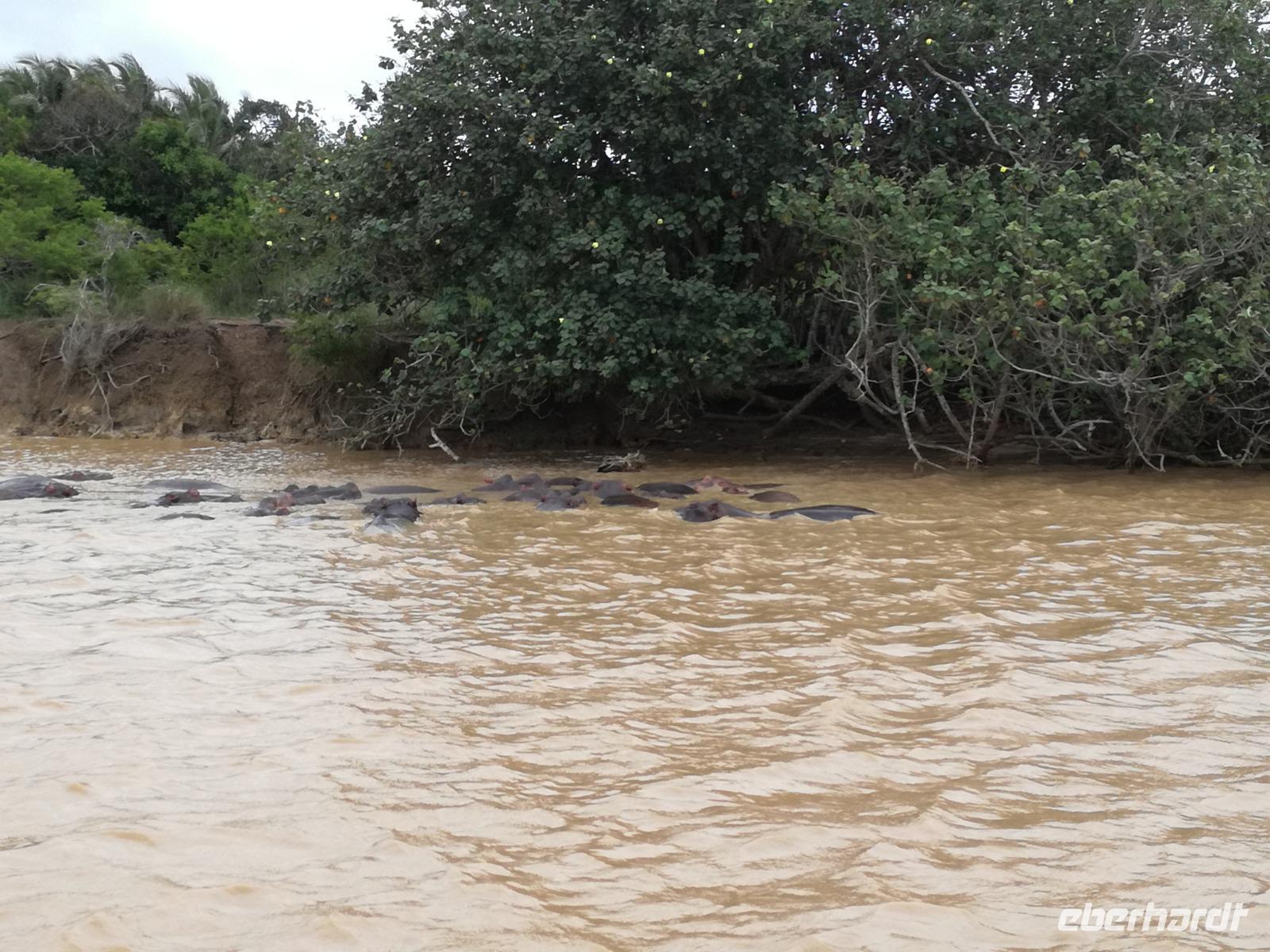 Diesen Morgen konnten wir etwas länger schlafen und genossen das Frühstück in unserer romantischen Umgebung. Nach dem Frühstück brachen wir auf und spazierten bis zur Anlegestelle unseres Bootes. Unsere Bootstour sollte entlang eines Seitenarmes des St. Lucia Lakes gehen. Also shipperten wir los und bereits nach wenigen Minuten entdecken wir das erste Hippopotamus bzw. Nilpferd bzw. Flusspferd bzw. Hippo. Im weiteren Verlauf konnten wir noch weitere Gruppen von Hippos, Krokodile, Blauwangenspint, Gelbweber und auch einen Schreiseeadler. Nach gut 90 Minuten war eine wunderschöne Bootstour beendet und wir gingen zurück an Land. Hier gab es erstmal etwas Freizeit im schönen Touristenörtchen St. Lucia. Vielen nutzen die Zeit zum bummeln oder zum Essen. Wir testeten zum Beispiel frische Ananas am Stil aus der Region oder frischen Mangos an einem der vielen Straßenständen. Nach der Mittagspause fuhren wir dann zum Cape Vidal. Unsere Route führte uns durch den iSimangalisco Wetland Park. Unterwegs sehen wir weitere Tiere wie Warzenschweine, Zebras, Affen, Giraffe, Büffel oder Knus. Einen Foto-Stopp legen wir am Mfabeni Lookout ein. Sonet berichtet uns, dass der iSimangaliso Wetland Park im nördlichen KwaZulu-Natal liegt und nur über St. Lucia erreichbar ist. Der rund 40 Kilometer lange Lake St Lucia ist umgeben von Gras- und Buschland sowie Mangrovensümpfen. Angekommen am Cape Vidal heißt es auch schon relaxen am Strand oder schwimmen im Meer. Allerdings spielte das Wetter nicht sonderlich mit, da es sehr windig war. Aber wir ließen unseren Strandtag nicht vermiesen. Einige Gäste schwimmen im Meer, was nur im Bereich der roten Fahnen erlaubt ist. Ein Rettungsschwimmerteam für den Notfall ist ebenfalls anwesend. Andere hingegen spazieren am Strand entlang oder genossen die steife Brise am Strand. Am Abend ließen wir bei einem optionalen Abendessen den Tag bei frischem Fisch und Seafood im örtlichen Restaurant Ocean Basket ausklingen.