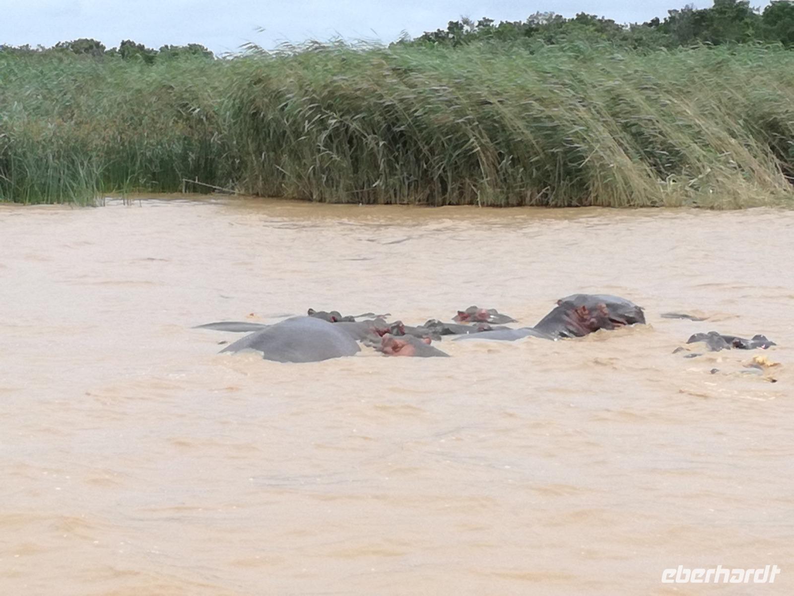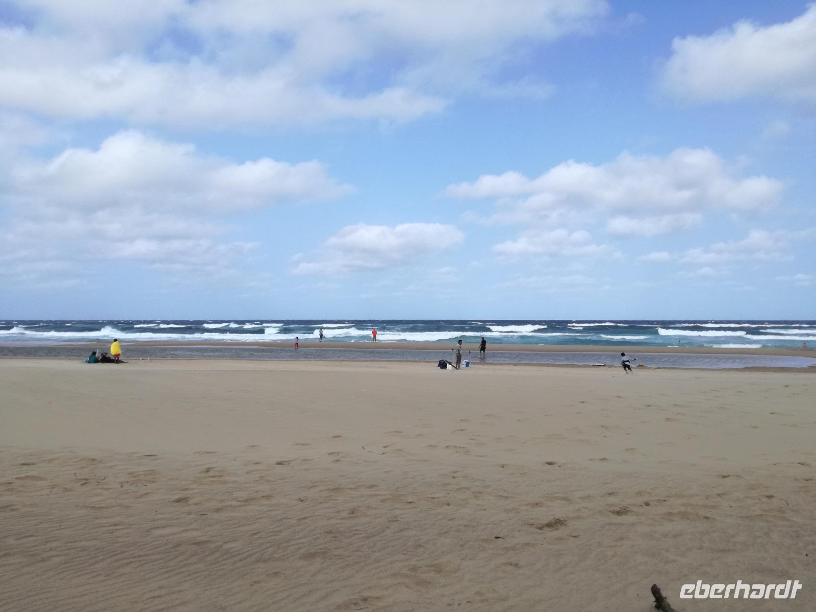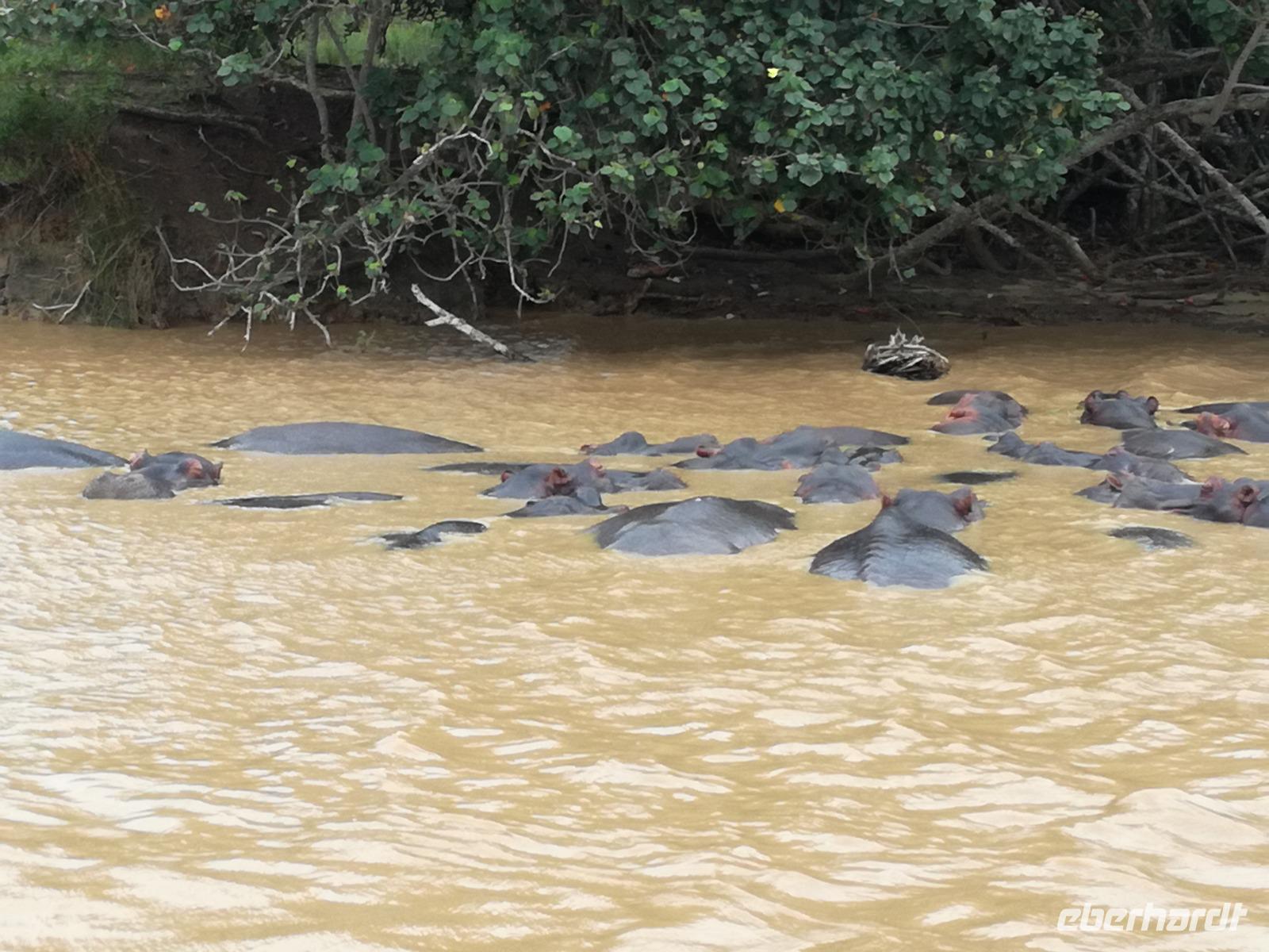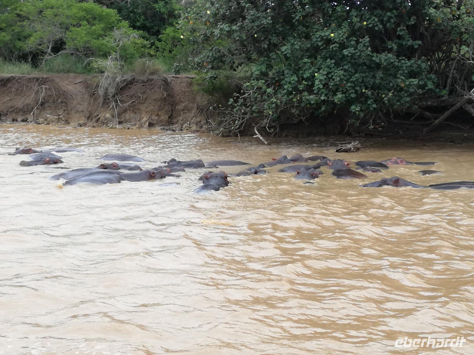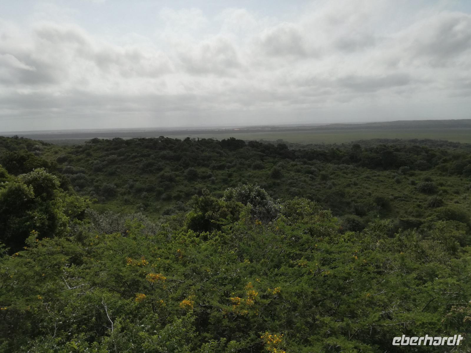 Diesen Morgen konnten wir etwas länger schlafen und genossen das Frühstück in unserer romantischen Umgebung. Nach dem Frühstück brachen wir auf und spazierten bis zur Anlegestelle unseres Bootes. Unsere Bootstour sollte entlang eines Seitenarmes des St. Lucia Lakes gehen. Also shipperten wir los und bereits nach wenigen Minuten entdecken wir das erste Hippopotamus bzw. Nilpferd bzw. Flusspferd bzw. Hippo. Im weiteren Verlauf konnten wir noch weitere Gruppen von Hippos, Krokodile, Blauwangenspint, Gelbweber und auch einen Schreiseeadler. Nach gut 90 Minuten war eine wunderschöne Bootstour beendet und wir gingen zurück an Land. Hier gab es erstmal etwas Freizeit im schönen Touristenörtchen St. Lucia. Vielen nutzen die Zeit zum bummeln oder zum Essen. Wir testeten zum Beispiel frische Ananas am Stil aus der Region oder frischen Mangos an einem der vielen Straßenständen. Nach der Mittagspause fuhren wir dann zum Cape Vidal. Unsere Route führte uns durch den iSimangalisco Wetland Park. Unterwegs sehen wir weitere Tiere wie Warzenschweine, Zebras, Affen, Giraffe, Büffel oder Knus. Einen Foto-Stopp legen wir am Mfabeni Lookout ein. Sonet berichtet uns, dass der iSimangaliso Wetland Park im nördlichen KwaZulu-Natal liegt und nur über St. Lucia erreichbar ist. Der rund 40 Kilometer lange Lake St Lucia ist umgeben von Gras- und Buschland sowie Mangrovensümpfen. Angekommen am Cape Vidal heißt es auch schon relaxen am Strand oder schwimmen im Meer. Allerdings spielte das Wetter nicht sonderlich mit, da es sehr windig war. Aber wir ließen unseren Strandtag nicht vermiesen. Einige Gäste schwimmen im Meer, was nur im Bereich der roten Fahnen erlaubt ist. Ein Rettungsschwimmerteam für den Notfall ist ebenfalls anwesend. Andere hingegen spazieren am Strand entlang oder genossen die steife Brise am Strand. Am Abend ließen wir bei einem optionalen Abendessen den Tag bei frischem Fisch und Seafood im örtlichen Restaurant Ocean Basket ausklingen.