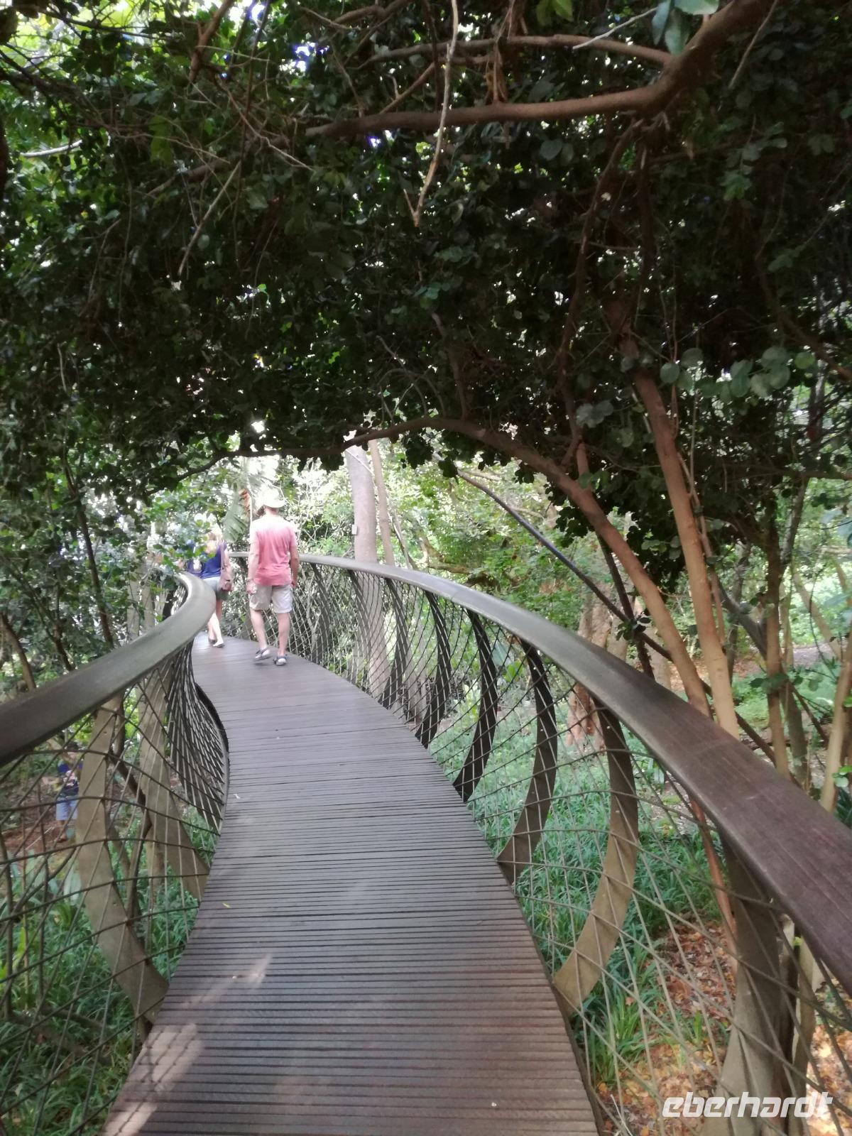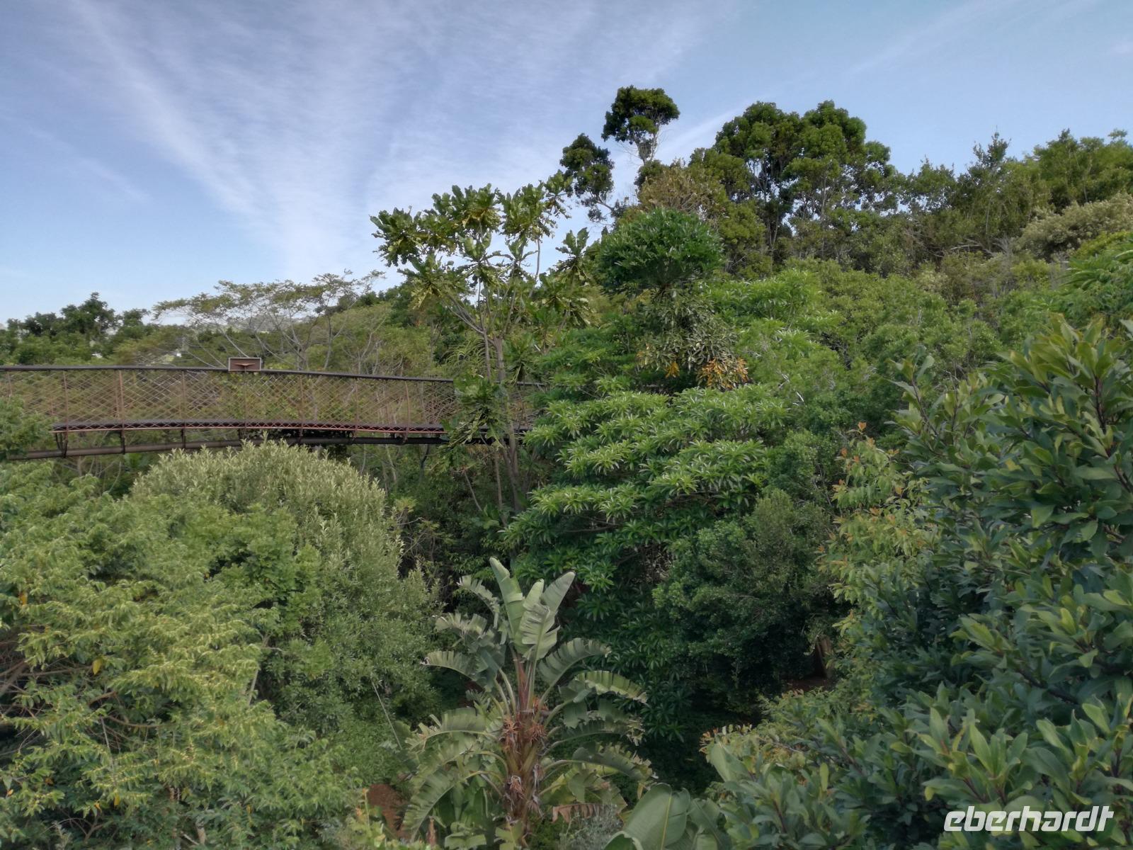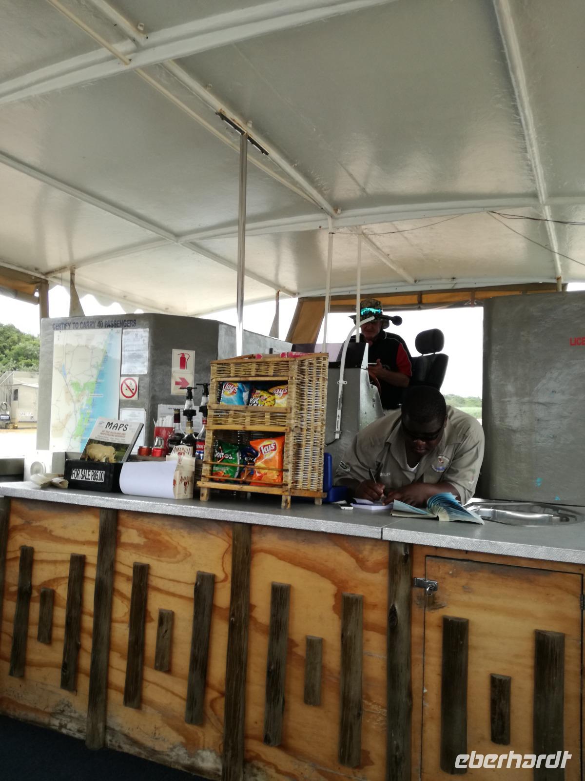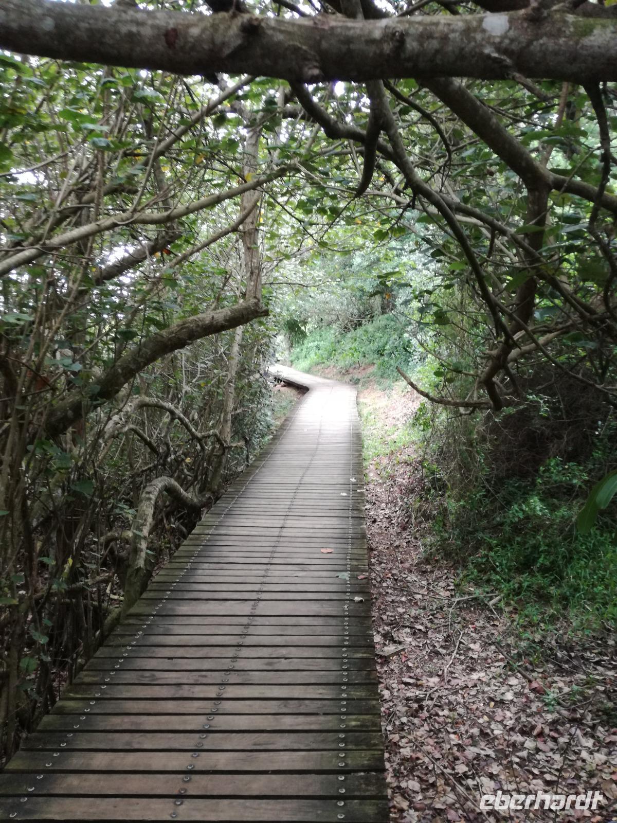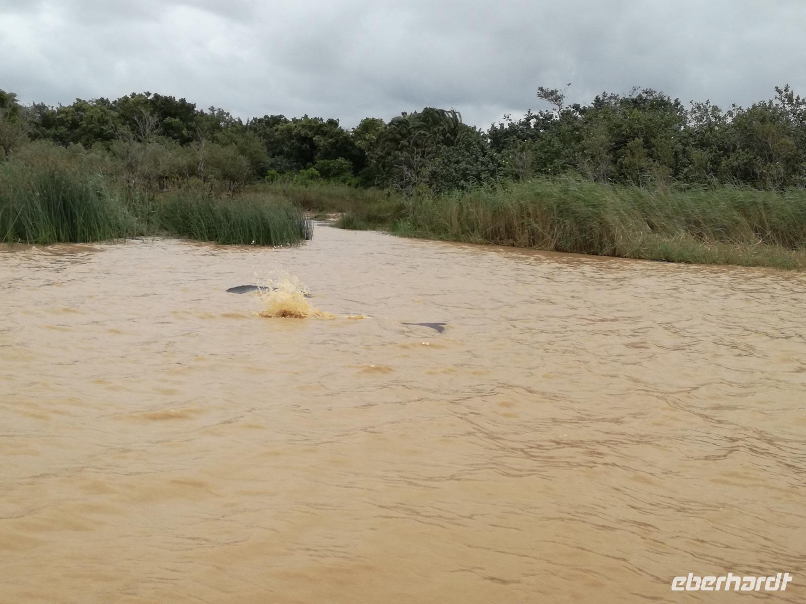 Diesen Morgen konnten wir etwas länger schlafen und genossen das Frühstück in unserer romantischen Umgebung. Nach dem Frühstück brachen wir auf und spazierten bis zur Anlegestelle unseres Bootes. Unsere Bootstour sollte entlang eines Seitenarmes des St. Lucia Lakes gehen. Also shipperten wir los und bereits nach wenigen Minuten entdecken wir das erste Hippopotamus bzw. Nilpferd bzw. Flusspferd bzw. Hippo. Im weiteren Verlauf konnten wir noch weitere Gruppen von Hippos, Krokodile, Blauwangenspint, Gelbweber und auch einen Schreiseeadler. Nach gut 90 Minuten war eine wunderschöne Bootstour beendet und wir gingen zurück an Land. Hier gab es erstmal etwas Freizeit im schönen Touristenörtchen St. Lucia. Vielen nutzen die Zeit zum bummeln oder zum Essen. Wir testeten zum Beispiel frische Ananas am Stil aus der Region oder frischen Mangos an einem der vielen Straßenständen. Nach der Mittagspause fuhren wir dann zum Cape Vidal. Unsere Route führte uns durch den iSimangalisco Wetland Park. Unterwegs sehen wir weitere Tiere wie Warzenschweine, Zebras, Affen, Giraffe, Büffel oder Knus. Einen Foto-Stopp legen wir am Mfabeni Lookout ein. Sonet berichtet uns, dass der iSimangaliso Wetland Park im nördlichen KwaZulu-Natal liegt und nur über St. Lucia erreichbar ist. Der rund 40 Kilometer lange Lake St Lucia ist umgeben von Gras- und Buschland sowie Mangrovensümpfen. Angekommen am Cape Vidal heißt es auch schon relaxen am Strand oder schwimmen im Meer. Allerdings spielte das Wetter nicht sonderlich mit, da es sehr windig war. Aber wir ließen unseren Strandtag nicht vermiesen. Einige Gäste schwimmen im Meer, was nur im Bereich der roten Fahnen erlaubt ist. Ein Rettungsschwimmerteam für den Notfall ist ebenfalls anwesend. Andere hingegen spazieren am Strand entlang oder genossen die steife Brise am Strand. Am Abend ließen wir bei einem optionalen Abendessen den Tag bei frischem Fisch und Seafood im örtlichen Restaurant Ocean Basket ausklingen.