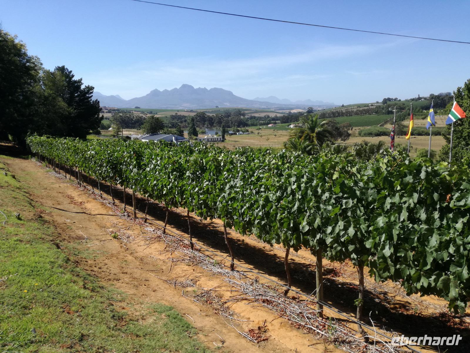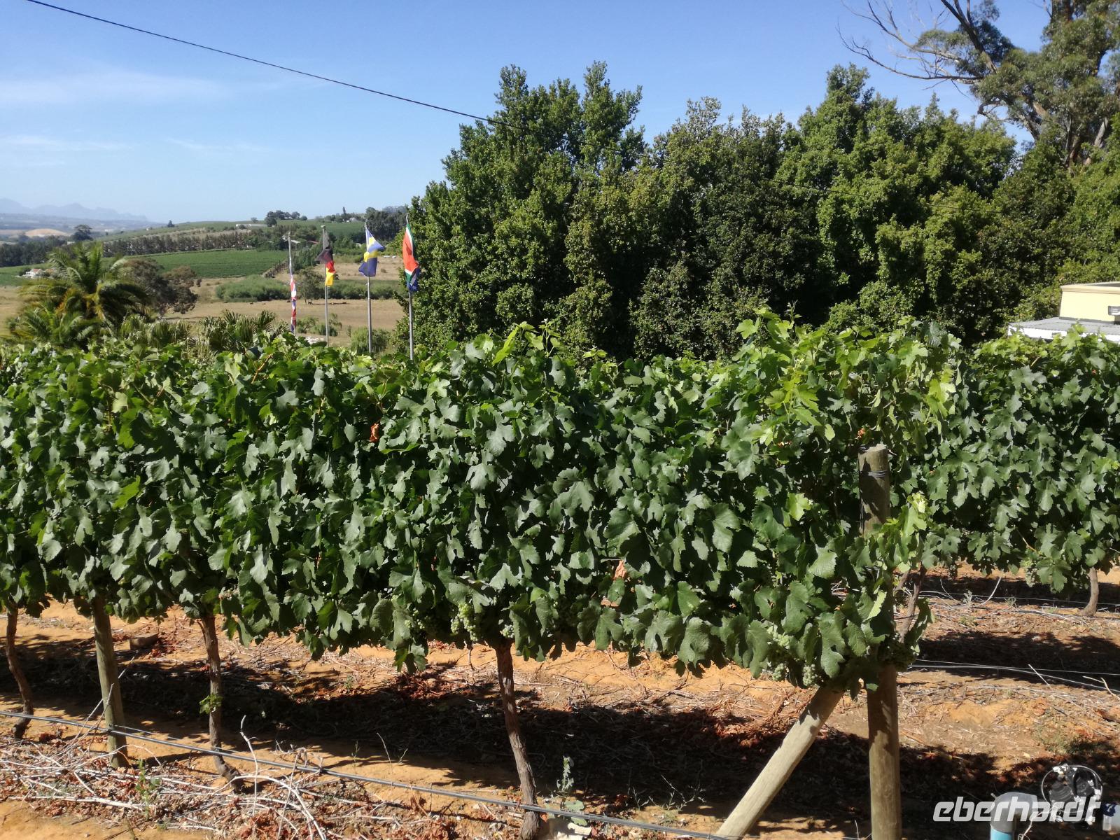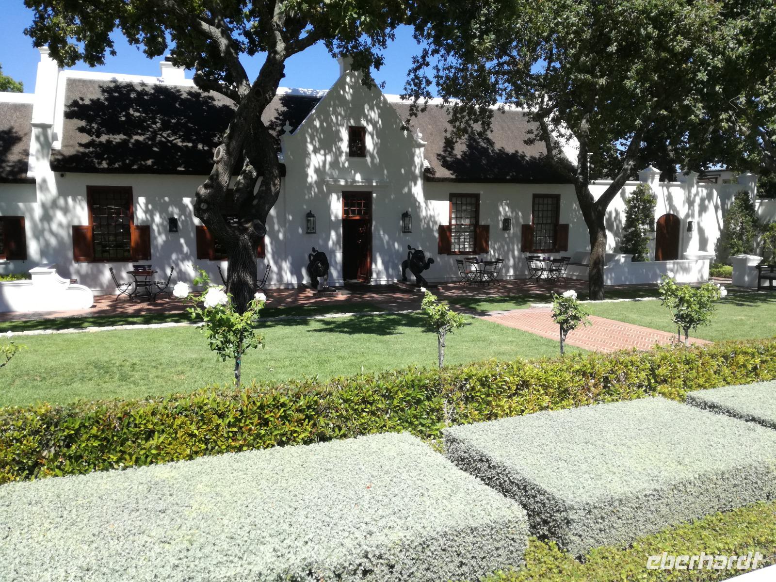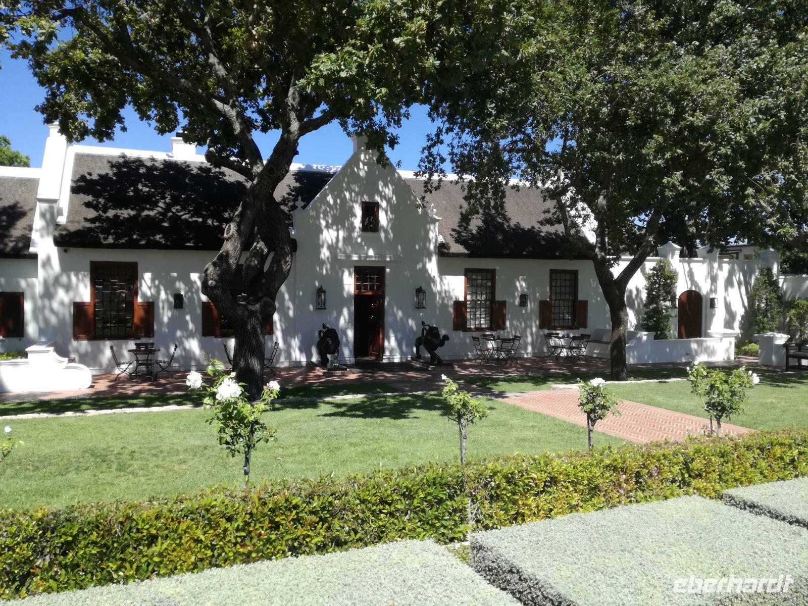Am Morgen genossen wir erstmal das leckere Frühstück auf der Terrasse unseres Hotels mit Blick auf die wundervolle Landschaft und den Weinfeldern. Unser erster Tagespunkt war das bezaubernde Örtchen Franschhoeck. Übersetzt bedeutet der Name „Französisches Eck". Der Ort wurde im Jahr 1688 von den Hugenotten gegründet. Die Hugenotten wurden in Frankreich wegen ihrer calvinistisch-protestantischen verfolgt und nahmen die Einladung der Holländer nach Südafrika zukommen gerne an. Hier am Kap wurde die fleißigen und kenntnisreichen Siedler sesshaft und förderten durch ihr Wissen den Weinanbau der Region. Das Örtchen Franschhoeck bietet neben den Denkmal für die Hugenotten, unzählige Cafés, kleine Geschäfte und Restaurant. Nach einem ausgiebigen Bummel durch das romantische Örtchen, fuhren wir zum Weingut Blauklippen. Sonntags befindet sich hier ein Bauernmarkt mit vielen Zelten und Spielwiesen für die Kinder. Zunächst schauten wir uns um, bevor unsere Weinprobe und Kellertour begann. Eine Angestellte des Gutes führte an herum und erklärte uns die Geschichte des Gutes, des Herrenhauses und des Weines. Im Keller beschrieb sie uns die einzelnen Vorgänge des Weines und die einzelnen Fässer des Gutes. Anschließend durften wir die einzelnen Weine verkosten und ein leckeres Mittagessen verspeisen. Nach dem schönen Aufenthalt auf dem Weingut machten wir uns auf dem Weg nach Stellenbosch. Stellenbosch wurde 1679 gegründet und gilt als zweitälteste Stadt des Landes. Vor allem wurde das Land aufgrund des fruchtbaren Landes entlang des Eerste Rivers gegründet. Viele Häuser sind noch heute im Kolonialstil gebaut und erhalten. Hier ließ uns leider das Heimatmuseum im Stich und hatte trotz Absprache geschlossen. Wir spazierten durch die Holländisch geprägte Stadt. Hier gibt es unter anderem eine Universität mit vielen ausländischen Studenten und viele kleinere Weingüter und Restaurants. Den Nachmittag stand im Zeichen von Kraft tanken am Hotelpool und Schlaf vom Nachtflug nachholen. Am Abend organisierten wir uns einen Transfer zurück nach Stellenbosch. Hier aßen wir im ausgezeichneten Restaurant Wijnhuis zu Abend und probierte weitere Weine oder das heimische Bier. Gesättigt, zufrieden und müde fuhren wir zurück in unser Hotel.