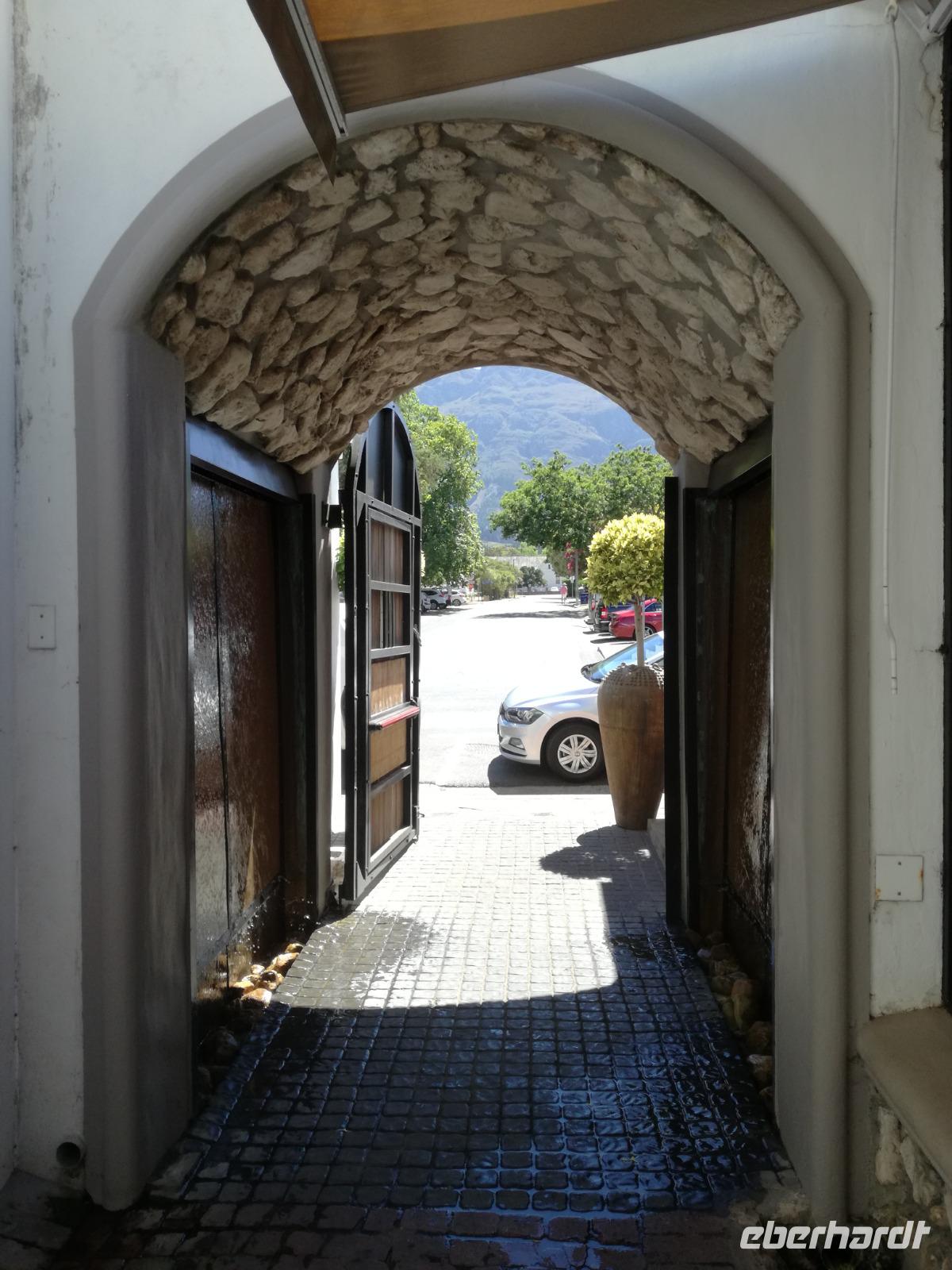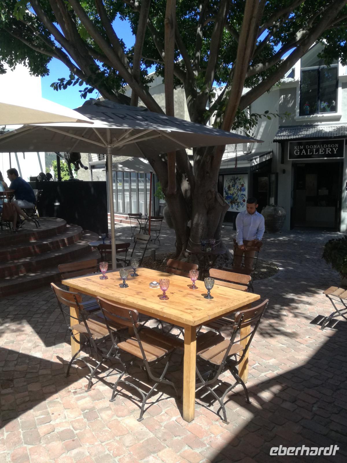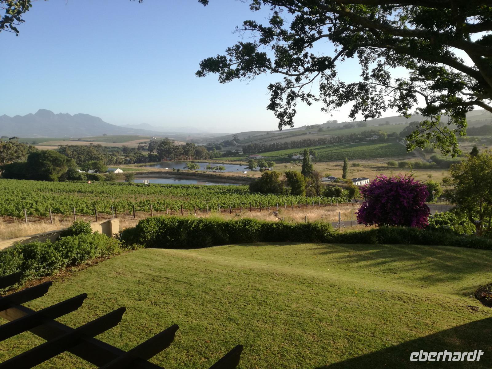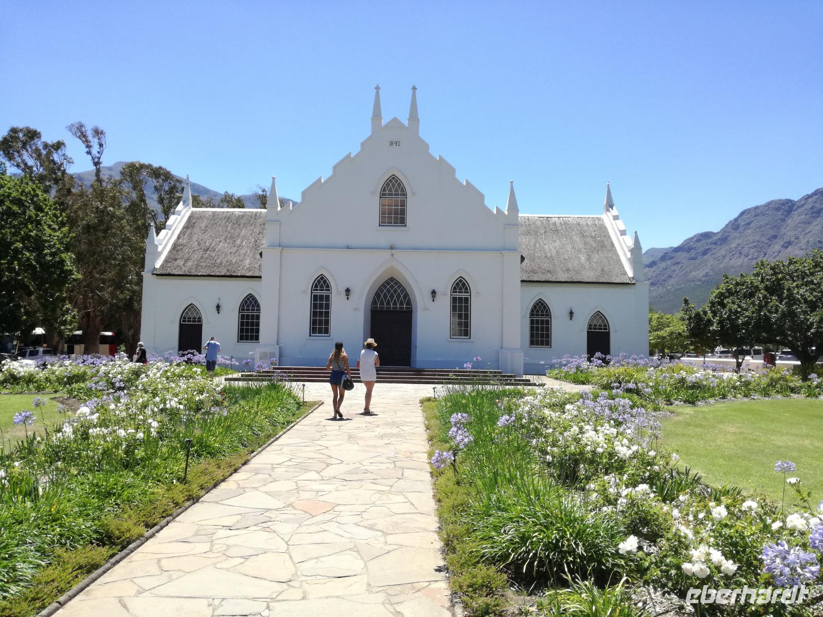 Am Morgen genossen wir erstmal das leckere Frühstück auf der Terrasse unseres Hotels mit Blick auf die wundervolle Landschaft und den Weinfeldern. Unser erster Tagespunkt war das bezaubernde Örtchen Franschhoeck. Übersetzt bedeutet der Name „Französisches Eck". Der Ort wurde im Jahr 1688 von den Hugenotten gegründet. Die Hugenotten wurden in Frankreich wegen ihrer calvinistisch-protestantischen verfolgt und nahmen die Einladung der Holländer nach Südafrika zukommen gerne an. Hier am Kap wurde die fleißigen und kenntnisreichen Siedler sesshaft und förderten durch ihr Wissen den Weinanbau der Region. Das Örtchen Franschhoeck bietet neben den Denkmal für die Hugenotten, unzählige Cafés, kleine Geschäfte und Restaurant. Nach einem ausgiebigen Bummel durch das romantische Örtchen, fuhren wir zum Weingut Blauklippen. Sonntags befindet sich hier ein Bauernmarkt mit vielen Zelten und Spielwiesen für die Kinder. Zunächst schauten wir uns um, bevor unsere Weinprobe und Kellertour begann. Eine Angestellte des Gutes führte an herum und erklärte uns die Geschichte des Gutes, des Herrenhauses und des Weines. Im Keller beschrieb sie uns die einzelnen Vorgänge des Weines und die einzelnen Fässer des Gutes. Anschließend durften wir die einzelnen Weine verkosten und ein leckeres Mittagessen verspeisen. Nach dem schönen Aufenthalt auf dem Weingut machten wir uns auf dem Weg nach Stellenbosch. Stellenbosch wurde 1679 gegründet und gilt als zweitälteste Stadt des Landes. Vor allem wurde das Land aufgrund des fruchtbaren Landes entlang des Eerste Rivers gegründet. Viele Häuser sind noch heute im Kolonialstil gebaut und erhalten. Hier ließ uns leider das Heimatmuseum im Stich und hatte trotz Absprache geschlossen. Wir spazierten durch die Holländisch geprägte Stadt. Hier gibt es unter anderem eine Universität mit vielen ausländischen Studenten und viele kleinere Weingüter und Restaurants. Den Nachmittag stand im Zeichen von Kraft tanken am Hotelpool und Schlaf vom Nachtflug nachholen. Am Abend organisierten wir uns einen Transfer zurück nach Stellenbosch. Hier aßen wir im ausgezeichneten Restaurant Wijnhuis zu Abend und probierte weitere Weine oder das heimische Bier. Gesättigt, zufrieden und müde fuhren wir zurück in unser Hotel.