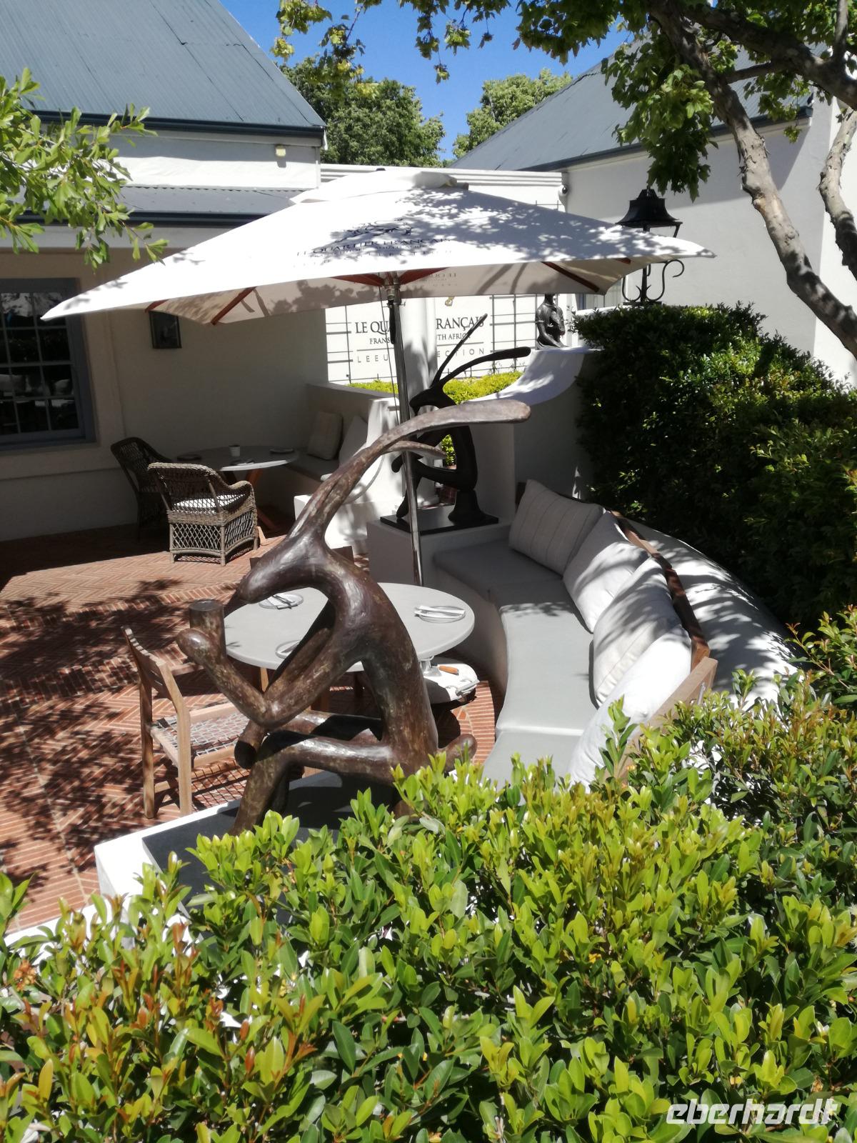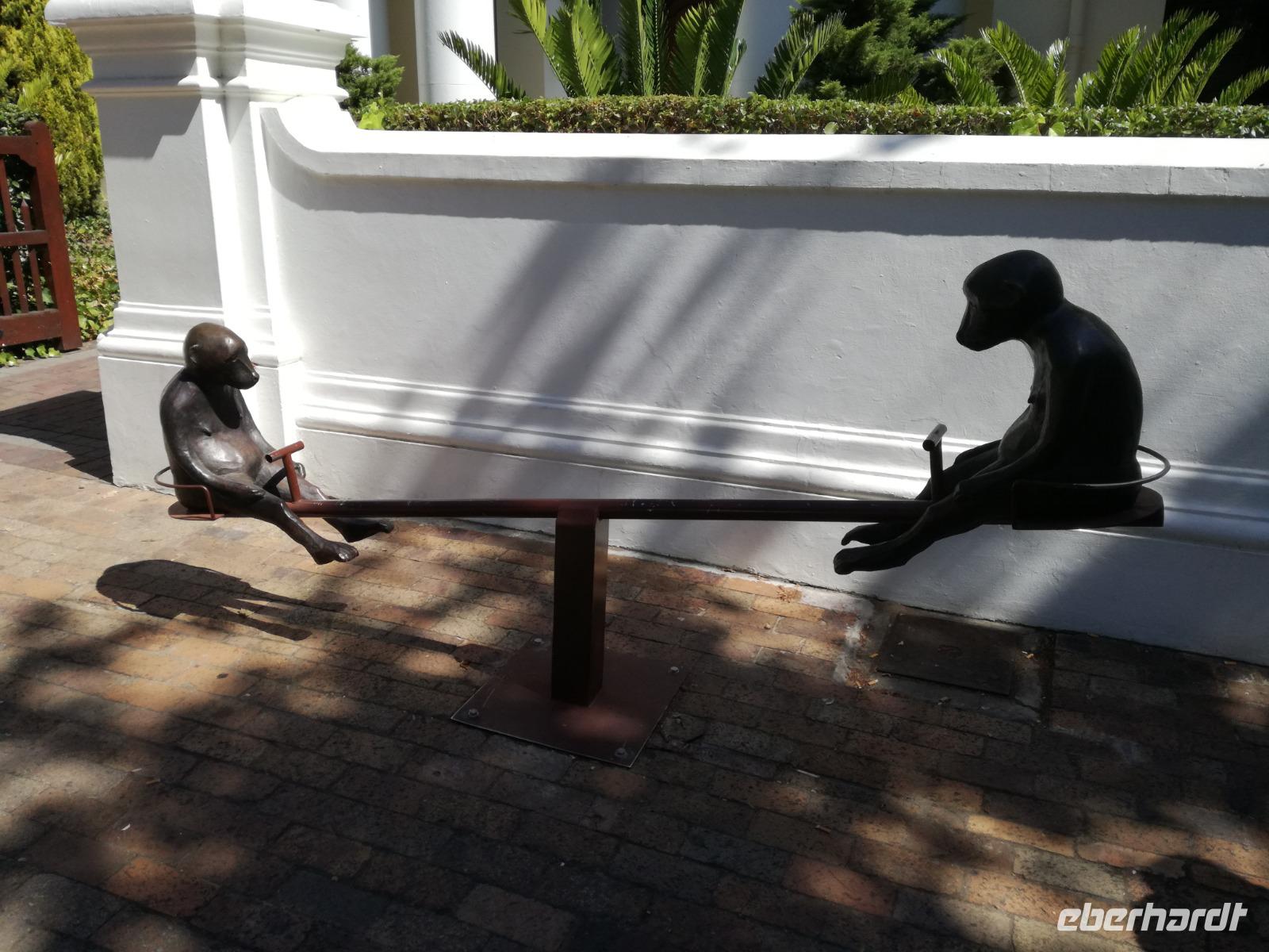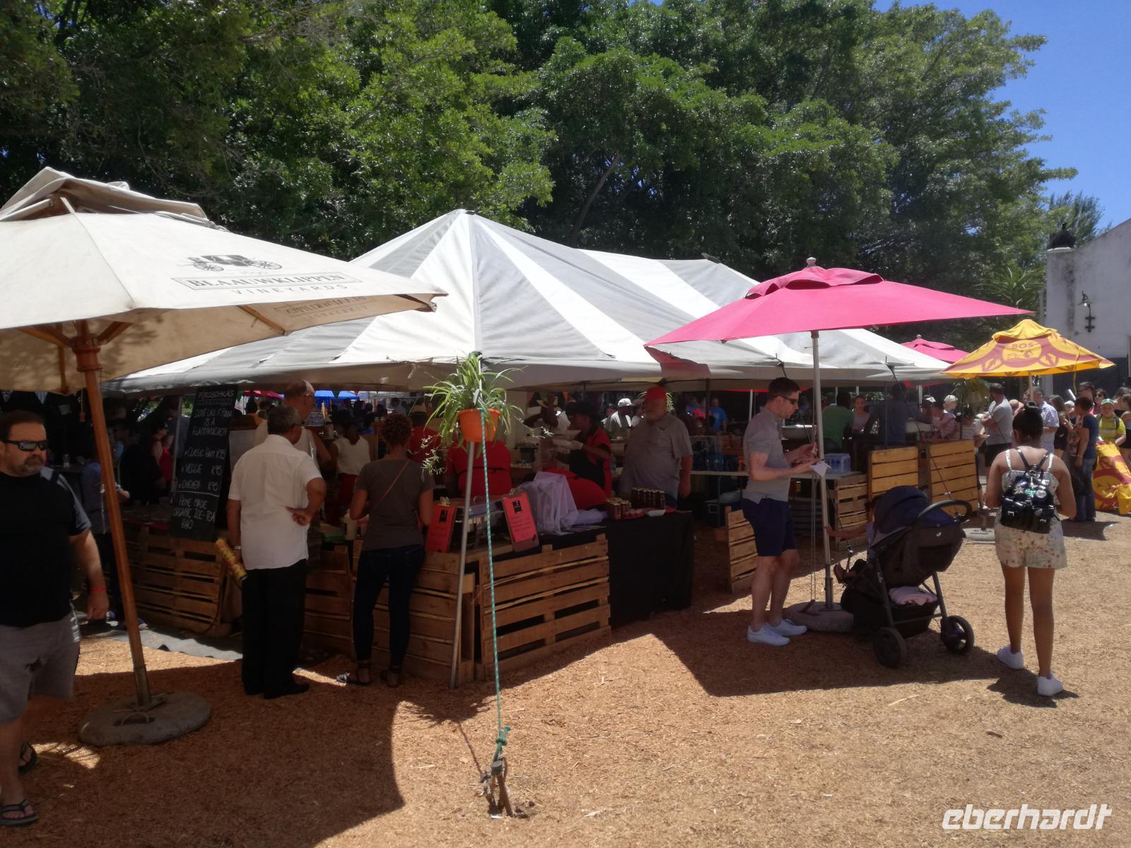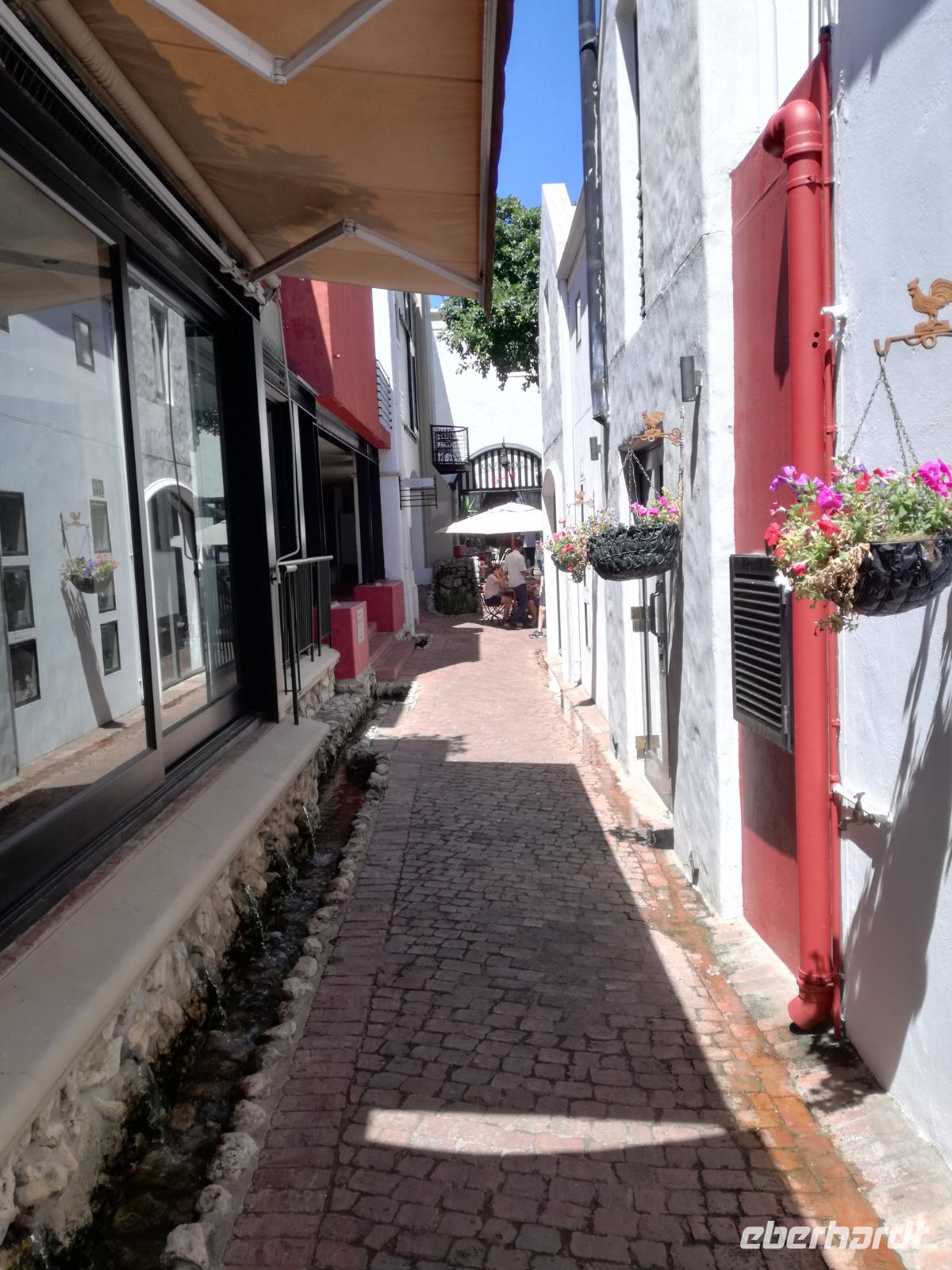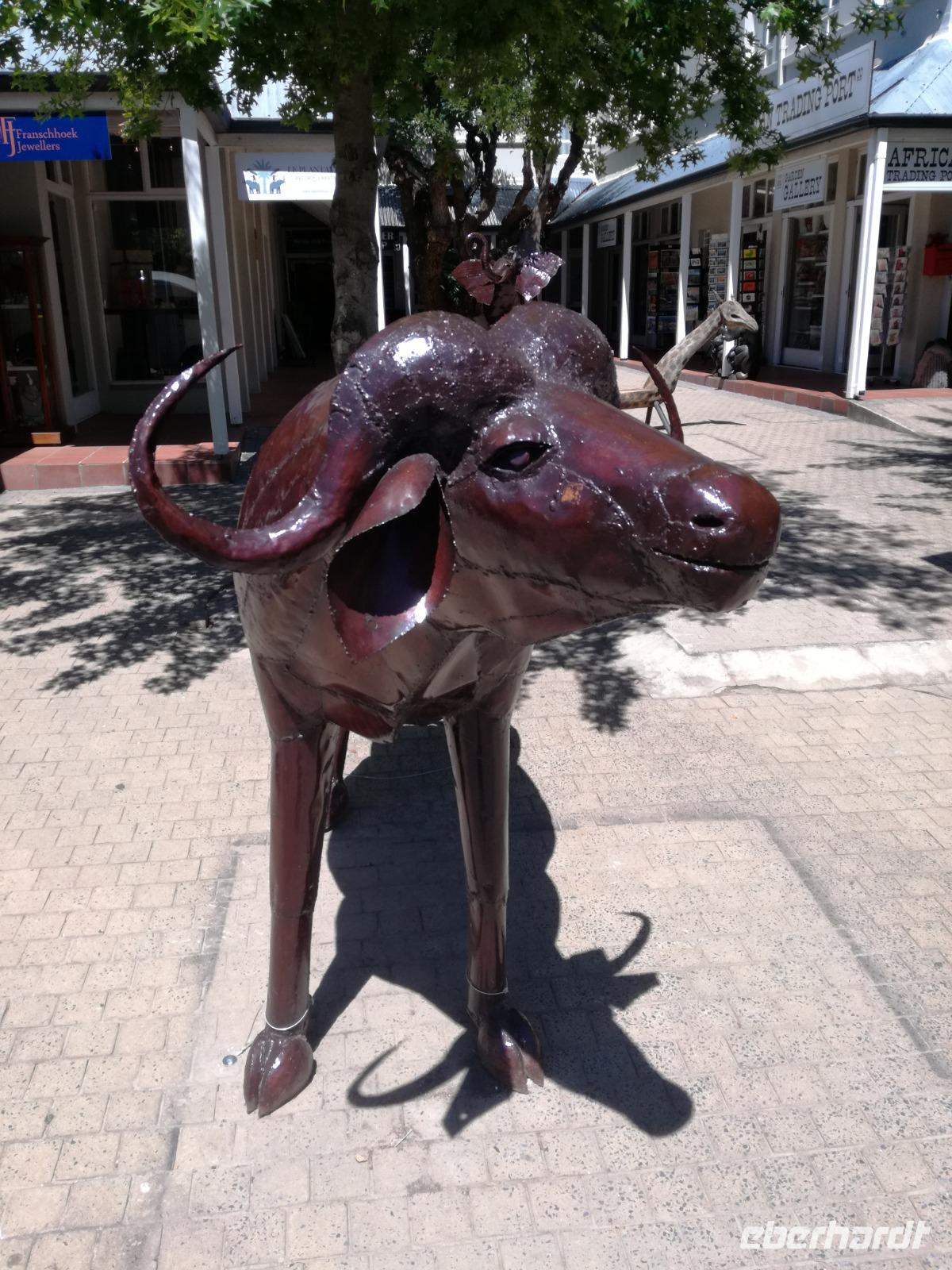 Am Morgen genossen wir erstmal das leckere Frühstück auf der Terrasse unseres Hotels mit Blick auf die wundervolle Landschaft und den Weinfeldern. Unser erster Tagespunkt war das bezaubernde Örtchen Franschhoeck. Übersetzt bedeutet der Name „Französisches Eck". Der Ort wurde im Jahr 1688 von den Hugenotten gegründet. Die Hugenotten wurden in Frankreich wegen ihrer calvinistisch-protestantischen verfolgt und nahmen die Einladung der Holländer nach Südafrika zukommen gerne an. Hier am Kap wurde die fleißigen und kenntnisreichen Siedler sesshaft und förderten durch ihr Wissen den Weinanbau der Region. Das Örtchen Franschhoeck bietet neben den Denkmal für die Hugenotten, unzählige Cafés, kleine Geschäfte und Restaurant. Nach einem ausgiebigen Bummel durch das romantische Örtchen, fuhren wir zum Weingut Blauklippen. Sonntags befindet sich hier ein Bauernmarkt mit vielen Zelten und Spielwiesen für die Kinder. Zunächst schauten wir uns um, bevor unsere Weinprobe und Kellertour begann. Eine Angestellte des Gutes führte an herum und erklärte uns die Geschichte des Gutes, des Herrenhauses und des Weines. Im Keller beschrieb sie uns die einzelnen Vorgänge des Weines und die einzelnen Fässer des Gutes. Anschließend durften wir die einzelnen Weine verkosten und ein leckeres Mittagessen verspeisen. Nach dem schönen Aufenthalt auf dem Weingut machten wir uns auf dem Weg nach Stellenbosch. Stellenbosch wurde 1679 gegründet und gilt als zweitälteste Stadt des Landes. Vor allem wurde das Land aufgrund des fruchtbaren Landes entlang des Eerste Rivers gegründet. Viele Häuser sind noch heute im Kolonialstil gebaut und erhalten. Hier ließ uns leider das Heimatmuseum im Stich und hatte trotz Absprache geschlossen. Wir spazierten durch die Holländisch geprägte Stadt. Hier gibt es unter anderem eine Universität mit vielen ausländischen Studenten und viele kleinere Weingüter und Restaurants. Den Nachmittag stand im Zeichen von Kraft tanken am Hotelpool und Schlaf vom Nachtflug nachholen. Am Abend organisierten wir uns einen Transfer zurück nach Stellenbosch. Hier aßen wir im ausgezeichneten Restaurant Wijnhuis zu Abend und probierte weitere Weine oder das heimische Bier. Gesättigt, zufrieden und müde fuhren wir zurück in unser Hotel.