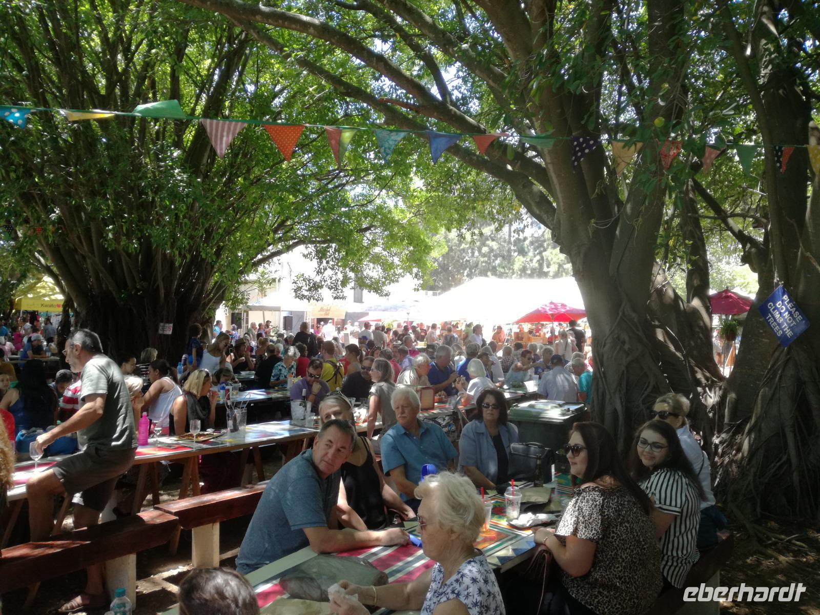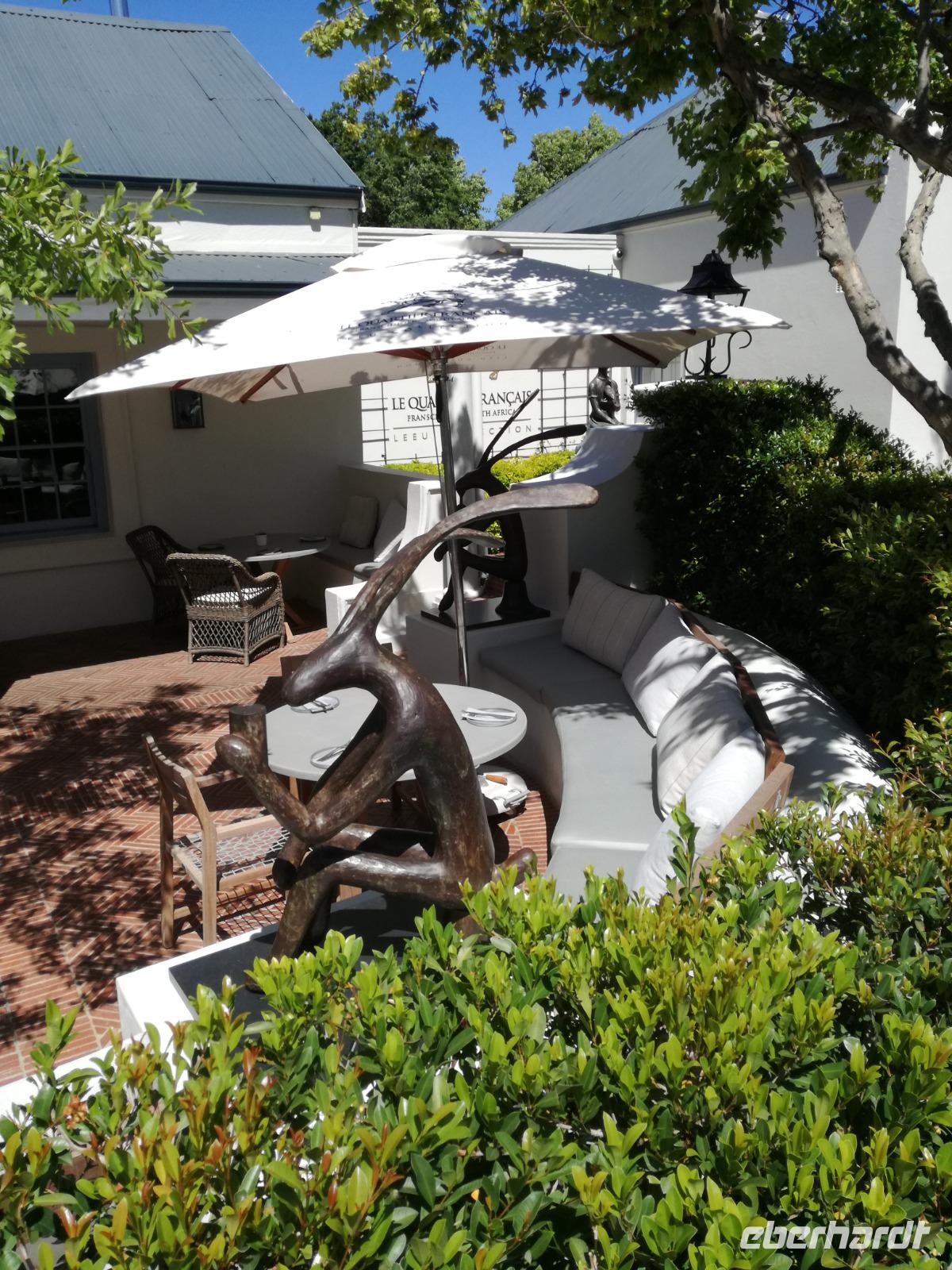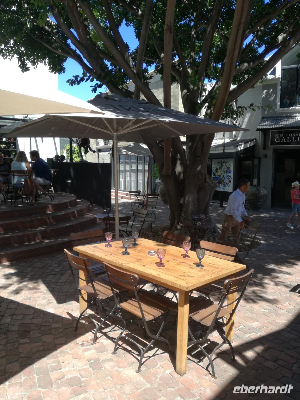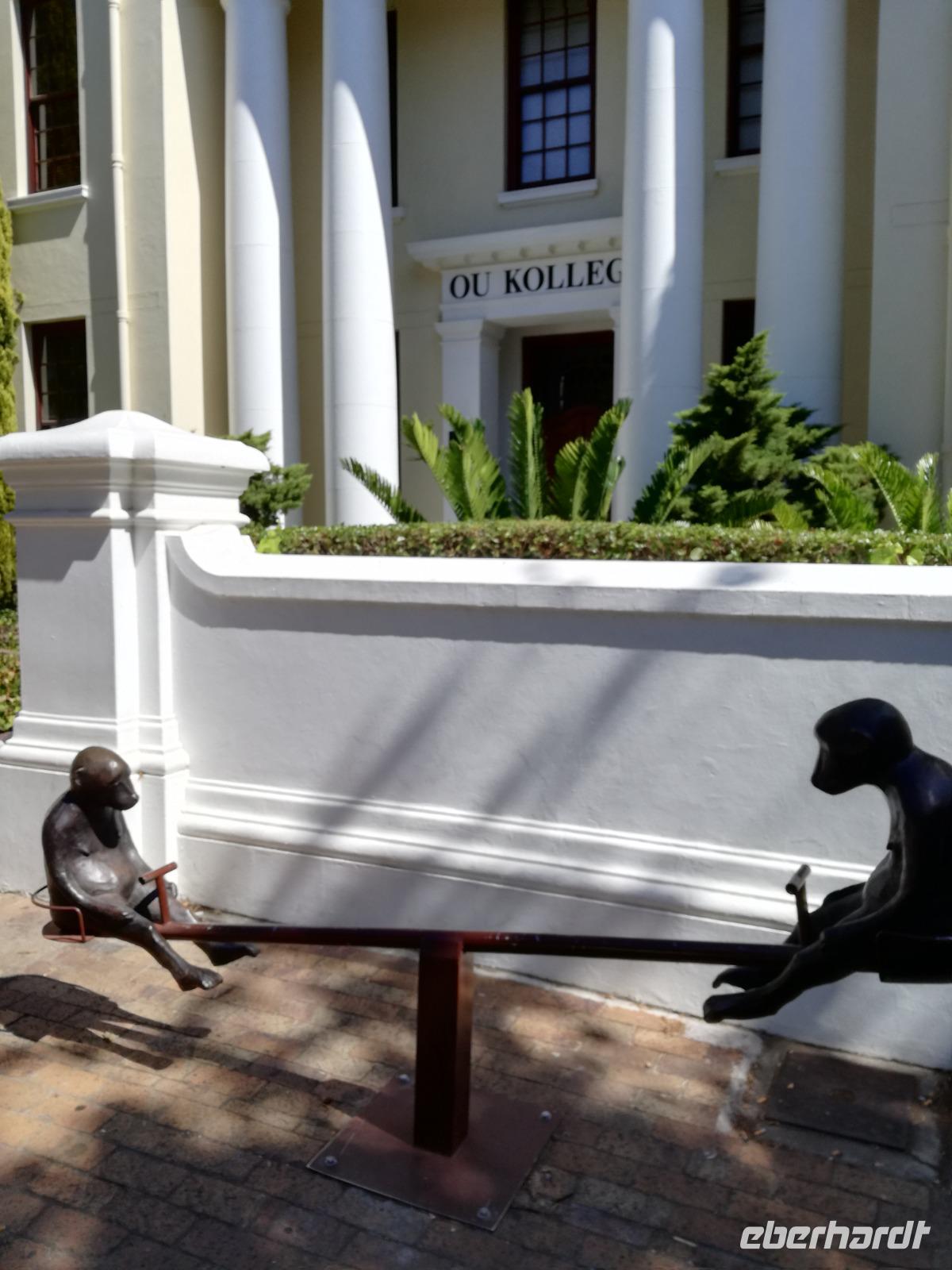 Am Morgen genossen wir erstmal das leckere Frühstück auf der Terrasse unseres Hotels mit Blick auf die wundervolle Landschaft und den Weinfeldern. Unser erster Tagespunkt war das bezaubernde Örtchen Franschhoeck. Übersetzt bedeutet der Name „Französisches Eck". Der Ort wurde im Jahr 1688 von den Hugenotten gegründet. Die Hugenotten wurden in Frankreich wegen ihrer calvinistisch-protestantischen verfolgt und nahmen die Einladung der Holländer nach Südafrika zukommen gerne an. Hier am Kap wurde die fleißigen und kenntnisreichen Siedler sesshaft und förderten durch ihr Wissen den Weinanbau der Region. Das Örtchen Franschhoeck bietet neben den Denkmal für die Hugenotten, unzählige Cafés, kleine Geschäfte und Restaurant. Nach einem ausgiebigen Bummel durch das romantische Örtchen, fuhren wir zum Weingut Blauklippen. Sonntags befindet sich hier ein Bauernmarkt mit vielen Zelten und Spielwiesen für die Kinder. Zunächst schauten wir uns um, bevor unsere Weinprobe und Kellertour begann. Eine Angestellte des Gutes führte an herum und erklärte uns die Geschichte des Gutes, des Herrenhauses und des Weines. Im Keller beschrieb sie uns die einzelnen Vorgänge des Weines und die einzelnen Fässer des Gutes. Anschließend durften wir die einzelnen Weine verkosten und ein leckeres Mittagessen verspeisen. Nach dem schönen Aufenthalt auf dem Weingut machten wir uns auf dem Weg nach Stellenbosch. Stellenbosch wurde 1679 gegründet und gilt als zweitälteste Stadt des Landes. Vor allem wurde das Land aufgrund des fruchtbaren Landes entlang des Eerste Rivers gegründet. Viele Häuser sind noch heute im Kolonialstil gebaut und erhalten. Hier ließ uns leider das Heimatmuseum im Stich und hatte trotz Absprache geschlossen. Wir spazierten durch die Holländisch geprägte Stadt. Hier gibt es unter anderem eine Universität mit vielen ausländischen Studenten und viele kleinere Weingüter und Restaurants. Den Nachmittag stand im Zeichen von Kraft tanken am Hotelpool und Schlaf vom Nachtflug nachholen. Am Abend organisierten wir uns einen Transfer zurück nach Stellenbosch. Hier aßen wir im ausgezeichneten Restaurant Wijnhuis zu Abend und probierte weitere Weine oder das heimische Bier. Gesättigt, zufrieden und müde fuhren wir zurück in unser Hotel.