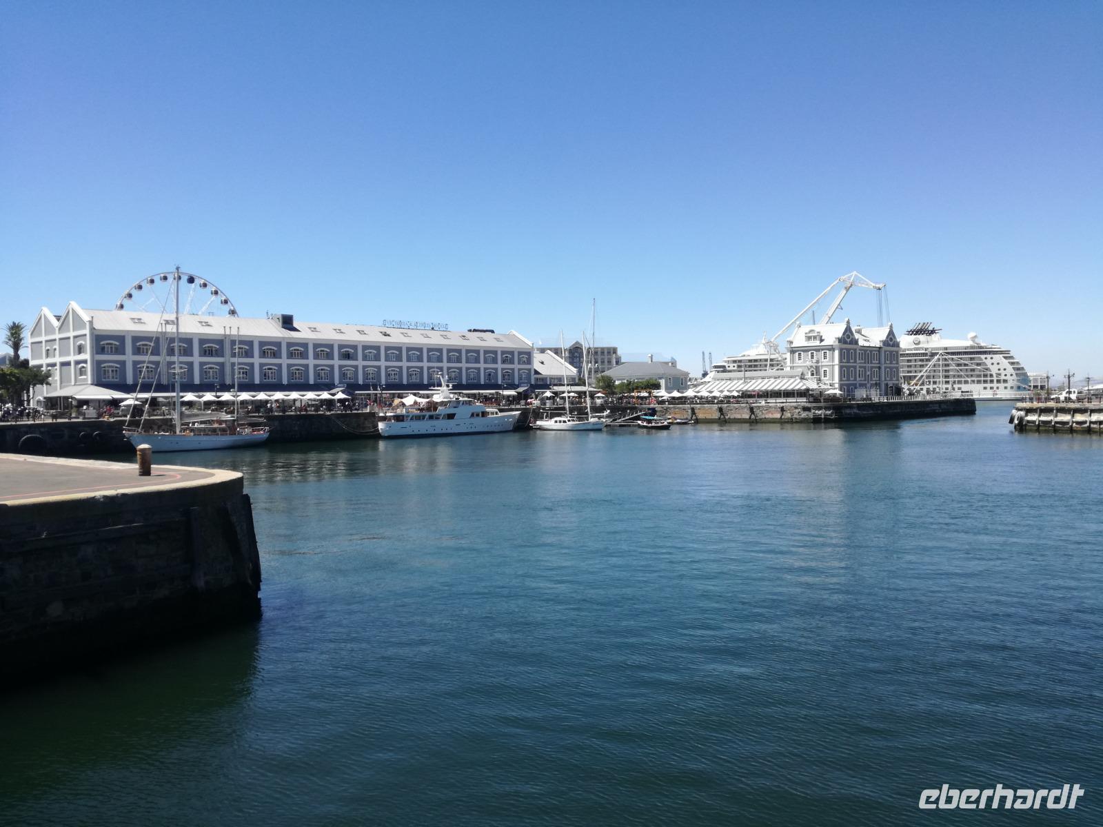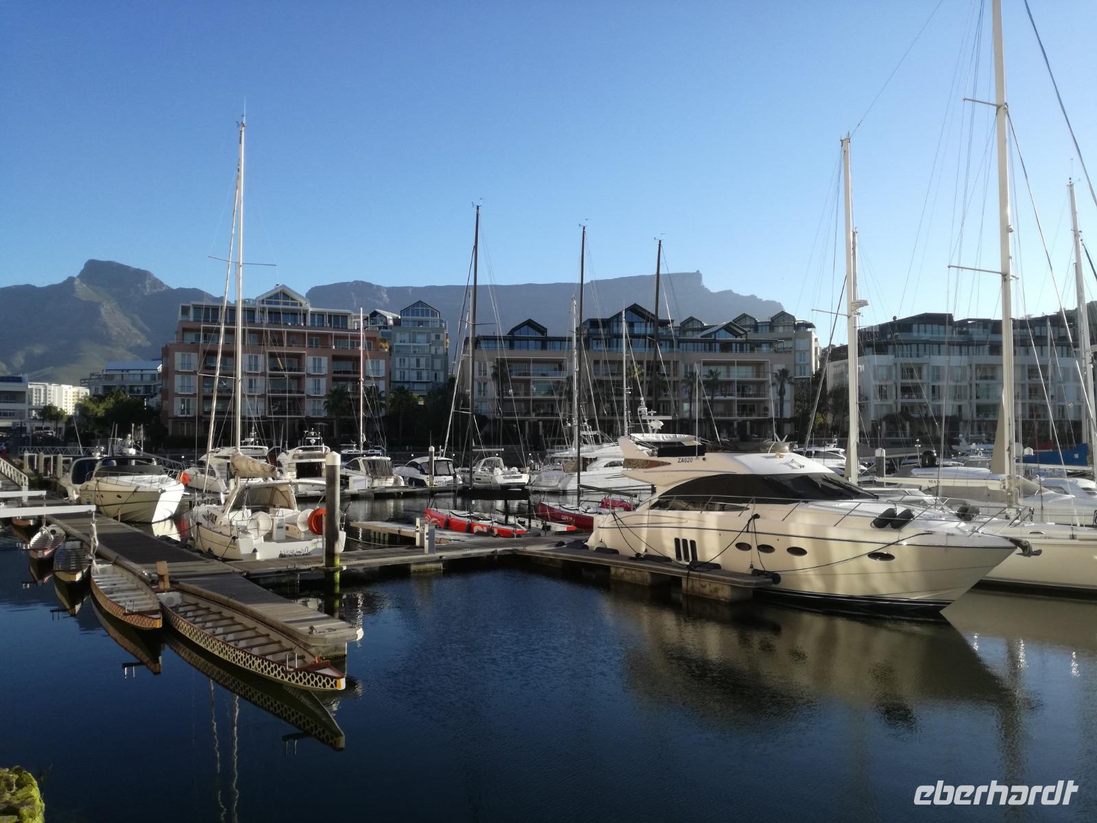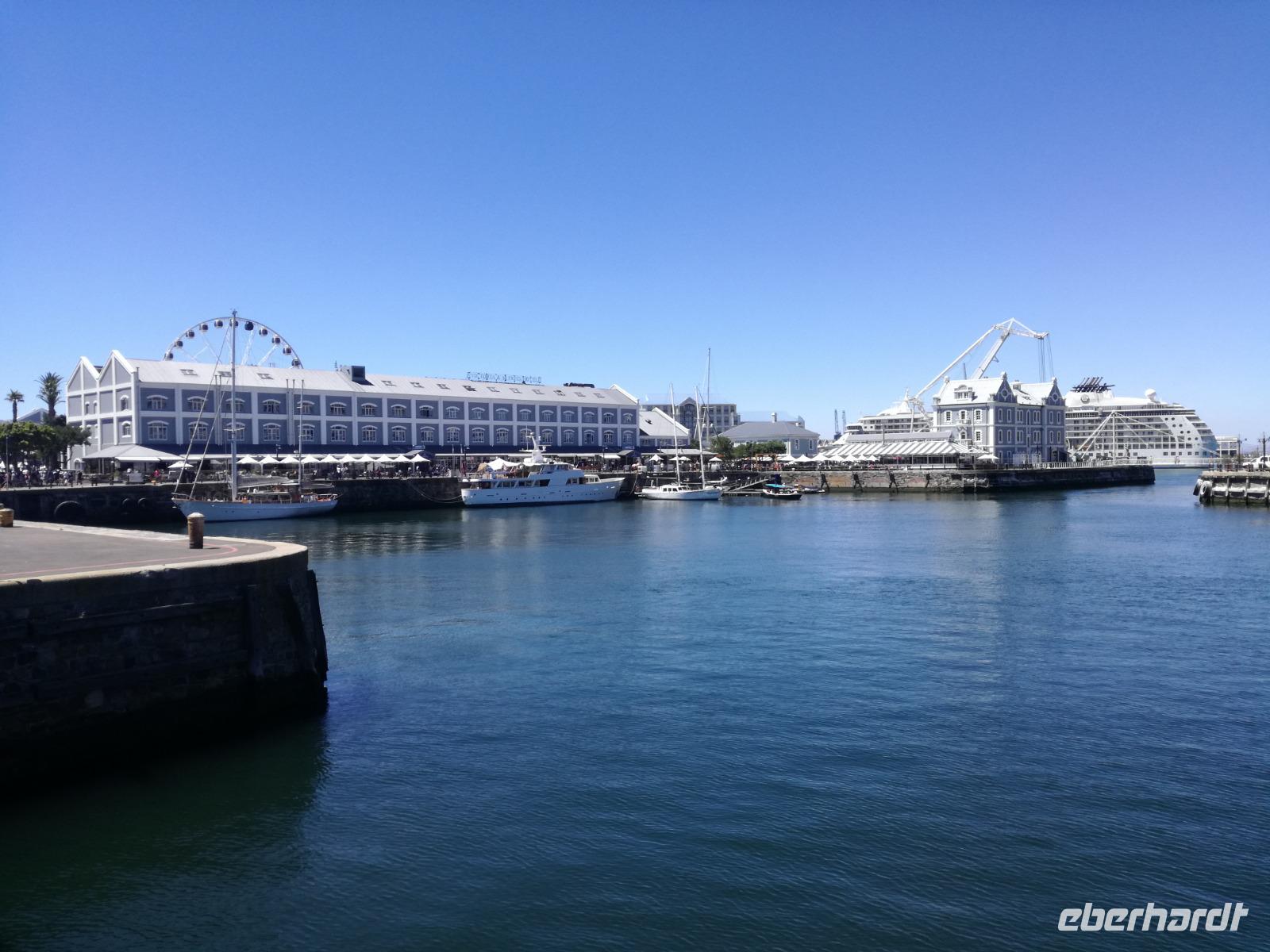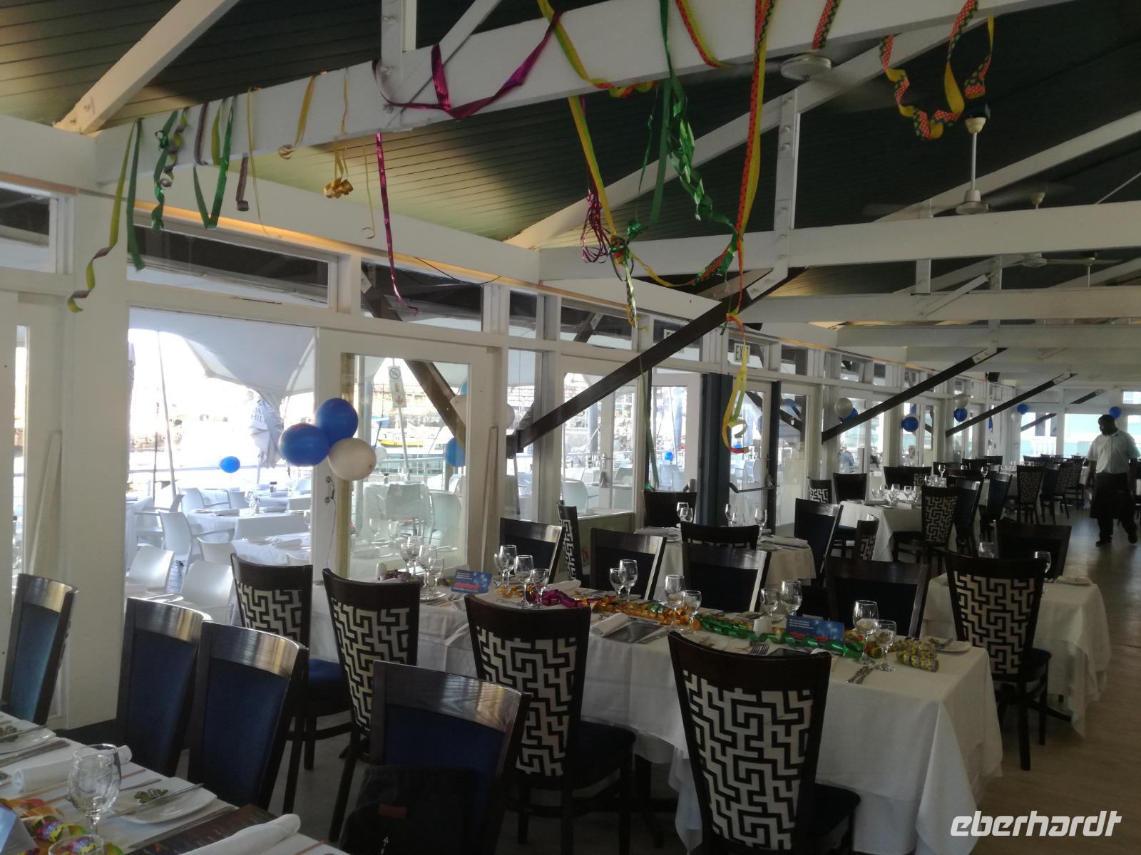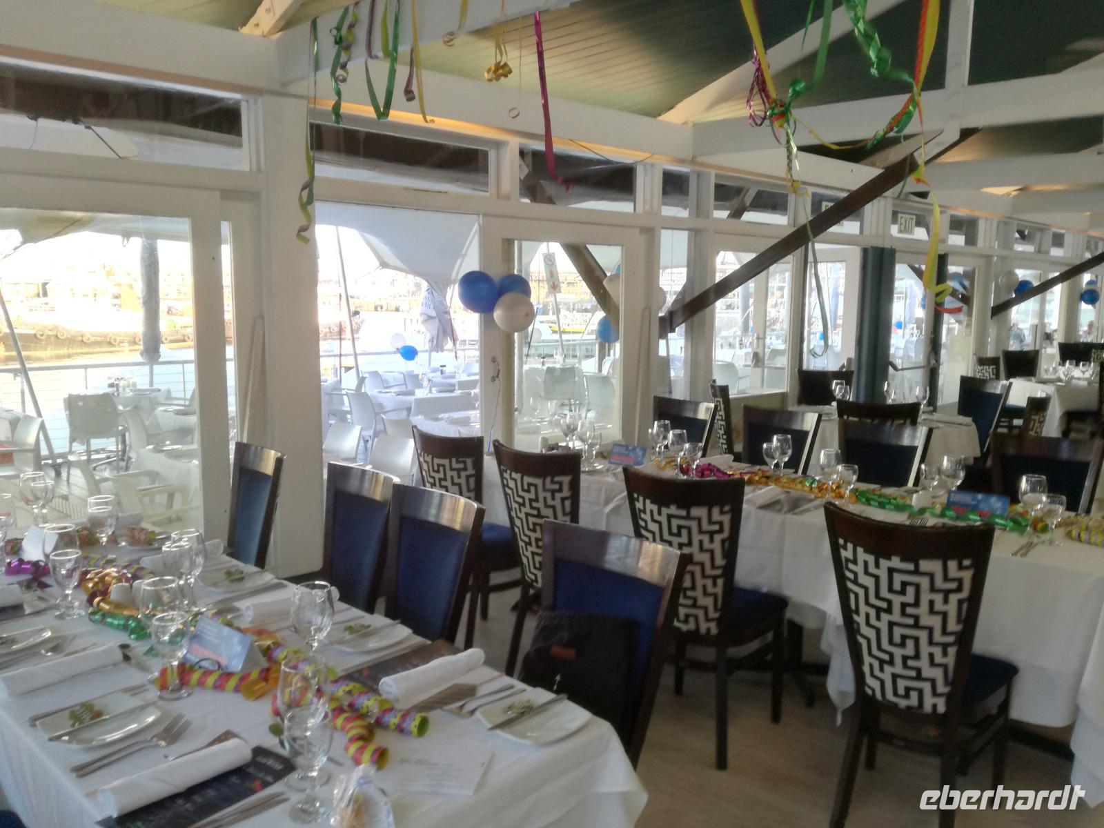 Der letzte Tag des Jahres wurde wieder mit einem ausgiebigen Frühstück gestartet. Zügig machten wir uns auf dem Weg in Richtung Kapstadt. Heute hatten wir uns fest vorgenommen, den Tafelberg zu erklimmen. Unterhalb des Berges erwartete uns wieder eine größere Schlange. Aber wir waren ja vorbereitet. Während ich mich in der Schlange anstellte, besuchte die restliche Gruppe mitsamt unserem örtlichen Guide Herbie den Signal Hill. Nach dem Tafelberg ist der Signal Hill der bekannteste Aussichtspunkt der Stadt. Von hier aus hatten wir einen tollen 360 Grad Rundblick über die Stadt, Camps Bay und auf dem Tafelberg. Hier gab es genügend Zeit für unzählige Bilder und wir genossen das Wetter und den Blick. Zurück am Tafelberg angekommen, hatte ich mich in der Zeit bis fast nach vorne gearbeitet. Inzwischen war hier ein Radiosender stationiert und sorgte für gute Musik und eine feierliche Stimmung. Das erleichterte uns die letzten Meter bis zur Seilbahn. In der sich drehenden Seilbahn konnte jeder die Aussicht auf den Berg und auf die Stadt genießen. Die Fahrt mit der Seilbahn dauerte ca. 15 Minuten und wir erreichten die Station des Tafelberges auf 1.087 Meter Höhe. Neben dem guten Wetter empfang uns der Tafelberg auch mit einem fantastischen Blick auf Kapstadt, dem neuen Stadion das zur WM errichtet wurde, den Nachbarberg Lions Head, Robben Island (die Insel vor der Stadt, wo Nelson Mandela inhaftiert wurde), die Waterfront und Camps Bay, der Umgebung der Südafrikanischen Hauptstadt. Nach unserem ausführlichen und heißen Aufenthalt auf den Tafelberg, stellten wir uns wieder in der Schlange an und fuhren wir wieder mit der Seilbahn hinunter. Da es nun Nachmittag war fuhren wir in unser Hotel, direkt an der Waterfront von Kapstadt. Nach dem Check-In verabredeten wir uns für einen Spaziergang zur Waterfront. Hier angekommen aßen wir zunächst in einer ausgebauten Lagerhalle im Foodcorner heimische Snacks und stimmten uns auf die Neujahrsfeier ein. Im Anschluss gab es genügend Zeit, um sich für den Abend zu schonen, recht zu machen oder die Waterfront zu genießen. Am Abend machten wir uns auf zu unserem Hotel Four Quay an der Waterfront. Das Restaurant hatte sich heraus geputzt und auch unsere Tische waren für die Feier geschmückt. Wir genossen den Abend in einer herrlichen Atmosphäre. Bei ausreichend Wein, Bier und Amarula ließen wir den letzten Abend des Jahres ausklingen. Um Mittagnacht zog es uns auf den Balkon des Hotels und stießen mit Sekt auf das neue Jahr an. Das Feuerwerk an der Waterfront war sehr spektakulär und die Stimmung hervorragend. Auch das Personal feierte mit uns und freute sich auf neue Jahr. Dann wurden die beiden Tische zusammen geschoben und wir feierten noch ein wenig ins Jahr 2019. Auf dem Weg zum Hotel spazierten wir nochmal durch das Viertel und bestaunten die Einheimischen Südafrikaner, wie sie locker leicht singend und tanzend ins neue Jahr feierten. Ein schöner Tag mit einem super Jahresausklang ging nun zu Ende.