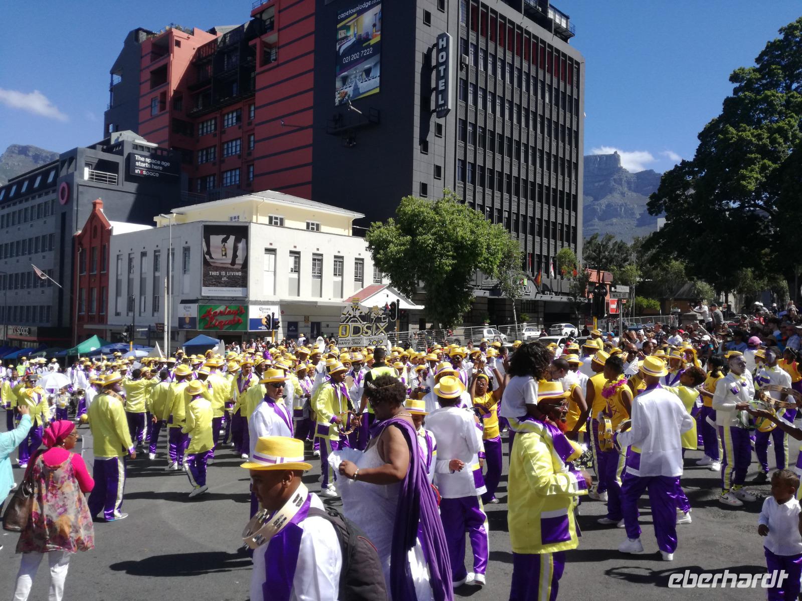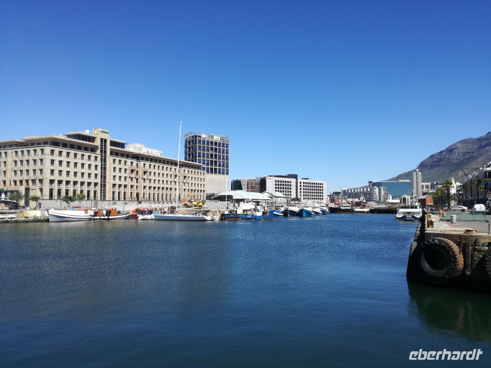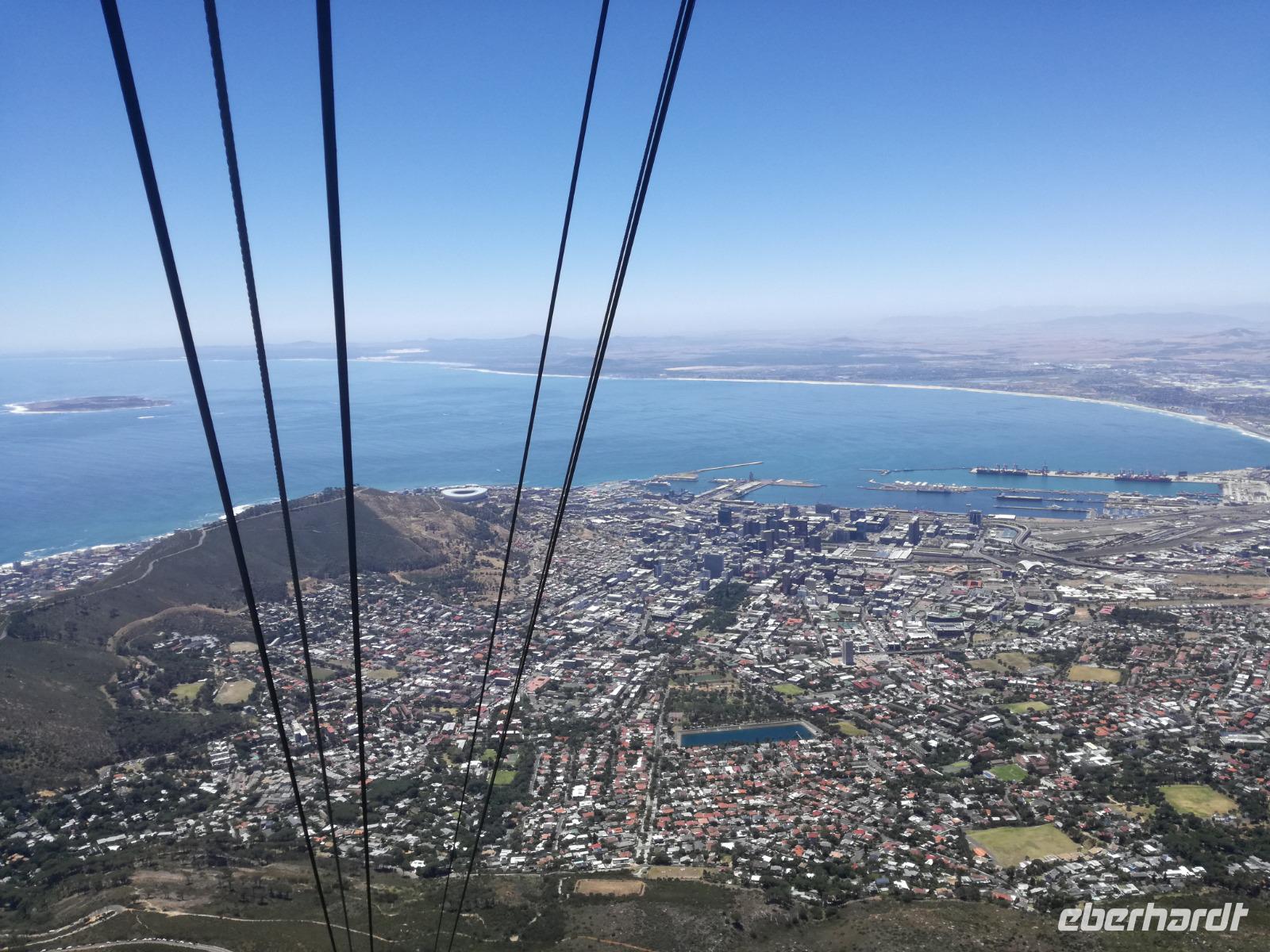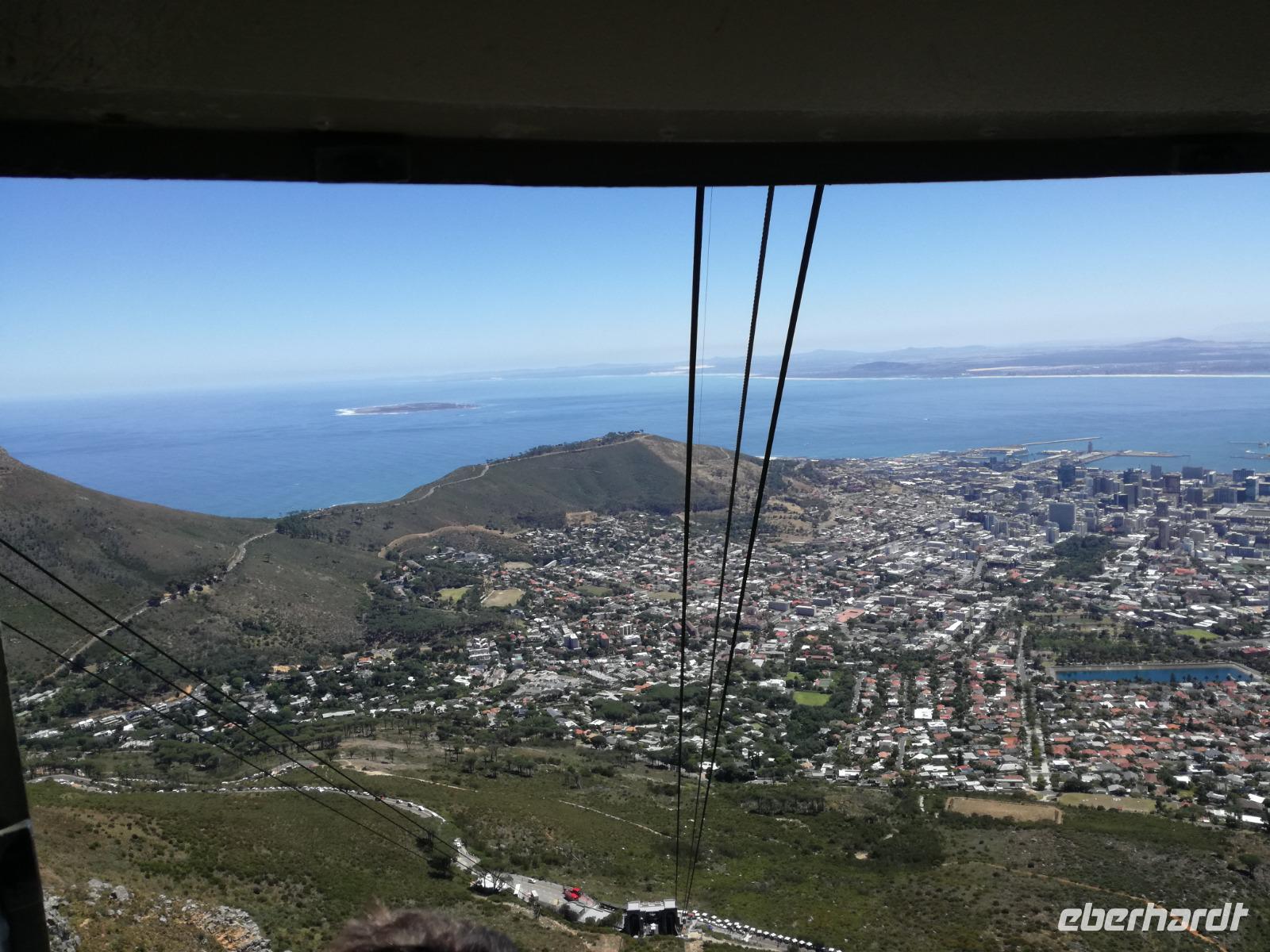 Der letzte Tag des Jahres wurde wieder mit einem ausgiebigen Frühstück gestartet. Zügig machten wir uns auf dem Weg in Richtung Kapstadt. Heute hatten wir uns fest vorgenommen, den Tafelberg zu erklimmen. Unterhalb des Berges erwartete uns wieder eine größere Schlange. Aber wir waren ja vorbereitet. Während ich mich in der Schlange anstellte, besuchte die restliche Gruppe mitsamt unserem örtlichen Guide Herbie den Signal Hill. Nach dem Tafelberg ist der Signal Hill der bekannteste Aussichtspunkt der Stadt. Von hier aus hatten wir einen tollen 360 Grad Rundblick über die Stadt, Camps Bay und auf dem Tafelberg. Hier gab es genügend Zeit für unzählige Bilder und wir genossen das Wetter und den Blick. Zurück am Tafelberg angekommen, hatte ich mich in der Zeit bis fast nach vorne gearbeitet. Inzwischen war hier ein Radiosender stationiert und sorgte für gute Musik und eine feierliche Stimmung. Das erleichterte uns die letzten Meter bis zur Seilbahn. In der sich drehenden Seilbahn konnte jeder die Aussicht auf den Berg und auf die Stadt genießen. Die Fahrt mit der Seilbahn dauerte ca. 15 Minuten und wir erreichten die Station des Tafelberges auf 1.087 Meter Höhe. Neben dem guten Wetter empfang uns der Tafelberg auch mit einem fantastischen Blick auf Kapstadt, dem neuen Stadion das zur WM errichtet wurde, den Nachbarberg Lions Head, Robben Island (die Insel vor der Stadt, wo Nelson Mandela inhaftiert wurde), die Waterfront und Camps Bay, der Umgebung der Südafrikanischen Hauptstadt. Nach unserem ausführlichen und heißen Aufenthalt auf den Tafelberg, stellten wir uns wieder in der Schlange an und fuhren wir wieder mit der Seilbahn hinunter. Da es nun Nachmittag war fuhren wir in unser Hotel, direkt an der Waterfront von Kapstadt. Nach dem Check-In verabredeten wir uns für einen Spaziergang zur Waterfront. Hier angekommen aßen wir zunächst in einer ausgebauten Lagerhalle im Foodcorner heimische Snacks und stimmten uns auf die Neujahrsfeier ein. Im Anschluss gab es genügend Zeit, um sich für den Abend zu schonen, recht zu machen oder die Waterfront zu genießen. Am Abend machten wir uns auf zu unserem Hotel Four Quay an der Waterfront. Das Restaurant hatte sich heraus geputzt und auch unsere Tische waren für die Feier geschmückt. Wir genossen den Abend in einer herrlichen Atmosphäre. Bei ausreichend Wein, Bier und Amarula ließen wir den letzten Abend des Jahres ausklingen. Um Mittagnacht zog es uns auf den Balkon des Hotels und stießen mit Sekt auf das neue Jahr an. Das Feuerwerk an der Waterfront war sehr spektakulär und die Stimmung hervorragend. Auch das Personal feierte mit uns und freute sich auf neue Jahr. Dann wurden die beiden Tische zusammen geschoben und wir feierten noch ein wenig ins Jahr 2019. Auf dem Weg zum Hotel spazierten wir nochmal durch das Viertel und bestaunten die Einheimischen Südafrikaner, wie sie locker leicht singend und tanzend ins neue Jahr feierten. Ein schöner Tag mit einem super Jahresausklang ging nun zu Ende.
