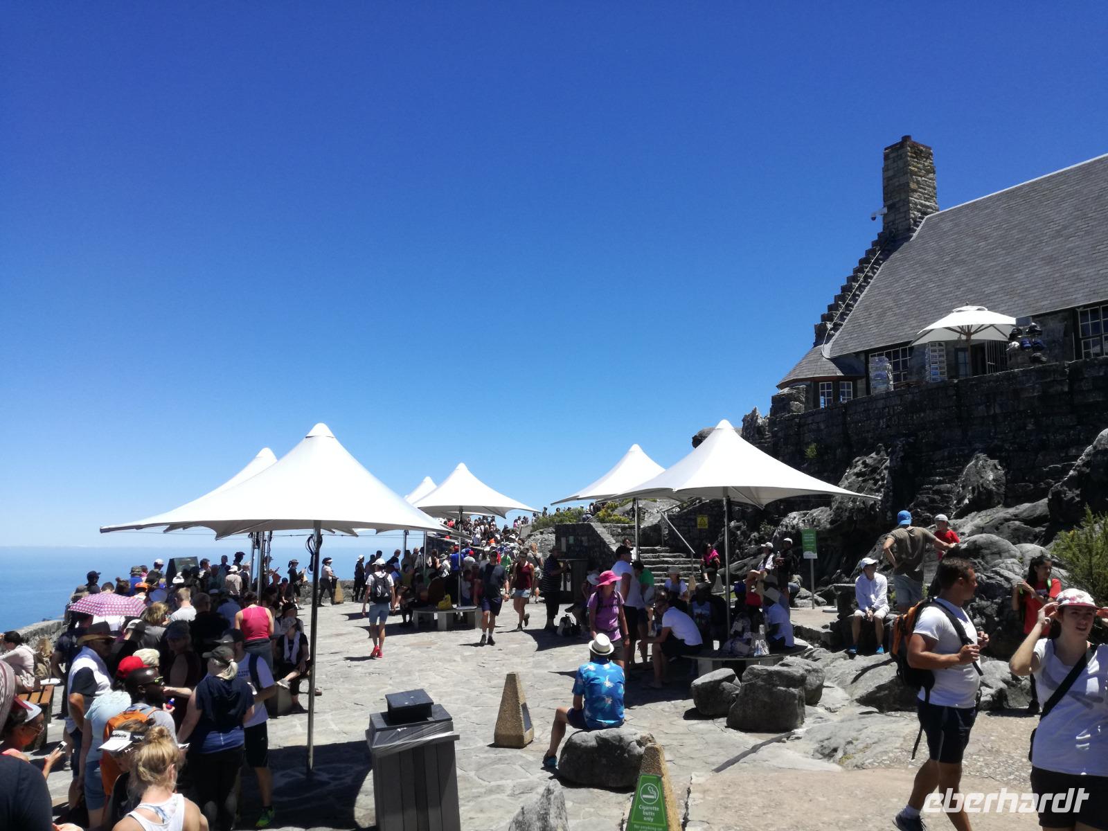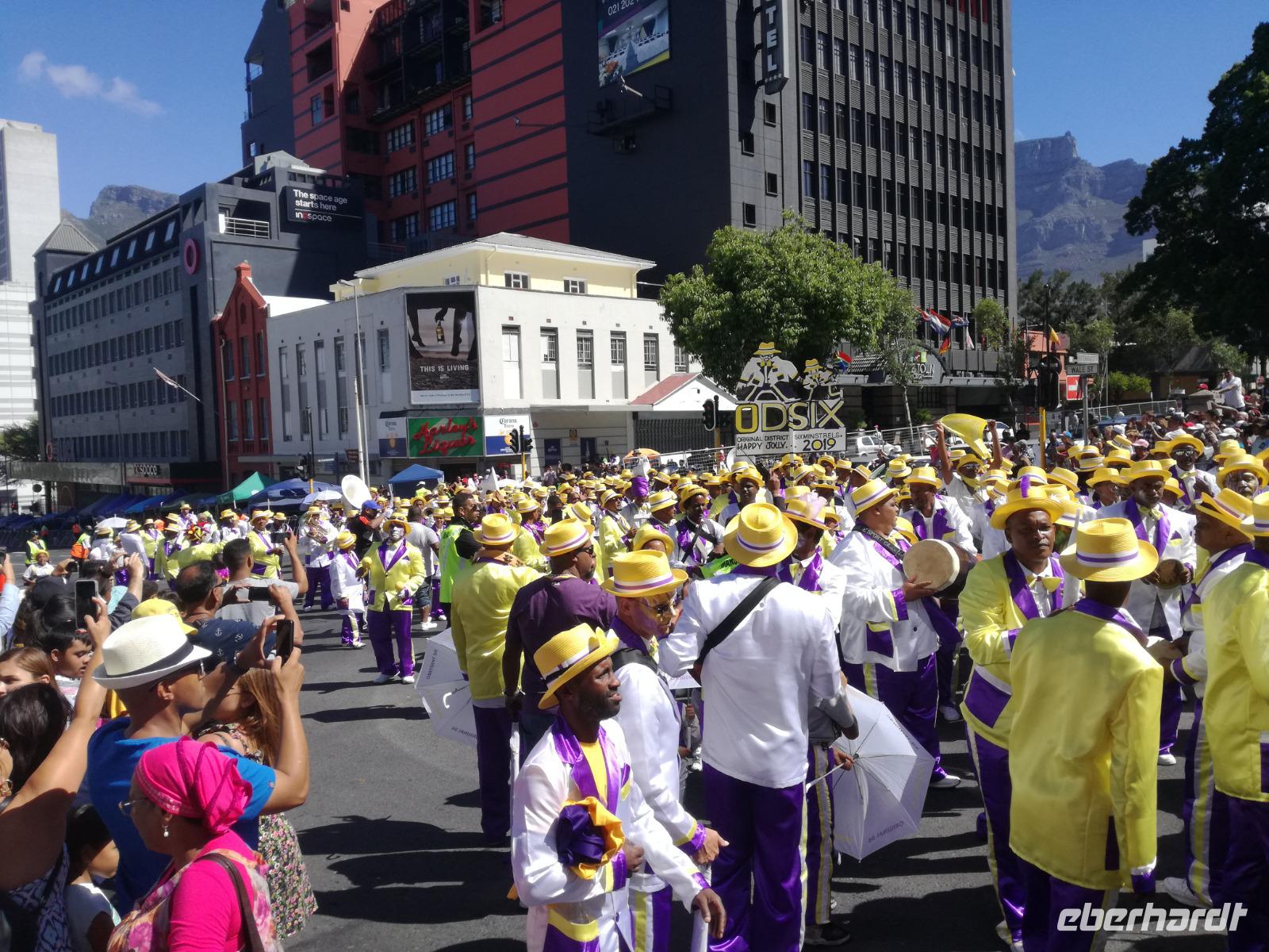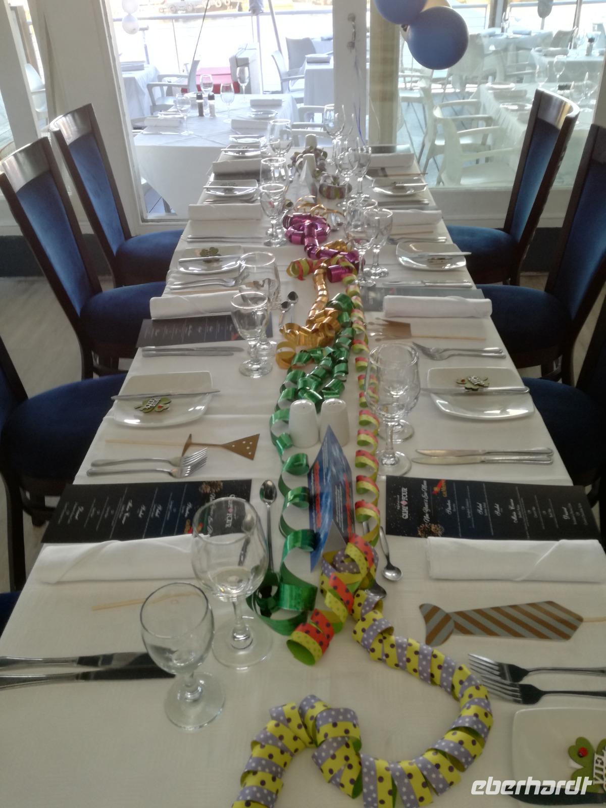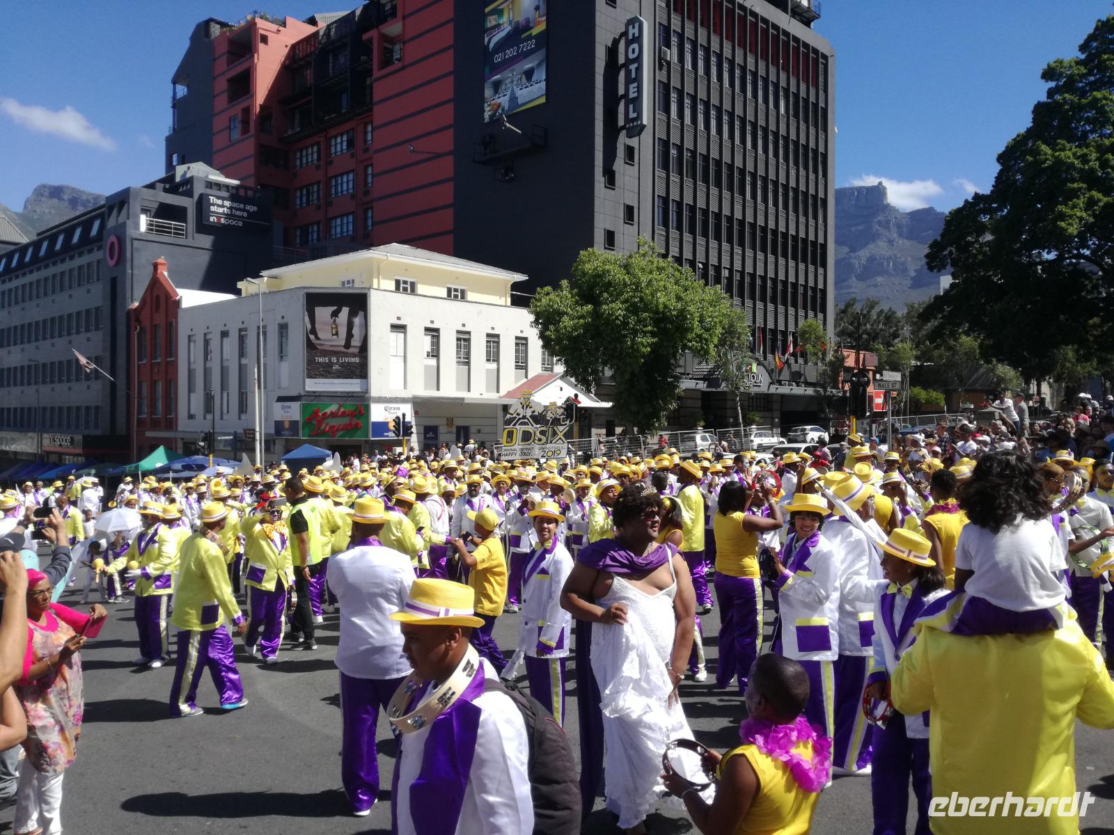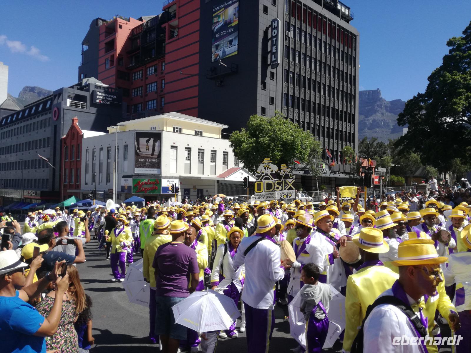 Der letzte Tag des Jahres wurde wieder mit einem ausgiebigen Frühstück gestartet. Zügig machten wir uns auf dem Weg in Richtung Kapstadt. Heute hatten wir uns fest vorgenommen, den Tafelberg zu erklimmen. Unterhalb des Berges erwartete uns wieder eine größere Schlange. Aber wir waren ja vorbereitet. Während ich mich in der Schlange anstellte, besuchte die restliche Gruppe mitsamt unserem örtlichen Guide Herbie den Signal Hill. Nach dem Tafelberg ist der Signal Hill der bekannteste Aussichtspunkt der Stadt. Von hier aus hatten wir einen tollen 360 Grad Rundblick über die Stadt, Camps Bay und auf dem Tafelberg. Hier gab es genügend Zeit für unzählige Bilder und wir genossen das Wetter und den Blick. Zurück am Tafelberg angekommen, hatte ich mich in der Zeit bis fast nach vorne gearbeitet. Inzwischen war hier ein Radiosender stationiert und sorgte für gute Musik und eine feierliche Stimmung. Das erleichterte uns die letzten Meter bis zur Seilbahn. In der sich drehenden Seilbahn konnte jeder die Aussicht auf den Berg und auf die Stadt genießen. Die Fahrt mit der Seilbahn dauerte ca. 15 Minuten und wir erreichten die Station des Tafelberges auf 1.087 Meter Höhe. Neben dem guten Wetter empfang uns der Tafelberg auch mit einem fantastischen Blick auf Kapstadt, dem neuen Stadion das zur WM errichtet wurde, den Nachbarberg Lions Head, Robben Island (die Insel vor der Stadt, wo Nelson Mandela inhaftiert wurde), die Waterfront und Camps Bay, der Umgebung der Südafrikanischen Hauptstadt. Nach unserem ausführlichen und heißen Aufenthalt auf den Tafelberg, stellten wir uns wieder in der Schlange an und fuhren wir wieder mit der Seilbahn hinunter. Da es nun Nachmittag war fuhren wir in unser Hotel, direkt an der Waterfront von Kapstadt. Nach dem Check-In verabredeten wir uns für einen Spaziergang zur Waterfront. Hier angekommen aßen wir zunächst in einer ausgebauten Lagerhalle im Foodcorner heimische Snacks und stimmten uns auf die Neujahrsfeier ein. Im Anschluss gab es genügend Zeit, um sich für den Abend zu schonen, recht zu machen oder die Waterfront zu genießen. Am Abend machten wir uns auf zu unserem Hotel Four Quay an der Waterfront. Das Restaurant hatte sich heraus geputzt und auch unsere Tische waren für die Feier geschmückt. Wir genossen den Abend in einer herrlichen Atmosphäre. Bei ausreichend Wein, Bier und Amarula ließen wir den letzten Abend des Jahres ausklingen. Um Mittagnacht zog es uns auf den Balkon des Hotels und stießen mit Sekt auf das neue Jahr an. Das Feuerwerk an der Waterfront war sehr spektakulär und die Stimmung hervorragend. Auch das Personal feierte mit uns und freute sich auf neue Jahr. Dann wurden die beiden Tische zusammen geschoben und wir feierten noch ein wenig ins Jahr 2019. Auf dem Weg zum Hotel spazierten wir nochmal durch das Viertel und bestaunten die Einheimischen Südafrikaner, wie sie locker leicht singend und tanzend ins neue Jahr feierten. Ein schöner Tag mit einem super Jahresausklang ging nun zu Ende.