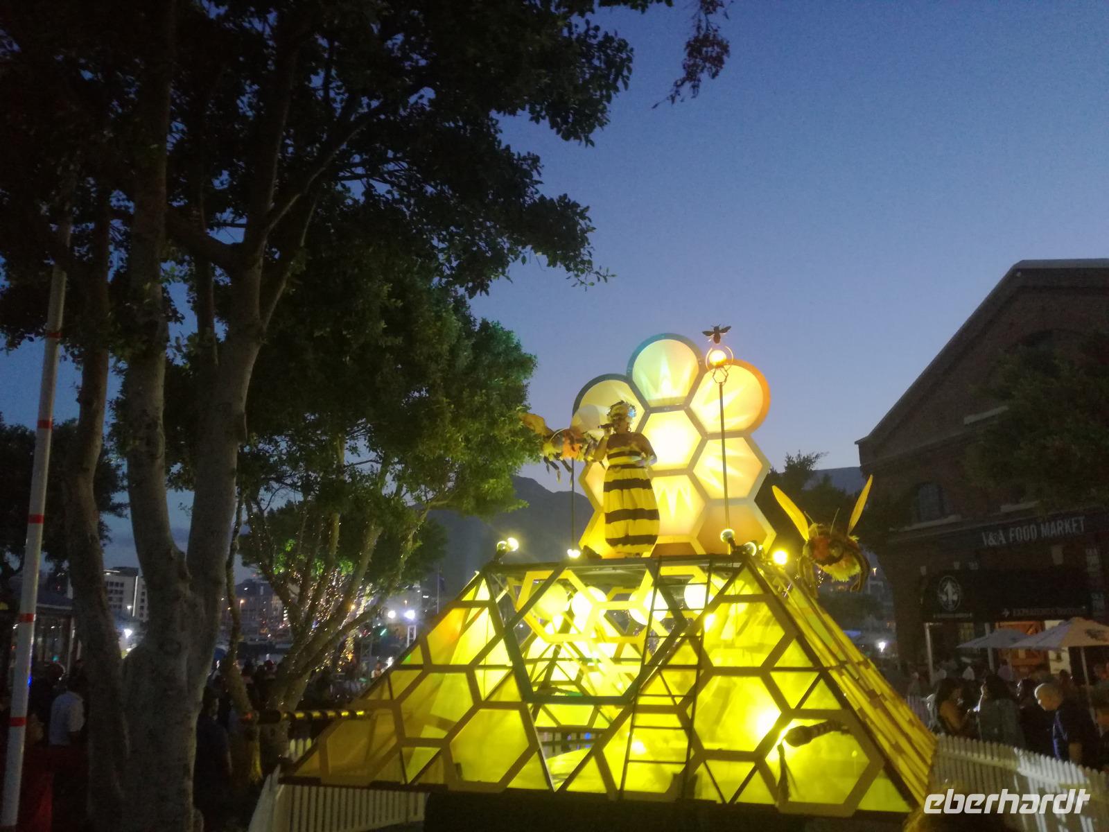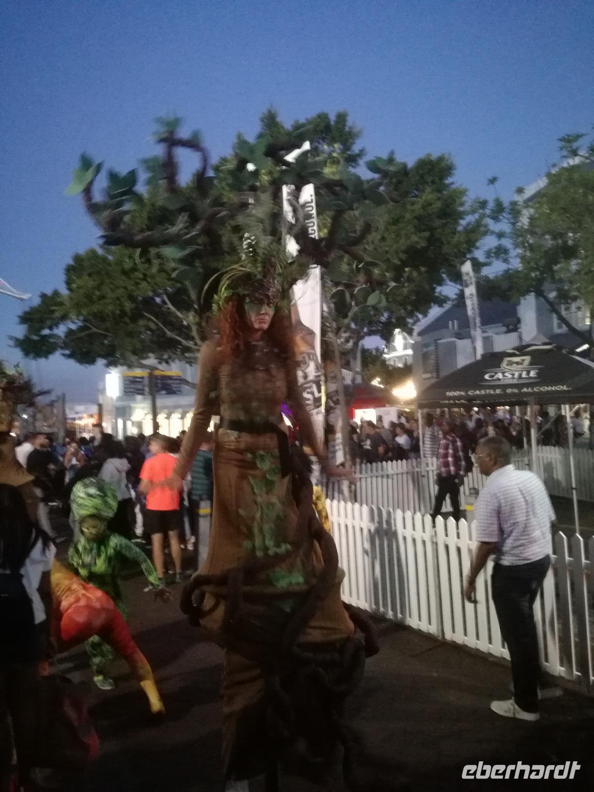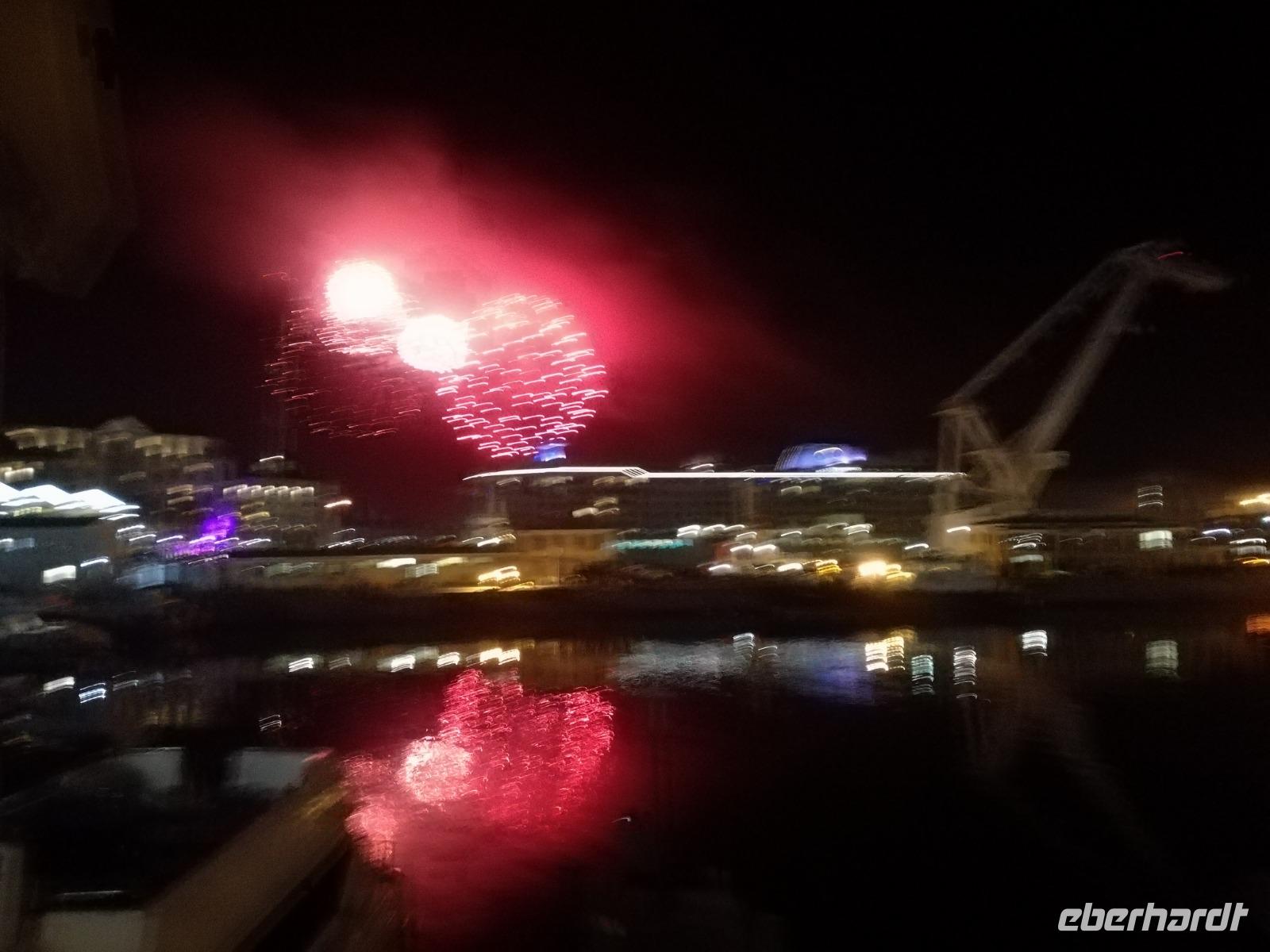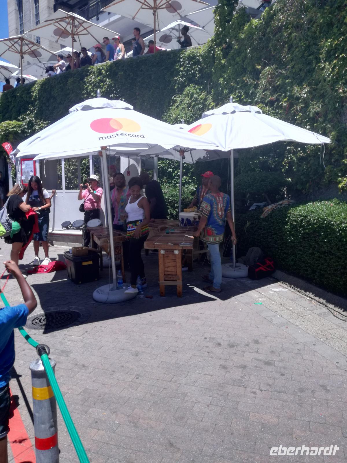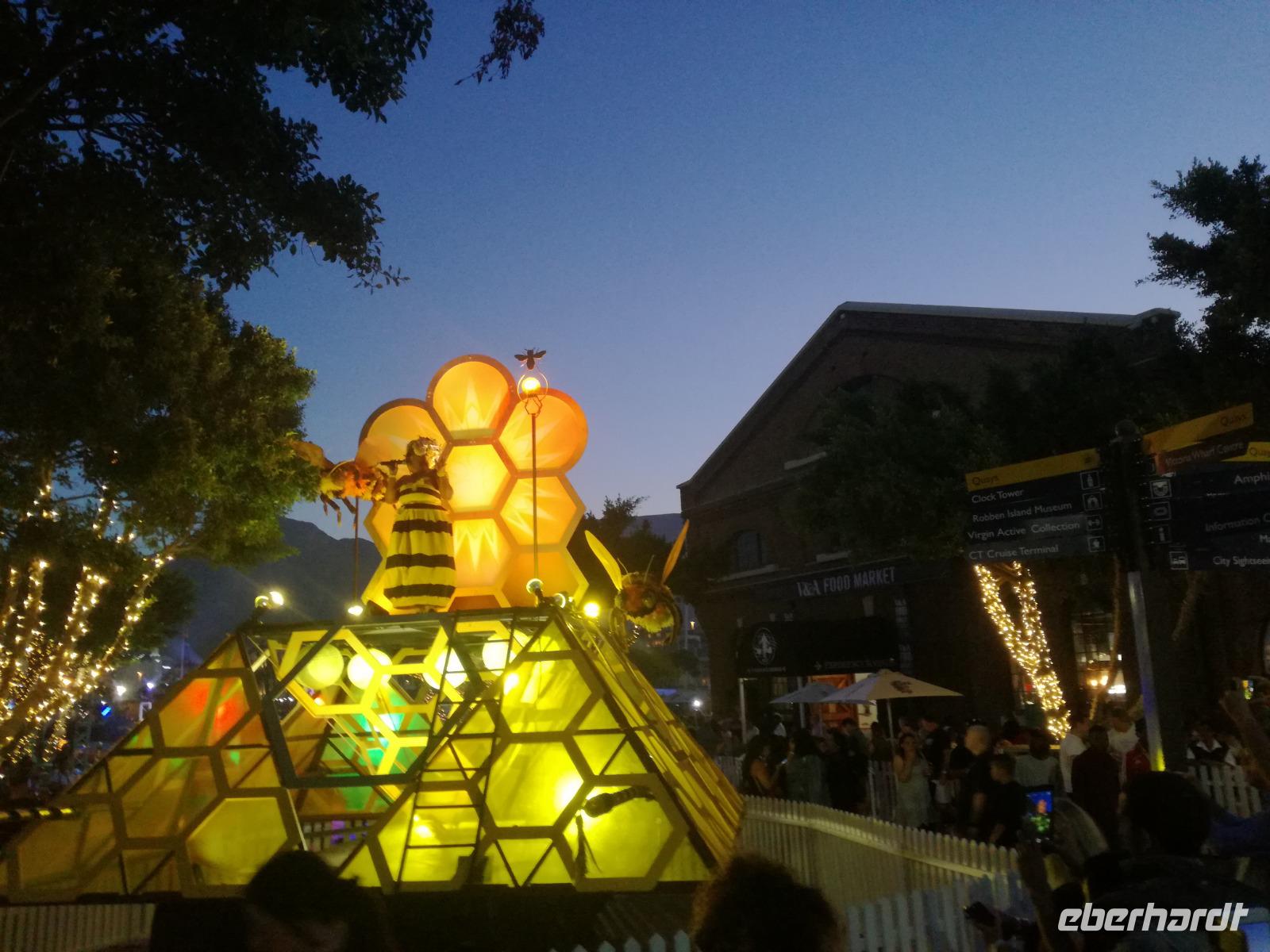 Der letzte Tag des Jahres wurde wieder mit einem ausgiebigen Frühstück gestartet. Zügig machten wir uns auf dem Weg in Richtung Kapstadt. Heute hatten wir uns fest vorgenommen, den Tafelberg zu erklimmen. Unterhalb des Berges erwartete uns wieder eine größere Schlange. Aber wir waren ja vorbereitet. Während ich mich in der Schlange anstellte, besuchte die restliche Gruppe mitsamt unserem örtlichen Guide Herbie den Signal Hill. Nach dem Tafelberg ist der Signal Hill der bekannteste Aussichtspunkt der Stadt. Von hier aus hatten wir einen tollen 360 Grad Rundblick über die Stadt, Camps Bay und auf dem Tafelberg. Hier gab es genügend Zeit für unzählige Bilder und wir genossen das Wetter und den Blick. Zurück am Tafelberg angekommen, hatte ich mich in der Zeit bis fast nach vorne gearbeitet. Inzwischen war hier ein Radiosender stationiert und sorgte für gute Musik und eine feierliche Stimmung. Das erleichterte uns die letzten Meter bis zur Seilbahn. In der sich drehenden Seilbahn konnte jeder die Aussicht auf den Berg und auf die Stadt genießen. Die Fahrt mit der Seilbahn dauerte ca. 15 Minuten und wir erreichten die Station des Tafelberges auf 1.087 Meter Höhe. Neben dem guten Wetter empfang uns der Tafelberg auch mit einem fantastischen Blick auf Kapstadt, dem neuen Stadion das zur WM errichtet wurde, den Nachbarberg Lions Head, Robben Island (die Insel vor der Stadt, wo Nelson Mandela inhaftiert wurde), die Waterfront und Camps Bay, der Umgebung der Südafrikanischen Hauptstadt. Nach unserem ausführlichen und heißen Aufenthalt auf den Tafelberg, stellten wir uns wieder in der Schlange an und fuhren wir wieder mit der Seilbahn hinunter. Da es nun Nachmittag war fuhren wir in unser Hotel, direkt an der Waterfront von Kapstadt. Nach dem Check-In verabredeten wir uns für einen Spaziergang zur Waterfront. Hier angekommen aßen wir zunächst in einer ausgebauten Lagerhalle im Foodcorner heimische Snacks und stimmten uns auf die Neujahrsfeier ein. Im Anschluss gab es genügend Zeit, um sich für den Abend zu schonen, recht zu machen oder die Waterfront zu genießen. Am Abend machten wir uns auf zu unserem Hotel Four Quay an der Waterfront. Das Restaurant hatte sich heraus geputzt und auch unsere Tische waren für die Feier geschmückt. Wir genossen den Abend in einer herrlichen Atmosphäre. Bei ausreichend Wein, Bier und Amarula ließen wir den letzten Abend des Jahres ausklingen. Um Mittagnacht zog es uns auf den Balkon des Hotels und stießen mit Sekt auf das neue Jahr an. Das Feuerwerk an der Waterfront war sehr spektakulär und die Stimmung hervorragend. Auch das Personal feierte mit uns und freute sich auf neue Jahr. Dann wurden die beiden Tische zusammen geschoben und wir feierten noch ein wenig ins Jahr 2019. Auf dem Weg zum Hotel spazierten wir nochmal durch das Viertel und bestaunten die Einheimischen Südafrikaner, wie sie locker leicht singend und tanzend ins neue Jahr feierten. Ein schöner Tag mit einem super Jahresausklang ging nun zu Ende.