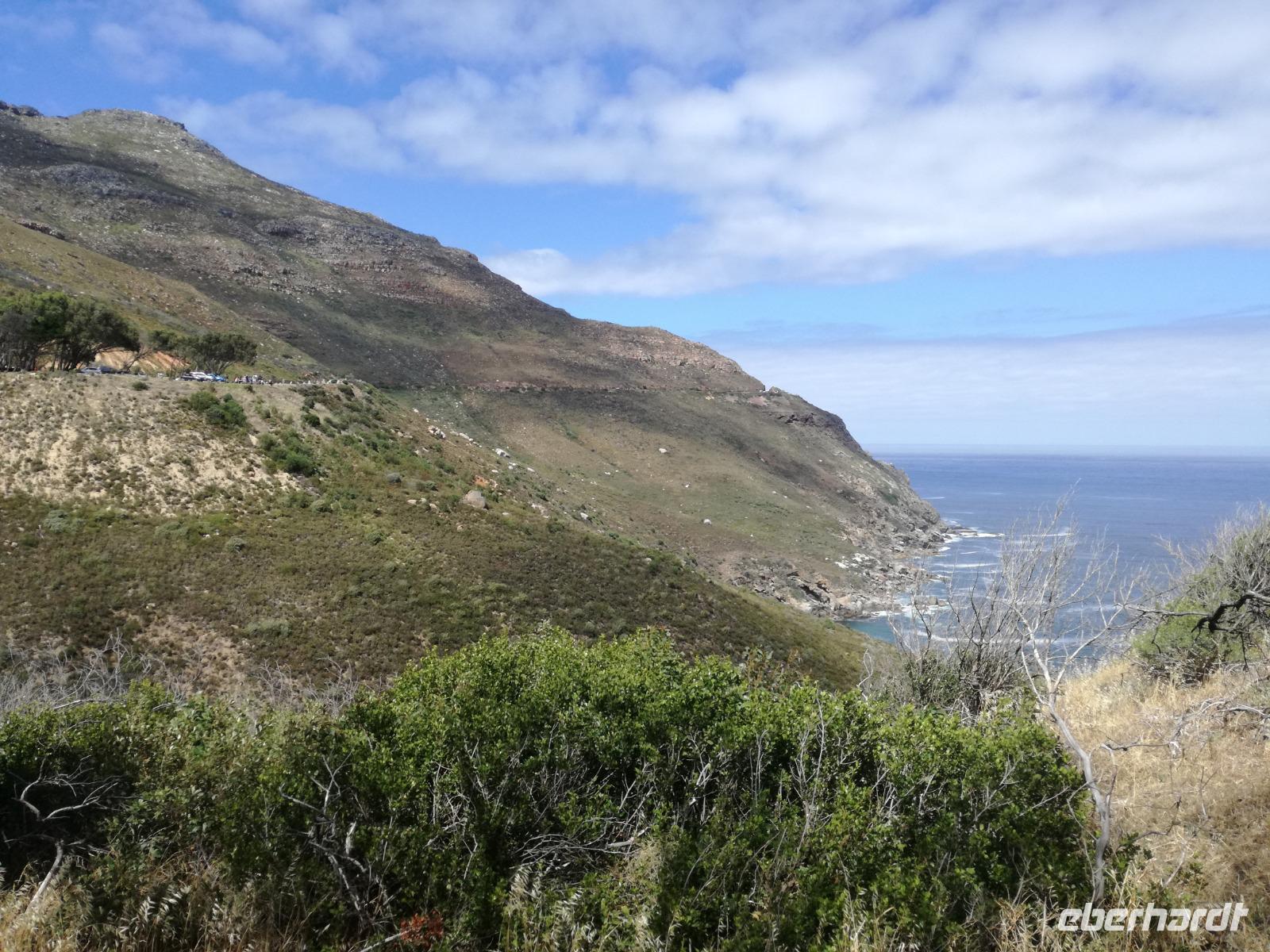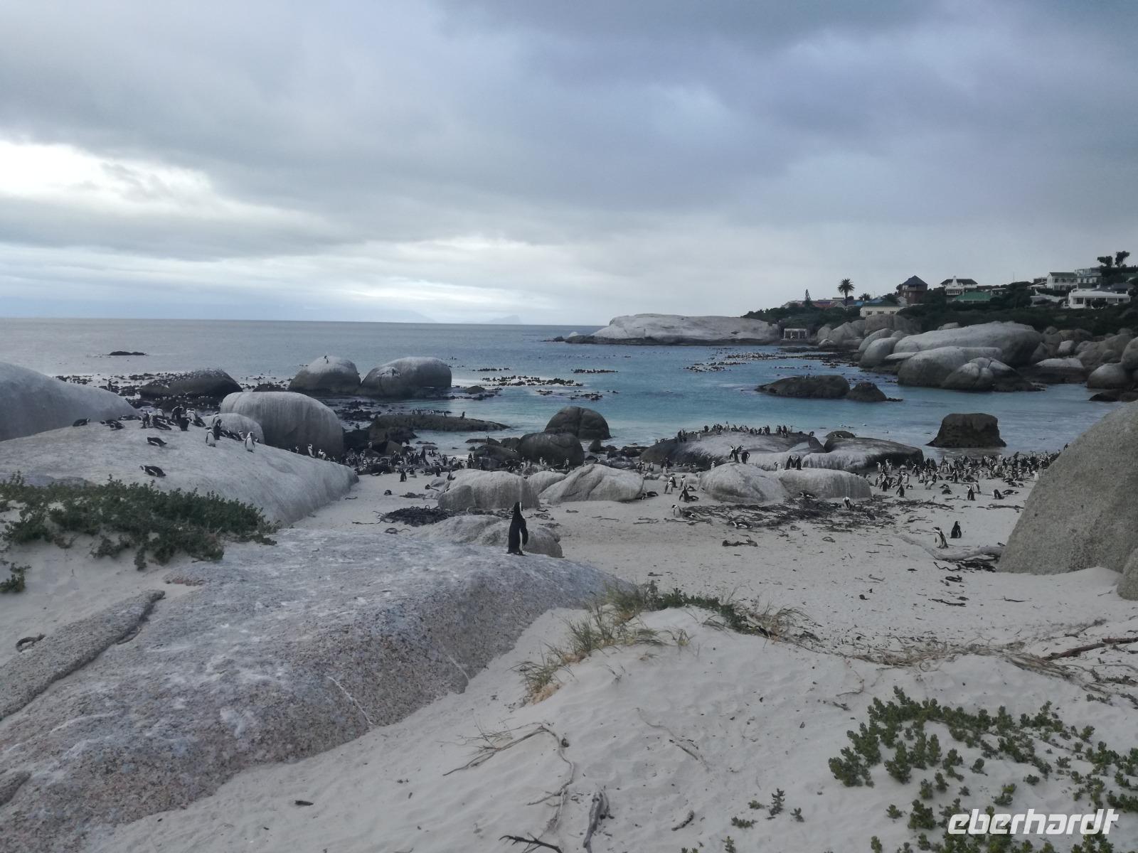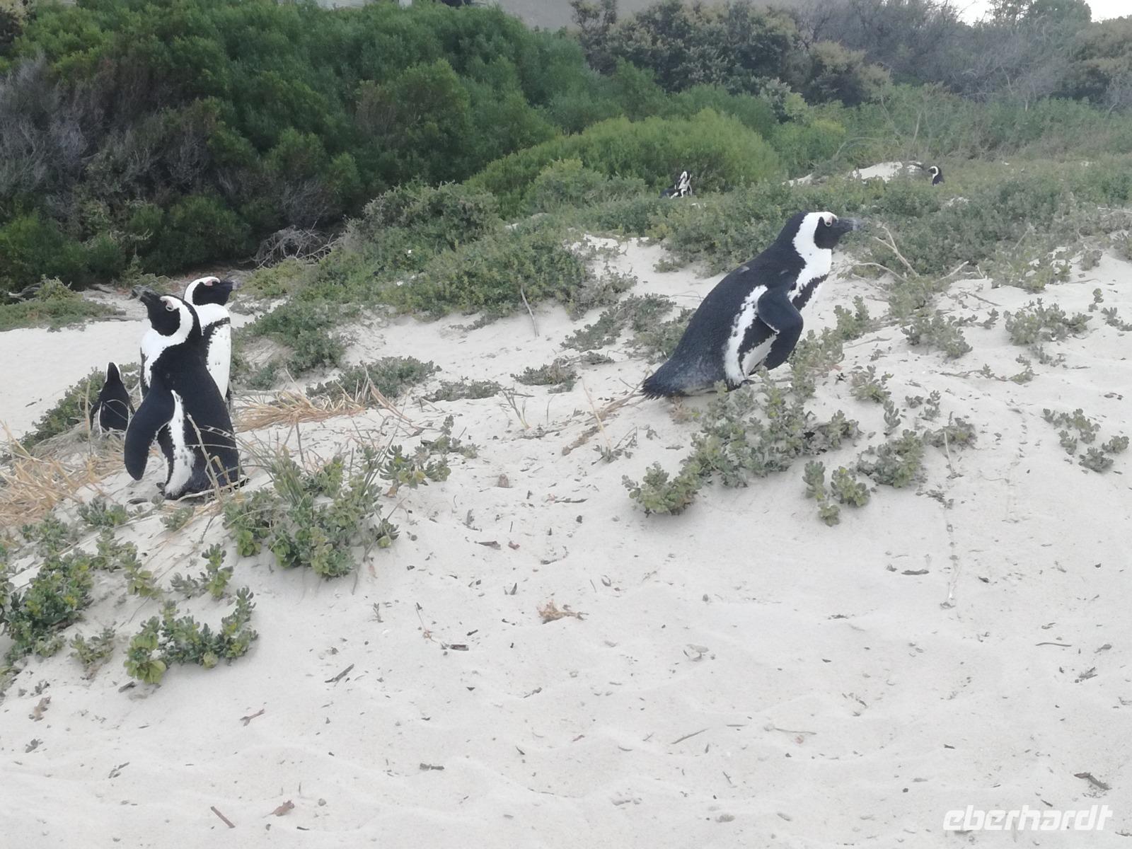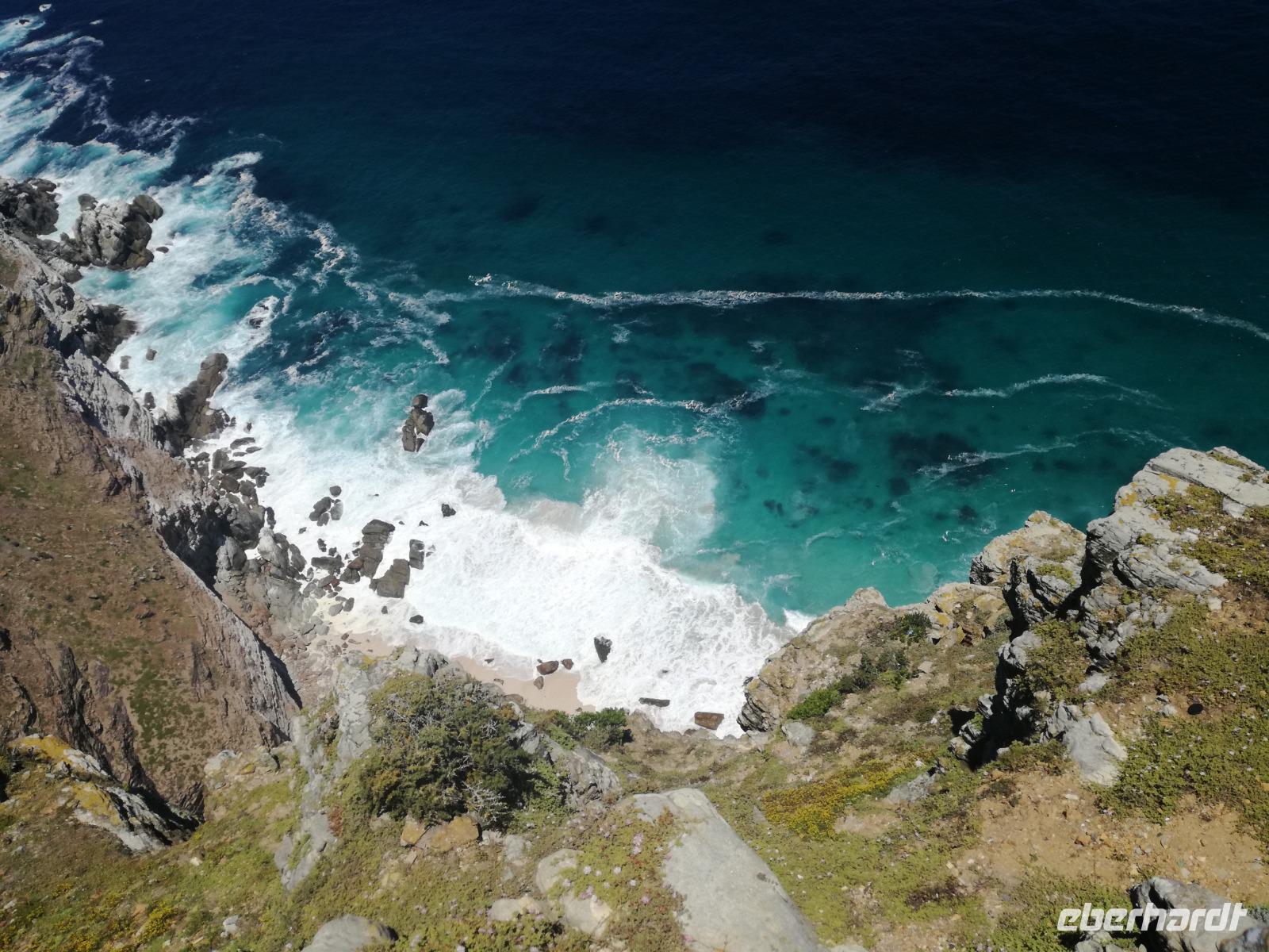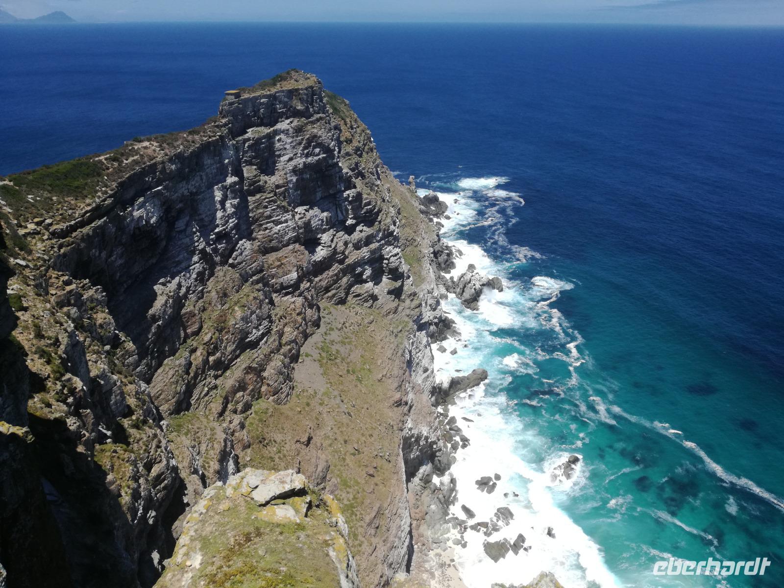 Nach der schönen Feier starteten wir um 9 Uhr in den ersten Tag des Jahres. Wieder gab es ein ausgezeichnetes Frühstück. Herbie und unser Fahrer Clieve holten uns im Hotel ab. Zunächst fuhren wir an Camps Bay. Hier gab es einen schnellen Stopp beim hiesigen Hard Rock Café Kapstadt. Weiter sollte es in Richtung Kap der Guten Hoffnung gehen. Ein weiterer Stopp folgte in Clifden. Hier gibt es einen wunderschönen Aussichtspunkt auf das Meer und die Bucht. Weiter führte uns der Weg über die atemberaubende Panoramastraße Chapman Peak Drive. Auf der Küstenstraße mit wunderbaren Ausblicken, wurden unter anderem Werbespots für Mercedes und BMW gedreht, bei dem leider auch Menschen aufgrund der scharfen Kurven verletzt wurden. Unser nächster Halt erfolgte am Cap der guten Hoffnung. Im jeweiligen Table Mountain Nationalpark leben bis zu 250 Vogel und über 1.000 Pflanzenarten. Der eigentliche Höhepunkt ist der Cape Point, der 200m oberhalb des Kaps der guten Hoffnung liegt. Neben einem Restaurant und Souvenirläden gibt es hier auch eine Seilbahn, die uns bis zum alten Leuchtturm des Kaps brachte. Von hier aus hatten wir eine wundervolle Aussicht und genossen das gute Wetter in vollen Zügen. Manche nahmen die Seilbahn zurück und manche spazierten über Treppen zurück zum Ausgangspunkt. Weiter ging es zum südlichen Zipfel der Halbinsel. Hier liegt das sagenumworbenes Kap der Guten Hoffnung. Das berühmte Kap der guten Hoffnung erhielt Ihren Namen vom portugiesischen König Johann II, da der Seeweg ihm den Weg nach Indien ebnete. Hier legten wir einen Fotostopp ein und schossen unendliche Bilder. Natürliche durfte hier eine Kaptaufe nicht fehlen. Gemeinsam stießen wir auf das neue Jahr und auf das Kap an. Nachdem wir das Kap ausführlich erkundet hatten, wollten wir auch noch die hiesige Tierwelt kennen lernen. Doch zunächst einmal gab es Mittagessen. Im bekannten Fischrestaurant Black Merlin gab es unser Neujahrsessen mit Fisch, Garnelen und Hummer. Ein leckeres Mittagessen direkt am Meer. In der Nähe von Simonstown stoppten wir am Boulders Beach und gingen auf Tuchfühlung mit den einheimischen Pinguinen, die sich in der Sonne räkelten. Plötzlich drehte das Wetter und wir mussten uns beeilen, damit wir trocken im Bus ankamen. Das Wetter vermieste unsere Stimmung nicht und wir fuhren zum Hotel zurück, wo wir müde ins Bett fielen. Langsam ging ein aufregender Tag zu Ende.