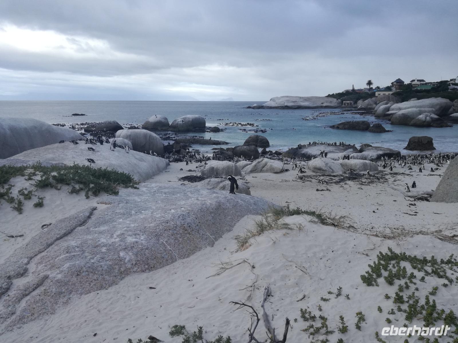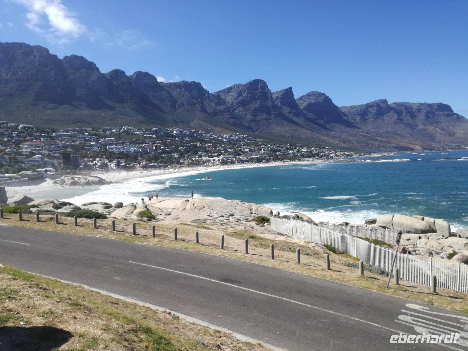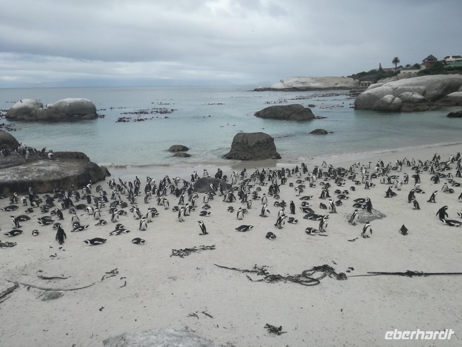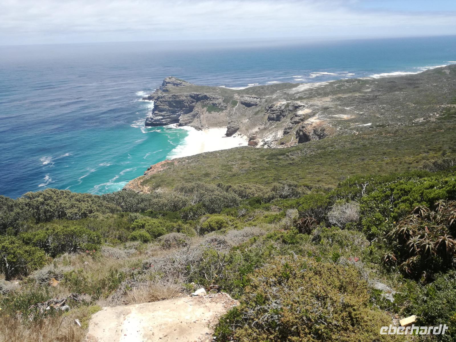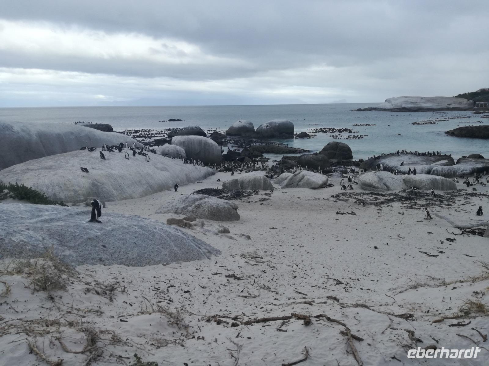 Nach der schönen Feier starteten wir um 9 Uhr in den ersten Tag des Jahres. Wieder gab es ein ausgezeichnetes Frühstück. Herbie und unser Fahrer Clieve holten uns im Hotel ab. Zunächst fuhren wir an Camps Bay. Hier gab es einen schnellen Stopp beim hiesigen Hard Rock Café Kapstadt. Weiter sollte es in Richtung Kap der Guten Hoffnung gehen. Ein weiterer Stopp folgte in Clifden. Hier gibt es einen wunderschönen Aussichtspunkt auf das Meer und die Bucht. Weiter führte uns der Weg über die atemberaubende Panoramastraße Chapman Peak Drive. Auf der Küstenstraße mit wunderbaren Ausblicken, wurden unter anderem Werbespots für Mercedes und BMW gedreht, bei dem leider auch Menschen aufgrund der scharfen Kurven verletzt wurden. Unser nächster Halt erfolgte am Cap der guten Hoffnung. Im jeweiligen Table Mountain Nationalpark leben bis zu 250 Vogel und über 1.000 Pflanzenarten. Der eigentliche Höhepunkt ist der Cape Point, der 200m oberhalb des Kaps der guten Hoffnung liegt. Neben einem Restaurant und Souvenirläden gibt es hier auch eine Seilbahn, die uns bis zum alten Leuchtturm des Kaps brachte. Von hier aus hatten wir eine wundervolle Aussicht und genossen das gute Wetter in vollen Zügen. Manche nahmen die Seilbahn zurück und manche spazierten über Treppen zurück zum Ausgangspunkt. Weiter ging es zum südlichen Zipfel der Halbinsel. Hier liegt das sagenumworbenes Kap der Guten Hoffnung. Das berühmte Kap der guten Hoffnung erhielt Ihren Namen vom portugiesischen König Johann II, da der Seeweg ihm den Weg nach Indien ebnete. Hier legten wir einen Fotostopp ein und schossen unendliche Bilder. Natürliche durfte hier eine Kaptaufe nicht fehlen. Gemeinsam stießen wir auf das neue Jahr und auf das Kap an. Nachdem wir das Kap ausführlich erkundet hatten, wollten wir auch noch die hiesige Tierwelt kennen lernen. Doch zunächst einmal gab es Mittagessen. Im bekannten Fischrestaurant Black Merlin gab es unser Neujahrsessen mit Fisch, Garnelen und Hummer. Ein leckeres Mittagessen direkt am Meer. In der Nähe von Simonstown stoppten wir am Boulders Beach und gingen auf Tuchfühlung mit den einheimischen Pinguinen, die sich in der Sonne räkelten. Plötzlich drehte das Wetter und wir mussten uns beeilen, damit wir trocken im Bus ankamen. Das Wetter vermieste unsere Stimmung nicht und wir fuhren zum Hotel zurück, wo wir müde ins Bett fielen. Langsam ging ein aufregender Tag zu Ende.