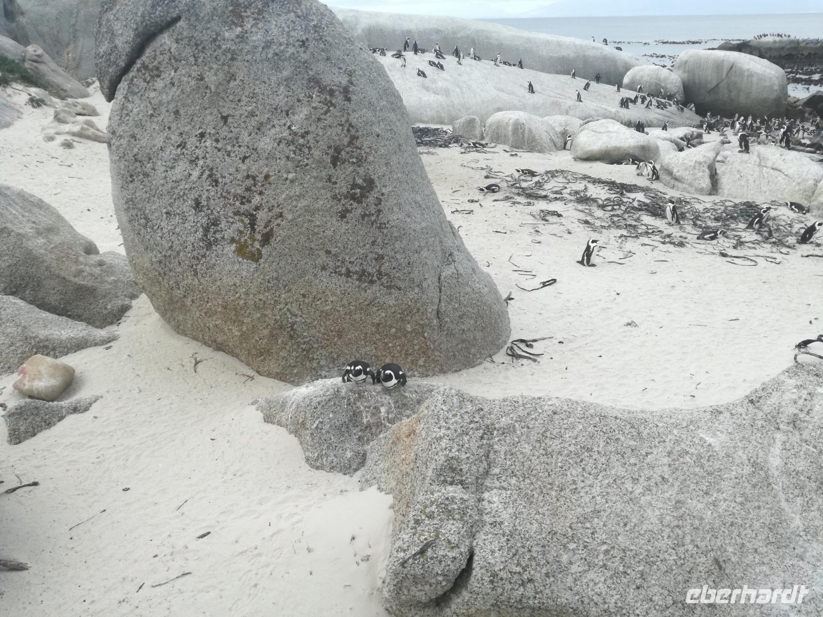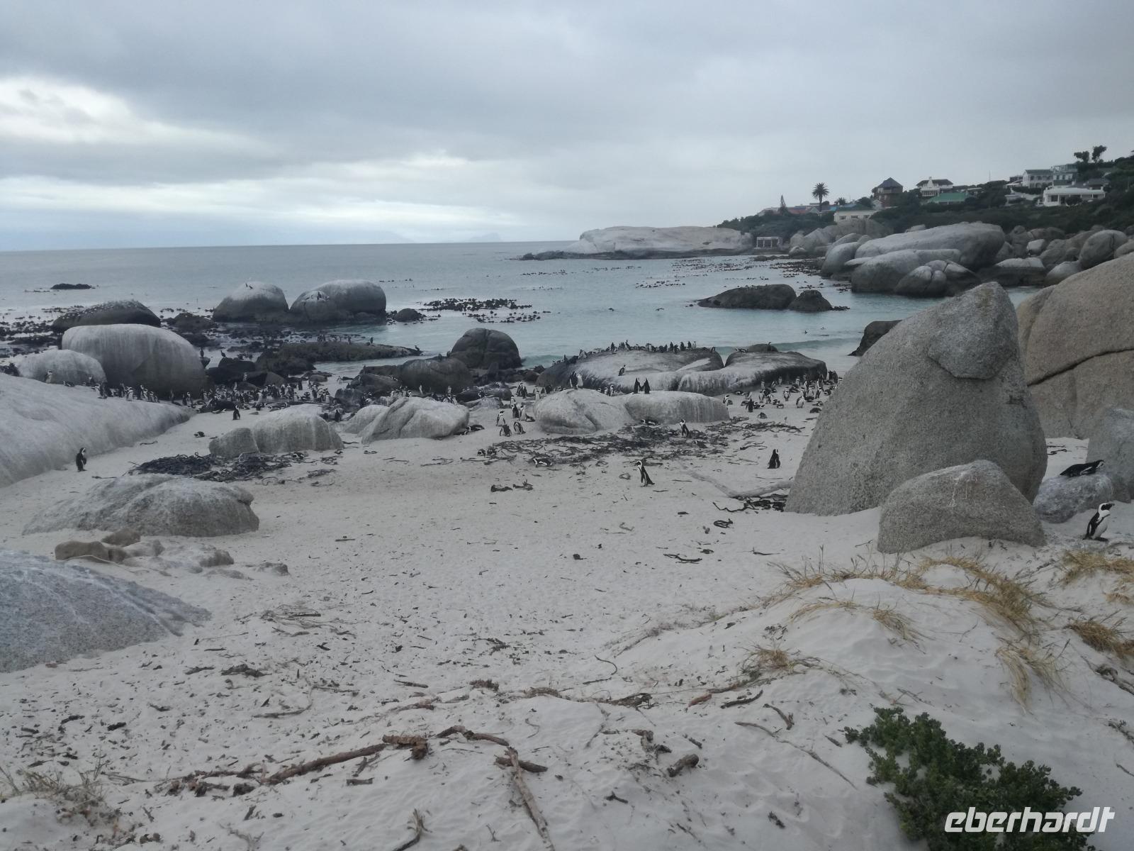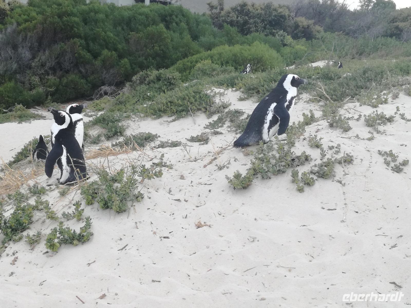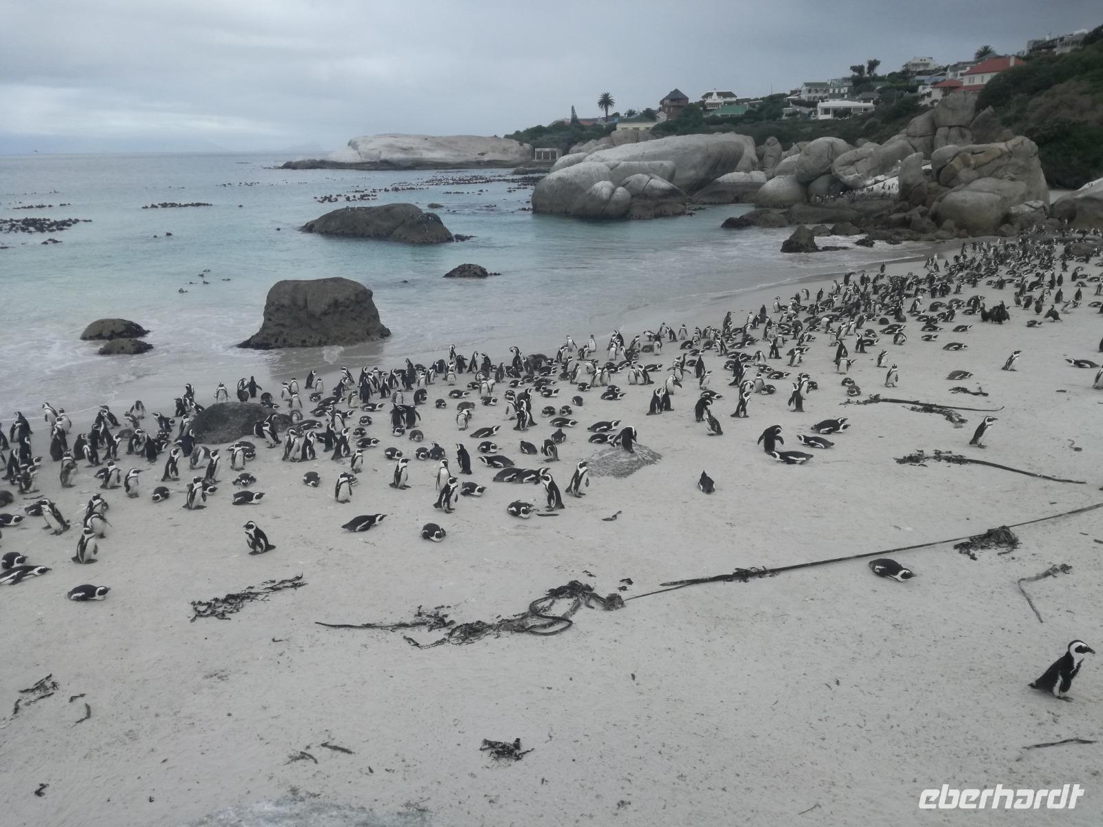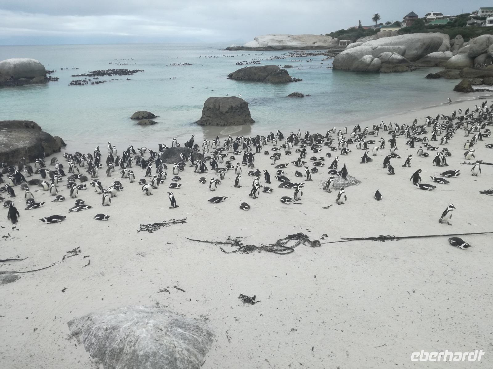 Nach der schönen Feier starteten wir um 9 Uhr in den ersten Tag des Jahres. Wieder gab es ein ausgezeichnetes Frühstück. Herbie und unser Fahrer Clieve holten uns im Hotel ab. Zunächst fuhren wir an Camps Bay. Hier gab es einen schnellen Stopp beim hiesigen Hard Rock Café Kapstadt. Weiter sollte es in Richtung Kap der Guten Hoffnung gehen. Ein weiterer Stopp folgte in Clifden. Hier gibt es einen wunderschönen Aussichtspunkt auf das Meer und die Bucht. Weiter führte uns der Weg über die atemberaubende Panoramastraße Chapman Peak Drive. Auf der Küstenstraße mit wunderbaren Ausblicken, wurden unter anderem Werbespots für Mercedes und BMW gedreht, bei dem leider auch Menschen aufgrund der scharfen Kurven verletzt wurden. Unser nächster Halt erfolgte am Cap der guten Hoffnung. Im jeweiligen Table Mountain Nationalpark leben bis zu 250 Vogel und über 1.000 Pflanzenarten. Der eigentliche Höhepunkt ist der Cape Point, der 200m oberhalb des Kaps der guten Hoffnung liegt. Neben einem Restaurant und Souvenirläden gibt es hier auch eine Seilbahn, die uns bis zum alten Leuchtturm des Kaps brachte. Von hier aus hatten wir eine wundervolle Aussicht und genossen das gute Wetter in vollen Zügen. Manche nahmen die Seilbahn zurück und manche spazierten über Treppen zurück zum Ausgangspunkt. Weiter ging es zum südlichen Zipfel der Halbinsel. Hier liegt das sagenumworbenes Kap der Guten Hoffnung. Das berühmte Kap der guten Hoffnung erhielt Ihren Namen vom portugiesischen König Johann II, da der Seeweg ihm den Weg nach Indien ebnete. Hier legten wir einen Fotostopp ein und schossen unendliche Bilder. Natürliche durfte hier eine Kaptaufe nicht fehlen. Gemeinsam stießen wir auf das neue Jahr und auf das Kap an. Nachdem wir das Kap ausführlich erkundet hatten, wollten wir auch noch die hiesige Tierwelt kennen lernen. Doch zunächst einmal gab es Mittagessen. Im bekannten Fischrestaurant Black Merlin gab es unser Neujahrsessen mit Fisch, Garnelen und Hummer. Ein leckeres Mittagessen direkt am Meer. In der Nähe von Simonstown stoppten wir am Boulders Beach und gingen auf Tuchfühlung mit den einheimischen Pinguinen, die sich in der Sonne räkelten. Plötzlich drehte das Wetter und wir mussten uns beeilen, damit wir trocken im Bus ankamen. Das Wetter vermieste unsere Stimmung nicht und wir fuhren zum Hotel zurück, wo wir müde ins Bett fielen. Langsam ging ein aufregender Tag zu Ende.