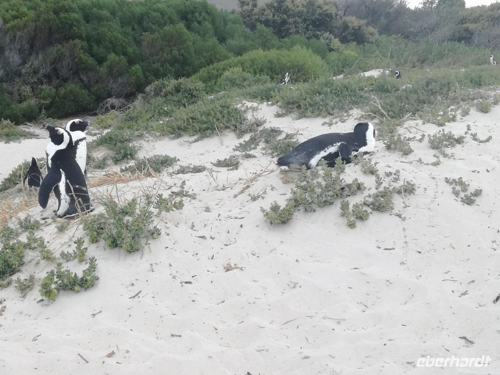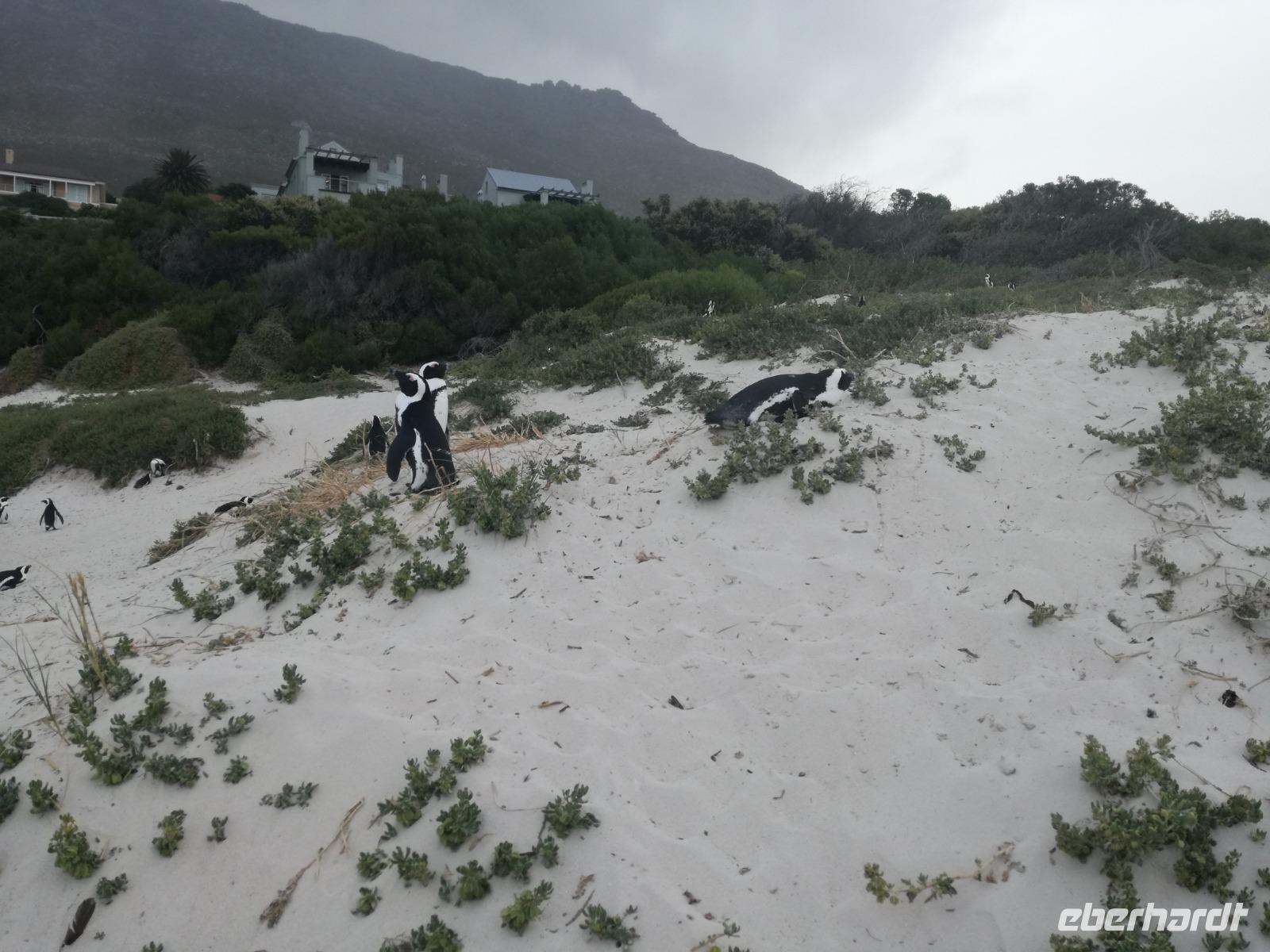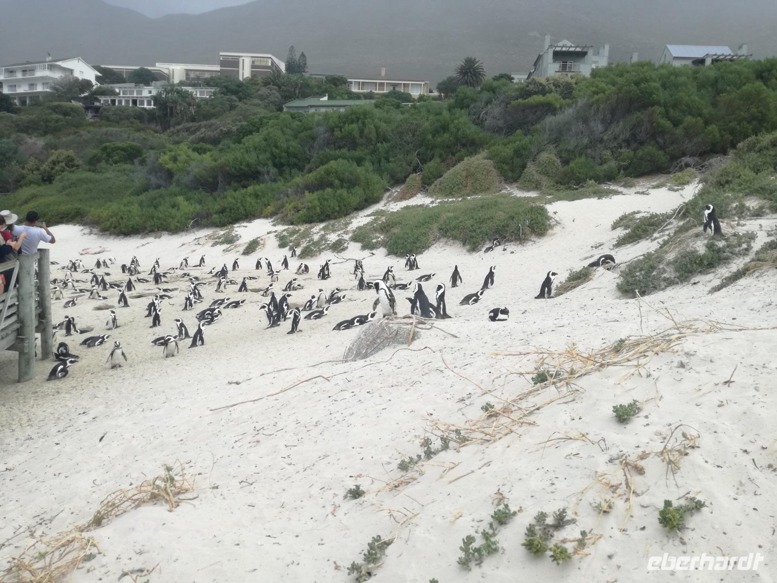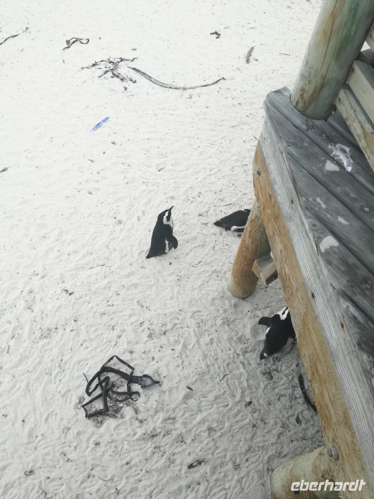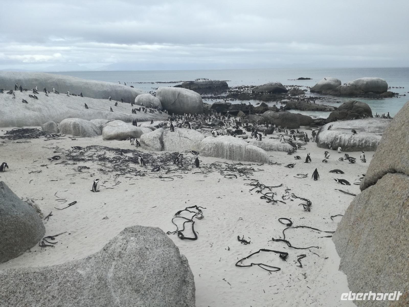 Nach der schönen Feier starteten wir um 9 Uhr in den ersten Tag des Jahres. Wieder gab es ein ausgezeichnetes Frühstück. Herbie und unser Fahrer Clieve holten uns im Hotel ab. Zunächst fuhren wir an Camps Bay. Hier gab es einen schnellen Stopp beim hiesigen Hard Rock Café Kapstadt. Weiter sollte es in Richtung Kap der Guten Hoffnung gehen. Ein weiterer Stopp folgte in Clifden. Hier gibt es einen wunderschönen Aussichtspunkt auf das Meer und die Bucht. Weiter führte uns der Weg über die atemberaubende Panoramastraße Chapman Peak Drive. Auf der Küstenstraße mit wunderbaren Ausblicken, wurden unter anderem Werbespots für Mercedes und BMW gedreht, bei dem leider auch Menschen aufgrund der scharfen Kurven verletzt wurden. Unser nächster Halt erfolgte am Cap der guten Hoffnung. Im jeweiligen Table Mountain Nationalpark leben bis zu 250 Vogel und über 1.000 Pflanzenarten. Der eigentliche Höhepunkt ist der Cape Point, der 200m oberhalb des Kaps der guten Hoffnung liegt. Neben einem Restaurant und Souvenirläden gibt es hier auch eine Seilbahn, die uns bis zum alten Leuchtturm des Kaps brachte. Von hier aus hatten wir eine wundervolle Aussicht und genossen das gute Wetter in vollen Zügen. Manche nahmen die Seilbahn zurück und manche spazierten über Treppen zurück zum Ausgangspunkt. Weiter ging es zum südlichen Zipfel der Halbinsel. Hier liegt das sagenumworbenes Kap der Guten Hoffnung. Das berühmte Kap der guten Hoffnung erhielt Ihren Namen vom portugiesischen König Johann II, da der Seeweg ihm den Weg nach Indien ebnete. Hier legten wir einen Fotostopp ein und schossen unendliche Bilder. Natürliche durfte hier eine Kaptaufe nicht fehlen. Gemeinsam stießen wir auf das neue Jahr und auf das Kap an. Nachdem wir das Kap ausführlich erkundet hatten, wollten wir auch noch die hiesige Tierwelt kennen lernen. Doch zunächst einmal gab es Mittagessen. Im bekannten Fischrestaurant Black Merlin gab es unser Neujahrsessen mit Fisch, Garnelen und Hummer. Ein leckeres Mittagessen direkt am Meer. In der Nähe von Simonstown stoppten wir am Boulders Beach und gingen auf Tuchfühlung mit den einheimischen Pinguinen, die sich in der Sonne räkelten. Plötzlich drehte das Wetter und wir mussten uns beeilen, damit wir trocken im Bus ankamen. Das Wetter vermieste unsere Stimmung nicht und wir fuhren zum Hotel zurück, wo wir müde ins Bett fielen. Langsam ging ein aufregender Tag zu Ende.
