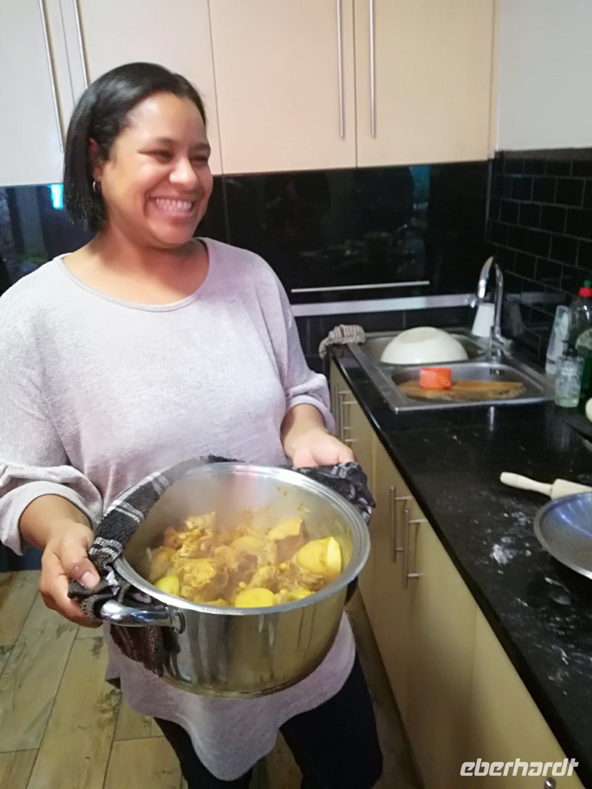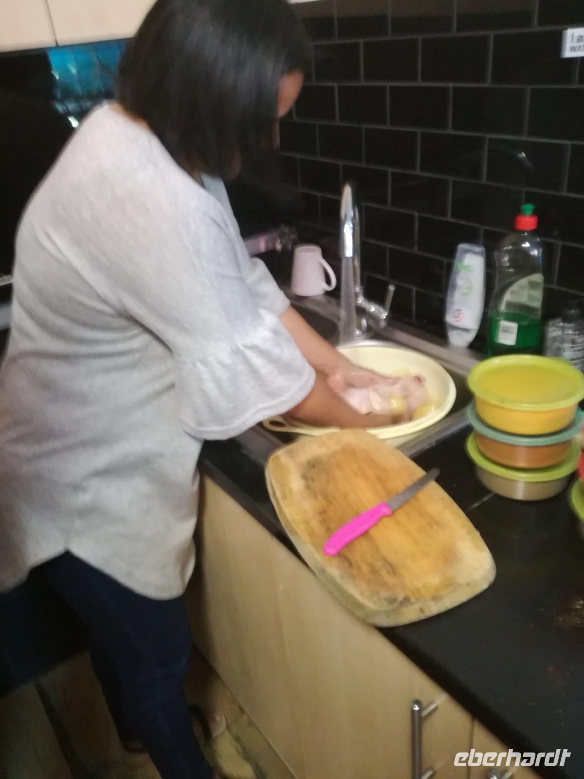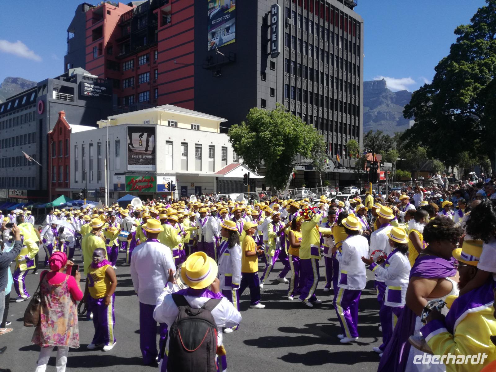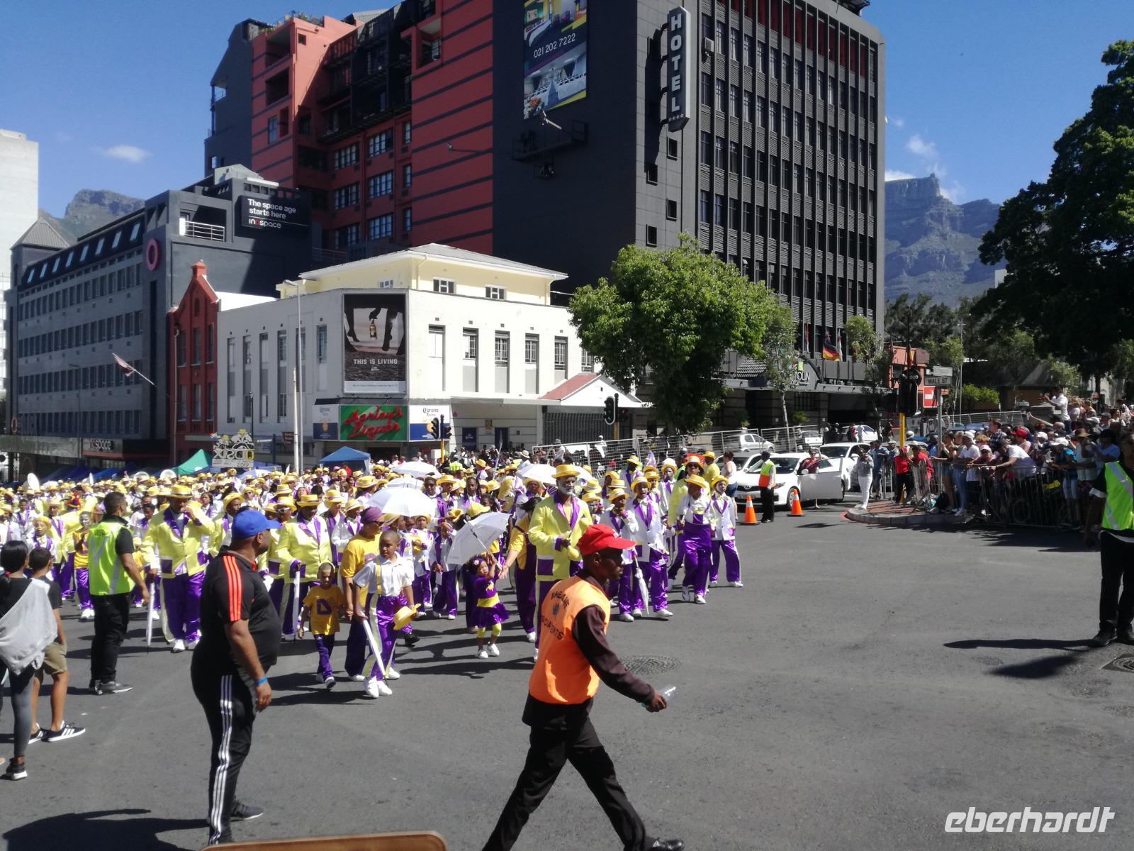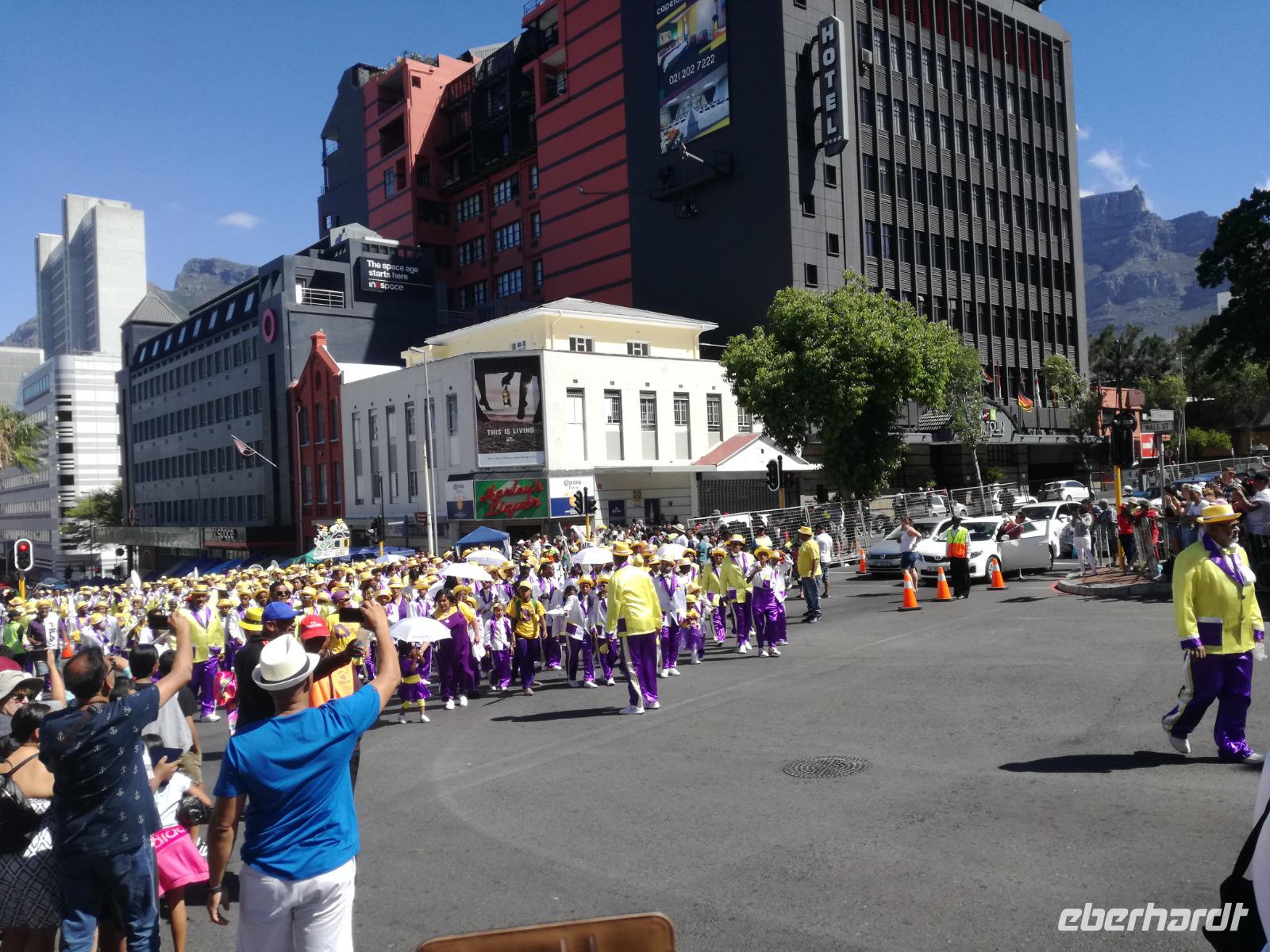 Der heutige Tag stand komplett zur freien Verfügung. Deshalb war ausschlafen angesagt. Wer den optimalen Ausflug Cape Cuisine gebucht hatte, traf sich nach dem Frühstück in der Lobby. Gemeinsam liefen wir zum Bo Kaap Viertel. Unterwegs wunderten wir uns schon über die Absperrung und den Betrieb auf der Straße. Im Bo Kaap Viertel wurden wir bereits erwartet. Unsere Gastgeberin Gamidah hieß uns willkommen und unsere Lektion in der Kap Küche konnte beginnen. Gemeinsam bereiteten wir gemeinsam folgende Gericht zu: Roti, traditionelles Curry, Samosa, Chili Bites und Sambal. Roti ist ein afrikanischer Teigfladen, welcher aus Mehl, Margarine, Salz und Öl besteht und warm serviert wird. Das Fladenbrot wird in kleine Teile auseinander gebrochen. Statt Gabel und Messer zu benutzen, werden die kleinen Stücke des Roti zum Aufnehmen von Fleisch und Sauce verwendet. Samosa sind gefüllte Teigtaschen bestehend aus Wasser, Salz, Butter und Mehl. Sie werden unter anderem wie Hackfleisch, Curry oder Käse gefüllt. Gamidah zeigt uns, wie wir die Samosa zu Dreiecken zusammenlegen. Anschließend erfolgt das Frittieren in siedendem Fett, so dass sie auch von außen knusprig braun werden. In der Küche packten natürlich nicht nur die Frauen an. Auch unsere Männer waren tatkräftig dabei, halfen wo sie nur konnten und versuchen sich selbst im Zubereiten und Kochen der Speisen. Es ist wirklich ein schönes unterhaltsames gemeinsames Zubereiten, Kochen und natürlich auch Verzerren der Speisen. Zudem kam auch noch eine südafrikanische Bratwurst auf den Teller. Guten Appetit und wohl bekomms. Nach dem Essen zeigt uns Gamidah im gegenüberliegenden Laden die Gewürze, welche wir beim Kochen verwendet haben. Dazu zählen das Mehl "Chaan/Chickenpea Flour", Kurkuma "Turmeric", Chili Pulver "Mild Chili Powder", Kreuzkümmel "Cumin/Jeera", Koriander "Koljana/Coriander" und Fenchel "Fennel". Dann verabschieden wir uns freundlich von Gamidah und bedanken uns für den tollen Kochkurs. In der Zwischenzeit hatten wir erfahren, dass heute der Karneval im Bo Kaap Viertel stattfand. Wir warteten also noch etwas (in Afrika kann es halt schon mal zu Verzögerungen kommen). Nach einer nicht zu definierenden Wartezeit kamen endlich die ersten von 23 Gruppen und trommelten und tanzten die Straßen hinauf. Ein tolles Schauspiel. Gemeinsam liefen wir zum Hotel zurück oder machten noch einmal halt an der Waterfront. Zum Abend traf sich ein Großteil der Gruppe in der Lobby des Hotel und schlenderten gemeinsam zurück zur Waterfront. Denn wir wollten Kapstadt von einer anderen Seite aus kennen lernen. Leider spielte der Wind nicht mit und wir mussten kurzfristig das Boot wechseln. Etwas Wind kann uns halt nicht von unserem Vorhaben abbringen Kapstadt bei einer Champagner Sunset Cruise. An Bord erhält jeder Gast zwei Gläser alkoholischen oder auch alkoholfreien Sekts. Wir fuhren heraus auf offenen Meer und konnten Silhouette der Stadt, das Stadion und den Tafelberg entdecken. Die Bootsfahrt dauert rund eineinhalb Stunden und wir sehen einen wunderschönen Sonnenuntergang. Ein wunderschöner Tag am Kap ging nun zu Ende. Mit einem traurigen Auge sahen wir auf die gemeinsame Zeit in Kapstadt zurück und freuten uns andererseits auf die Tiererlebnisse in den nächsten Tagen.