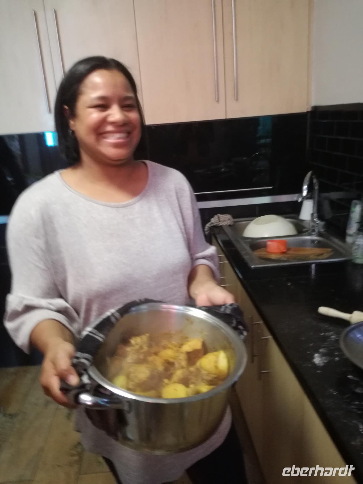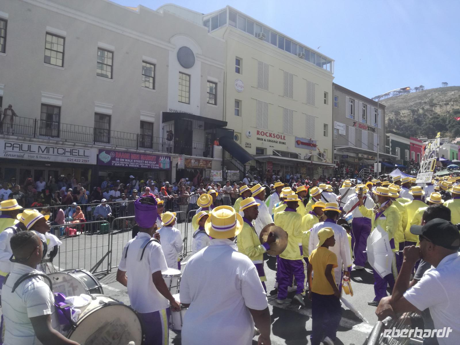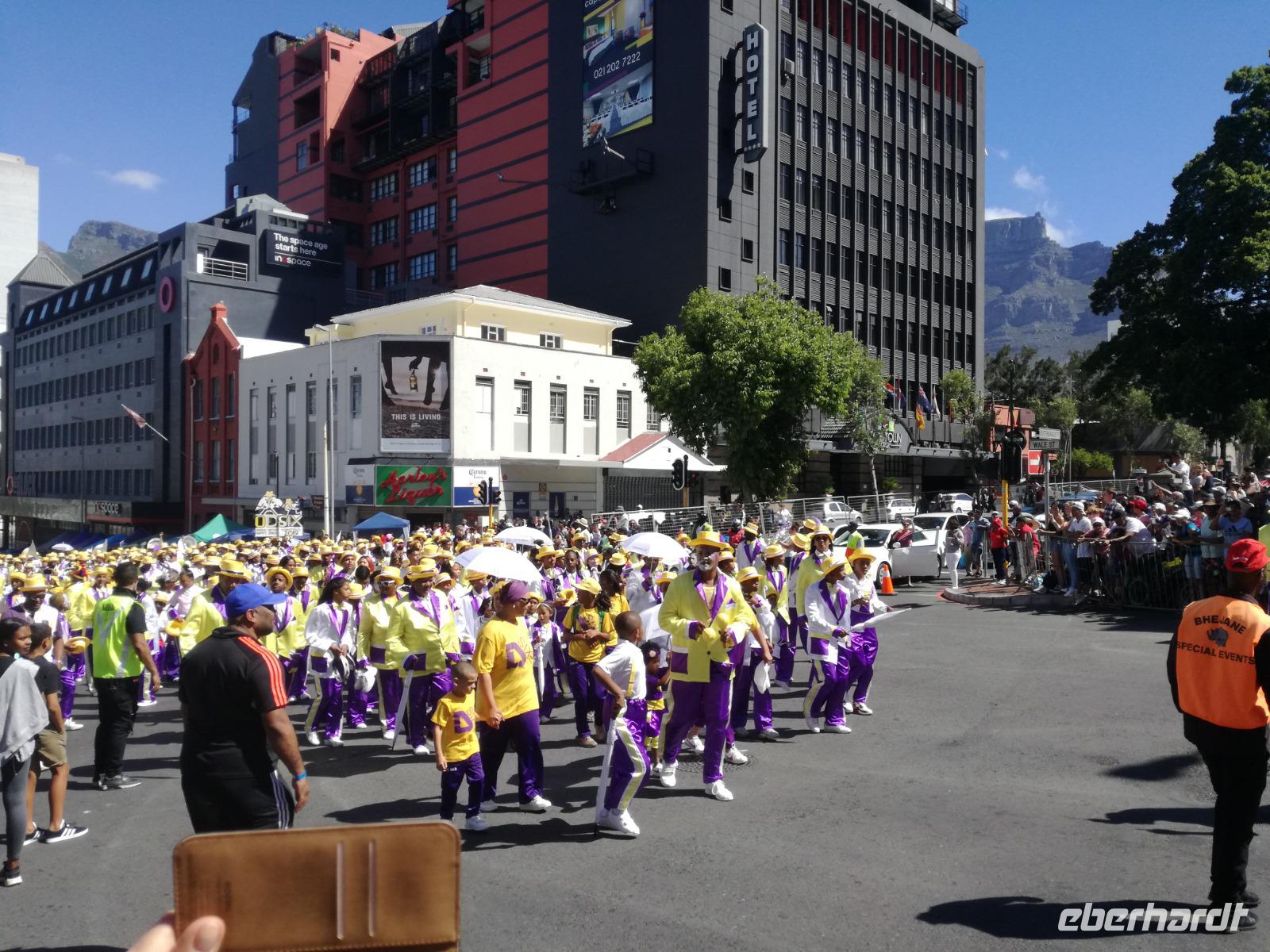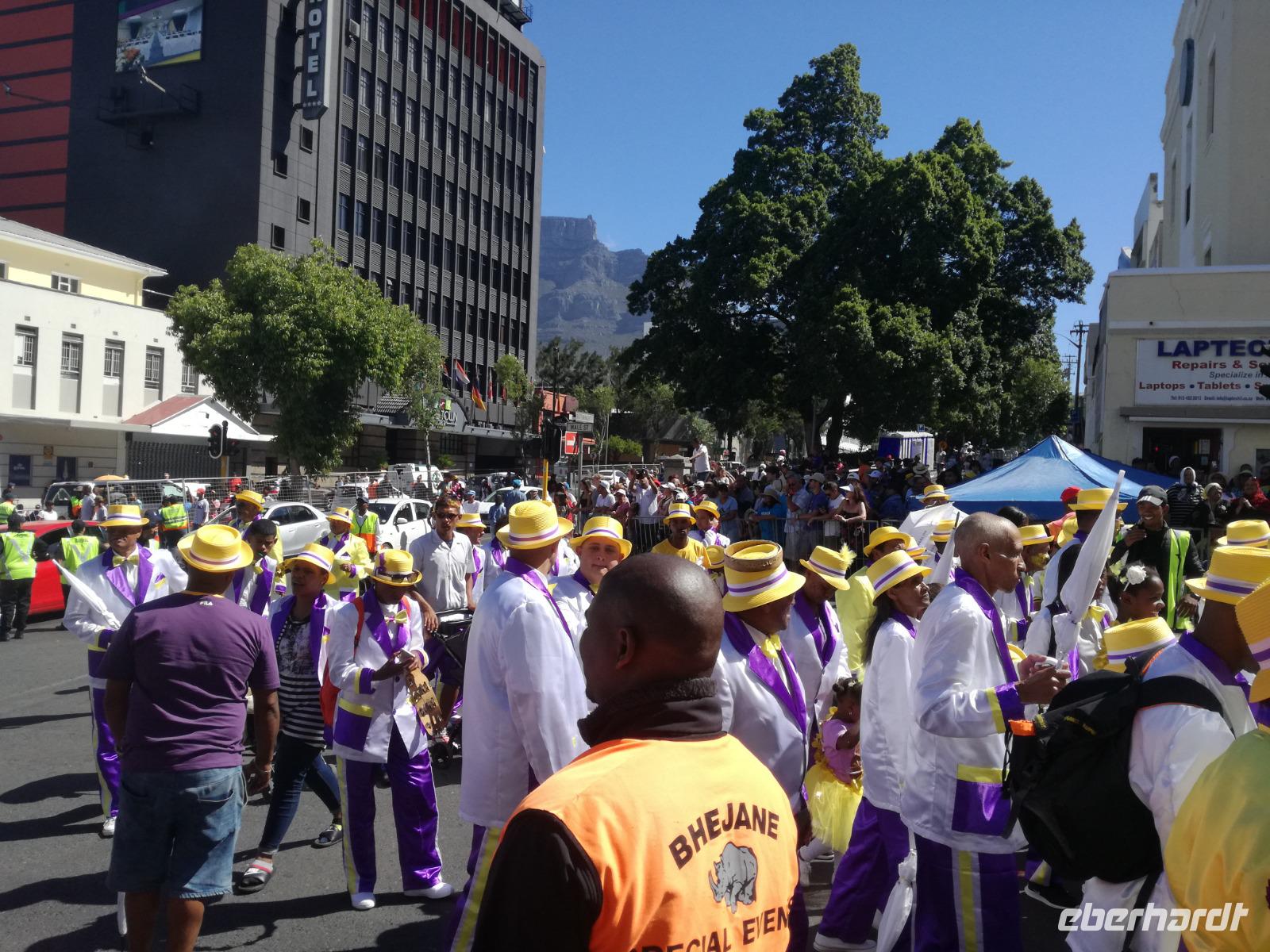 Der heutige Tag stand komplett zur freien Verfügung. Deshalb war ausschlafen angesagt. Wer den optimalen Ausflug Cape Cuisine gebucht hatte, traf sich nach dem Frühstück in der Lobby. Gemeinsam liefen wir zum Bo Kaap Viertel. Unterwegs wunderten wir uns schon über die Absperrung und den Betrieb auf der Straße. Im Bo Kaap Viertel wurden wir bereits erwartet. Unsere Gastgeberin Gamidah hieß uns willkommen und unsere Lektion in der Kap Küche konnte beginnen. Gemeinsam bereiteten wir gemeinsam folgende Gericht zu: Roti, traditionelles Curry, Samosa, Chili Bites und Sambal. Roti ist ein afrikanischer Teigfladen, welcher aus Mehl, Margarine, Salz und Öl besteht und warm serviert wird. Das Fladenbrot wird in kleine Teile auseinander gebrochen. Statt Gabel und Messer zu benutzen, werden die kleinen Stücke des Roti zum Aufnehmen von Fleisch und Sauce verwendet. Samosa sind gefüllte Teigtaschen bestehend aus Wasser, Salz, Butter und Mehl. Sie werden unter anderem wie Hackfleisch, Curry oder Käse gefüllt. Gamidah zeigt uns, wie wir die Samosa zu Dreiecken zusammenlegen. Anschließend erfolgt das Frittieren in siedendem Fett, so dass sie auch von außen knusprig braun werden. In der Küche packten natürlich nicht nur die Frauen an. Auch unsere Männer waren tatkräftig dabei, halfen wo sie nur konnten und versuchen sich selbst im Zubereiten und Kochen der Speisen. Es ist wirklich ein schönes unterhaltsames gemeinsames Zubereiten, Kochen und natürlich auch Verzerren der Speisen. Zudem kam auch noch eine südafrikanische Bratwurst auf den Teller. Guten Appetit und wohl bekomms. Nach dem Essen zeigt uns Gamidah im gegenüberliegenden Laden die Gewürze, welche wir beim Kochen verwendet haben. Dazu zählen das Mehl "Chaan/Chickenpea Flour", Kurkuma "Turmeric", Chili Pulver "Mild Chili Powder", Kreuzkümmel "Cumin/Jeera", Koriander "Koljana/Coriander" und Fenchel "Fennel". Dann verabschieden wir uns freundlich von Gamidah und bedanken uns für den tollen Kochkurs. In der Zwischenzeit hatten wir erfahren, dass heute der Karneval im Bo Kaap Viertel stattfand. Wir warteten also noch etwas (in Afrika kann es halt schon mal zu Verzögerungen kommen). Nach einer nicht zu definierenden Wartezeit kamen endlich die ersten von 23 Gruppen und trommelten und tanzten die Straßen hinauf. Ein tolles Schauspiel. Gemeinsam liefen wir zum Hotel zurück oder machten noch einmal halt an der Waterfront. Zum Abend traf sich ein Großteil der Gruppe in der Lobby des Hotel und schlenderten gemeinsam zurück zur Waterfront. Denn wir wollten Kapstadt von einer anderen Seite aus kennen lernen. Leider spielte der Wind nicht mit und wir mussten kurzfristig das Boot wechseln. Etwas Wind kann uns halt nicht von unserem Vorhaben abbringen Kapstadt bei einer Champagner Sunset Cruise. An Bord erhält jeder Gast zwei Gläser alkoholischen oder auch alkoholfreien Sekts. Wir fuhren heraus auf offenen Meer und konnten Silhouette der Stadt, das Stadion und den Tafelberg entdecken. Die Bootsfahrt dauert rund eineinhalb Stunden und wir sehen einen wunderschönen Sonnenuntergang. Ein wunderschöner Tag am Kap ging nun zu Ende. Mit einem traurigen Auge sahen wir auf die gemeinsame Zeit in Kapstadt zurück und freuten uns andererseits auf die Tiererlebnisse in den nächsten Tagen.