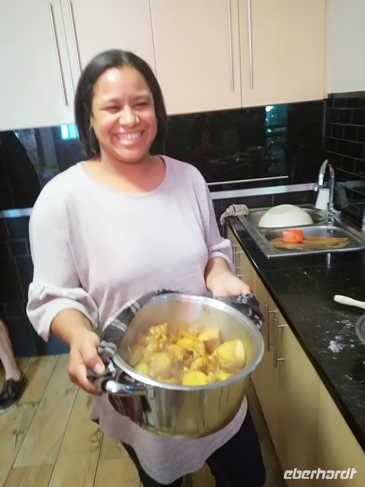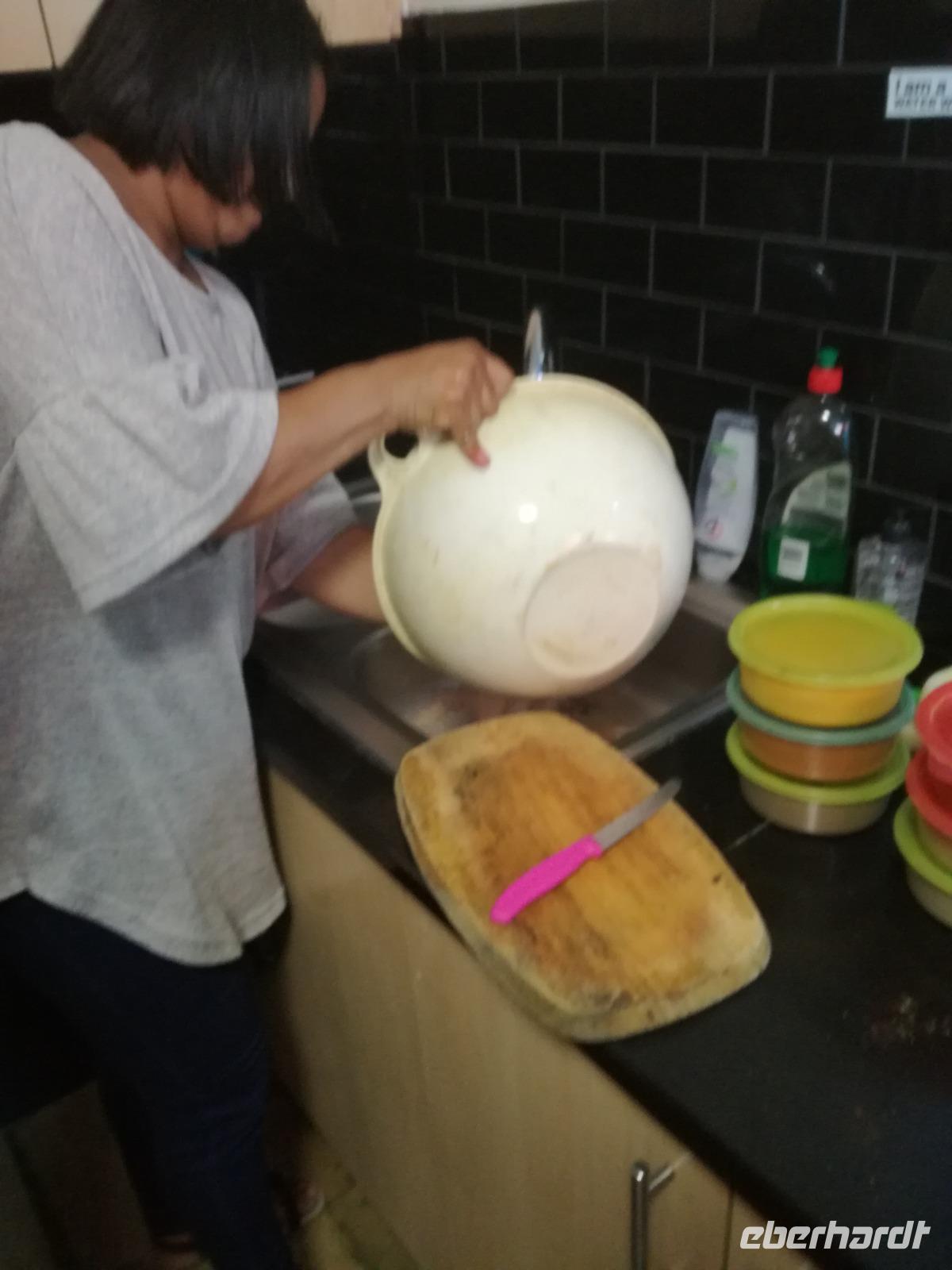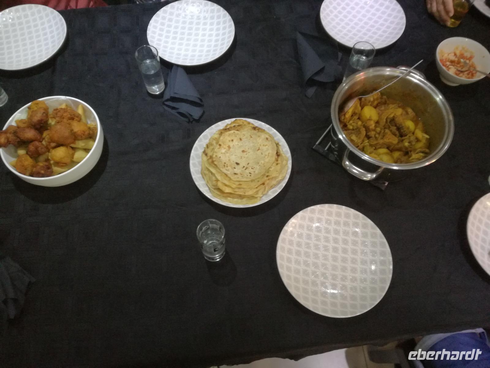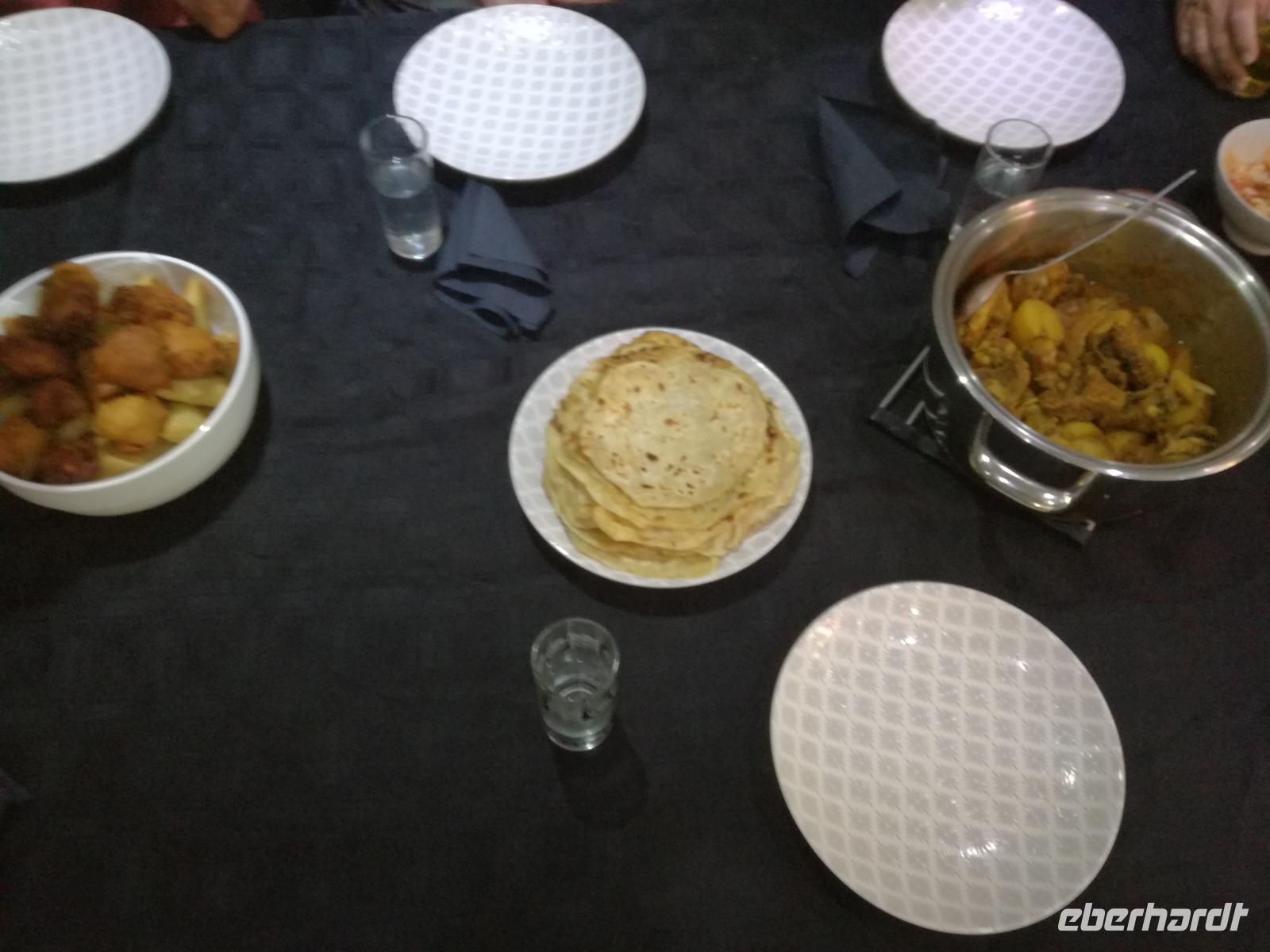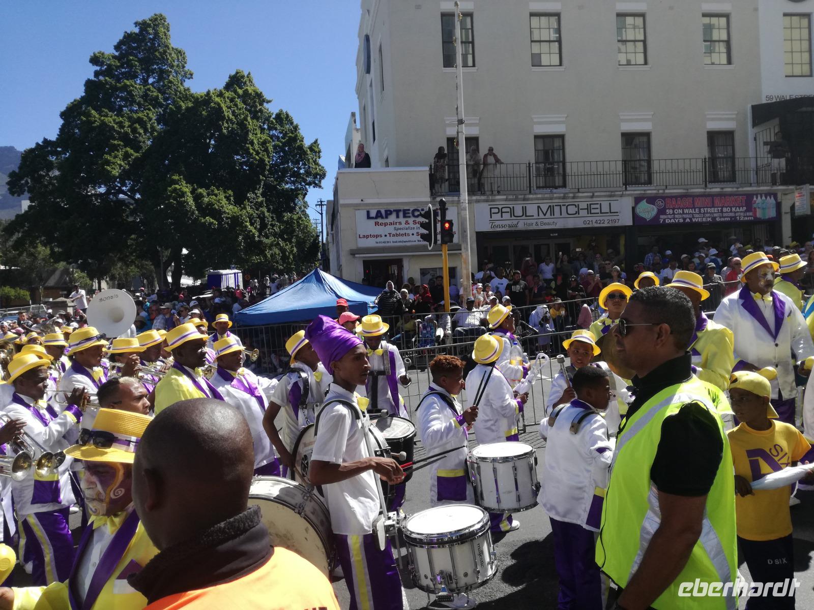 Der heutige Tag stand komplett zur freien Verfügung. Deshalb war ausschlafen angesagt. Wer den optimalen Ausflug Cape Cuisine gebucht hatte, traf sich nach dem Frühstück in der Lobby. Gemeinsam liefen wir zum Bo Kaap Viertel. Unterwegs wunderten wir uns schon über die Absperrung und den Betrieb auf der Straße. Im Bo Kaap Viertel wurden wir bereits erwartet. Unsere Gastgeberin Gamidah hieß uns willkommen und unsere Lektion in der Kap Küche konnte beginnen. Gemeinsam bereiteten wir gemeinsam folgende Gericht zu: Roti, traditionelles Curry, Samosa, Chili Bites und Sambal. Roti ist ein afrikanischer Teigfladen, welcher aus Mehl, Margarine, Salz und Öl besteht und warm serviert wird. Das Fladenbrot wird in kleine Teile auseinander gebrochen. Statt Gabel und Messer zu benutzen, werden die kleinen Stücke des Roti zum Aufnehmen von Fleisch und Sauce verwendet. Samosa sind gefüllte Teigtaschen bestehend aus Wasser, Salz, Butter und Mehl. Sie werden unter anderem wie Hackfleisch, Curry oder Käse gefüllt. Gamidah zeigt uns, wie wir die Samosa zu Dreiecken zusammenlegen. Anschließend erfolgt das Frittieren in siedendem Fett, so dass sie auch von außen knusprig braun werden. In der Küche packten natürlich nicht nur die Frauen an. Auch unsere Männer waren tatkräftig dabei, halfen wo sie nur konnten und versuchen sich selbst im Zubereiten und Kochen der Speisen. Es ist wirklich ein schönes unterhaltsames gemeinsames Zubereiten, Kochen und natürlich auch Verzerren der Speisen. Zudem kam auch noch eine südafrikanische Bratwurst auf den Teller. Guten Appetit und wohl bekomms. Nach dem Essen zeigt uns Gamidah im gegenüberliegenden Laden die Gewürze, welche wir beim Kochen verwendet haben. Dazu zählen das Mehl "Chaan/Chickenpea Flour", Kurkuma "Turmeric", Chili Pulver "Mild Chili Powder", Kreuzkümmel "Cumin/Jeera", Koriander "Koljana/Coriander" und Fenchel "Fennel". Dann verabschieden wir uns freundlich von Gamidah und bedanken uns für den tollen Kochkurs. In der Zwischenzeit hatten wir erfahren, dass heute der Karneval im Bo Kaap Viertel stattfand. Wir warteten also noch etwas (in Afrika kann es halt schon mal zu Verzögerungen kommen). Nach einer nicht zu definierenden Wartezeit kamen endlich die ersten von 23 Gruppen und trommelten und tanzten die Straßen hinauf. Ein tolles Schauspiel. Gemeinsam liefen wir zum Hotel zurück oder machten noch einmal halt an der Waterfront. Zum Abend traf sich ein Großteil der Gruppe in der Lobby des Hotel und schlenderten gemeinsam zurück zur Waterfront. Denn wir wollten Kapstadt von einer anderen Seite aus kennen lernen. Leider spielte der Wind nicht mit und wir mussten kurzfristig das Boot wechseln. Etwas Wind kann uns halt nicht von unserem Vorhaben abbringen Kapstadt bei einer Champagner Sunset Cruise. An Bord erhält jeder Gast zwei Gläser alkoholischen oder auch alkoholfreien Sekts. Wir fuhren heraus auf offenen Meer und konnten Silhouette der Stadt, das Stadion und den Tafelberg entdecken. Die Bootsfahrt dauert rund eineinhalb Stunden und wir sehen einen wunderschönen Sonnenuntergang. Ein wunderschöner Tag am Kap ging nun zu Ende. Mit einem traurigen Auge sahen wir auf die gemeinsame Zeit in Kapstadt zurück und freuten uns andererseits auf die Tiererlebnisse in den nächsten Tagen.