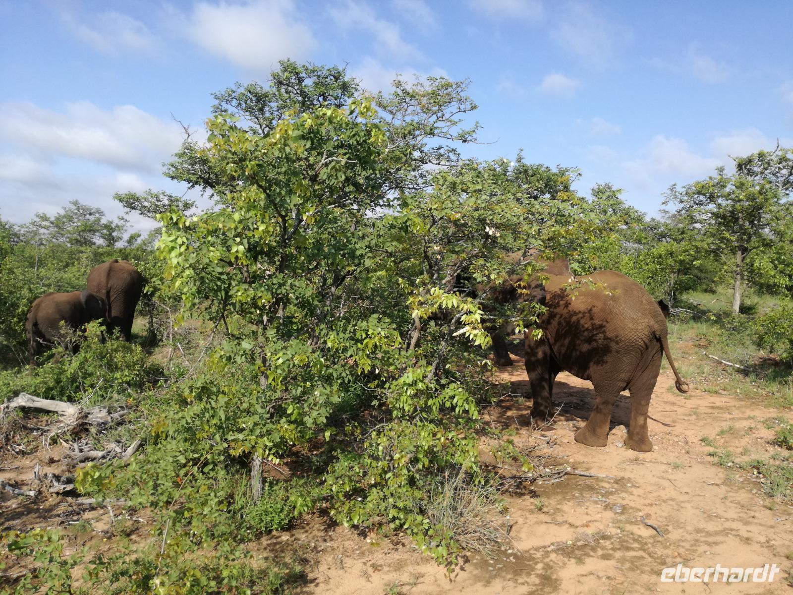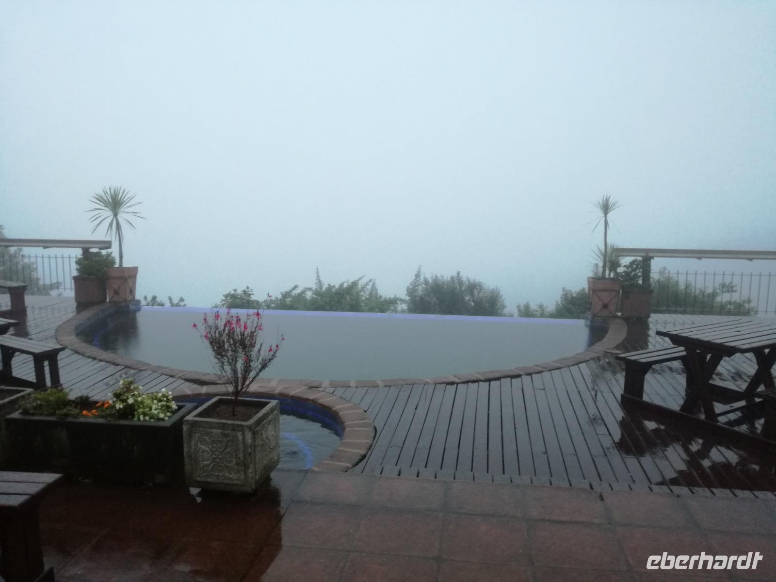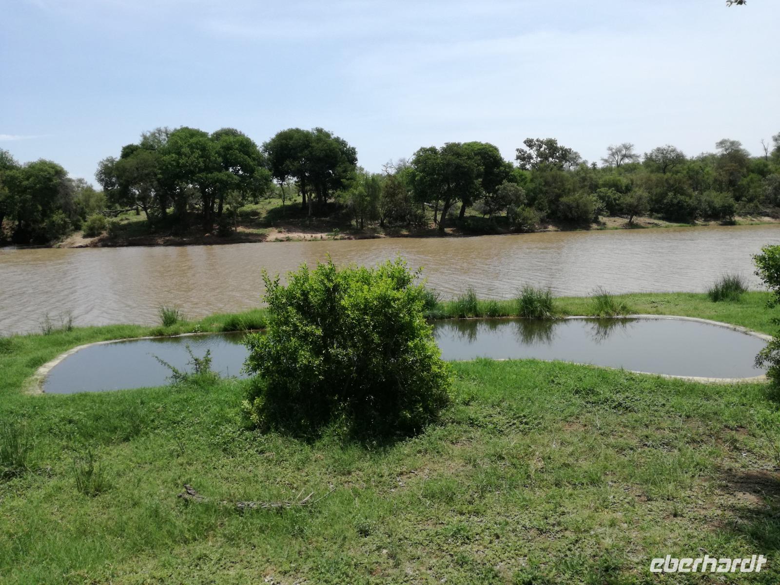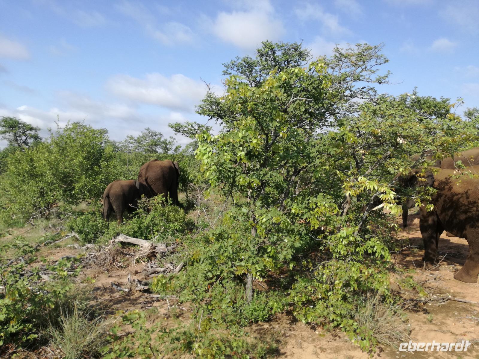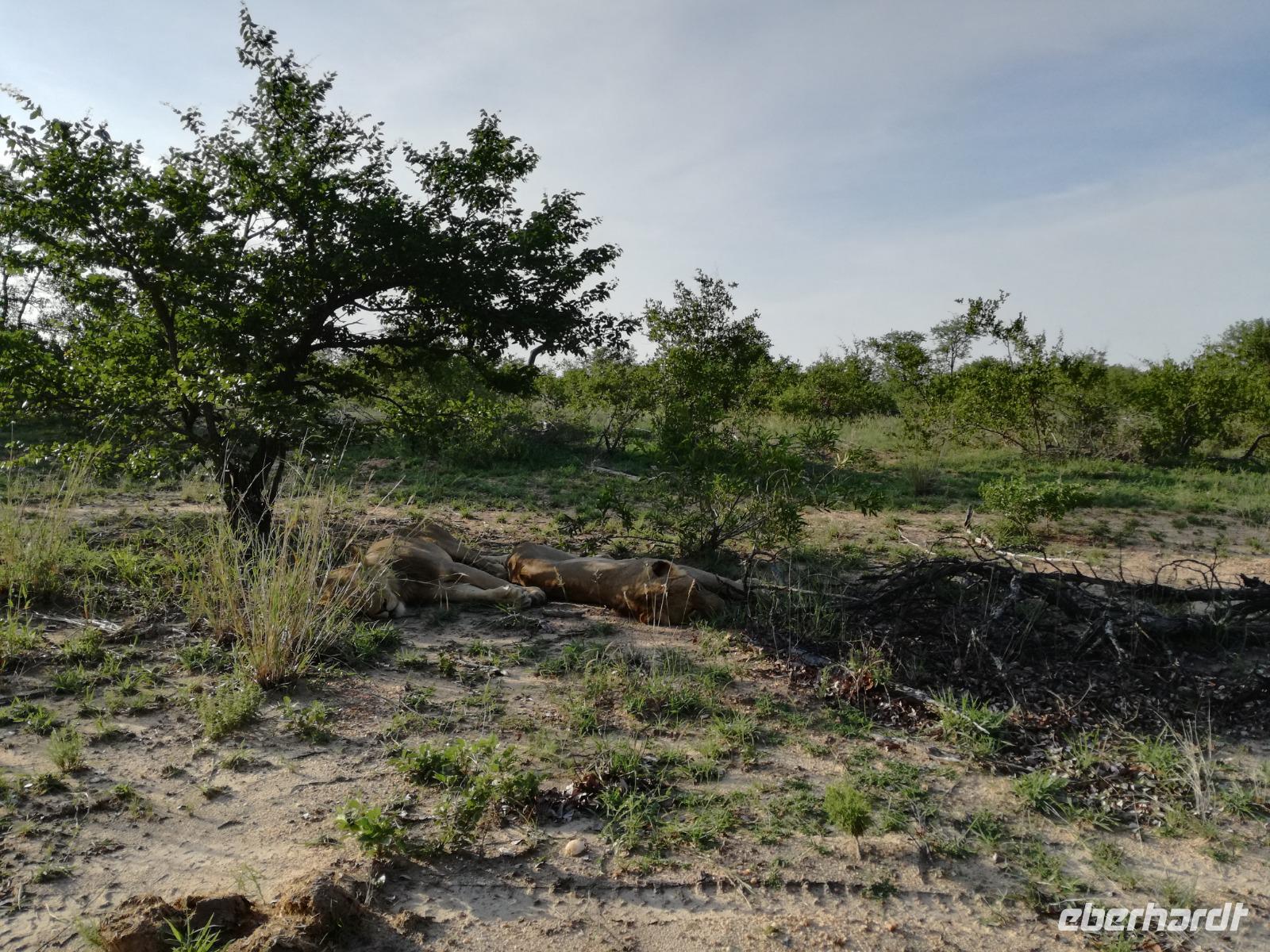 Leider hatte sich heute der Nebel noch nicht verzogen und die Lodge lag immer noch im Nebel. Naja wir wollten ja eh heute abreisen. Nach dem Frühstück ging es also auf die Panorama Route und wir hofften, dass der Nebel sich verzog. Uns führte die enge Passstraße durch die Bergkette der Drachenberge. Kurzer vor unserem ersten Stopp am God´s Window aber verdichtete sich der Nebel wieder. Unser erster Stopp fiel deshalb ins Wasser, denn God´s Window (Gottes Fenster) war leider geschlossen oder besser gesagt, ein Blick aus dem Fenster lohnte sich nicht. Als Ersatz stoppen wir am Berliner Falls. Am Wasserfall kam auch wieder die Sonne raus und wir bestaunten den tollen Wasserfall. Weiter ging es zum Blyde River Canyon. Der Blyde River Canyon, wegen seiner Schönheit auch "Frauencanyon" genannt, beginnt bei Bourke's Luck Potholes, einer eindrucksvollen Gesteinsformation, wo Tom Bourke sein "Glück" fand und später wieder verlor. Auch hier stand die Sonne hoch oben am Himmel und wir konnten einen Spaziergang durch die bizarren Felsen und Schluchten, über die Brücken des Trauer- und Freudenflusses unternehmen. Auch den Blyde River Canyon, den spektakulärsten Abschnitt des Canyon konnten wir bei relativ guter Sicht bewundern. Der atemberaubende Blick auf die Three Rondalves, die imposant aus dem Canyon emporragen, entschädigte für den neblig-nassen Beginn des Tages. Die Schlucht ist über 800 m tief und der Canyon selbst über 25 km lang. Der Blyde River (Freudenfluss) durchfließt ihn. Danach fing es wieder an mit regnen. Über enge Passstraßen und den Abel Erasmus Pass fuhren wieder vom Hochplateau hinunter nach Hoedspruit am Olifants Fluss. Unser Ziel war das private Timbavati Wildreservat am Krüger-Nationalpark. Am Flugplatz stiegen wir in kleinere Fahrzeuge um, die uns zur Lodge brachten. Die Fahrt dahin war bereits eine Safari. Wir sahen Kudus, Elefanten und Giraffen. Herzlich wurden wir in der privat geführten Simbavati River Lodge empfangen und stärkten uns beim einem leichten Mittagssnack. Unsere Luxus-Zelte und Chalets, die erst vor kurzem komplett renoviert wurden, ließen keine Wünsche offen. Simbavati, ein perfekter Ort, um dem "Ruf der Wildnis" zu folgen und dezenten Luxus zu geniessen. Der Name der Lodge stammt aus der Sprache der Shangaan und bedeutet so viel wie: "Der Ort, an dem die Löwen von den Sternen herabsteigen". Wir waren alle sehr gespannt. Nach dem Mittagssnack bezogen wir unsere Luxus-Hütten, vor denen Buschböcke grasten und sich Meerkatzen tummelten. Am späten Nachmittag bestiegen wir unsere 3 Jeeps: 6 Gäste pro Jeep, das ist Luxus. Mit den Ranger Frank, Robin und Kruger und deren Trackern (Spurenleser) ging's ab in den Busch, zur ersten Pirschfahrt. Und was uns da erwartete, abseits von den Massenandrang im Krüger NP, war einfach tierisch lecker. In der afrikanischen Sommerzeit im Norden des Landes ist der Busch üppig grün, da es in dieser Zeit regnet, aber auch sehr schwülwarm sein kann. Die Augen müssen sich schon konzentrieren, um im dichten Dickicht die Tiere zu spähen. In der trockenen Winterzeit ist es da wesentlich einfacher. Auf unserer spannenden Pirschfahrt entdeckten wir so Allerlei: Kudus, unzählige Impalas mit vielen Jungtieren, Wasserböcke, Zebras und bunte Vögel wie eine Blauracke. Der Höhepunkt hingegen war die Sichtung von 3 Löwen, die vor uns im Gras schliefen. Von unseren Rangern erfuhren wir eine Menge über die Tiere. Beim anschließenden Sundowner in einem ausgetrockneten Flußbett (das schien ein sicherer Platz für einen Ausstieg zu sein) wurde traditionell die Busch-Bar geöffnet. Mit Gin & Tonic, Savanna Dry oder einem Weinchen stießen wir auf die erfolgreiche Pirsch an. Wir waren noch so voller Adrenalin, dass wir die Zeit vergaßen. Zurück in der Lodge war es schon dunkel. Unser persönlicher Lodge-Adjutant begleitete uns zu unseren Zelten und Chalets. Eine wichtige Regel im Lodgegelände, welches nicht eingezäunt ist: Im Dunkeln immer in Begleitung der Lodge-Mitarbeiter! So wurden wir auch kurze Zeit später zum Abendessen abgeholt. Bei einem Drink an der Bar schwelgten wir noch in den Erlebnissen der Pirschfahrt. In der offenen Boma war für uns eingedeckt. Bei einem Drink auf der Terrasse schwelgten wir noch in den Erlebnissen der Pirschfahrt. In der offenen Boma brannte das Lagerfeuer und alles war für uns romantisch eingedeckt. Wir labten uns am großen Grillbufett und wurden fürstlich an diesem lauen Abend verwöhnt.