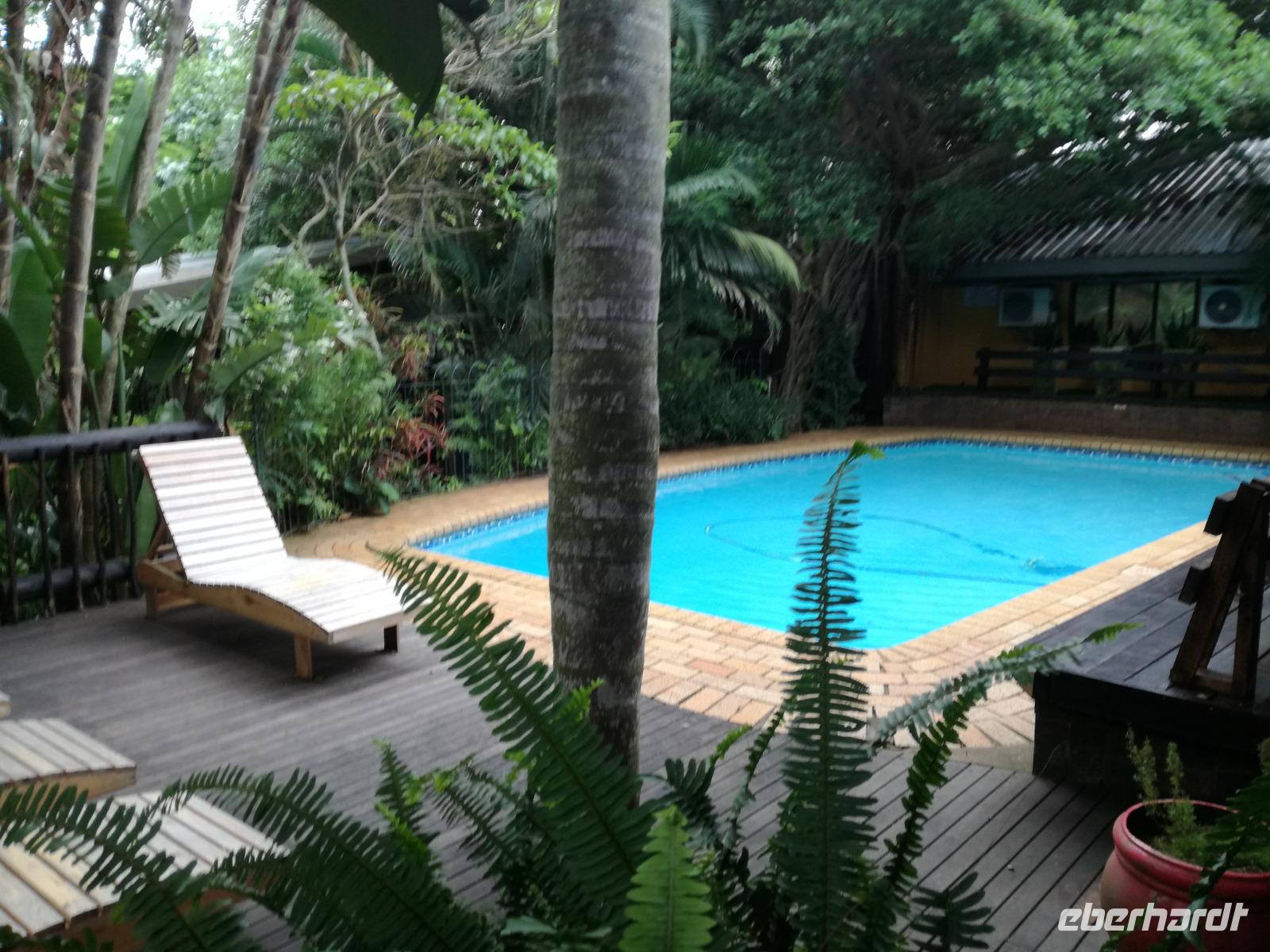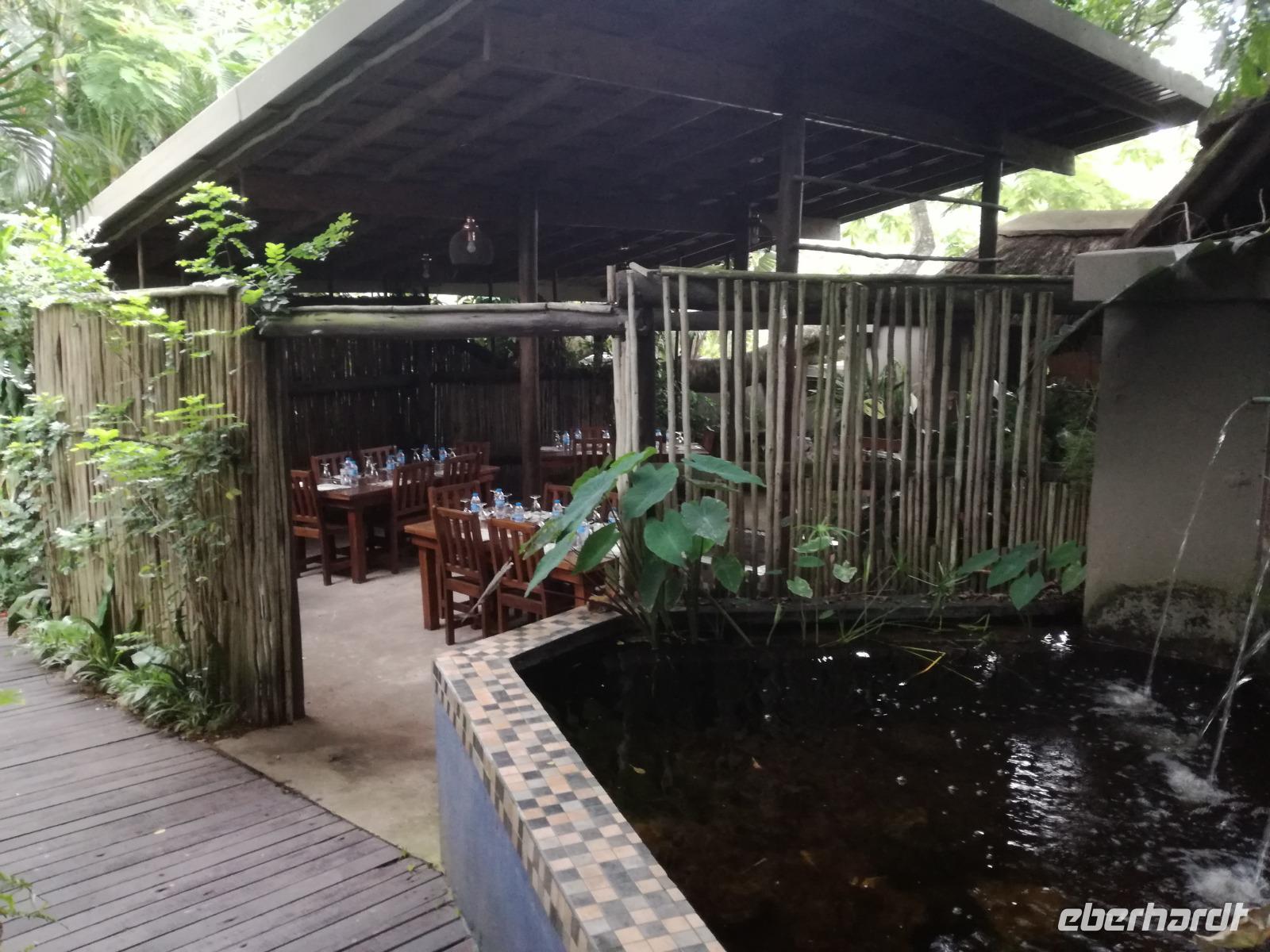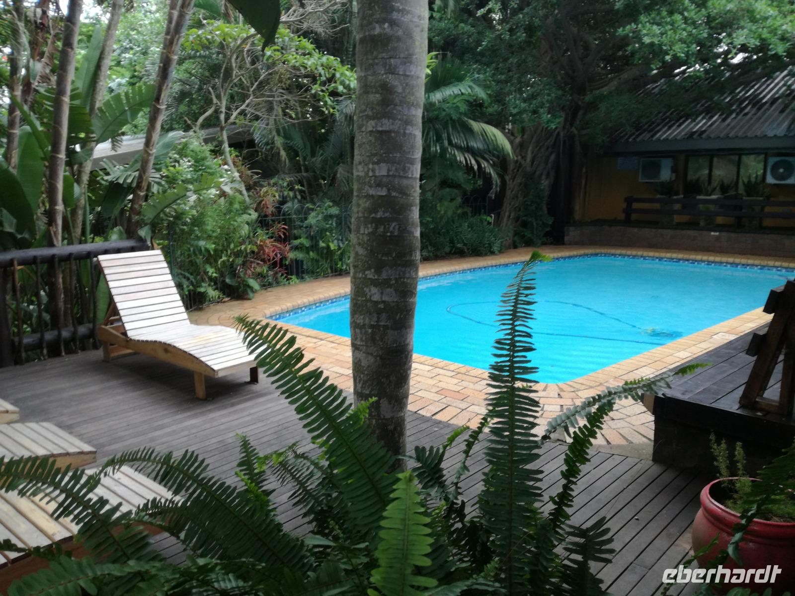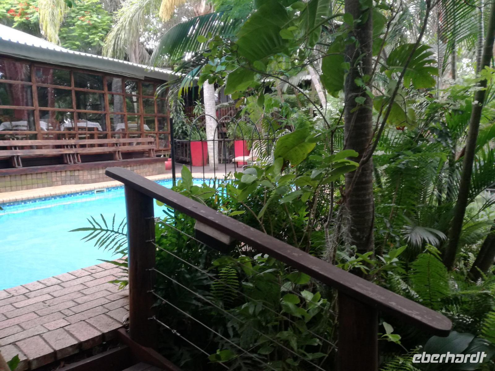 Heute hieß es leider schon aufstehen. Nach dem letzten Frühstück in Kapstadt brachte und Herbie und Clieve zum Flughafen. Nach einem kurzen Abschied stiegen wir in den Flieger in Richtung Durban. Hier begrüßte uns unsere örtliche Reiseleitung Sonet. Nach einen kurzen Stopp in der Apotheke gingen in zum Bus und fuhren in Richtung St Lucia in der Region Provinz KwaZulu. Unterwegs berichtete uns Sonet einiges über die Provinz und die Region. In St Lucia angekommen ging es erstmal zur Umlilo Lodge. Unsere tollte Lodge war super gepflegt und wir fühlten uns wie im Regenwald versetzt. Nach einem kurzen Aufenthalt unternahmen wir einen Spaziergang zum hiesigen Strand. Mach einer nutze die Möglichkeit zum Baden oder einfach nur um die Seele baumeln zu lassen. Um 19.00 Uhr genießen wir ein leckeres 3-Gänge-Menü an der Lagerfeuerstelle. Das sogenannte Braai ist die traditionelle Grille in Südafrika. Das Feuer lodert, es qualmt zwar ganz schön, aber wenigstens vertreibt es die Mücken :-) Die alkoholischen und alkoholfreien Getränke sind heute kostenfrei, da wir in den Zimmern eine ganze Weile kein fließendes Wasser gehabt haben. Danke Lorenzo, eine wirklich nette Geste, auch wenn wir es als nicht so schlimm empfunden haben Das Essen ist sehr lecker und reichhaltig. Wir sitzen nach dem Essen zusammen am Lagerfeuer bei Wein, Bier, Wasser und Softdrinks. Dies ist schon einmal ein toller Auftakt für die kommenden Tage. Hoffen wir, dass wir noch ganz viele Tiere in ihrem natürlichen Umfeld sehen werden.
