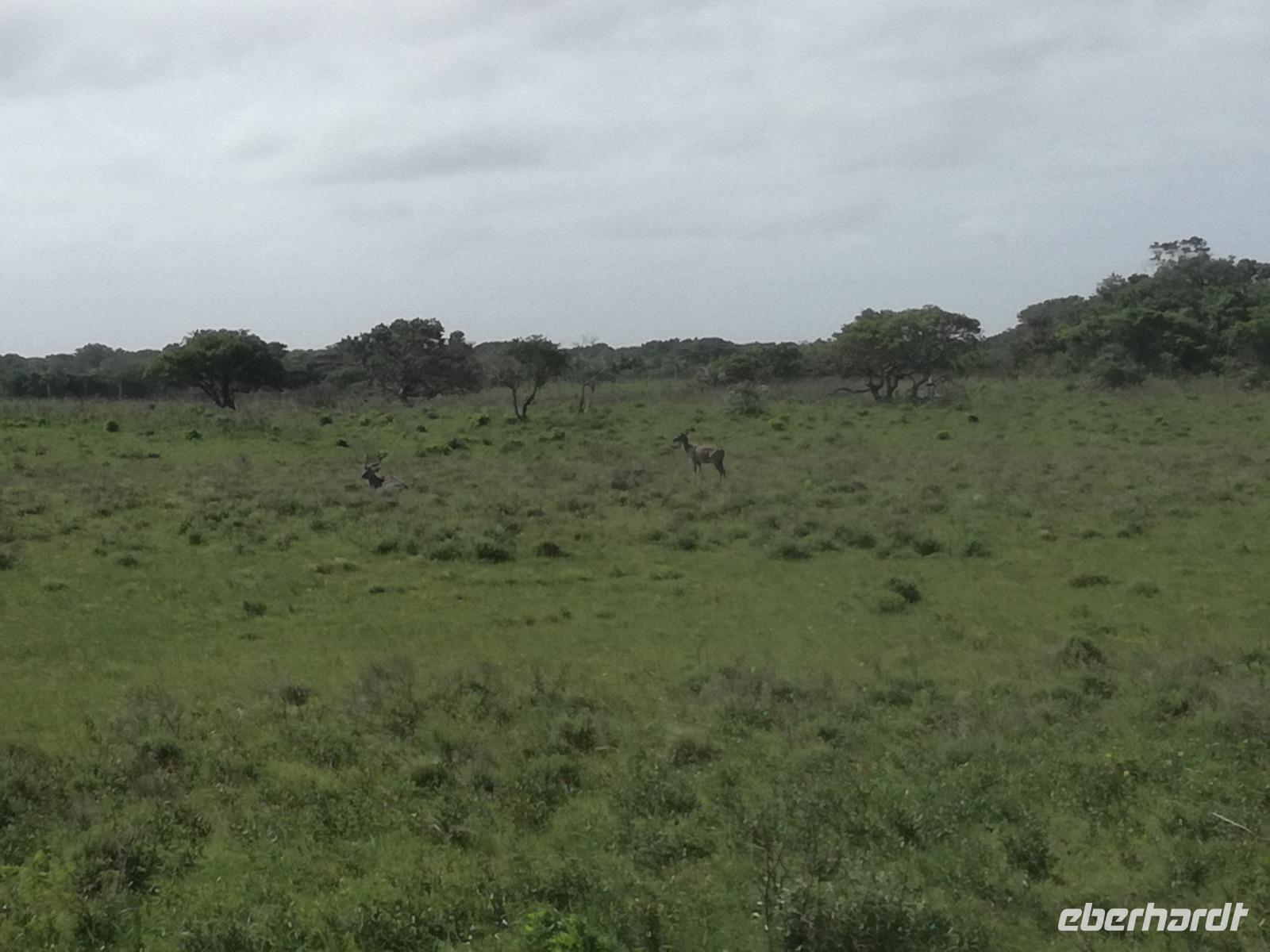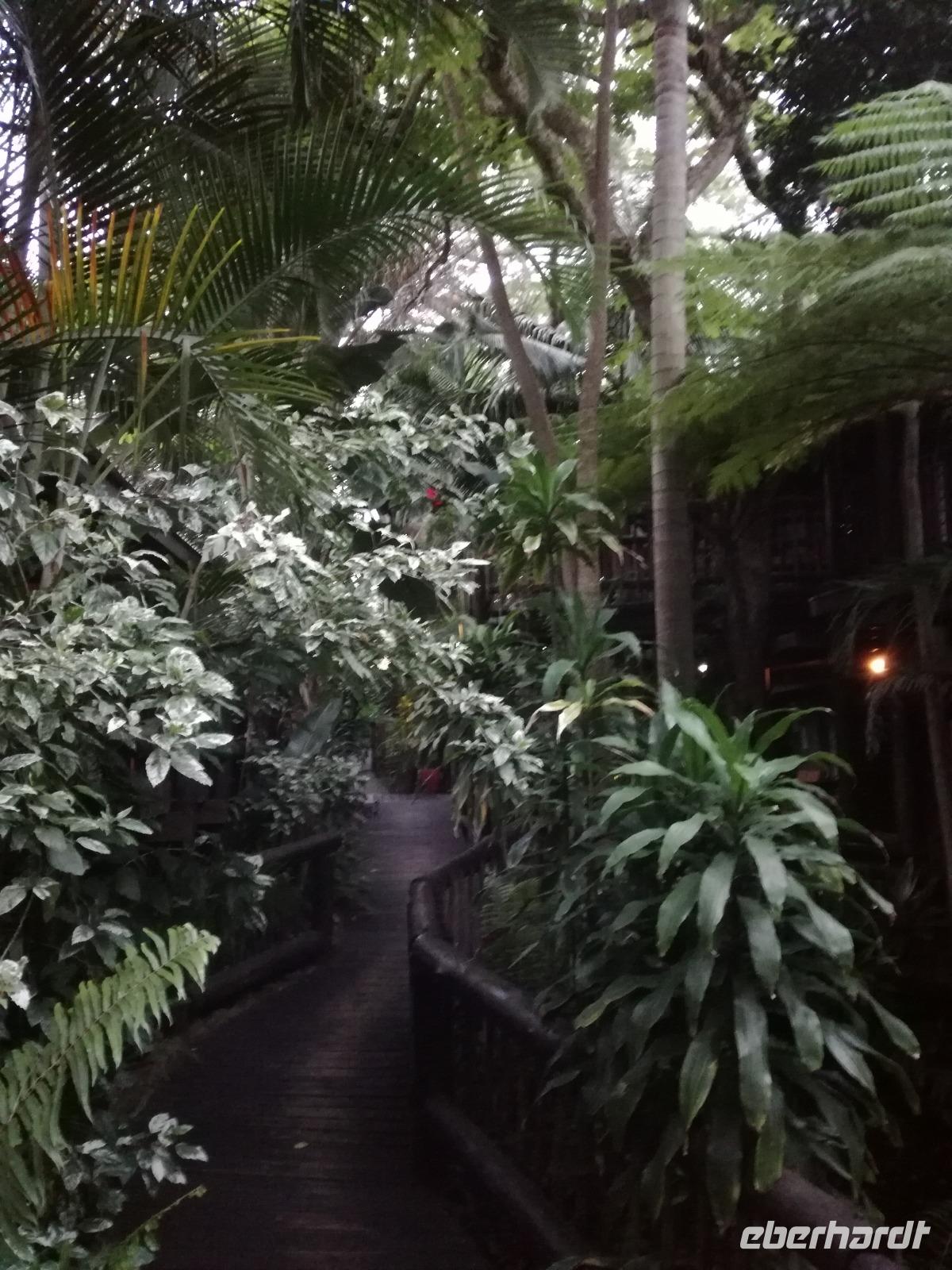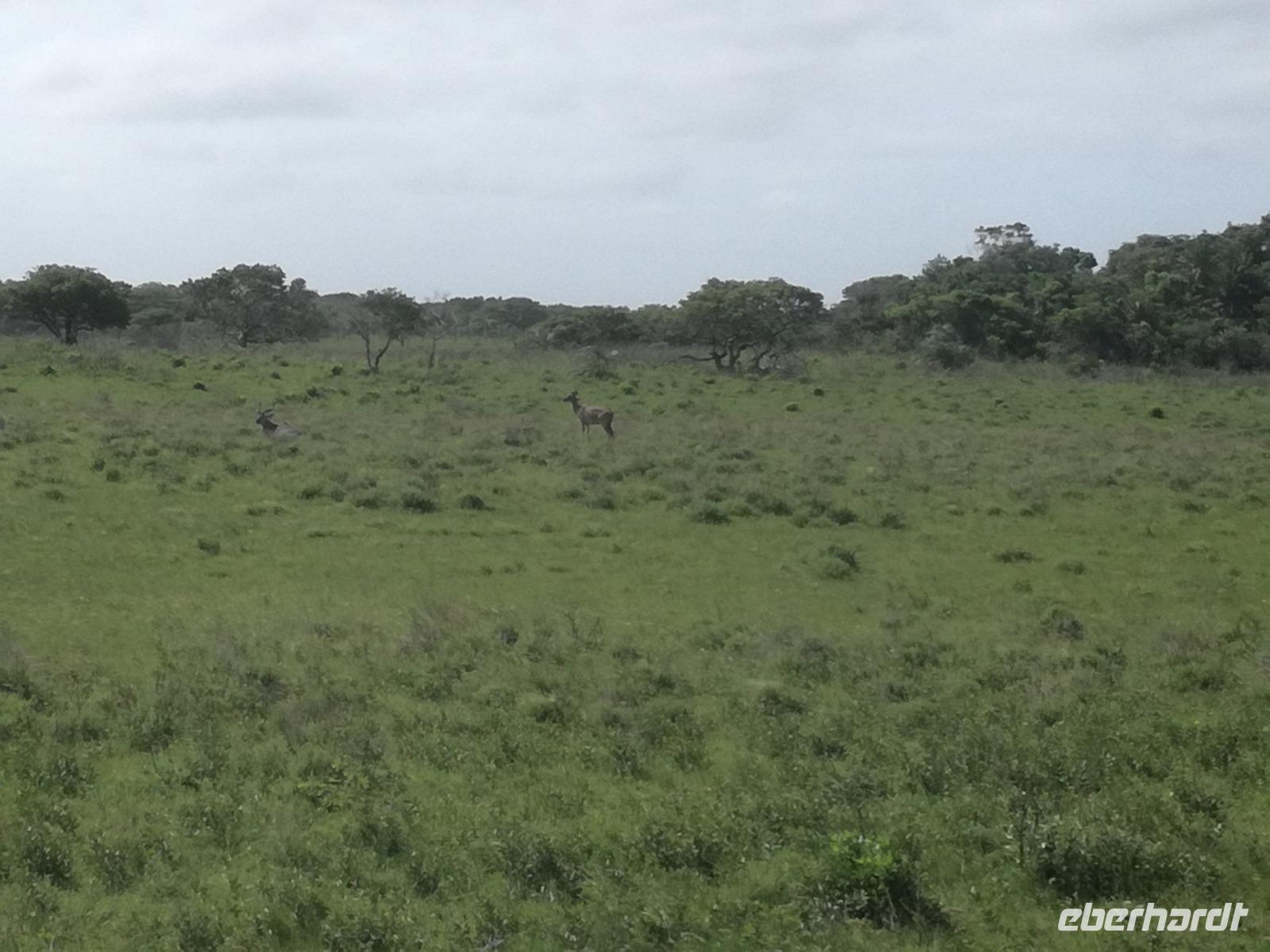 Heute hieß es leider schon aufstehen. Nach dem letzten Frühstück in Kapstadt brachte und Herbie und Clieve zum Flughafen. Nach einem kurzen Abschied stiegen wir in den Flieger in Richtung Durban. Hier begrüßte uns unsere örtliche Reiseleitung Sonet. Nach einen kurzen Stopp in der Apotheke gingen in zum Bus und fuhren in Richtung St Lucia in der Region Provinz KwaZulu. Unterwegs berichtete uns Sonet einiges über die Provinz und die Region. In St Lucia angekommen ging es erstmal zur Umlilo Lodge. Unsere tollte Lodge war super gepflegt und wir fühlten uns wie im Regenwald versetzt. Nach einem kurzen Aufenthalt unternahmen wir einen Spaziergang zum hiesigen Strand. Mach einer nutze die Möglichkeit zum Baden oder einfach nur um die Seele baumeln zu lassen. Um 19.00 Uhr genießen wir ein leckeres 3-Gänge-Menü an der Lagerfeuerstelle. Das sogenannte Braai ist die traditionelle Grille in Südafrika. Das Feuer lodert, es qualmt zwar ganz schön, aber wenigstens vertreibt es die Mücken :-) Die alkoholischen und alkoholfreien Getränke sind heute kostenfrei, da wir in den Zimmern eine ganze Weile kein fließendes Wasser gehabt haben. Danke Lorenzo, eine wirklich nette Geste, auch wenn wir es als nicht so schlimm empfunden haben Das Essen ist sehr lecker und reichhaltig. Wir sitzen nach dem Essen zusammen am Lagerfeuer bei Wein, Bier, Wasser und Softdrinks. Dies ist schon einmal ein toller Auftakt für die kommenden Tage. Hoffen wir, dass wir noch ganz viele Tiere in ihrem natürlichen Umfeld sehen werden.