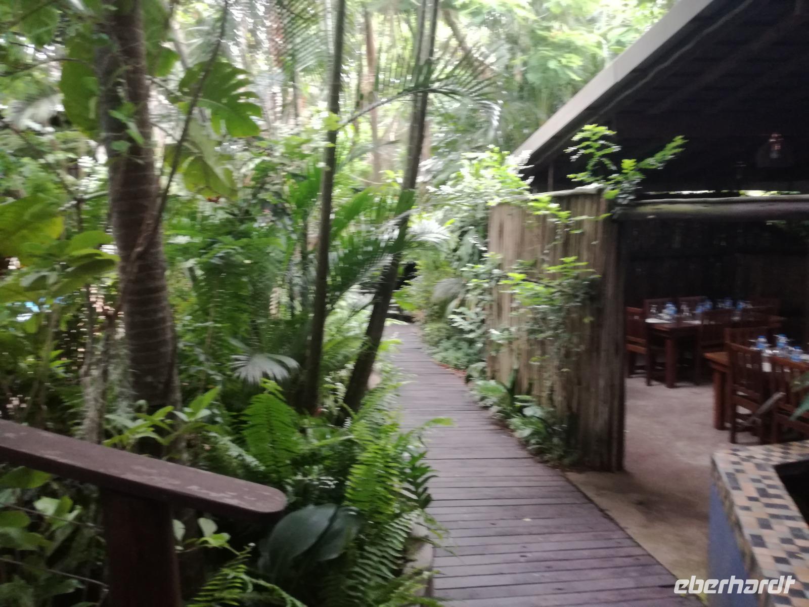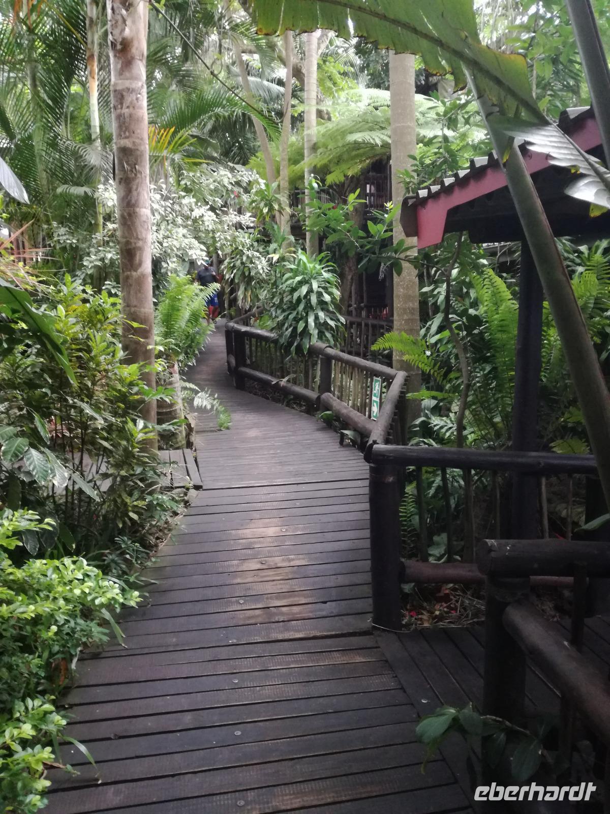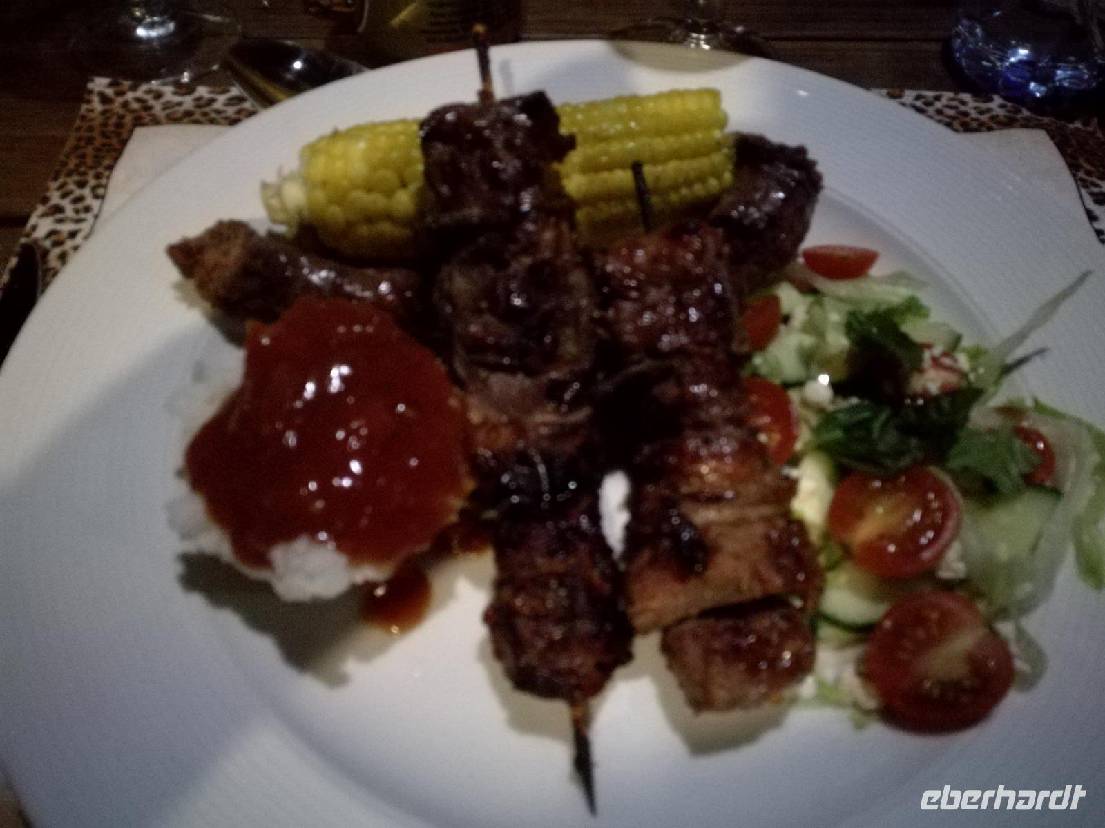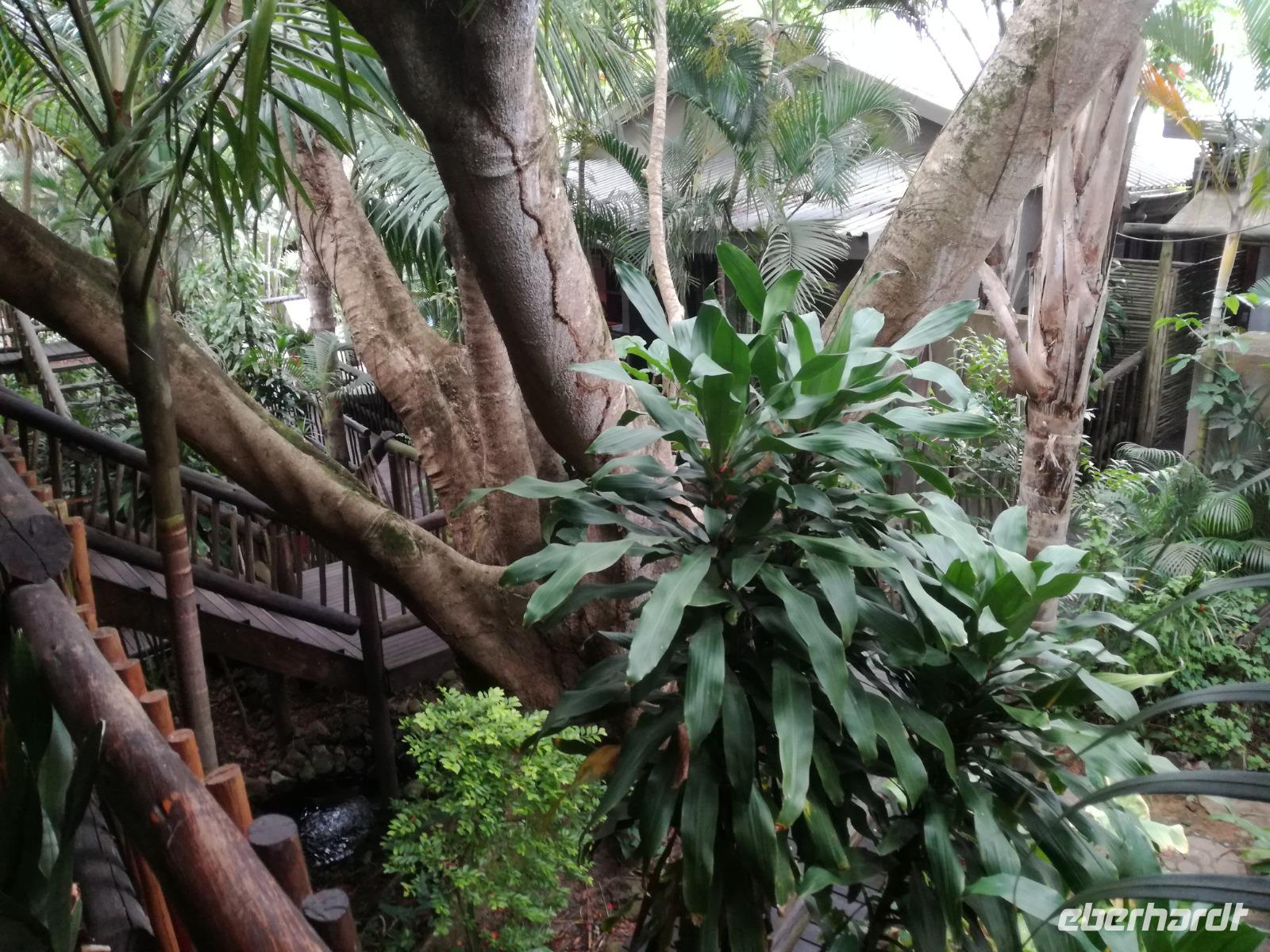 Heute hieß es leider schon aufstehen. Nach dem letzten Frühstück in Kapstadt brachte und Herbie und Clieve zum Flughafen. Nach einem kurzen Abschied stiegen wir in den Flieger in Richtung Durban. Hier begrüßte uns unsere örtliche Reiseleitung Sonet. Nach einen kurzen Stopp in der Apotheke gingen in zum Bus und fuhren in Richtung St Lucia in der Region Provinz KwaZulu. Unterwegs berichtete uns Sonet einiges über die Provinz und die Region. In St Lucia angekommen ging es erstmal zur Umlilo Lodge. Unsere tollte Lodge war super gepflegt und wir fühlten uns wie im Regenwald versetzt. Nach einem kurzen Aufenthalt unternahmen wir einen Spaziergang zum hiesigen Strand. Mach einer nutze die Möglichkeit zum Baden oder einfach nur um die Seele baumeln zu lassen. Um 19.00 Uhr genießen wir ein leckeres 3-Gänge-Menü an der Lagerfeuerstelle. Das sogenannte Braai ist die traditionelle Grille in Südafrika. Das Feuer lodert, es qualmt zwar ganz schön, aber wenigstens vertreibt es die Mücken :-) Die alkoholischen und alkoholfreien Getränke sind heute kostenfrei, da wir in den Zimmern eine ganze Weile kein fließendes Wasser gehabt haben. Danke Lorenzo, eine wirklich nette Geste, auch wenn wir es als nicht so schlimm empfunden haben Das Essen ist sehr lecker und reichhaltig. Wir sitzen nach dem Essen zusammen am Lagerfeuer bei Wein, Bier, Wasser und Softdrinks. Dies ist schon einmal ein toller Auftakt für die kommenden Tage. Hoffen wir, dass wir noch ganz viele Tiere in ihrem natürlichen Umfeld sehen werden.