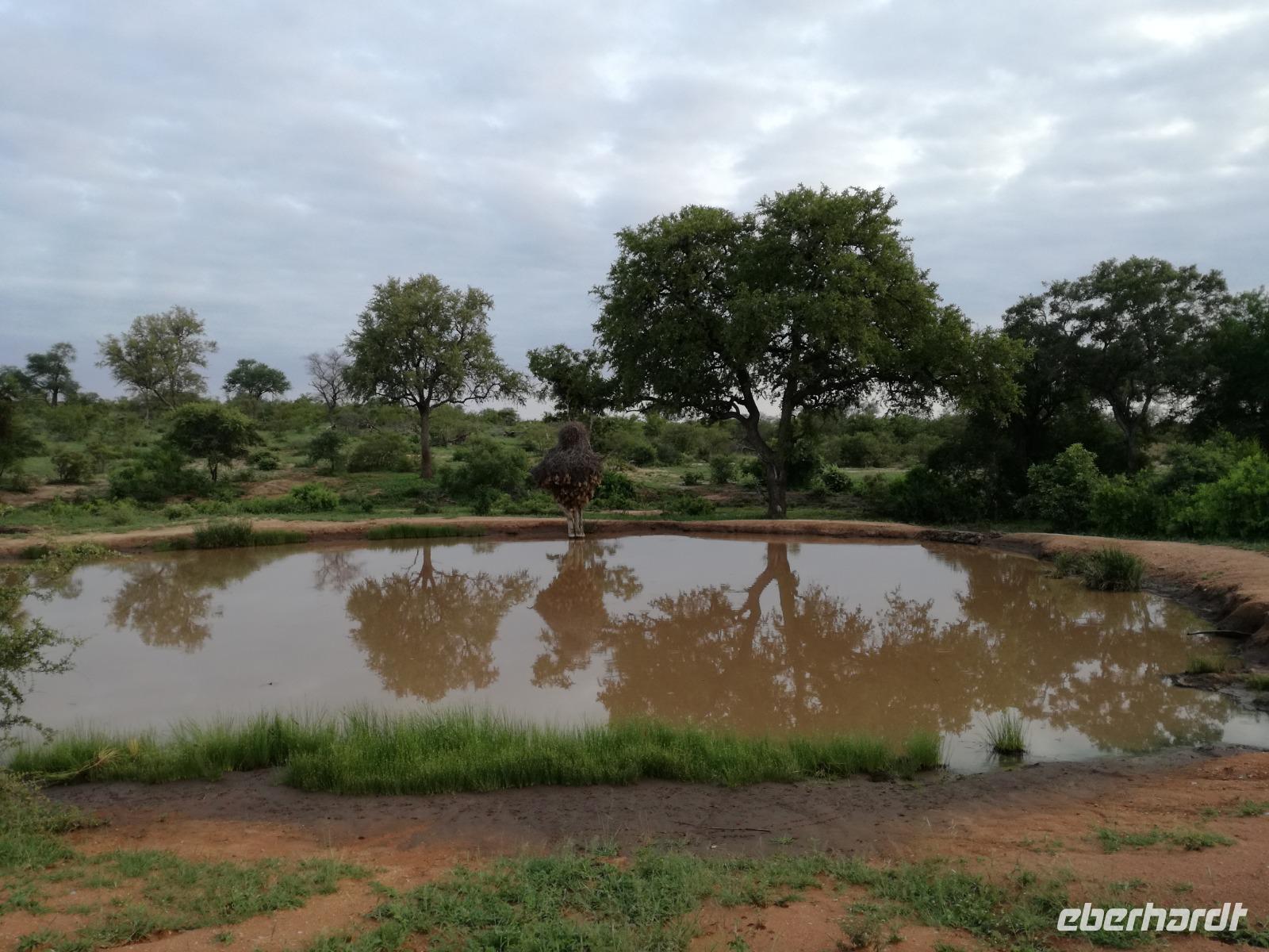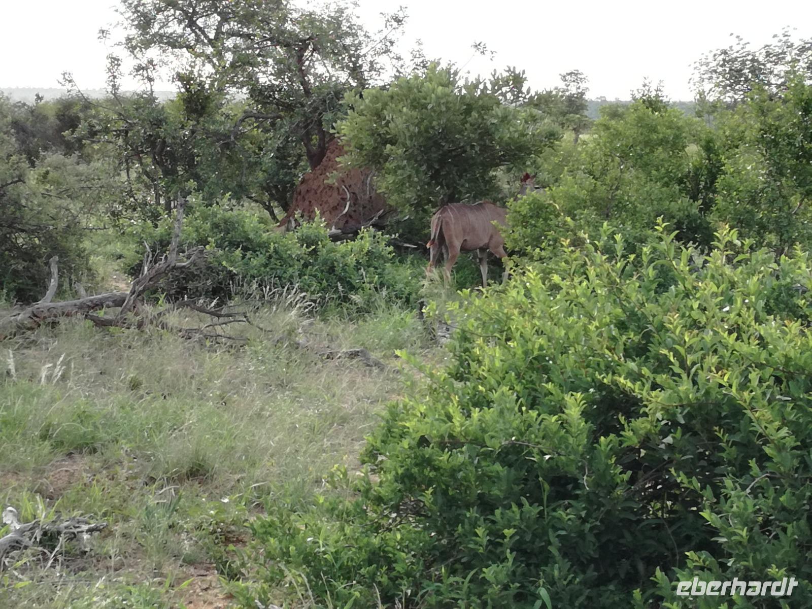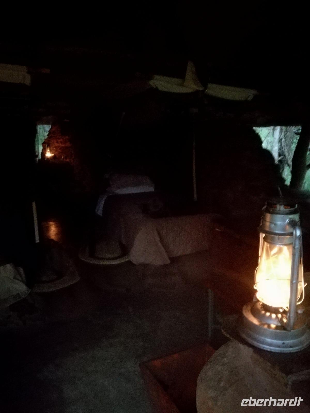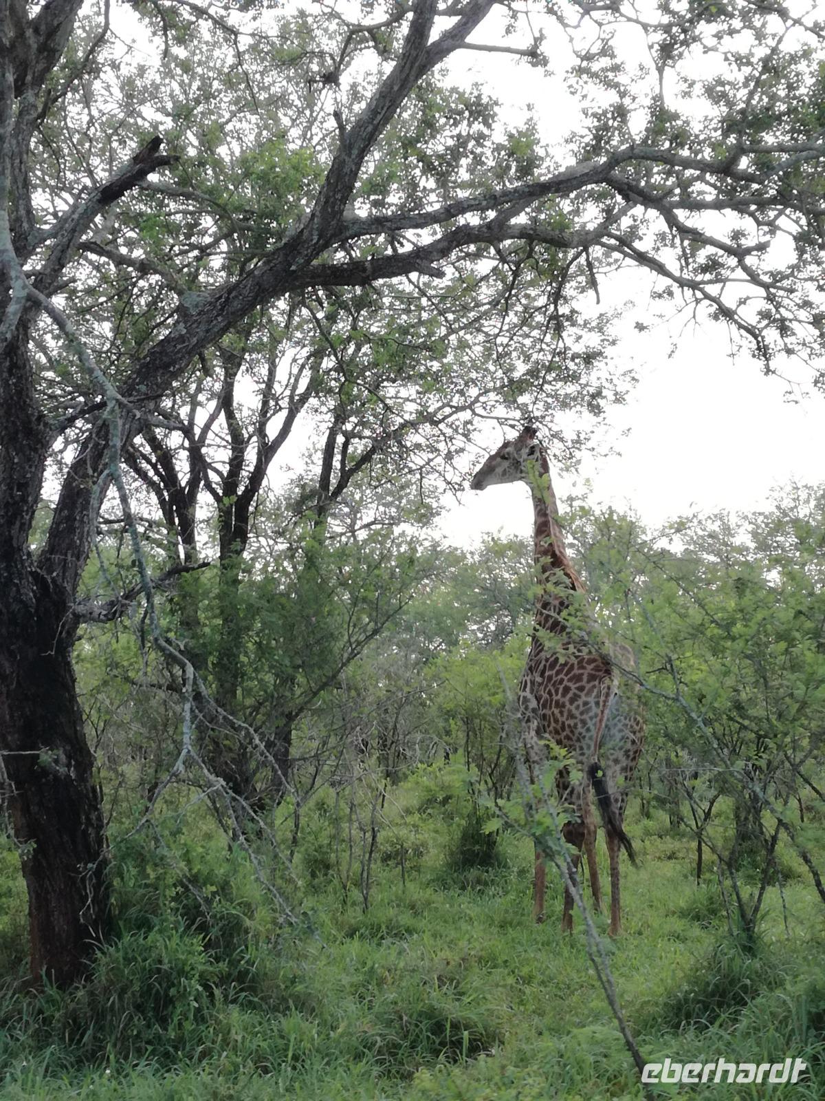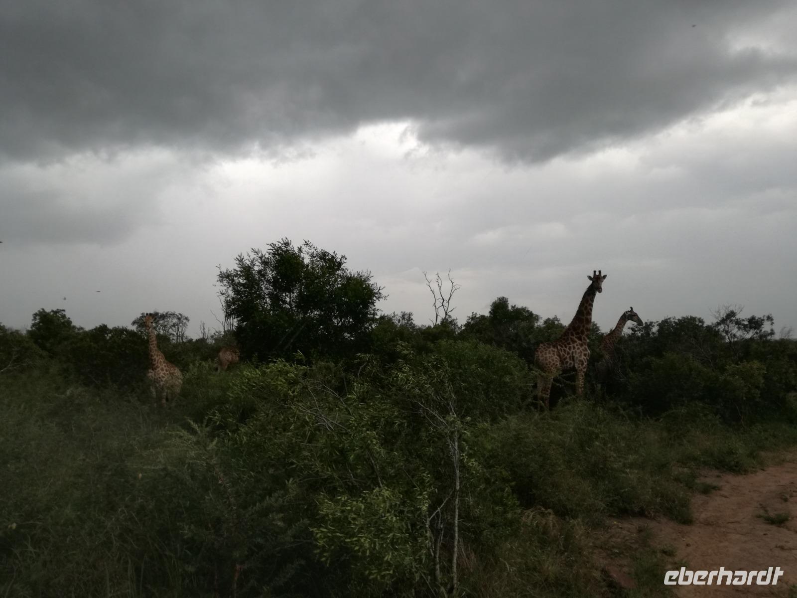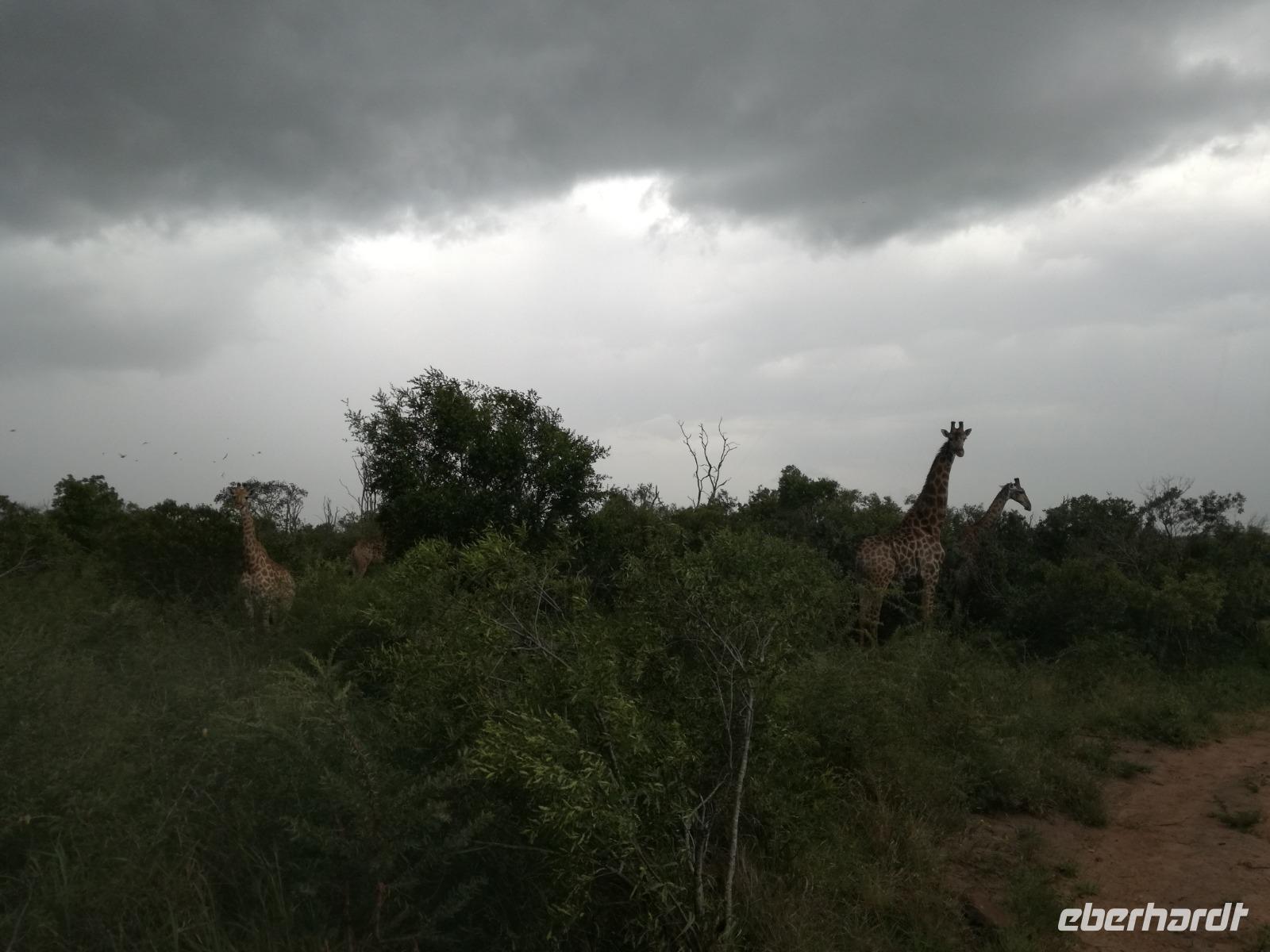 Heute Morgen starteten wir etwas früher in den Tag. Nach dem Frühstück brachen wir auf in Richtung Swaziland. Auf dem Weg erklärt uns Sonet einiges über Land und Leute und über das unabhängige Königreich Swaziland. Um die Mittagszeit überquerten wir die Grenzen von Südafrika nach Swaziland bzw. Königreich Eswatini wie es seit 2018 offiziell heißt. Das Königreich wird seit 1986 vom König MSwti III und er gilt als der letzte absolutitischer Monarch Afrikas. Insgesamt hat der 50 Jährige 19 Ehefrauen und ca. 30 Kindern. Aber wir waren ja nicht wegen dem König gekommen, sondern wir wollten den Mkhaya Game Reserve besuchen. Nach einer kleinen Wartezeit erreichten uns endlich die zwei Jeeps. Das Gepäck blieb beim Bus und wir reisten nur mit Handgepäck ins Stone Camp. Nach einem kurzen Einschreiben wollten wir unsere Pirschfahrt beginnen. Allerdings standen plötzlich zwei Breitmaulnashörner vor uns. Schnell zuckten wir unsere Kameras und hatten somit nach dem Büffel das zweite Mitglied der Big 5 gesehen. Während diese Nashornart im Nationalpark weit verbreitet ist, werden Spitzmaulnashörner eher selten gesehen, da sie sich hauptsächlich im Gebüsch verstecken. Wie der Name bereits verrät, unterscheiden sich die Arten hinsichtlich der Form ihres Mauls. Während das Breitmaulnashorn mit seinem breiten Maul das Gras am Boden frisst, rupft das Spitzmaulnashorn mit der Oberlippe die Blätter von den Ästen. Mit einer Vielzahl an Nashornfotos geht unsere Safari auch schon weiter. Die Gruppen fahren auf unterschiedlichen Routen durch das Reservat. Wir sehen Giraffen, Zebras, Nyalas, "Hippos" und verschiedene Vogelarten. Allerdings spielte uns plötzlich das Wetter einen Strich durch die Rechnung. Plötzlich begann es zu regnen und Gewittern. Schnell bekamen wir Ponchos und fuhren in Richtung Camp. Gegen 18.00 Uhr passieren wir die Einfahrt zum 2,5-Sterne-Stone Camp im Mkhaya Game Reserve. Zuerst werden uns die Unterkünfte gezeigt. Wir werden die Nacht im halboffenem Steinhäuschen mit halbhohen Steinmauern verbringen. Es gibt keinen Strom und das Handgepäck ist am besten in der Truhe zu verstauen, bevor neugierige Affen kommen und einzelne Dinge stibitzen. Das Bett ist von einem Mosquitonetz umgeben. Das Camp ist komplett mit Lichtern und Kerzen beleuchtet. Mit Schirmen gingen wir zunächst in unsere Steinhütten. Zum Abendessen wurde der Regen etwas weniger und wir wurden mit einem tollen Abendessen verwöhnt. Dazu gab es leckeren Wein, Bier und natürlich unser Lieblingsgetränk der Reise - Amarula Wodka. Nach dem Essen ging es in die Hütten und wir verbrachten eine aufregende Nacht in den offenen Steinhäusern.