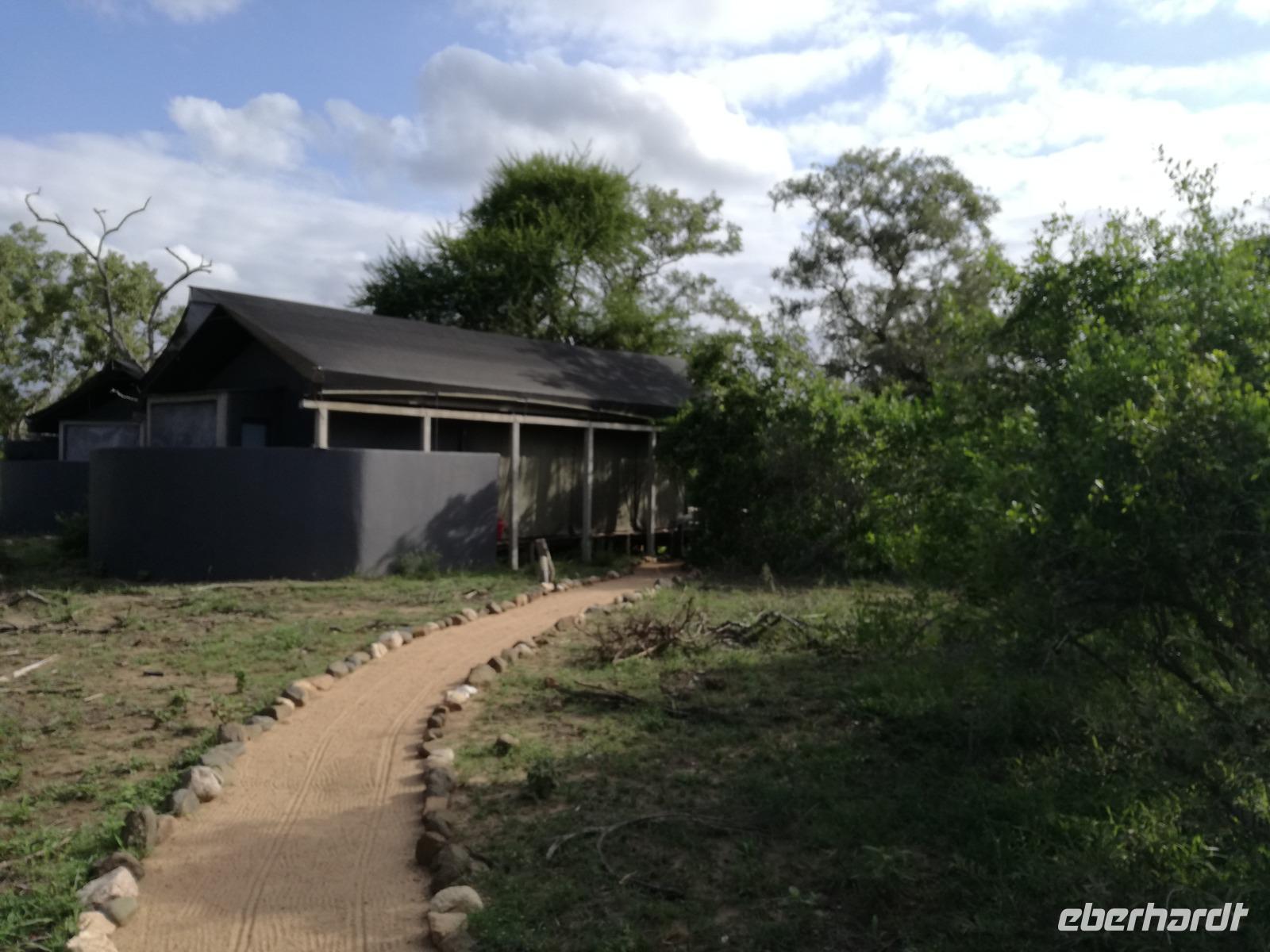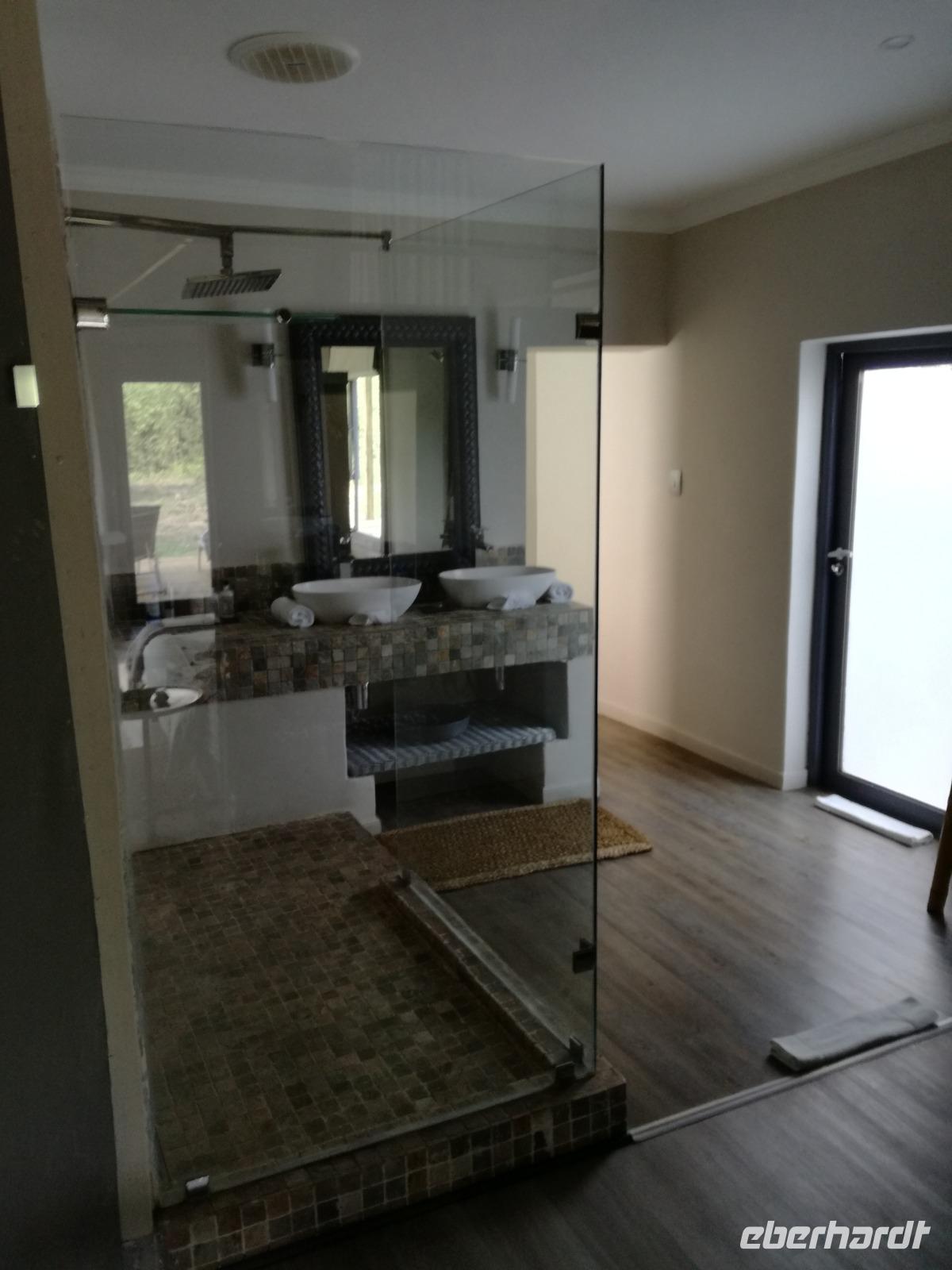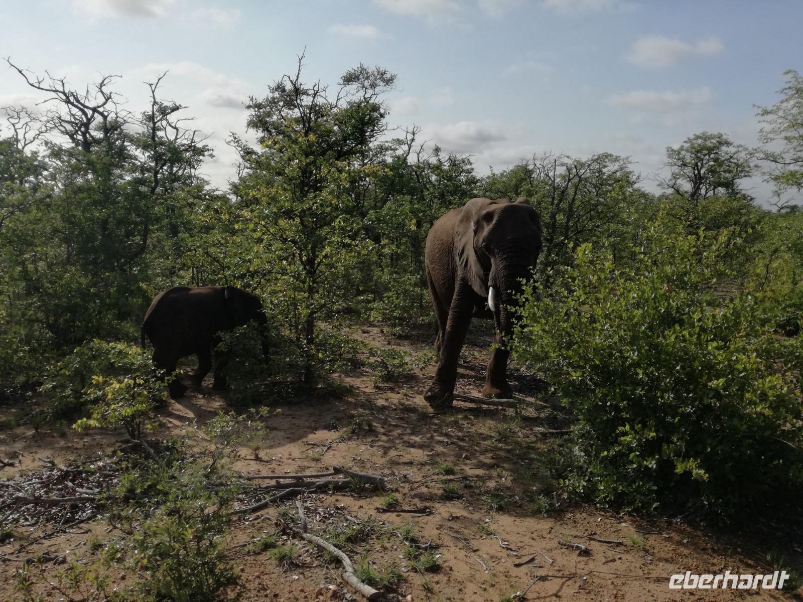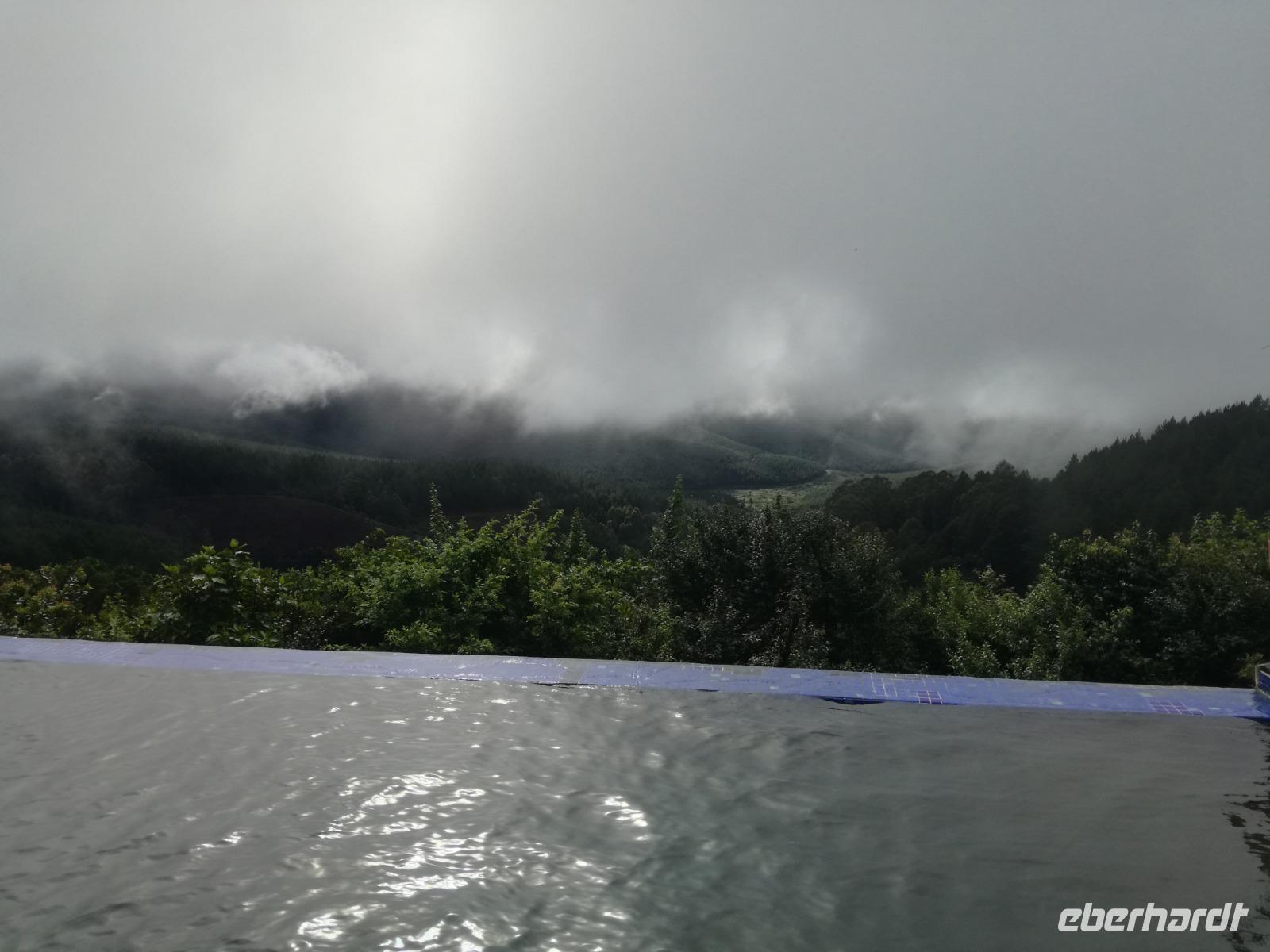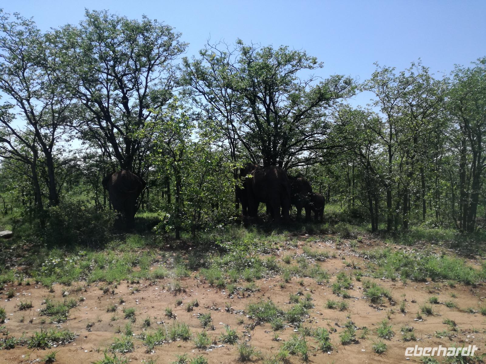Heute Morgen starteten wir etwas früher in den Tag. Nach dem Frühstück brachen wir auf in Richtung Swaziland. Auf dem Weg erklärt uns Sonet einiges über Land und Leute und über das unabhängige Königreich Swaziland. Um die Mittagszeit überquerten wir die Grenzen von Südafrika nach Swaziland bzw. Königreich Eswatini wie es seit 2018 offiziell heißt. Das Königreich wird seit 1986 vom König MSwti III und er gilt als der letzte absolutitischer Monarch Afrikas. Insgesamt hat der 50 Jährige 19 Ehefrauen und ca. 30 Kindern. Aber wir waren ja nicht wegen dem König gekommen, sondern wir wollten den Mkhaya Game Reserve besuchen. Nach einer kleinen Wartezeit erreichten uns endlich die zwei Jeeps. Das Gepäck blieb beim Bus und wir reisten nur mit Handgepäck ins Stone Camp. Nach einem kurzen Einschreiben wollten wir unsere Pirschfahrt beginnen. Allerdings standen plötzlich zwei Breitmaulnashörner vor uns. Schnell zuckten wir unsere Kameras und hatten somit nach dem Büffel das zweite Mitglied der Big 5 gesehen. Während diese Nashornart im Nationalpark weit verbreitet ist, werden Spitzmaulnashörner eher selten gesehen, da sie sich hauptsächlich im Gebüsch verstecken. Wie der Name bereits verrät, unterscheiden sich die Arten hinsichtlich der Form ihres Mauls. Während das Breitmaulnashorn mit seinem breiten Maul das Gras am Boden frisst, rupft das Spitzmaulnashorn mit der Oberlippe die Blätter von den Ästen. Mit einer Vielzahl an Nashornfotos geht unsere Safari auch schon weiter. Die Gruppen fahren auf unterschiedlichen Routen durch das Reservat. Wir sehen Giraffen, Zebras, Nyalas, "Hippos" und verschiedene Vogelarten. Allerdings spielte uns plötzlich das Wetter einen Strich durch die Rechnung. Plötzlich begann es zu regnen und Gewittern. Schnell bekamen wir Ponchos und fuhren in Richtung Camp. Gegen 18.00 Uhr passieren wir die Einfahrt zum 2,5-Sterne-Stone Camp im Mkhaya Game Reserve. Zuerst werden uns die Unterkünfte gezeigt. Wir werden die Nacht im halboffenem Steinhäuschen mit halbhohen Steinmauern verbringen. Es gibt keinen Strom und das Handgepäck ist am besten in der Truhe zu verstauen, bevor neugierige Affen kommen und einzelne Dinge stibitzen. Das Bett ist von einem Mosquitonetz umgeben. Das Camp ist komplett mit Lichtern und Kerzen beleuchtet. Mit Schirmen gingen wir zunächst in unsere Steinhütten. Zum Abendessen wurde der Regen etwas weniger und wir wurden mit einem tollen Abendessen verwöhnt. Dazu gab es leckeren Wein, Bier und natürlich unser Lieblingsgetränk der Reise - Amarula Wodka. Nach dem Essen ging es in die Hütten und wir verbrachten eine aufregende Nacht in den offenen Steinhäusern.